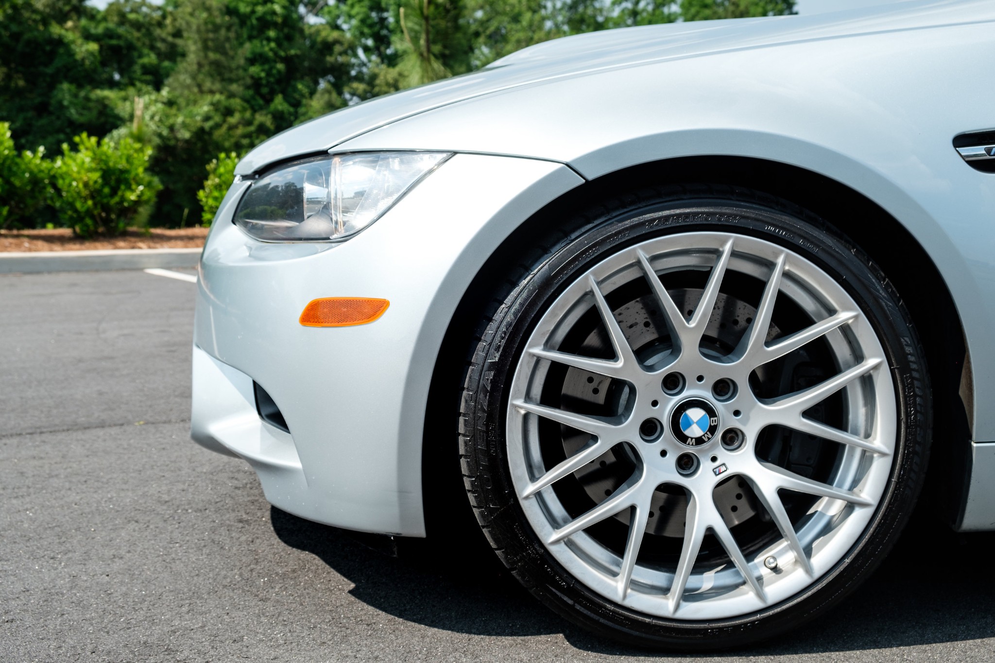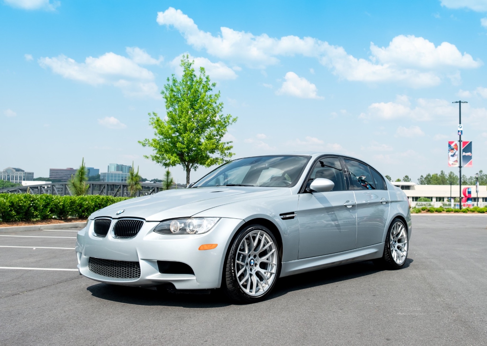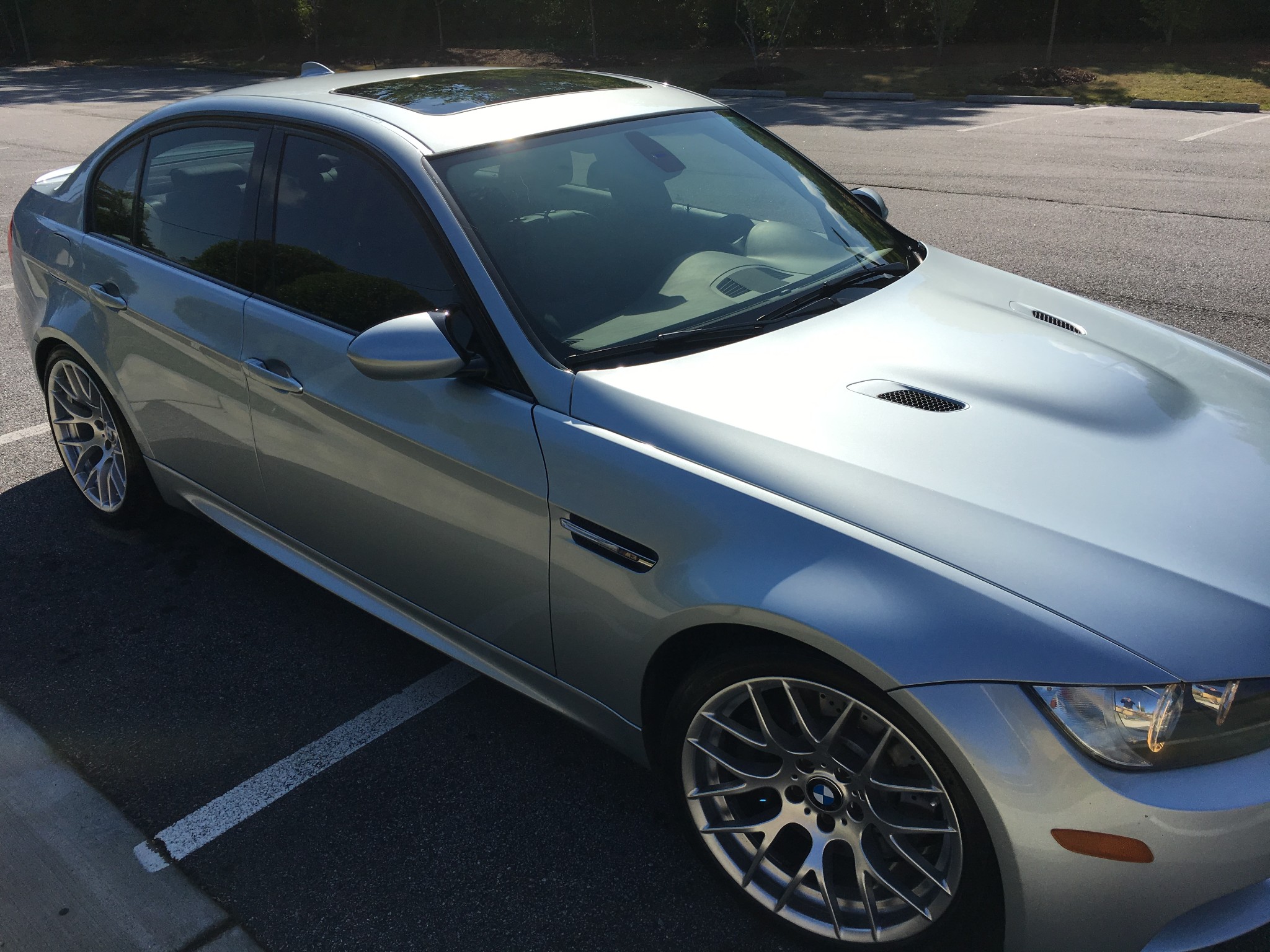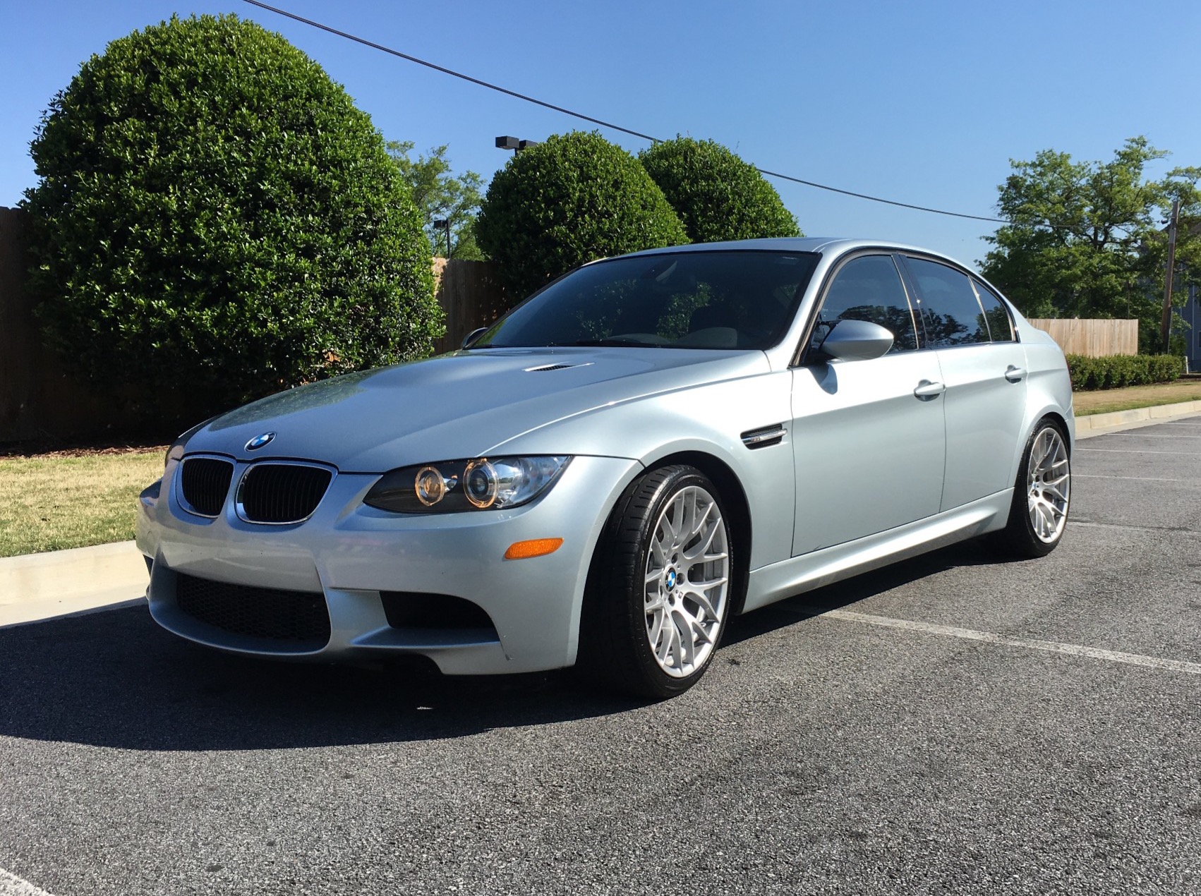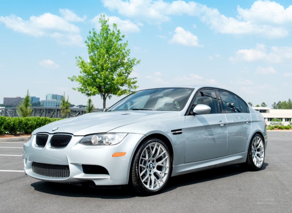 This 2011 BMW M3 sedan was originally sold in North Carolina before being relocated to Miami, Florida in 2012 by the first owner. The seller purchased the car from United BMW of Roswell, Georgia in October 2014 and has added less than 14k miles to the odometer since. The 2011 model year marks the final year of the E90 M3, and this example was ordered with over $16k in options, including the Competition, Convenience, and Premium Packages. Power comes from a stock 4.0-liter S65 V8 paired to a 7-speed DCT transmission, and the car was recently serviced with new valve cover gaskets and an inspection in April 2018. Now showing just under 54k miles, this M3 is being offered with the original window sticker, a clean Carfax, service records, manuals, and a clean Georgia title in the seller’s name. The Silverstone Metallic paint shows typical wear on the front bumper cover, as well as some scuffs on the bottom of the cover. The attached Carfax shows no history of accidents or other damage. The E90 M3 is equipped with a model-specific rear diffuser and side skirts. M suspension lowers the car by 10mm, and other performance features include Dynamic Stability Control and variable M differential lock. The Competition Package features dynamic damper control and 19″ Style 359 alloys, which currently wear Bridgestone Potenza tires. The two-tone interior is upholstered in Palladium Silver and Black leather, and the car is optioned with the Convenience Package and Premium Package 2. These include keyless entry, rear parking sensors, a navigation system, power front seats, power folding side mirrors, and carbon leather trim. This car also was ordered with a moonroof, heated seats, fold down rear seat, and enhanced sound system. The digital odometer shows 53,931 miles. The 4.0-liter S65 V8 is mated to a 7-speed M Dual Clutch Transmission (DCT) and produced 414 horsepower and 295 lb-ft of torque when it left the factory. Recent service from Nalley BMW in Decatur, Georgia consisted of installing new valve cover gaskets, door lock actuator, and comfort access handle. The car and engine were also inspected by a technician, and a wheel was repaired. Several photographs of the undercarriage are featured in the image gallery below. An accident-free Carfax confirms registration in North Carolina, Florida, and Georgia. The report corroborates mileage with 14 odometer readings from June 2011 to April 2018, and shows an open recall from October 2017 that has not been addressed. The original owner’s manuals and key fobs come with the car, and included service records show the car has been serviced at BMW dealerships from new. The original window sticker shows the factory colors and options, as well as an MSRP of over $74k.