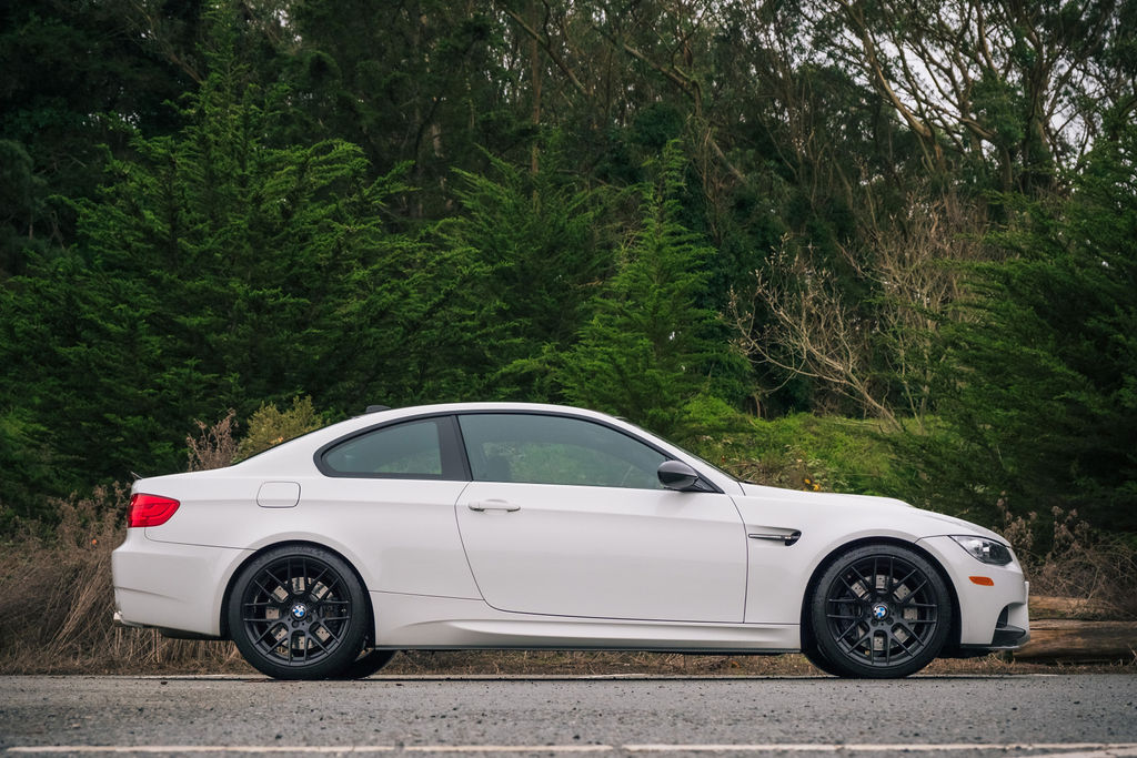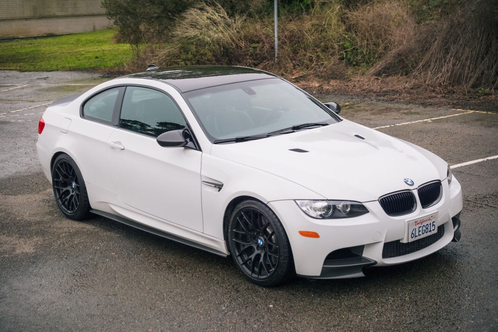 This 2011 BMW M3 coupe has remained registered in California from new, was purchased by the current owner in 2013, and has 31k miles. The car is powered by a 4.0-liter V8 paired with a six-speed manual transmission and is finished in Alpine White III over Anthracite Speed Cloth and Black Novillo leather. Additional equipment includes Competition Package, 19″ Style 359 wheels, a limited-slip differential, xenon headlights, heated front seats, dual-zone automatic climate control, and cruise control. An M Performance exhaust system, pedals, and steering wheel are installed in addition to carbon-fiber exterior trim pieces and “angel eyes” headlights. This E92 M3 is offered by the seller on behalf of their mother with the owner’s manual, service records, removed factory components, and a clean California title. The car is finished in Alpine White III and features Shadowline trim and adaptive xenon headlights as well as rain-sensing wipers, a carbon-fiber roof panel, a trunk lid spoiler, and quadruple exhaust outlets. M Performance black kidney grilles and side vents, “angel eyes” headlights, and a carbon fiber rear spoiler, front splitters, side skirts, and side mirror caps are installed. The Carfax report notes “minor damage” to the front of the car in a May 2015 entry that resulted in a scrape right side on the front bumper. The seller will include a repair estimate. The 19″ Style 359 wheels are mounted with Michelin Pilot Super Sport tires measuring 255/35 up front and 275/35 at the rear. Competition Package equipment includes a lowered ride height compared to the standard M3 as well as retuned Electronic Damping Control (EDC) and Dynamic Stability Control (DSC). Braking is handled by four-wheel vented and cross-drilled discs measuring 14.2″ and 13.8″ front and rear, respectively. A brake fluid flush was performed in August 2020. Scratches are evident on the wheels. The front sport seats are upholstered in Anthracite Speed Cloth and Black Novillo leather, and Titanium Shadow trim accents the dashboard and doors. Amenities include a CD stereo, dual-zone automatic climate control, and cruise control. M Performance pedals have been installed along with a Bluetooth module that allows streaming of music and navigation from smartphones. The Alcantara-wrapped M Performance steering wheel features tri-color stitching and frames an M-branded tachometer, a 200-mph speedometer, a central information display, and gauges for oil temperature and fuel level. The digital odometer indicates 31k miles, approximately 29k of which were added under current ownership. The 4.0-liter S65 V8 features double-VANOS variable valve timing and was factory rated at 414 horsepower and 295 lb-ft of torque. The spark plugs were replaced in July 2019, a coolant flush was carried out in August 2020, and an oil change was performed in December 2023. Power is sent to the rear wheels through a six-speed manual transmission and a Variable M Differential Lock. An M Performance exhaust system is installed. Removed factory components such as the steering wheel and exhaust system are included in the sale along with service records and manufacturer’s literature. The Carfax report shows the aforementioned accident and lists history in California.