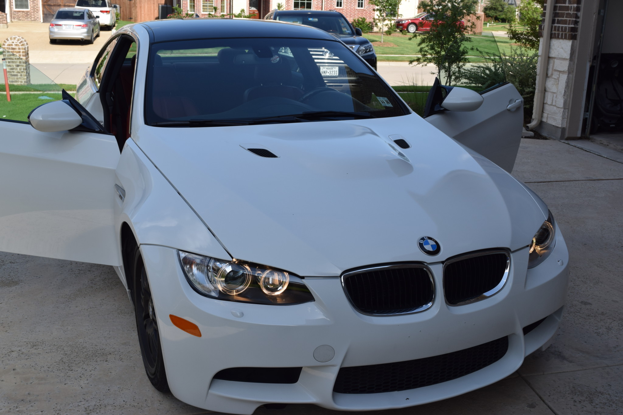 This 2011 BMW M3 coupe is finished in Alpine White over Fox Red leather and powered by a replacement 4.0-liter V8 which was recently installed following a rod bearing service 500 miles ago. The car features a 7-speed DCT transmission, variable locking M differential, carbon fiber roof panel, black powder coated 19″ wheels, adaptive xenon headlights, and an Agency Power exhaust system. Recently acquired by the selling dealer, this E92 M3 shows 65k miles and is offered with a clean Carfax and clear New Jersey title. The car is finished in Alpine White with a coupe-specific carbon fiber roof, rear diffuser, and side skirts. The Carfax report shows no accidents or other damage. Chips are noted by the seller on the rear bumper and black powder coated 19″ wheels. Exterior equipment includes adaptive xenon headlights with auto-leveling and cornering functions. The tires were recently balanced and all four tire pressure monitors were replaced. The interior is upholstered in Fox Red leather on the seats, door panels, and center armrest accented by black trim and carpets. Electric front seats with heaters are equipped, and the seller has had the air conditioning system recharged to cope with the Texas climate. The leather-rimmed steering wheel features M-specific color stitching. Approximately 65k miles are shown on the odometer, of which the selling dealer has added 500 over the past few months. An airbag recall will be completed by the seller before delivery to the new owner. A spare 4.0-liter S65 V8 engine block was sourced by the seller, honed, given a rod bearing service, and reassembled with new gaskets in the past 500 miles. The work was carried out by an independent shop in McKinney, Texas, with related invoices for parts and labor provided in the gallery below. Power is sent to the rear wheels through a 7-speed DCT transmission and variable locking M differential. A transmission flush was conducted at the time of the engine replacement. Additional photos of the undercarriage are featured in the gallery below. The Carfax report shows no accidents or other damage over four owners, and lists two open airbag recalls.