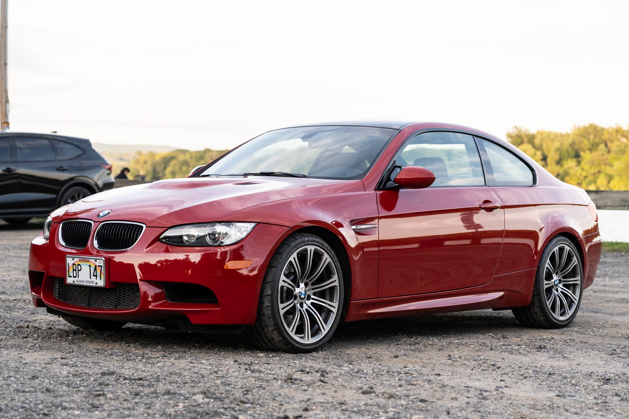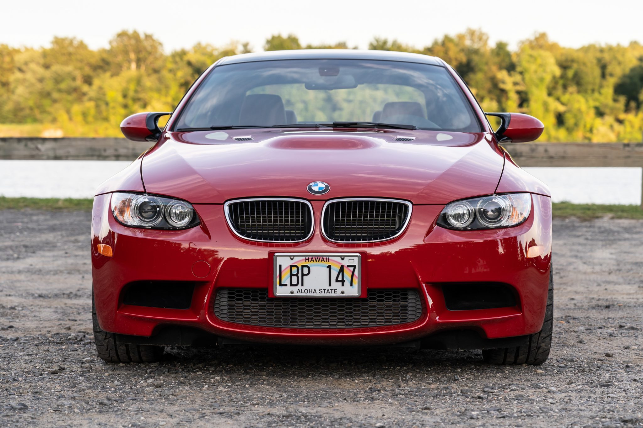 This 2011 BMW M3 coupe was purchased new by the seller’s late father and now has 22k miles following history in Hawaii. It was ordered without iDrive or a sunroof and is finished in Melbourne Red Metallic over Fox Red Novillo leather. Power is provided by a 4.0-liter S65 V8 paired with a six-speed manual transmission. Equipment includes the Premium Package, a carbon-fiber roof panel, 19″ forged Style 220 wheels, and adaptive xenon headlights. Work in preparation for the sale totaled nearly $4k and included various fluid changes and replacing the thermostat, coolant temperature sensor, filters, and hood struts. This E92 M3 is now offered in Connecticut with the owner’s manual, a battery tender, service records dating back to 2010, a clean Carfax report, and a clean Hawaii title in the seller’s name. The car is finished in Melbourne Red Metallic (A75) with a carbon-fiber roof panel and Shadowline trim and is equipped with a trunk lid spoiler, adaptive xenon headlights, rain-sensing wipers, and power-folding mirrors. The seller notes a dent on the left side of the car, blemishes around the body, and scrapes on the underside of the front bumper cover. Forged 19″ Style 220 wheels are mounted with Firestone Firehawk Indy 500 tires measuring 245/35 up front and 265/35 out back. Braking is handled by four-wheel vented and cross-drilled discs measuring 14.2″ and 13.8″ front and rear, respectively. A brake fluid flush was performed in September 2025. The power-adjustable front Sport seats are upholstered in Fox Red Novillo leather, and Brushed Aluminum Shadow trim accents the dashboard and doors. Amenities include a power rear sunshade, dual-zone automatic climate control, cruise control, a CD stereo, and driver’s seat-position memory settings. The cabin air filter was replaced in September 2025. The multifunction leather-wrapped steering wheel features tri-color stitching and frames an M-branded tachometer, a 200-mph speedometer, a central information display, and gauges for oil temperature and fuel level. The digital odometer indicates 22k miles. The 4.0-liter S65 V8 features double-VANOS variable valve timing and was factory rated at 414 horsepower and 295 lb-ft of torque. The oil was changed, and the coolant temperature sensor, thermostat, engine air filter, and hood struts were replaced in September 2025. Power is sent to the rear wheels through a six-speed manual transmission and a Variable M Differential Lock. The Carfax report is free of accidents or other reported damage.