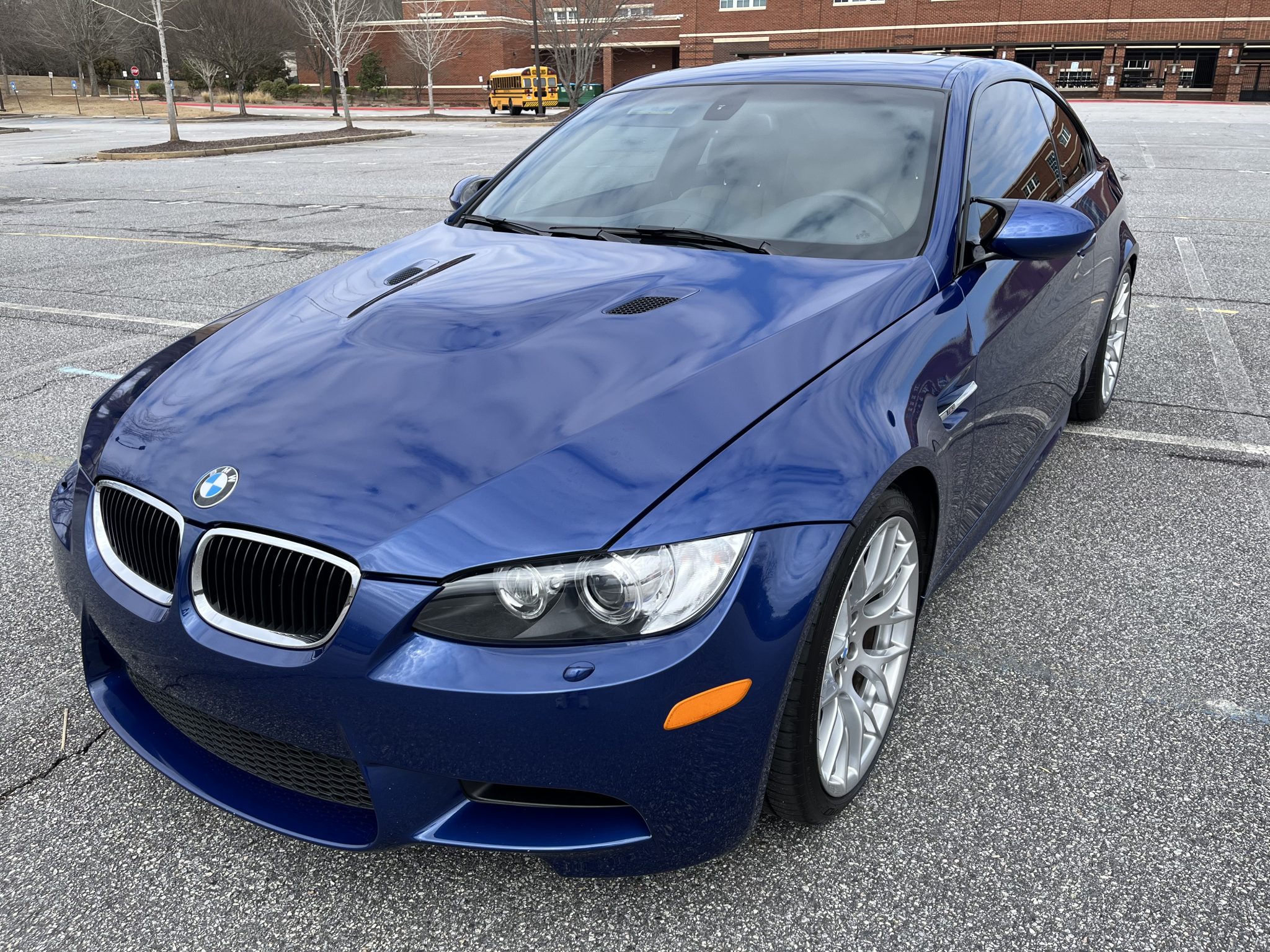 This 2011 BMW M3 coupe is powered by a 4.0-liter V8 paired with a six-speed manual transmission and is finished in Le Mans Blue Metallic over Bamboo Beige Novillo leather. It is equipped with the Competition, Premium 2, Cold Weather, and Convenience packages as well as 19″ Style 359 wheels, a limited-slip differential, xenon headlights, and rear Park Distance Control. The car also has heated front seats, navigation, dual-zone automatic climate control, and a premium sound system. Acquired by the seller in 2015, this E92 M3 has 32k miles and is offered with a window sticker, service records, two keys with integrated fobs, a clean Carfax report, and a clean Georgia title in the seller’s name. The car is finished in Le Mans Blue Metallic (381) and features Shadowline trim and adaptive xenon headlights as well as rain-sensing wipers, retractable headlight washers, power-folding side mirrors, a glass sunroof, a trunk lid spoiler, rear Park Distance Control, and quadruple exhaust outlets. The 19″ Style 359 wheels are mounted with 245/35 front and 265/35 rear Michelin Pilot Sport All Season 4 tires that were installed in June 2024. Competition Package equipment includes a lowered ride height compared to the standard M3 as well as retuned Electronic Damping Control (EDC) and Dynamic Stability Control (DSC). Braking is handled by four-wheel vented and cross-drilled discs measuring 14.2″ and 13.8″ front and rear, respectively. The brake fluid was flushed in June 2023. The heated power-adjustable front sport seats are upholstered in Bamboo Beige Novillo leather, and Carbon Structure Leather trim accents the dashboard and doors. Amenities include iDrive with navigation, a premium sound system, Comfort Access keyless entry, BMW Assist, a CD stereo, a power rear sunshade, dual-zone automatic climate control, and cruise control. The multi-function leather-wrapped steering wheel features tri-color stitching and frames an M-branded tachometer, a 200-mph speedometer, a central information display, and gauges for oil temperature and fuel level. The digital odometer indicates 32k miles, approximately 24k of which were added under current ownership. The 4.0-liter S65 V8 features double-VANOS variable valve timing and was factory rated at 414 horsepower and 295 lb-ft of torque. Power is sent to the rear wheels through a six-speed manual transmission and a Variable M Differential Lock. An oil change was most recently performed in February 2024, and the coolant was flushed at that time. The battery was replaced in June 2024, at which time the fuel injection system was cleaned. The mounting cable for the front splash guard is loose. Additional underside photos are provided in the gallery below. The included window sticker displays initial delivery to Enterprise BMW of Appleton, Wisconsin, and it lists factory colors and equipment along with a total suggested retail price of $73,975. Factory literature, two keys with integrated fobs, and service records will also accompany the car. The Carfax report is free of accidents or other reported damage.