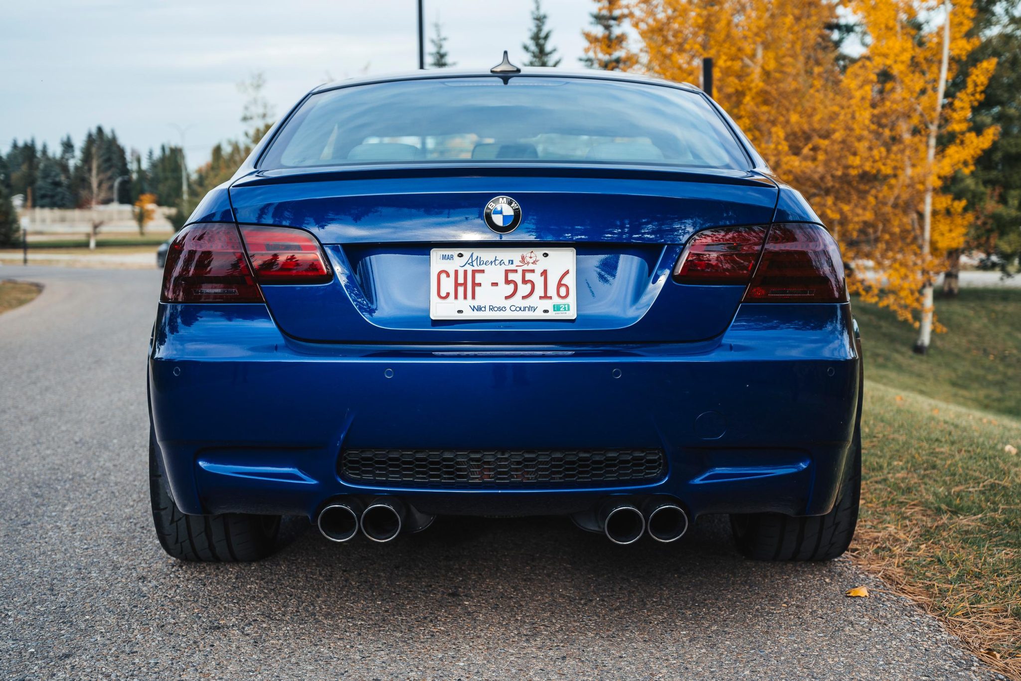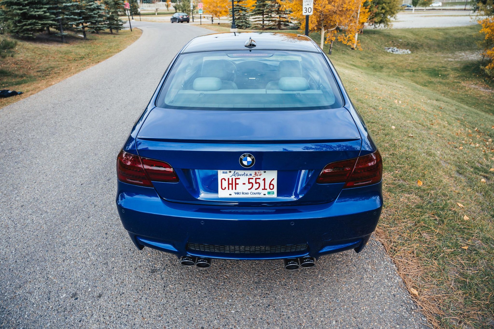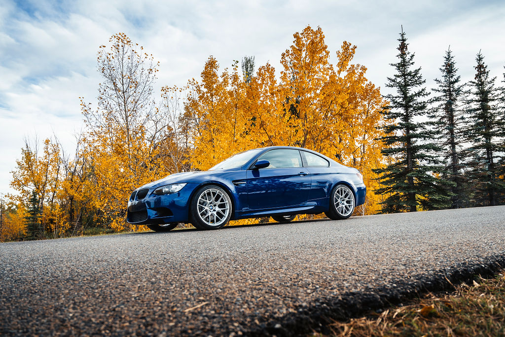 This 2011 BMW M3 is a Canadian-market coupe finished in Le Mans Blue Metallic over Palladium Silver leather and powered by a 4.0-liter V8 linked with a seven-speed dual-clutch transmission and a limited-slip differential. Equipment includes the Technology and Cold Weather packages as well as a Remus exhaust system, a Dinan front sway bar and lowering springs, 19″ RAC alloy wheels, xenon headlights, a carbon-fiber roof panel, rear Park Distance Control, heated power-adjustable front seats, dual-zone automatic climate control, a CD stereo, navigation, and iDrive infotainment. The seller acquired the car in 2023, and a connecting rod bearing service was completed under current ownership. This E92 M3 has 68k kilometers (~42k miles) and is offered with initial sales documents, an owner’s manual, service records, spare parts, clean US and Canadian Carfax reports, and an Alberta registration. The car is finished in Le Mans Blue Metallic (381) with Shadowline trim. Exterior details include adaptive xenon headlights with washers in addition to body-color corner markers, rain-sensing wipers, a carbon-fiber roof panel, a trunk lid spoiler, tinted taillight film, rear Park Distance Control, and quadruple exhaust outlets. Full-car paint protection film is applied and the windshield is covered in ClearPlex film. The photo gallery was captured in October 2024. Silver-finished 19″ RAC alloy wheels are mounted with Firestone Firehawk Indy 500 tires and are secured to the hubs with 12mm front spacers and a wheel stud conversion kit. The car features Electronic Damping Control (EDC), and the suspension is modified with a Dinan front sway bar and lowering springs. Braking is handled by four-wheel cross-drilled and ventilated discs measuring 14.2″ and 13.8″ front and rear, respectively. The heated power-adjustable front sport seats are upholstered in Palladium Silver leather. Factory Carbon Structure Leather trim accents the dashboard and door panels, and complementary BENDA carbon-look leather covers the center console and armrest. Appointments include Comfort Access, driver position memory, dual-zone automatic climate control, a wireless charging pad, a CD stereo, navigation, and iDrive infotainment linked to a premium sound system with a Mr12Volt Apple CarPlay interface. The multifunction leather-wrapped M steering wheel features tri-color stitching, BENDA leather trim, and paddle shifters. Instrumentation consists of an M-branded tachometer, a 200-mph speedometer, a central information display, and gauges for oil temperature and fuel level. The digital odometer indicates 68k kilometers (~42k miles). The driver airbag module was replaced in 2018. The 4.0-liter S65 V8 was factory rated at 414 horsepower and 295 lb-ft of torque and features double-VANOS variable valve timing and a REMUS cat-back exhaust system. Work performed under current ownership included replacing the engine mounts and installing BE bearings and ARP connecting rod hardware. Power is sent to the rear wheels through a seven-speed M-DCT dual-clutch transmission and a Variable M Differential Lock. The factory front undertray has been replaced with an MLT Engineering aluminum skid plate. The US and Canadian Carfax reports are free of accidents and other reported damage. The vehicle is being sold on its transferrable Alberta registration, which serves as the ownership document in Alberta, Canada.