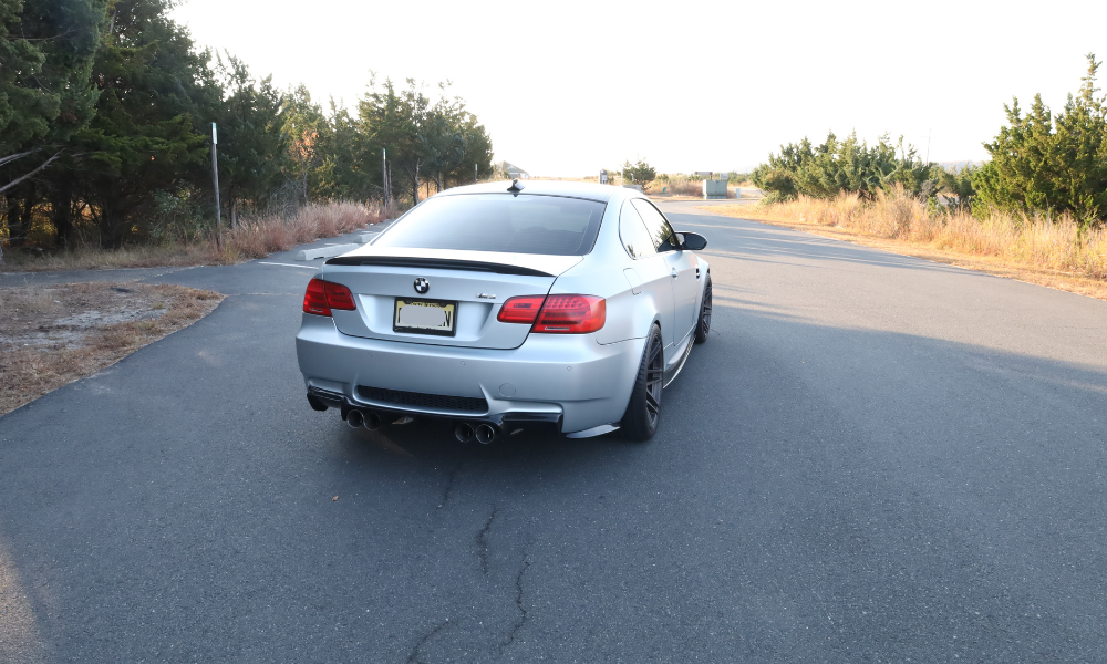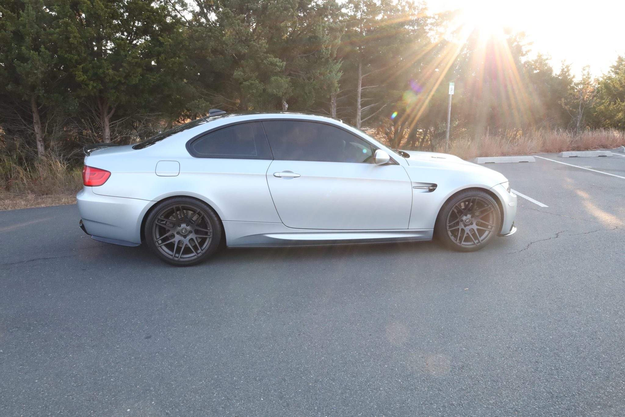 This 2012 BMW M3 coupe is one of 40 Competition Edition Frozen Silver examples produced for the North American market. It is finished in Frozen Silver Metallic over Black Novillo leather and is powered by a 4.0-liter V8 paired with a seven-speed dual-clutch transmission. Equipped from the factory with the Competition, Premium, and Cold Weather packages, the car has been modified with BPM engine management software, a Meisterschaft GTC valve-controlled exhaust system, Macht Schnell test pipes, Forgestar F14 wheels, and several aftermarket carbon-fiber exterior components. Acquired by the seller in 2015, this E92 M3 has 29k miles and is offered with an owner’s manual, two key fobs, service records, a typed list of modifications, a Carfax report, and a clean New Jersey title in the seller’s name. The car is finished in Frozen Silver Metallic (W07) and has a carbon-fiber roof panel, Shadowline trim, upgraded xenon headlights, retractable headlight washers, rain-sensing wipers, power-folding side mirrors, rear Park Distance Control, and quadruple exhaust outlets. Aftermarket modifications noted by the seller include a gloss black-finished carbon-fiber front lip, body-color reflectors, tinted windows, carbon-fiber side skirts, a carbon-fiber trunk lid spoiler, a carbon-fiber rear diffuser, and carbon-fiber rear bumper extensions. Xpel Stealth paint protection film is said to have been applied to the car with the exception of the roof, trunk lid, rear bumper cover, and side skirts. The Carfax report notes damage in a 2016 entry, which the seller notes is a result of the front bumper cover and left headlight lens being damaged by lawn equipment. Photos of the damage before repairs are provided at the end of the image gallery. The front bumper cover was then refinished and the left headlight lens was replaced. Forgestar F14 wheels measuring 19″ in diameter are mounted with 275/30 front and 295/30 rear Hankook Ventus V12 tires. Competition Package equipment includes a lowered ride height compared to the standard M3 as well as retuned Electronic Damping Control (EDC) and Dynamic Stability Control (DSC). Braking is handled by four-wheel vented and cross-drilled discs measuring 14.2″ and 13.8″ front and rear, respectively. The heated and power-adjustable front sport seats are upholstered in Black Novillo leather with contrasting stitching while carbon-fiber trim accents the dashboard, center console, and door panels. Amenities include driver seat position-memory settings, iDrive with navigation, Comfort Access keyless entry, a CD stereo, a power rear sunshade, dual-zone automatic climate control, and cruise control. The seller notes that a front and rearview dash cam and aftermarket aluminum pedals have been installed. The Alcantara-wrapped steering wheel has been fitted with aftermarket extended paddle shifters and frames an M-branded tachometer, a 200-mph speedometer, a central information display, and gauges for oil temperature and fuel level. The digital odometer indicates 29k miles, approximately 15k of which were added under current ownership. The 4.0-liter S65 V8 is equipped with BPM Stage 2 engine management software, per the seller. An oil change was performed in November 2023, and records for annual service performed under current ownership are shown in the gallery. Power is sent to the rear wheels through a seven-speed M-DCT dual-clutch transmission and a Variable M Differential Lock. The seller states that a Meisterschaft GTC valve-controlled exhaust system and Macht Schnell test pipes are installed. The Carfax report notes the aforementioned damage. The New Jersey title is listed as a replacement.