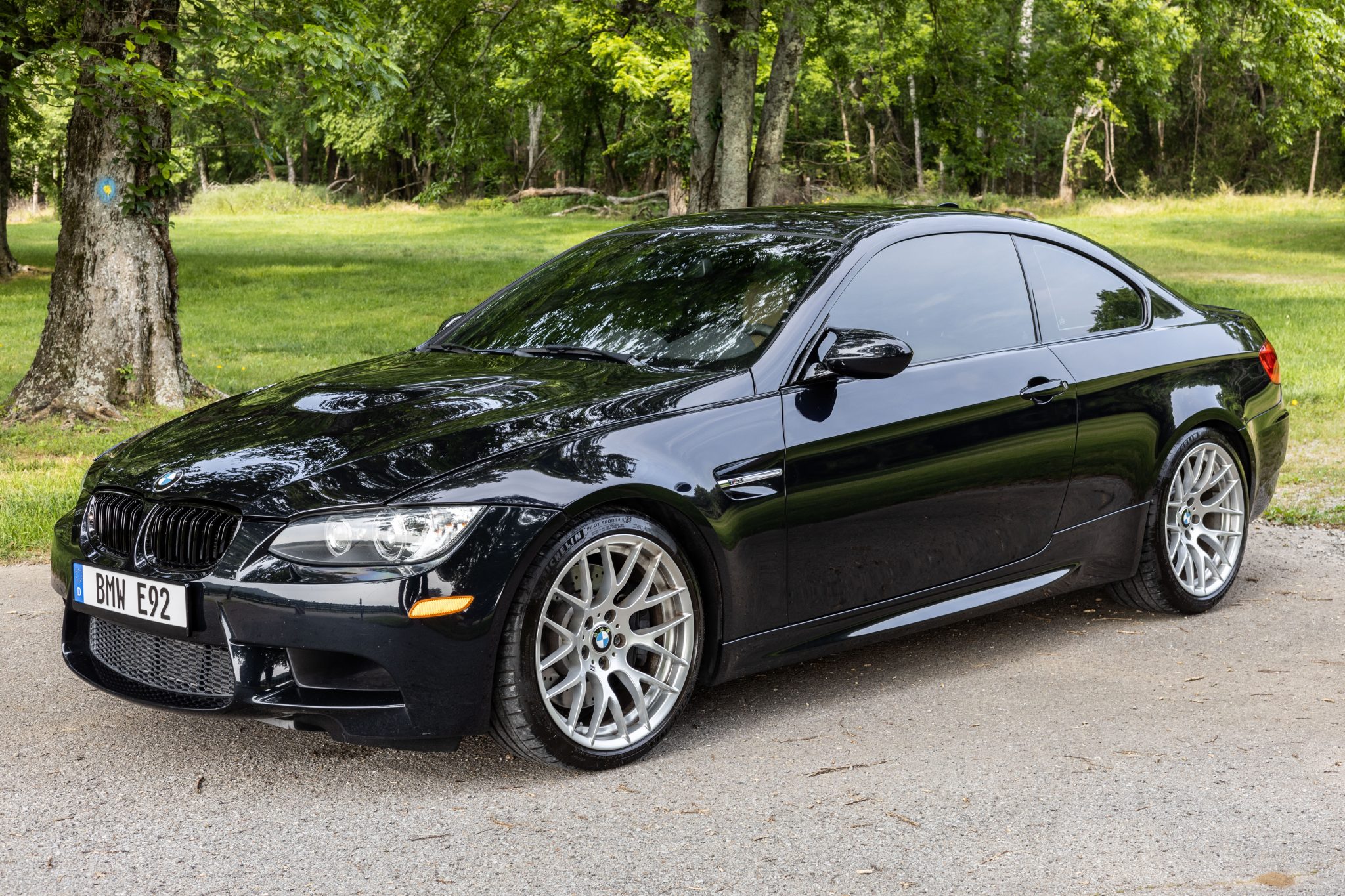 This 2012 BMW M3 coupe was sold on BaT in June 2023 before it was acquired by the selling dealer in 2024, and it now has 57k miles. The car was optioned with the Competition and Premium packages, and it is powered by a 4.0-liter V8 paired with a seven-speed dual-clutch transmission. Finished in Jerez Black Metallic over Bamboo Beige Novillo leather upholstery, the car is equipped with an aftermarket Corsa exhaust system, 19″ Style 359 wheels, a limited-slip differential, adaptive xenon headlights, a sunroof, rear parking sensors, heated power-adjustable front seats, driver-seat position memory settings, iDrive infotainment, navigation, dual-zone automatic climate control, and cruise control. This E92 M3 is now offered with manufacturer’s literature, a clean Carfax report, and a clean Pennsylvania title. The car is finished in Jerez Black Metallic and features Shadowline trim and adaptive xenon headlights as well as rain-sensing wipers, a glass sunroof, a trunk lid spoiler, rear parking sensors, tinted side and rear windows, and quadruple exhaust outlets. Paint chips are visible on the front bumper cover. The 19″ Style 359 wheels are mounted with 245/35 front and 265/35 rear Michelin Pilot Sport 4s tires. Competition Package equipment includes a lowered ride height compared to the standard M3 as well as retuned Electronic Damping Control (EDC) and Dynamic Stability Control (DSC). Braking is handled by four-wheel vented and cross-drilled discs measuring 14.2″ and 13.8″ front and rear, respectively. The brake and power steering fluids were flushed in July 2023. The heated power-adjustable front sport seats are upholstered in Bamboo Beige Novillo leather, and Carbon Structure Leather trim accents the dashboard and doors. M3-branded floor mats line the footwells, and interior amenities include a CD stereo, iDrive infotainment, navigation, a power rear sunshade, driver-seat position memory settings, dual-zone automatic climate control, and cruise control. There is a scratch on the right door pull. The multi-function leather-wrapped steering wheel features paddle shifters in addition to tri-color stitching and frames an M-branded tachometer, a 200-mph speedometer, a central information display, and gauges for oil temperature and fuel level. The digital odometer indicates 57k miles. The 4.0-liter S65 V8 features double-VANOS variable valve timing and was factory rated at 414 horsepower and 295 lb-ft of torque. A throttle body actuator on the left bank is said to have been replaced in 2016, and service in July 2023 included replacing the cabin air filter and spark plugs. Power is sent to the rear wheels through a seven-speed M-DCT dual-clutch transmission and a Variable M Differential Lock. The differential fluid was changed in July 2023. A Corsa exhaust system was fitted under previous ownership, and additional photos of the underside are presented in the gallery below. The Carfax report is free of accidents or other reported damage.