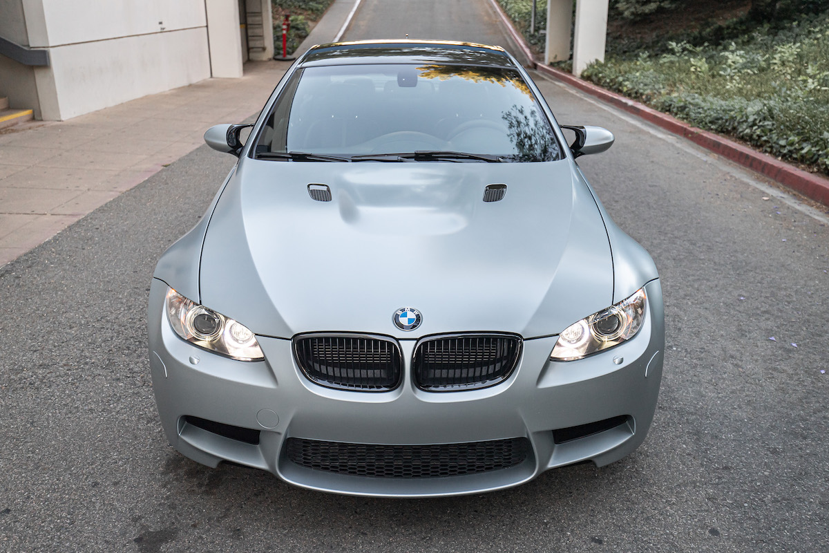 This 2012 BMW M3 coupe is one of 40 Frozen Silver Edition examples produced for the North American market, and it was purchased new by the seller from Steve Thomas BMW in Southern California. The car is finished in matte Frozen Silver Metallic over black Novillo leather, equipped with the Competition package, and powered by a 4.0-liter V8 paired with a seven-speed dual-clutch transmission and a limited-slip differential. Additional features include a carbon-fiber roof panel dynamic dampers, 19″ wheels, heated front seats, Bluetooth connectivity, navigation, a BMW Performance rear spoiler, and the Cold Weather and Premium packages. This E92 M3 now has 36k miles and is offered at no reserve with its window sticker, factory literature, a clean Carfax report, and a clean California title in the seller’s name. The exterior is finished in special-order Frozen Silver Metallic, and Sonderlackierung (special paint) stickers affixed to the car indicate a W07/7 paint code. Features include a carbon-fiber roof panel, Shadowline trim, black kidney grilles, quad exhaust outlets, and a BMW Performance carbon-fiber rear spoiler. LED “halo” lights were added, and the seller notes some imperfections in the paintwork on the nose as well as holes in the underside of the front lip from a previously mounted front apron. The paintwork and exterior trim are shown in detail in the photo gallery below, Black-finished 19″ Y-spoke alloy wheels were included in the Competition Package, which also added Dynamic Damper Control. The wheels are mounted with Michelin Pilot Sport 4S tires, and slotted rotors with black-finished brake calipers are equipped at each corner. The interior features seats trimmed in black extended Novillo leather, and features include the Premium package, which added power-adjustable front seats, blue-gray brushed aluminum trim, a powered rear sunshade, rear parking sensors, a rear-view mirror compass, keyless entry, and more. Additional amenities include heated front seats, navigation, Bluetooth connectivity, and automatic climate control. An aftermarket engine start button has been fitted. A multi-function steering wheel sits ahead of M-branded instrumentation that includes a 200-mph speedometer and a 9k-rpm tachometer, along with integrated auxiliary gauges. The digital odometer shows just under 36k miles. The naturally aspirated 4.0-liter V8 was rated for 414 horsepower with 295 lb-ft of torque when new, which is delivered to the rear wheels through a seven-speed M-DCT dual-clutch transmission with a limited-slip differential. The window sticker lists initial delivery to Steve Thomas BMW, $20,285 in optional equipment, and a total suggested retail price of $82,360. The July 2020 Carfax report shows no accidents or other damage and lists history in California from a single registered owner.