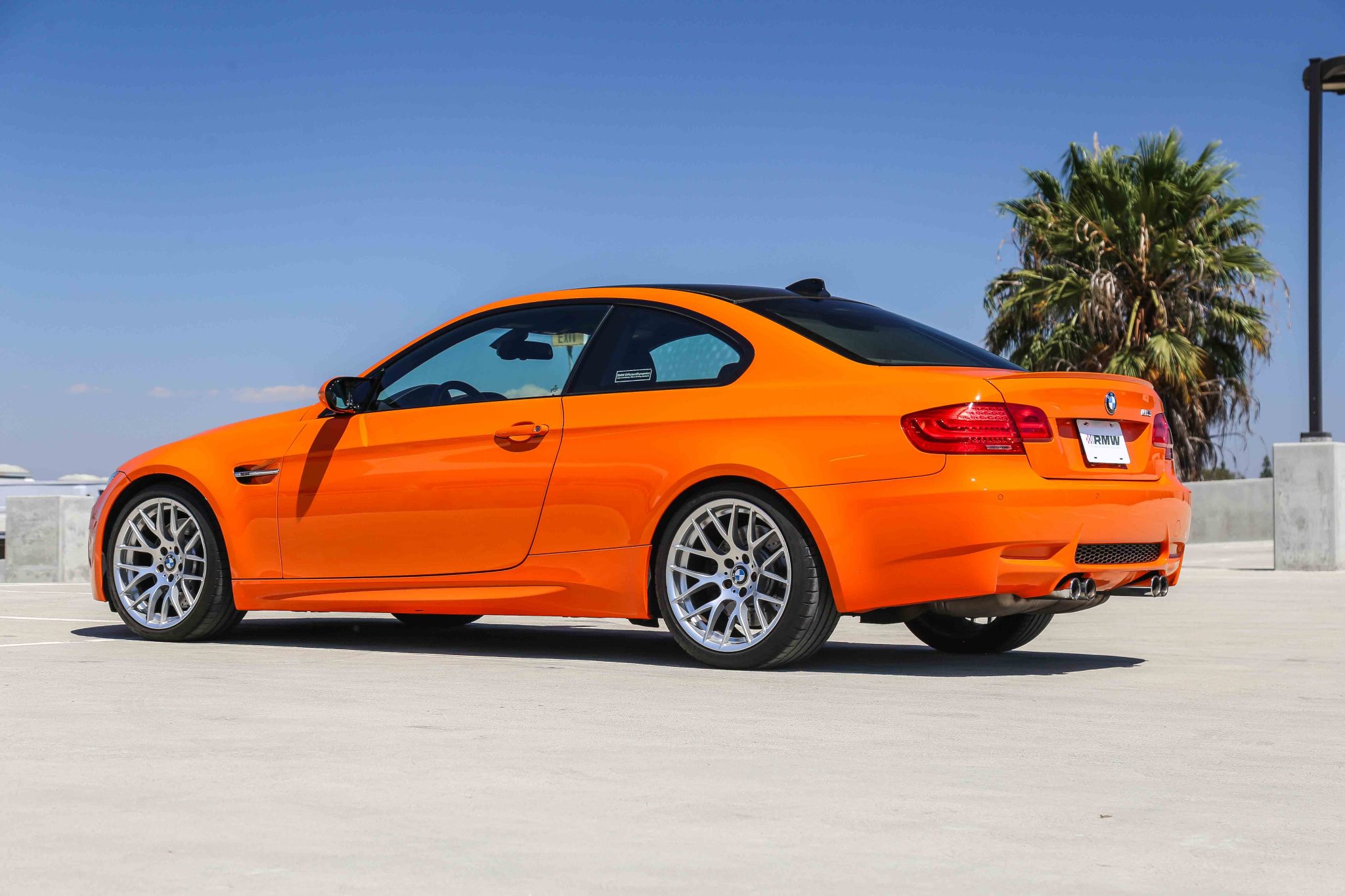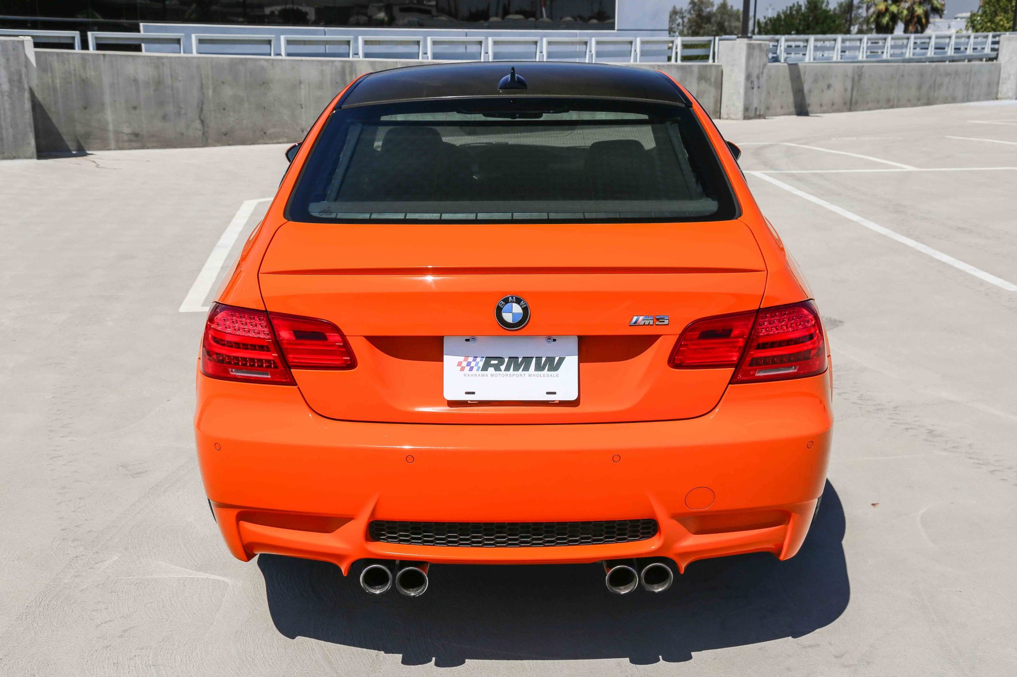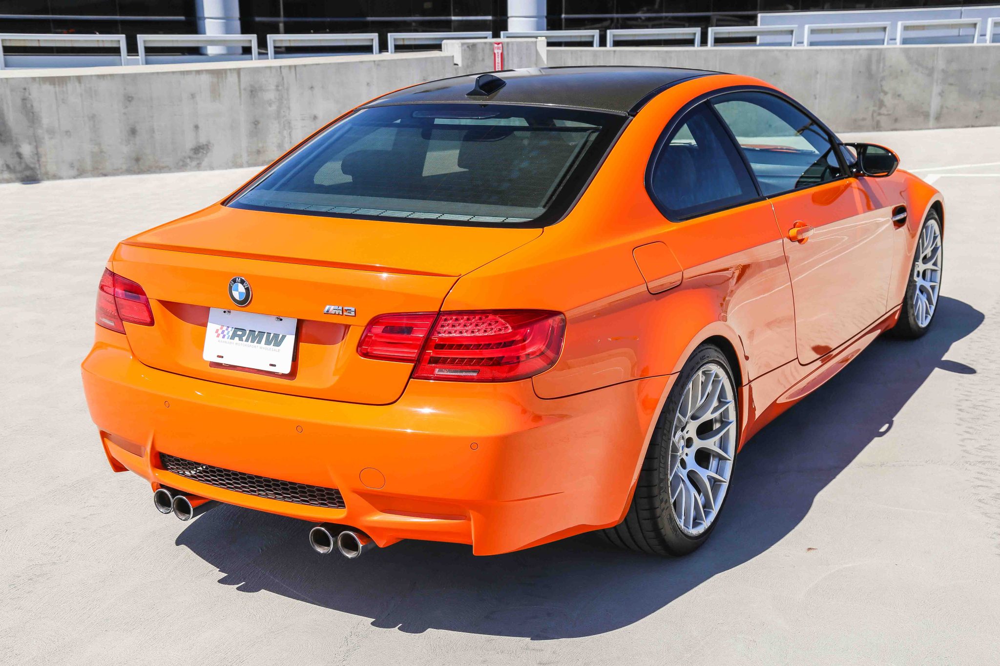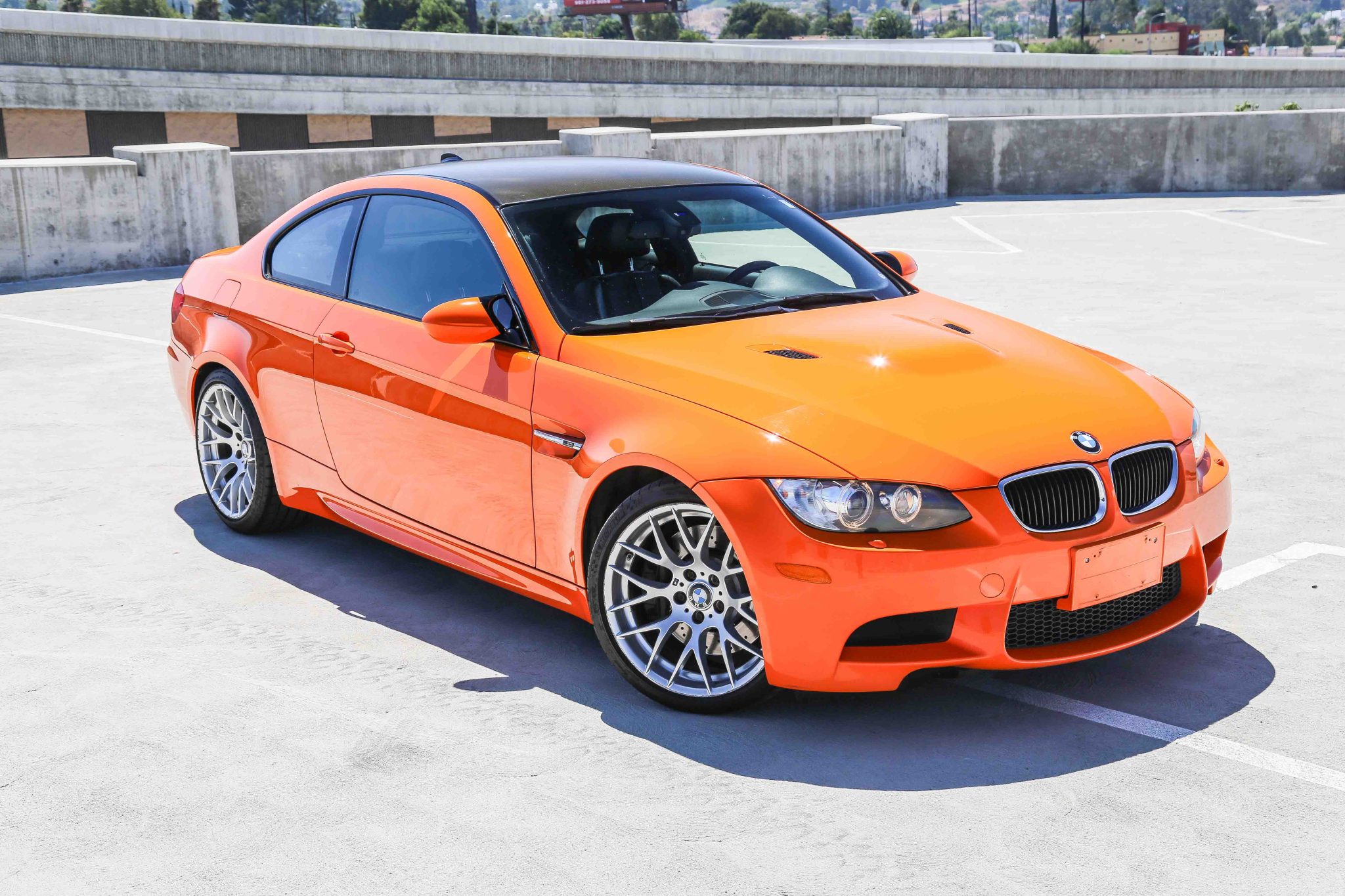 This 2012 BMW M3 coupe has remained registered in California and was optioned from the factory with the Competition, Cold Weather, Premium, and Technology packages as well as a BMW Individual Fire Orange exterior finish. Powered by a 4.0-liter V8 paired with a seven-speed dual-clutch transmission, the car has black Novillo leather upholstery, 19″ Style 359 wheels, a limited-slip differential, adaptive xenon headlights with washers, a carbon-fiber roof panel, rear parking sensors, heated power-adjustable front seats, iDrive with navigation, dual-zone automatic climate control, and cruise control. Acquired by the selling dealer in 2023, this E92 M3 has 105k miles and is now offered at no reserve with a clean Carfax report and a California title. The car is finished in BMW Individual Fire Orange and has Shadowline trim and adaptive xenon headlights with washers as well as rain-sensing wipers, a carbon-fiber roof panel, a trunk lid spoiler, rear parking sensors, and quadruple exhaust outlets. Paint protection film has been applied to the front end and door edges, the front end has paint chips, and the roof panel finish is said to have been touched up. The 19″ Style 359 wheels are mounted with Michelin tires. Competition Package equipment includes a lowered ride height compared to the standard M3 as well as retuned Electronic Damping Control (EDC) and Dynamic Stability Control (DSC). Braking is handled by four-wheel vented and cross-drilled discs measuring 14.2″ and 13.8″ front and rear, respectively. Curb damage is located on the wheels. The heated power-adjustable front sport seats are upholstered in black Novillo leather, and Carbon Structure Leather trim accents the dashboard and doors. Carpeted floor mats line the footwells, and additional appointments include a CD stereo, iDrive with navigation, dual-zone automatic climate control, and cruise control. The front seats are worn, the power rear sunshade does not work, and imperfections are present on the center console, dashboard, and headliner. The multi-function leather-wrapped steering wheel features paddle shifters along with tri-color stitching and frames an M-branded tachometer, a 200-mph speedometer, a central information display, and gauges for oil temperature and fuel level. The digital odometer indicates 105k miles, approximately 1k of which were added under current ownership. The 4.0-liter S65 V8 features double-VANOS variable valve timing and was factory rated at 414 horsepower and 295 lb-ft of torque. The car passed an emissions inspection in November 2021, and an oil change was performed in 2023. Power is sent to the rear wheels through a seven-speed M-DCT dual-clutch transmission and a Variable M Differential Lock. The Carfax report is free of accidents or other reported damage. The California title carries a “Transfer Only” notation.