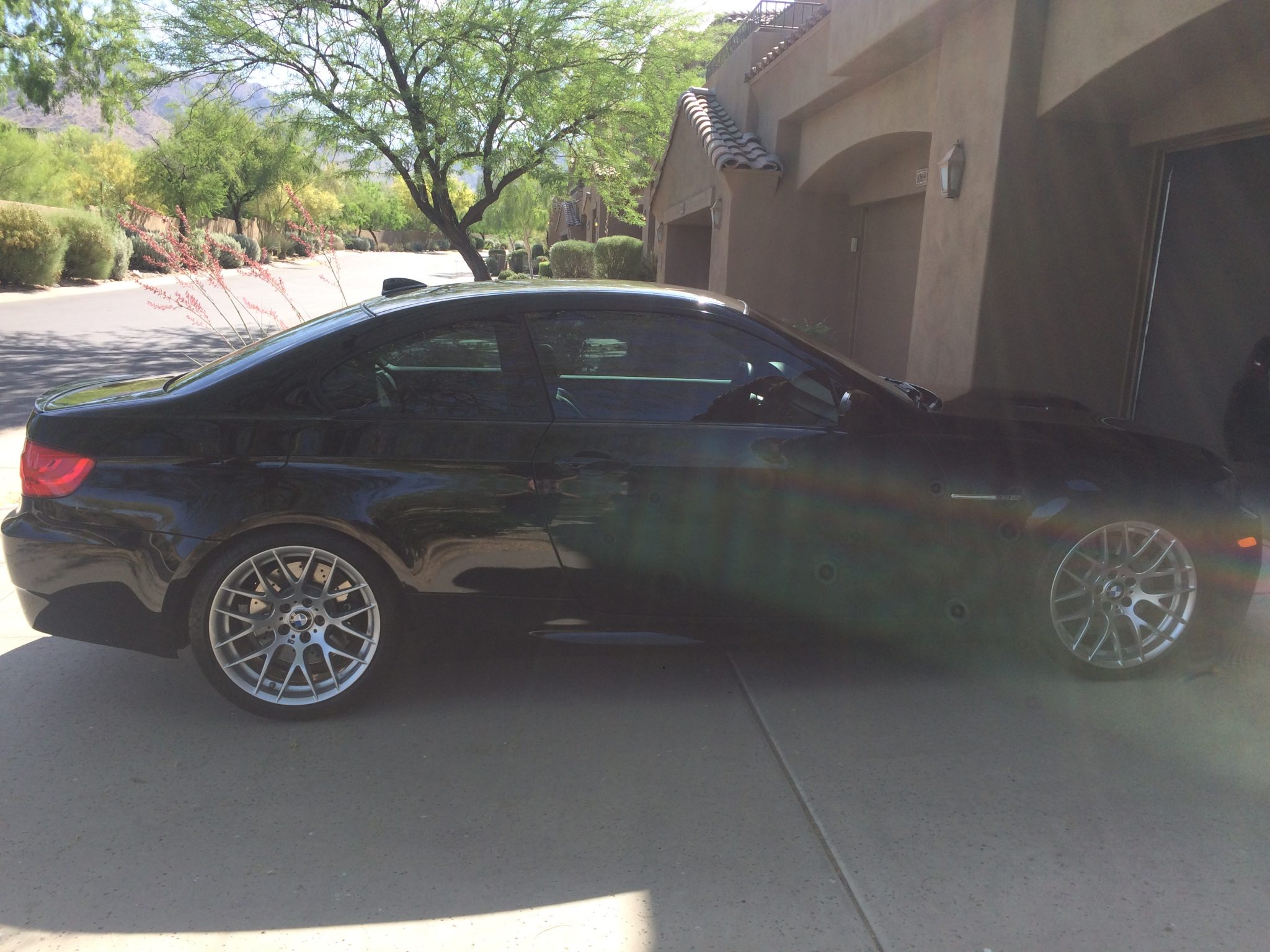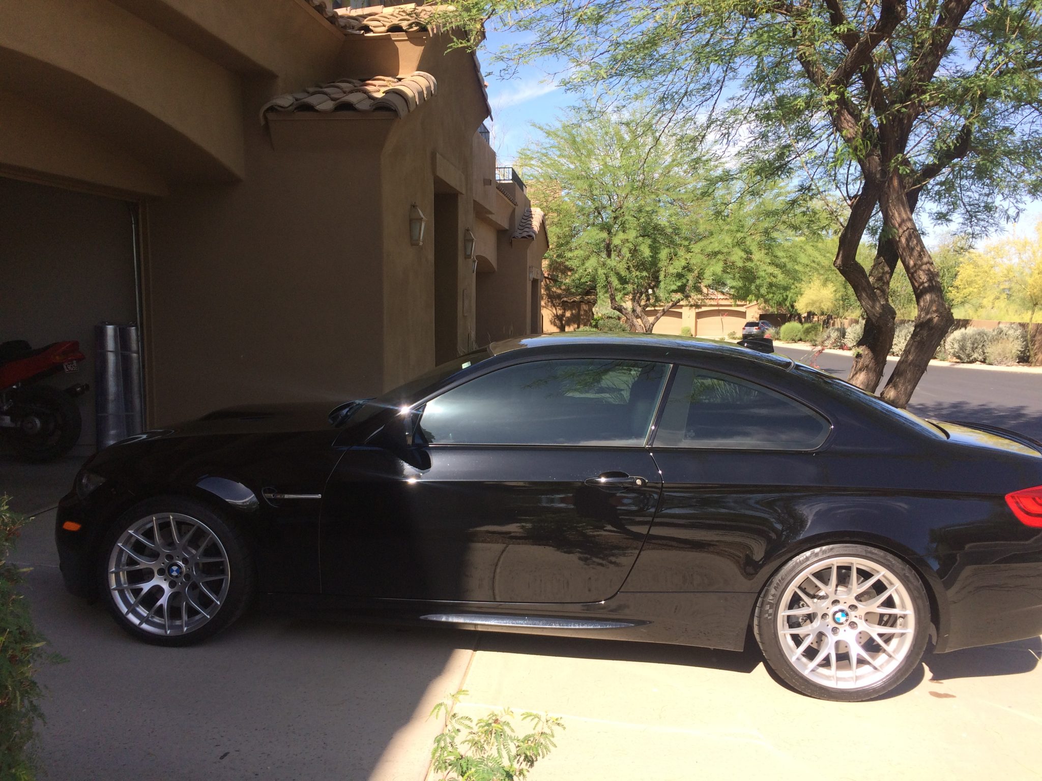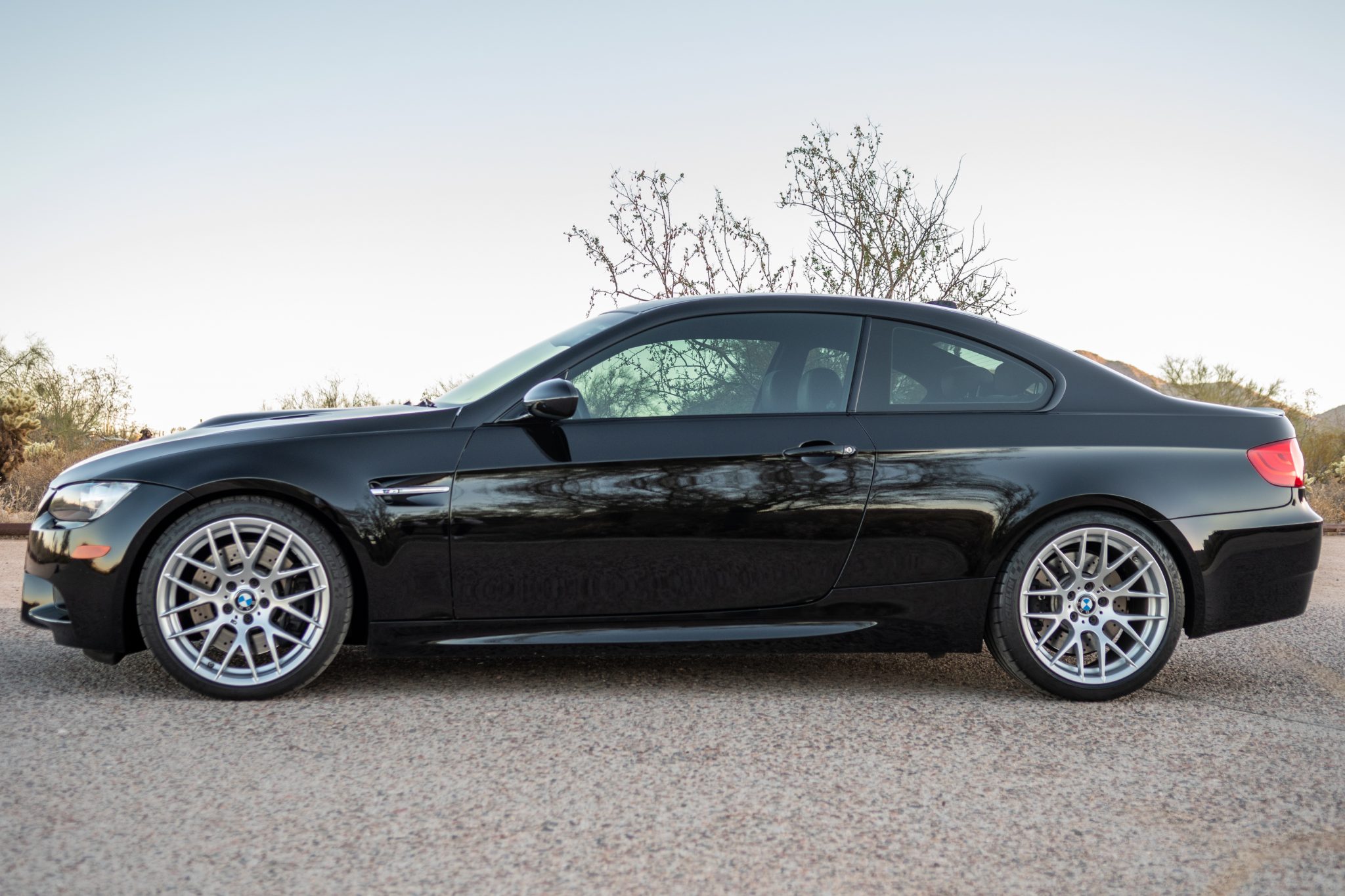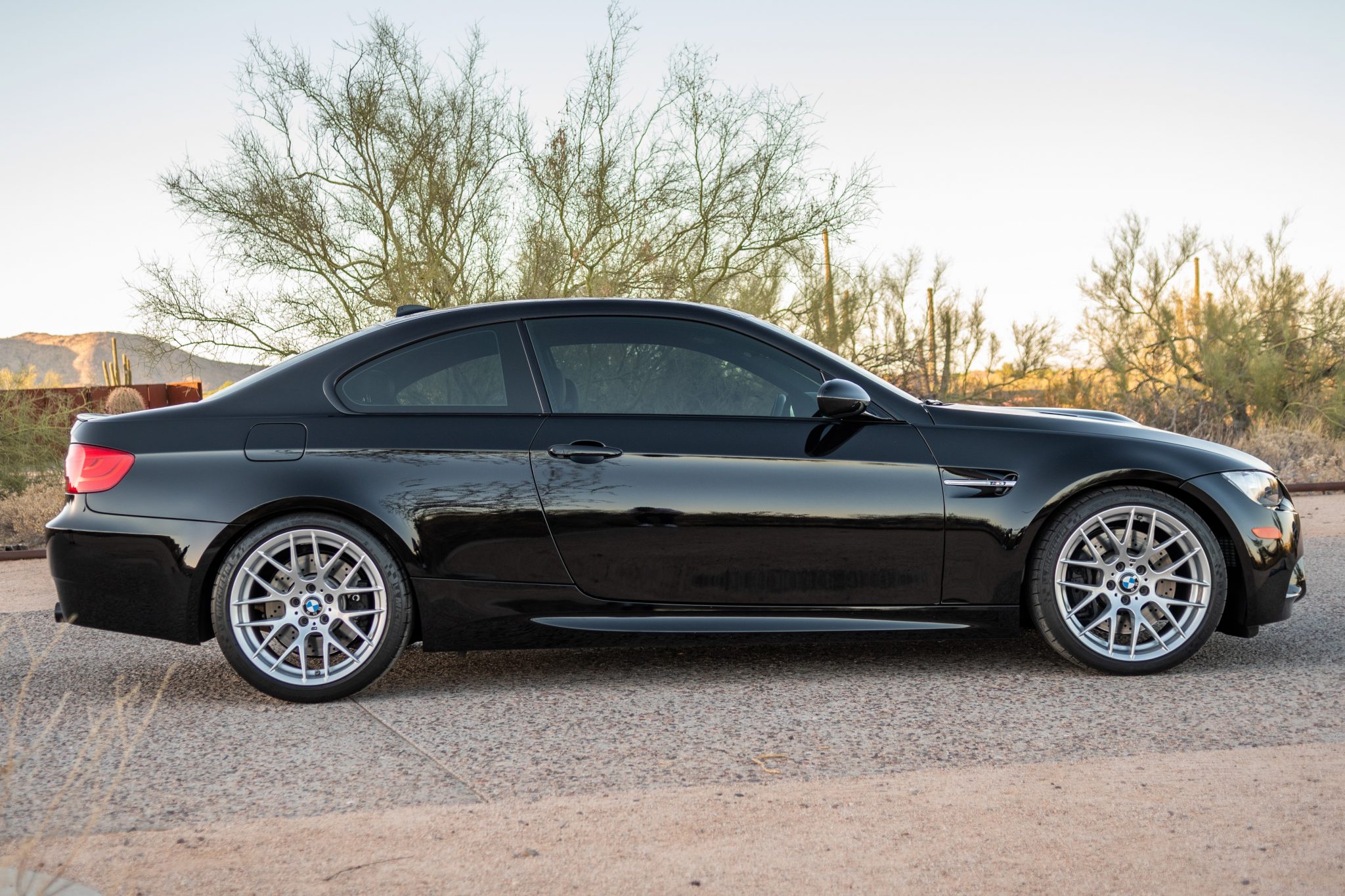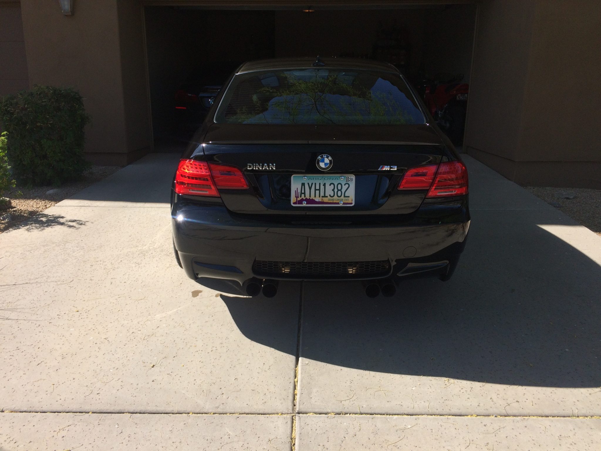 This 2012 BMW M3 coupe was purchased new by the seller from BMW North Scottsdale of Phoenix, Arizona, and is powered by a 4.0-liter S65 V8 backed by a six-speed manual transmission. The car is finished in black over black leather and has been fitted with the Dinan S2 package, which consists of a Dinan ECU tune, intake system, exhaust, limited-slip differential, and suspension components. Additional equipment includes the factory Competition Package, dynamic damper control, adaptive xenon headlights, carbon leather trim, and BMW Hi-Fi Professional audio system. This E92 M3 has 11k miles and is offered with service records, manufacturer’s literature, a window sticker, a clean Carfax report, and a clean Arizona title in the seller’s name. The car is finished in Jet Black (668) and features a carbon-fiber roof panel, Shadowline trim, front and rear spoilers, quad exhaust tips, and xenon adaptive headlights. Dinan trunk badging requires owners to accrue a minimum of 10 points, and this M3 has earned a total of 21 points based on the installed modifications. The finish and trim are pictured up close in the gallery below. Staggered-width 19″ Style 359 wheels are mounted with 245/35 front and 265/35 rear Michelin Pilot Super Sport tires. The Competition Package includes a reprogrammed Dynamic Damping Control unit and a lowered ride height. Modifications include adjustable sway bars, strut tower braces, and Dinan springs which lower the ride height and additional 12mm. The cabin features Black Novillo leather upholstery with a matching dashboard, door panels, and carpeting. Amenities include Dinan pedal covers, carbon-look leather trim, an anthracite headliner, rain sensing wipers, M-Drive, and a BMW Hi-Fi Professional audio system with a CD player and USB media adapter. The leather-wrapped steering wheel features tri-color stitching and frames a 200-mph speedometer, a tachometer with a variable redline, and gauges for fuel level and oil temperature. Approximately 11k miles are shown on the digital odometer. The 4.0-liter S65 V8 features double-VANOS variable valve timing and was modified in February 2014 with the Dinan S2 package, which includes high-flow throttle bodies, a cold-air intake system, and an under-drive pulley kit. The engine management has been modified to increase the rev limit to 8700rpm and remove the top speed limiter. Power is sent to the rear wheels via a six-speed manual transmission and a Dinan 4.10:1 limited-slip differential. A Dinan Performance exhaust system accompanies the S2 package. Factory literature is housed in a black leather-bound portfolio. The window sticker, service records, two keys, and removed factory parts are also included in the sale. The Carfax report lists no accidents or other damage and shows registration history in Arizona.