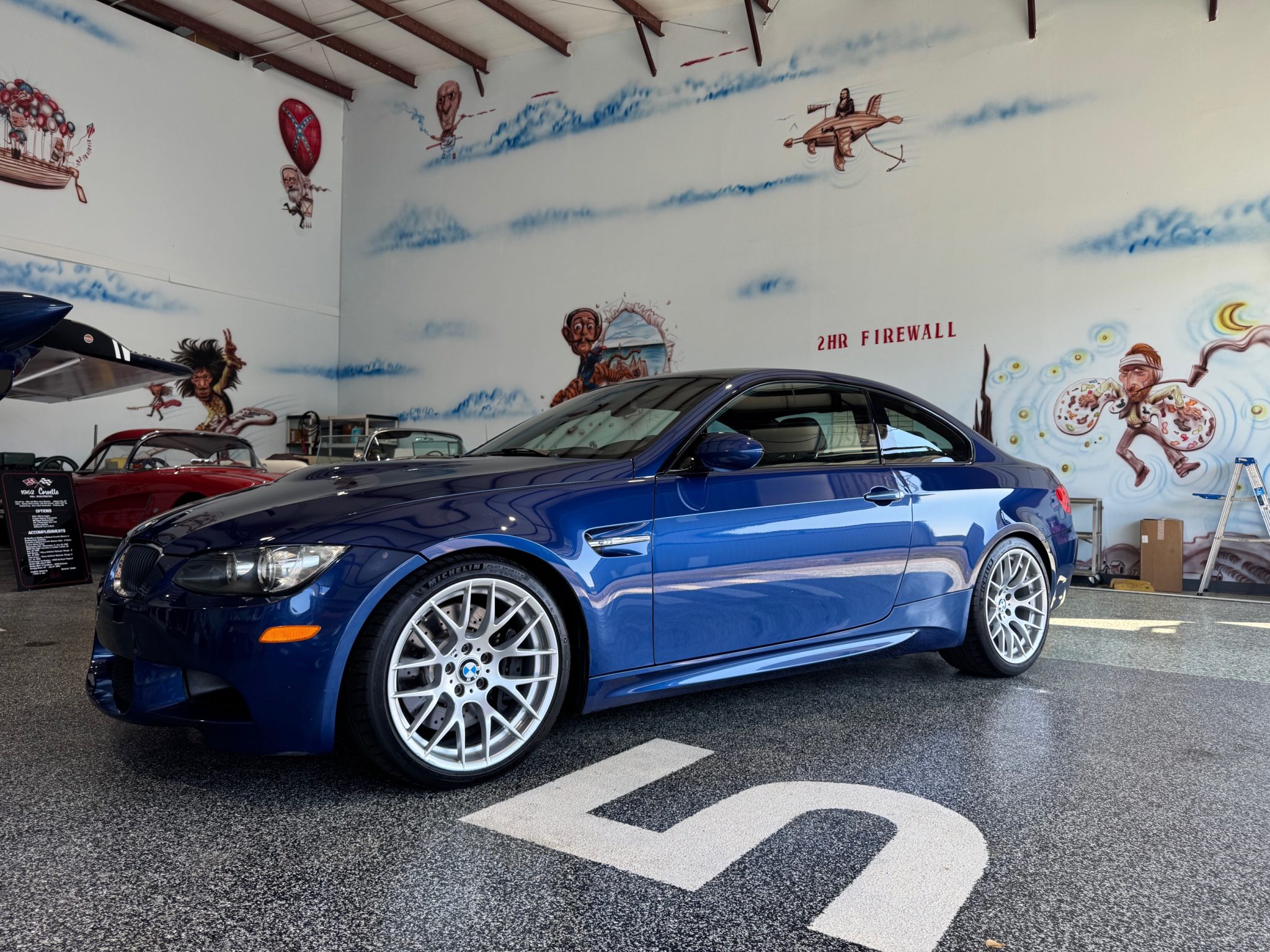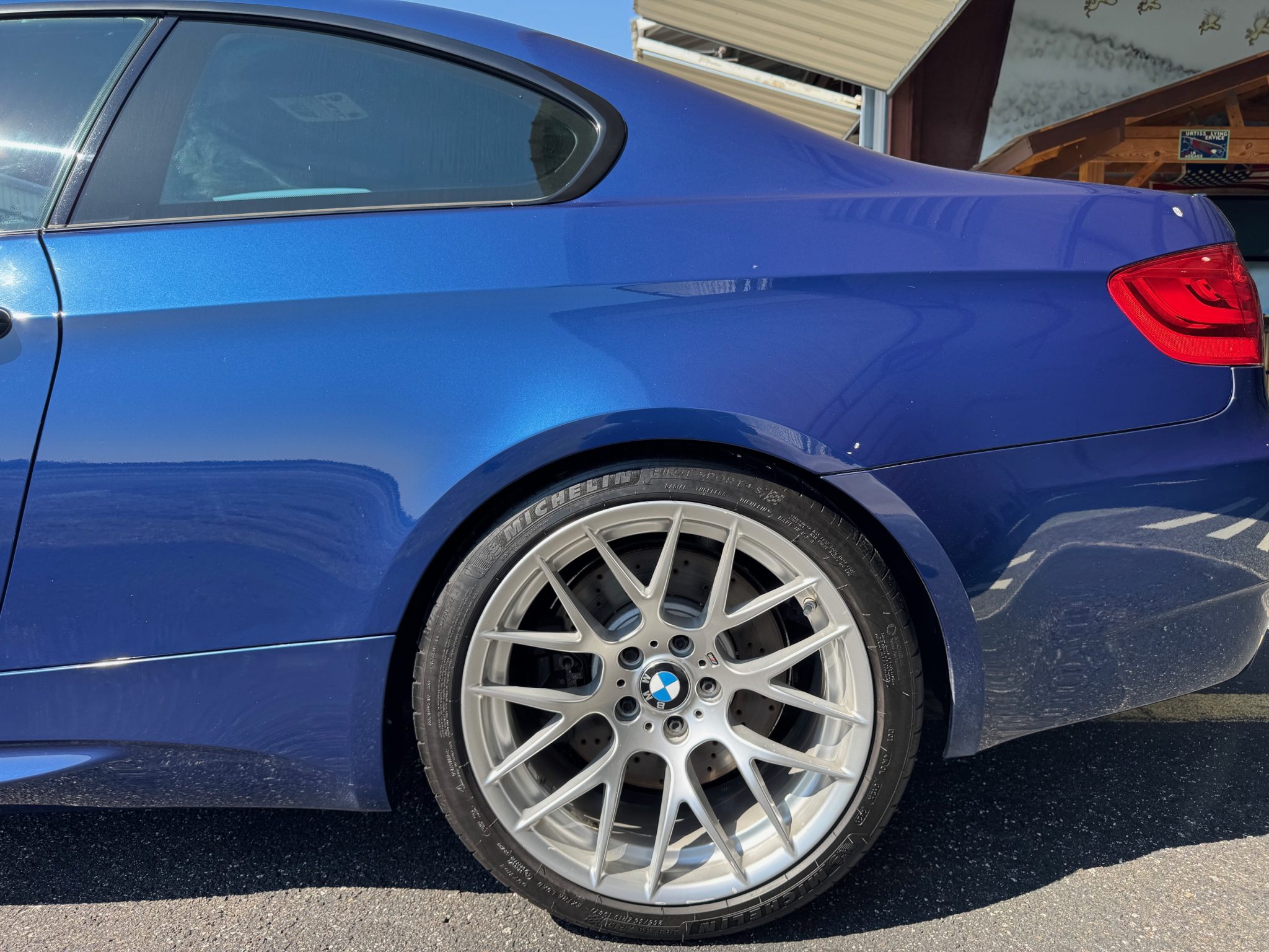 This 2012 BMW M3 coupe is said to have been initially delivered in Munich, Germany, via BMW’s European delivery program, and it has been registered in Florida from new. It was purchased by the seller from the original owner in August 2012, and 86k of the 92k miles have been added since that time. Specified in Le Mans Blue Metallic over Fox Red and black Novillo leather, the car was optioned with the Competition Package, which added a lowered suspension, Dynamic Damper Control, revised driver’s aids, and 19″ Style 359M alloy wheels. Power is from a 4.0-liter V8 paired with a seven-speed dual-clutch transmission, and additional equipment includes the Premium Package, a limited-slip differential, adaptive xenon headlights, a carbon-fiber roof panel, rear Park Distance Control, power-adjustable front sport seats, navigation, Comfort Access, dual-zone automatic climate control, and cruise control. This E92 M3 is now offered with the owner’s manual, service records, a clean Carfax report, and a clean Florida title in the name of the seller’s business. The car is finished in Le Mans Blue Metallic (381) and features Shadowline trim and adaptive xenon headlights as well as rain-sensing wipers, power-folding side mirrors, a trunk lid spoiler, rear Park Distance Control, and quadruple exhaust outlets. The carbon-fiber roof panel has been refinished. Photos included in the gallery detail various imperfections on the body as well as scratches below the front bumper cover. The 19″ Style 359 wheels are mounted with Michelin Pilot Sport 4S tires. Competition Package equipment includes a lowered ride height compared to the standard M3 as well as retuned Electronic Damping Control (EDC) and Dynamic Stability Control (DSC). Braking is handled by four-wheel vented and cross-drilled discs measuring 14.2″ and 13.8″ front and rear, respectively. The brake fluid was flushed in November 2024. The power-adjustable front sport seats are upholstered in Fox Red and black Novillo leather, and Carbon Structure Leather trim accents the dashboard and doors. Amenities include driver seat position-memory settings, iDrive with navigation, Comfort Access, a CD stereo, a power rear sunshade, dual-zone automatic climate control, and cruise control. Wear is evident on the interior surfaces. The multi-function leather-wrapped steering wheel features paddle shifters along with tri-color stitching and frames an M-branded tachometer, a 200-mph speedometer, a central information display, and gauges for oil temperature and fuel level. The digital odometer indicates 92k miles, approximately 86k of which were added under current ownership. The odometer was repaired in December 2022. The 4.0-liter S65 V8 features double-VANOS variable valve timing and was factory rated at 414 horsepower and 295 lb-ft of torque. The throttle control actuator was replaced in December 2022, and the valve covers, valve cover gaskets, and spark plug tubes were replaced in April 2024. The battery was replaced in January 2025. Power is sent to the rear wheels through a seven-speed M-DCT dual-clutch transmission and a Variable M Differential Lock. The Carfax report is free from accidents or other reported damage.
