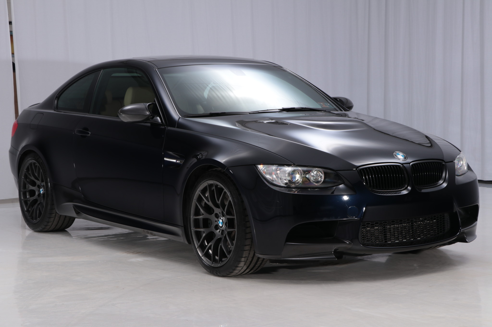 This 2012 BMW M3 coupe shows 22k miles and was recently acquired by the selling dealer from its original owner. Power is provided by a 4.0-liter S65 V8 backed by a 7-speed paddle-shifted DCT gearbox, and features include a carbon fiber rear spoiler and mirror covers, 19″ wheels, variable locking differential, and M-specific trim. An oil change and Pennsylvania state inspection are reported to have been performed in preparation for sale. This E92 M3 is offered with factory books and manuals, a window sticker, two keys, a Carfax report, and a clean Pennsylvania title. Cosmetics unique to the E92 M3 included a power-bulge hood, rocker extensions, restyled valances, rear diffuser, and quad-tip exhaust system. This example is finished in Jerez Black Metallic accented with carbon fiber mirror covers, and the Carfax report shows no history of accidents or other damage. The Competition Package provides dynamic damper control and 19″ Style 359 wheels, which currently wear Michelin Pilot Sport tires displaying 2012 and 2014 date codes. The interior is trimmed in Bamboo Novillo leather with black carpeting and dash trim. Factory options include the Premium Package, which features power folding automatic mirrors, keyless entry, a powered rear sunshade, Park Distance Control, navigation, and more. This example also features heated seats and electronically-adjustable dampers controlled via a button on the center console. The digital odometer displays approximately 22k miles. The 4.0-liter S65 V8 is mated to a 7-speed M-DCT gearbox and sends power to the rear wheels through a variable locking differential. Factory output was rated at 414 horsepower and 295 lb-ft of torque when new, enough to propel the car from 0-60 mph in less than five seconds. Additional photos of the underside are included in the gallery below. An oil change and Pennsylvania state inspection have reportedly been carried out by the selling dealer. The window sticker shows standard and optional features, engine specifications, and an MSRP of $75,625. The Carfax report indicates no history of accidents or other damage and verifies a single-owner history prior to the selling dealer. An open recall is noted for the driver’s side airbag, which the seller states will be replaced prior to the auction’s end.