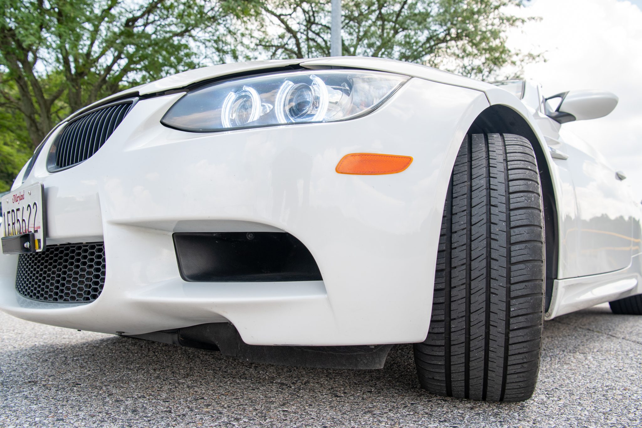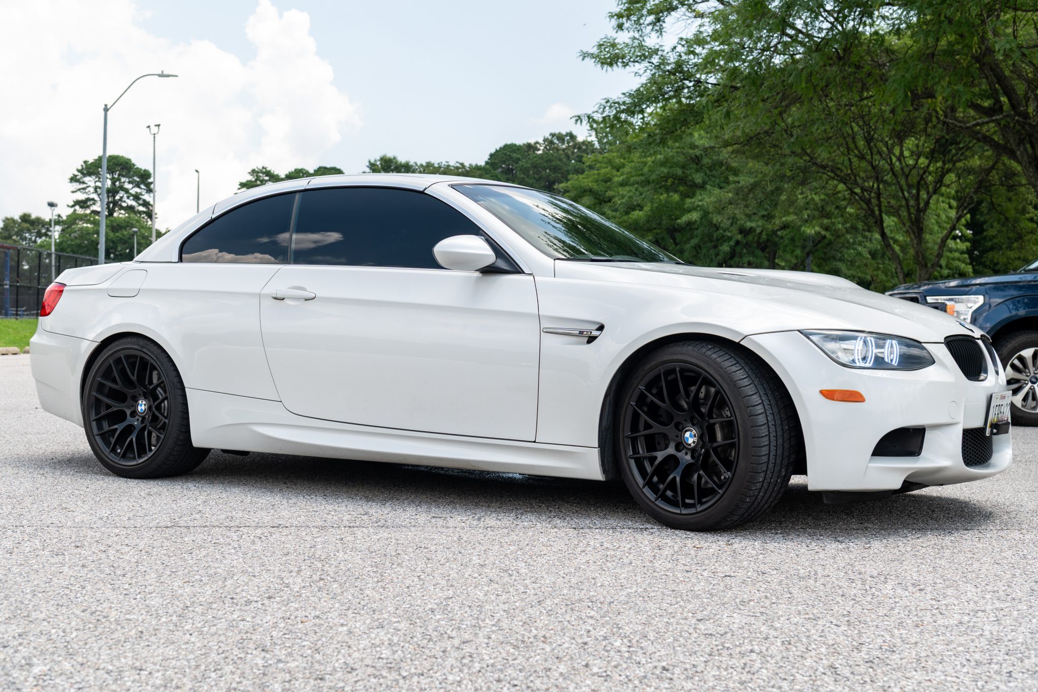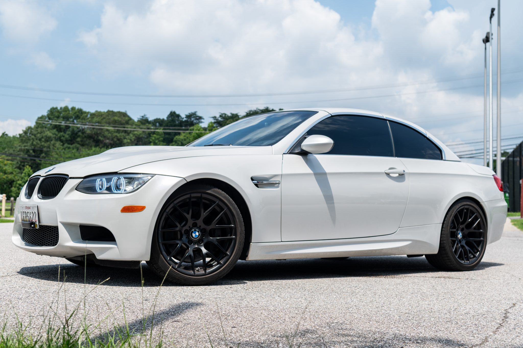 This 2012 BMW M3 convertible is finished in Mineral White Metallic over Fox Red Novillo leather and is powered by a 4.0-liter S65 V8 paired with a seven-speed dual-clutch transmission. A Supersprint exhaust system and 19″ Style 359 wheels were added by a previous owner,and since the seller acquired the car on BaT in July 2024, halo-style lights were added and the valve cover gaskets were replaced. The car also has the Premium Package, a limited-slip differential, adaptive xenon headlights, a retractable hardtop, rear parking sensors, dual-zone automatic climate control, and iDrive with navigation. Driven 12k miles of its 79k miles by the seller, this E93 M3 is now offered with service records and a Maryland title. The car is finished in Mineral White Metallic and features a retractable hardtop, adaptive xenon headlights, rain-sensing wipers, rear parking sensors, and quadruple exhaust outlets. The Carfax report notes that the vehicle was involved in a rear-end collision with another motor vehicle in March 2014, although it states that the “vehicle was not damaged.” The front bumper cover was repainted thereafter. A ceramic coating was applied in November 2022, the front roof seals were replaced in May 2023, and the headlight seals were replaced in September 2023. The seller added halo-style headlights. Noted imperfections include a paint chip on the right portion of the front bumper that was touched up in addition to a ding on the trunk lid and a defect near the right door handle. Satin-black 19″ Style 359 wheels were refinished in March 2024 and are mounted with Michelin Pilot Sport A/S 3+ tires measuring 255/35 up front and 285/30 out back. The car features Dynamic Stability Control (DSC). Braking is handled by four-wheel vented and cross-drilled discs measuring 14.2″ and 13.8″ front and rear, respectively. The power-adjustable front sport seats are upholstered in Fox Red Novillo leather, and Carbon Structure Leather trim accents the dashboard and doors. Amenities include iDrive with navigation as well as Comfort Access keyless entry, a CD stereo, and dual-zone automatic climate control. The air-conditioning system was recharged in August 2023 and the front seatbelts were replaced in December 2023. The seller notes wear on the driver’s seat. The multi-function leather-wrapped steering wheel features paddle shifters along with tri-color stitching and frames an M-branded tachometer, a 200-mph speedometer, a central information display, and gauges for oil temperature and fuel level. The digital odometer indicates 79k miles, approximately 12k of which were added under current ownership. The 4.0-liter S65 V8 features double-VANOS variable valve timing and was factory rated at 414 horsepower and 295 lb-ft of torque. Two oxygen sensors were replaced in July 2022, and the valve cover gaskets were replaced in June 2025. Power is sent to the rear wheels through a seven-speed M-DCT dual-clutch transmission and a Variable M Differential Lock. A Supersprint exhaust system is installed, and the underbody covers were replaced in April 2024. The Carfax report shows the aforementioned damage report and contains an inspection report. There is a lien on the car, and the seller’s lender will need to be paid before the title can be transferred.