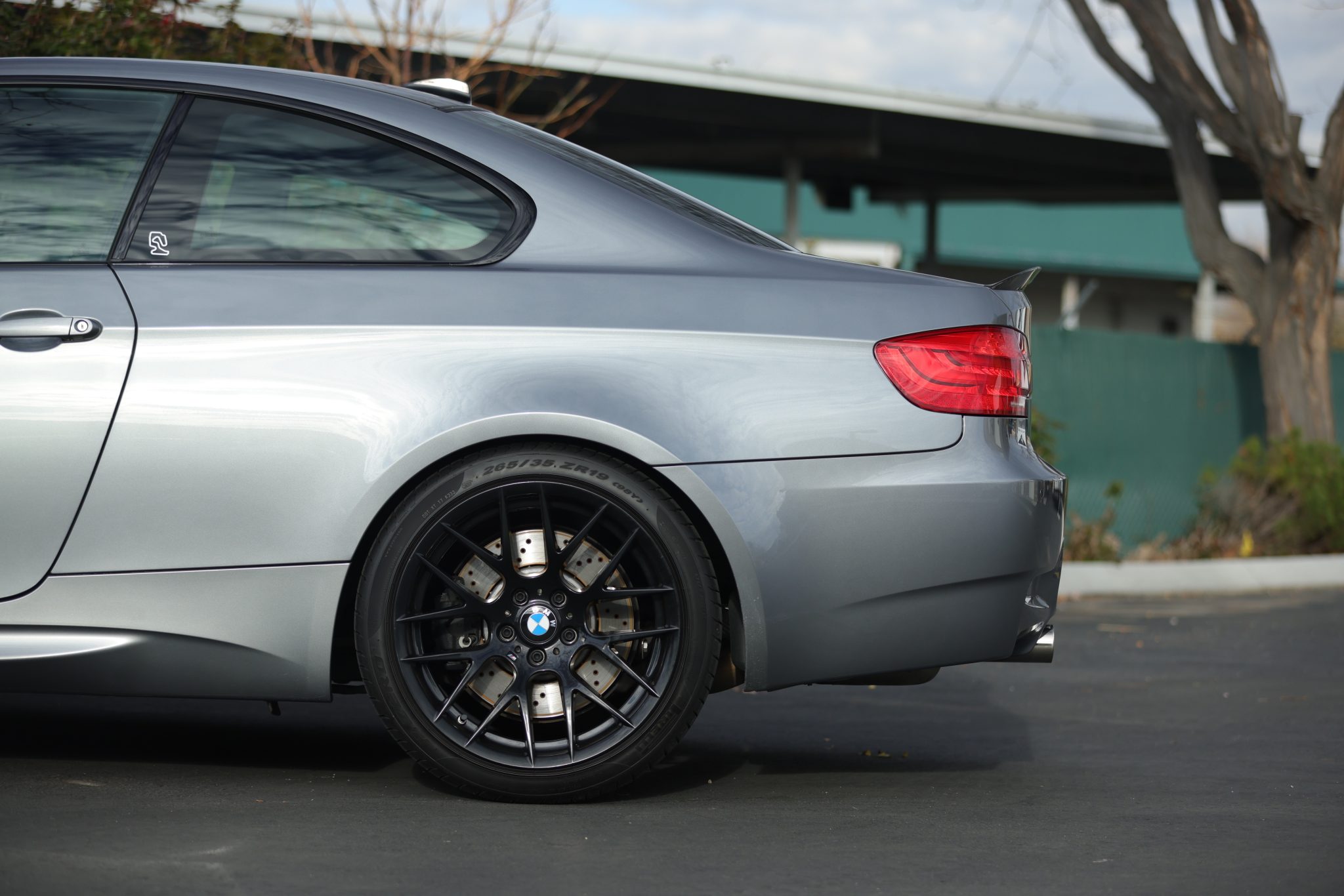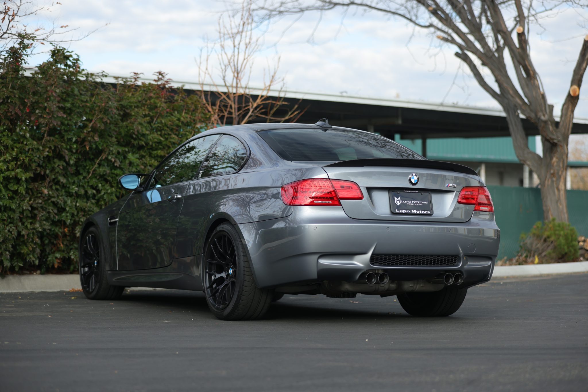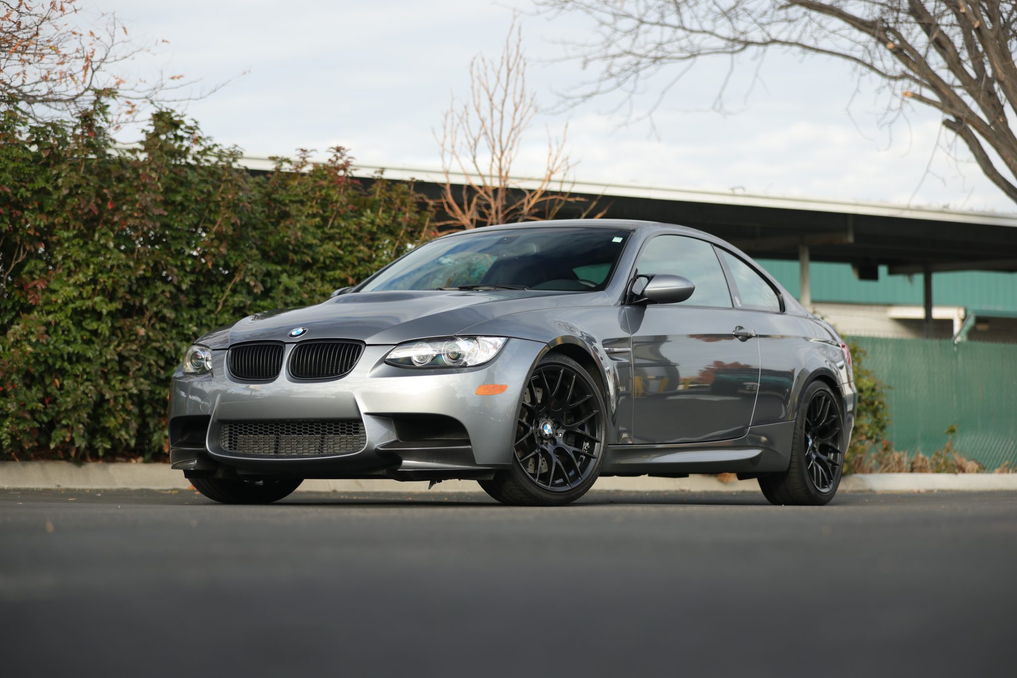 This 2013 BMW M3 coupe is finished in Space Gray Metallic over Anthracite Speed Cloth and black Novillo leather and is powered by a 4.0-liter S65 V8 paired with a seven-speed dual-clutch transmission. The car has spent time in Oregon and Idaho and now has under 23k miles. Equipment includes the Competition Package, an M Performance exhaust system, 19″ Style 359 wheels, a limited-slip differential, a carbon-fiber roof panel, rear parking sensors, heated front sport seats, dual-zone automatic climate control, and iDrive with navigation. Recently purchased by the selling dealer, this E92 M3 is now offered with a window sticker, a clean Carfax report, and a clean Idaho title. The car is finished in Space Gray Metallic and features a carbon-fiber roof panel, rear spoiler, and front splitters as well as Shadowline trim, black kidney grilles, adaptive xenon headlights, rain-sensing wipers, rear parking sensors, and quadruple exhaust outlets. Black 19″ Style 359 wheels are mounted with Pirelli P Zero tires measuring 245/35 up front and 265/35 out back. Competition Package equipment includes a lowered ride height compared to the standard M3 as well as retuned Electronic Damping Control (EDC) and Dynamic Stability Control (DSC). Braking is handled by four-wheel vented and cross-drilled discs measuring 14.2″ and 13.8″ front and rear, respectively. The heated manually adjustable front sport seats are upholstered in Anthracite Speed Cloth and black Novillo leather, while Carbon Structure Leather trim accents the dashboard and doors. Amenities comprise a CD stereo, dual-zone automatic climate control, cruise control, iDrive with navigation, and Comfort Access keyless entry. The trim around the start/stop button is peeling. The multi-function leather-wrapped steering wheel features paddle shifters along with tri-color stitching and frames an M-branded tachometer, a 200-mph speedometer, a central information display, and gauges for oil temperature and fuel level. The digital odometer indicates under 23k miles. The 4.0-liter S65 V8 features double-VANOS variable valve timing and was factory rated at 414 horsepower and 295 lb-ft of torque. Power is sent to the rear wheels through a seven-speed M-DCT dual-clutch transmission and a Variable M Differential Lock. The car was ordered with an M Performance exhaust system. The window sticker notes initial delivery to Center BMW in Sherman Oaks, California, and lists factory equipment, colors, options, and a total suggested retail price of $76,995. The Carfax report shows no accidents or other damage and lists registration history in Oregon and Idaho.