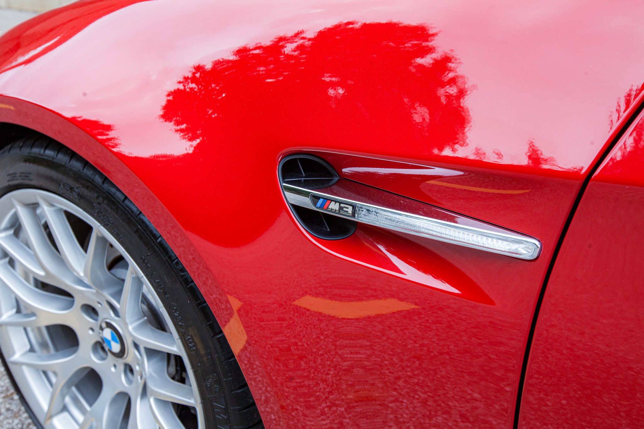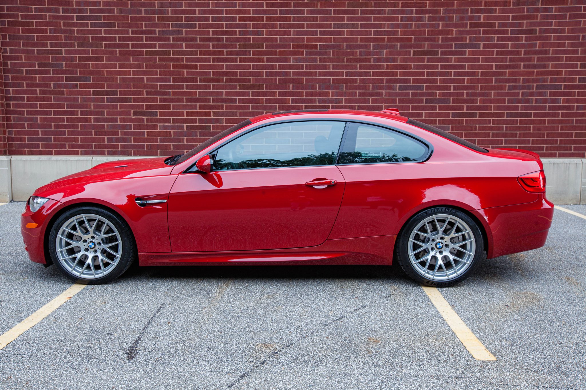 This 2013 BMW M3 coupe has remained registered in Ohio through the selling dealer’s acquisition from the original owner in 2021 and now has 10k miles. It is powered by a 4.0-liter V8 paired with a seven-speed dual-clutch transmission and is finished in Melbourne Red Metallic over Anthracite Speed Cloth and black Novillo leather upholstery. Equipment includes the Premium, Technology, and Competition packages as well as 19″ Style 359 wheels, a limited-slip differential, adaptive xenon headlights, a sunroof, rear parking sensors, heated power-adjustable front seats, navigation, dual-zone automatic climate control, and cruise control. This E92 M3 is now offered by the selling dealer with the owner’s manual, service records, a car cover, a clean Carfax report, and a clean Ohio title. The car is finished in Melbourne Red Metallic and features Shadowline trim and adaptive xenon headlights as well as rain-sensing wipers, a glass sunroof, a trunk lid spoiler, rear parking sensors, and quadruple exhaust outlets. A scuff is visible on the front bumper cover in addition to the right rocker panel. The 19″ Style 359 wheels are mounted with Michelin Pilot Sport 4S tires showing 2020 and 2021 date codes and measuring 255/35 up front and 275/35 out back. Competition Package equipment includes a lowered ride height compared to the standard M3 as well as retuned Electronic Damping Control (EDC) and Dynamic Stability Control (DSC). Braking is handled by four-wheel vented and cross-drilled discs measuring 14.2″ and 13.8″ front and rear, respectively. The heated power-adjustable front sport seats are upholstered in Anthracite Speed Cloth and Black Novillo leather, and Carbon-Structure Leather trim accents the dashboard and doors. Amenities include iDrive with navigation, Comfort Access keyless entry, a CD stereo, a power rear sunshade, dual-zone automatic climate control, and cruise control. A replacement cabin air filter was fitted in May 2021. A multifunction leather-wrapped steering wheel features paddle shifters and tri-color stitching and frames an M-branded tachometer, a 200-mph speedometer, a central information display, and gauges for oil temperature and fuel level. The digital odometer indicates 10k miles, approximately 700 of which were added under current ownership. The 4.0-liter S65 V8 features double-VANOS variable valve timing and was factory rated at 414 horsepower and 295 lb-ft of torque. A replacement air filter was installed in May 2021, while an oil change was performed in preparation for the sale. Power is sent to the rear wheels through a seven-speed M-DCT dual-clutch transmission and a Variable M Differential Lock. Additional photos of the underside are provided in the gallery below. The Carfax report shows no accidents or other damage and lists history in Ohio from new.