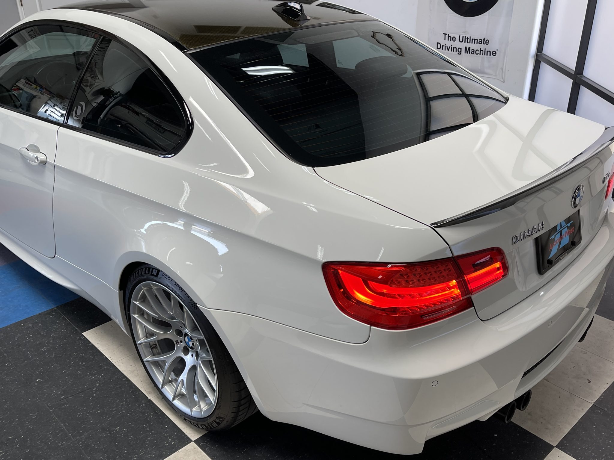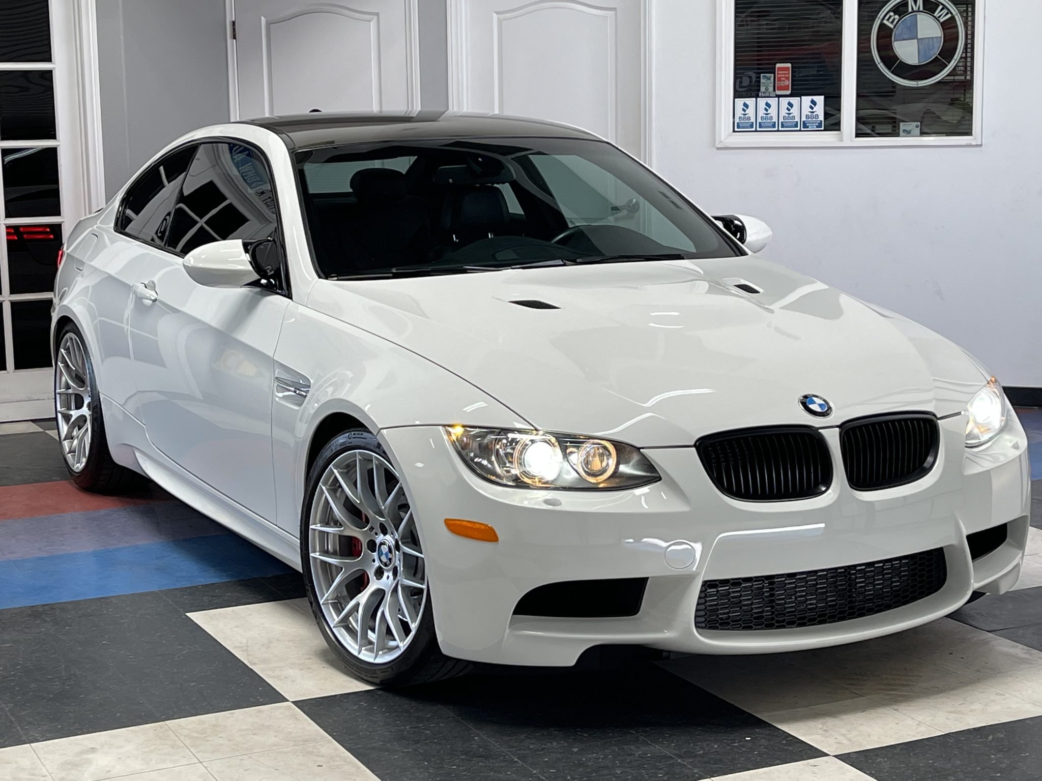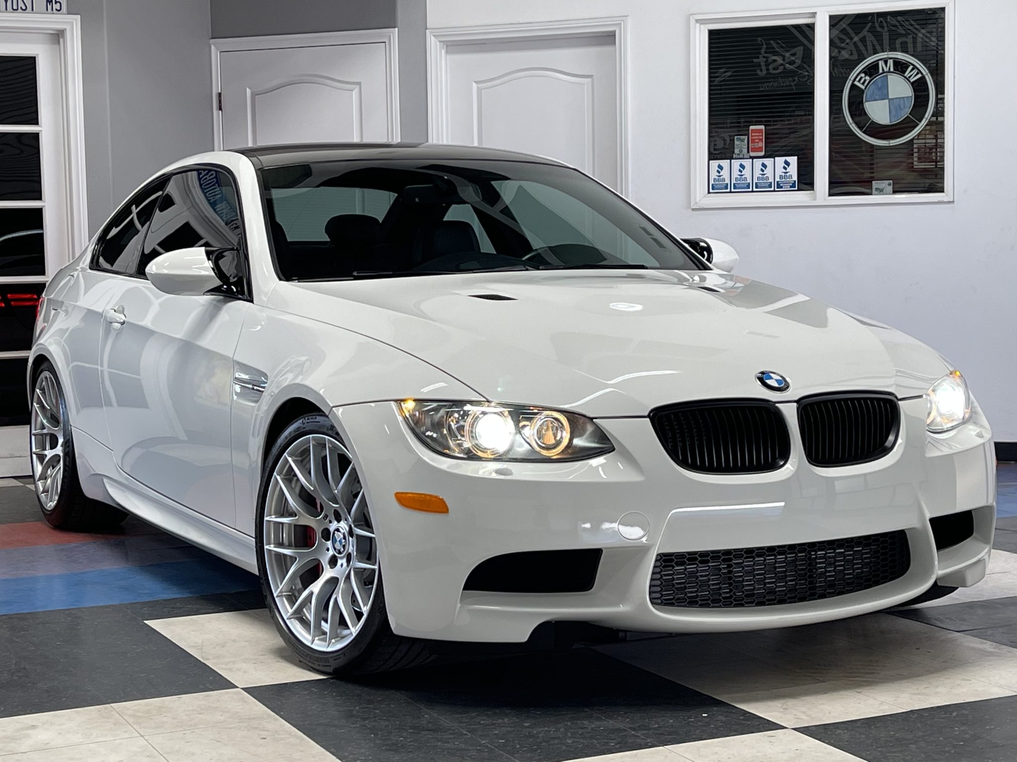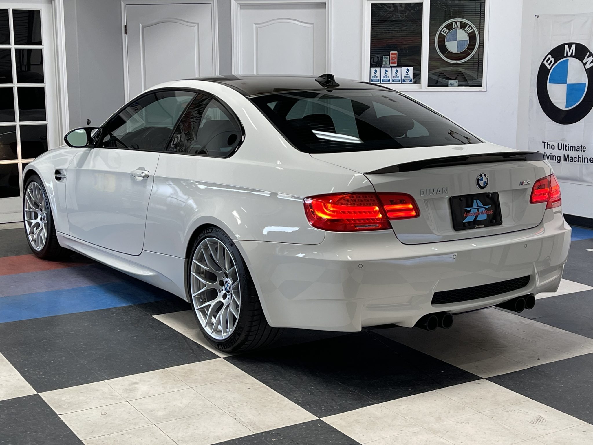 This 2013 BMW M3 coupe is powered by a 4.0-liter V8 paired with a seven-speed dual-clutch transmission and is finished in Alpine White III over black Novillo leather. Equipment includes the Competition, Cold Weather, and Premium packages along with a limited-slip differential, xenon headlights, rear parking sensors, heated and power-adjustable front seats, dual-zone automatic climate control, navigation, and cruise control. Modifications include Dinan performance springs and drivetrain software. The car was first registered in Arizona and spent time in California before it was acquired by the selling dealer in March 2022. This E92 M3 has just under 63k miles and is now offered with manufacturer’s literature, a clean Carfax report, and a clean California title. The car is finished in Alpine White III and features Shadowline trim and adaptive xenon headlights as well as rain-sensing wipers, a carbon-fiber roof panel, a carbon-fiber trunk lid spoiler, rear parking sensors, and quadruple exhaust outlets. The selling dealer states that the front and rear bumper covers have been repainted. Factory 19″ Style 359 wheels are mounted with Michelin Pilot Sport 4S tires measuring 255/35 up front and 275/35 out back. Competition Package equipment includes re-tuned Electronic Damping Control (EDC) and Dynamic Stability Control (DSC), and this example has been fitted with Dinan performance springs. Braking is handled by four-wheel vented and cross-drilled discs measuring 14.2″ and 13.8″ front and rear, respectively. The heated and power-adjustable sport seats are upholstered in black Novillo leather, and Brushed Aluminum Shadow trim accents the dashboard and door panels. Amenities include a CD stereo, a power rear sunshade, dual-zone automatic climate control, navigation, and cruise control. The leather-wrapped multifunction steering wheel features tri-color stitching and is equipped with shift paddles. Instrumentation includes an M-branded tachometer, a 200-mph speedometer, a central information display, and gauges for oil temperature and fuel level. The digital odometer indicates just under 63k miles, approximately 50 of which have been added by the selling dealer. The 4.0-liter S65 V8 features double-VANOS variable valve timing and sends power to the rear wheels through a seven-speed M-DCT dual-clutch transmission and a Variable M Differential Lock. Modifications reportedly include Dinan Stage 1 engine management software along with transmission control software. Additional underside photos are presented in the gallery below. The Carfax report shows no accidents or other damage and lists history in Arizona and California.