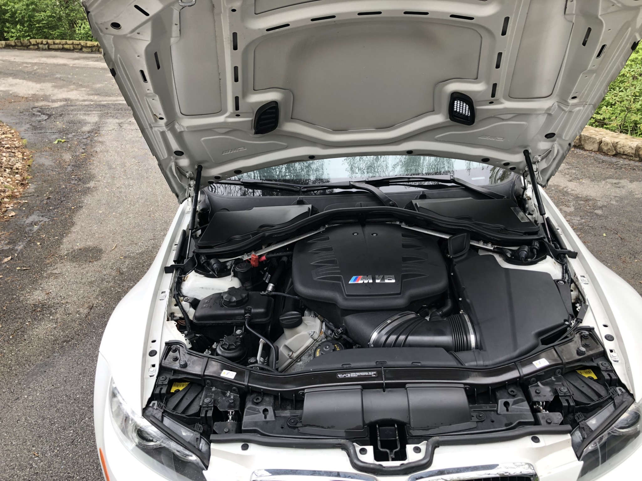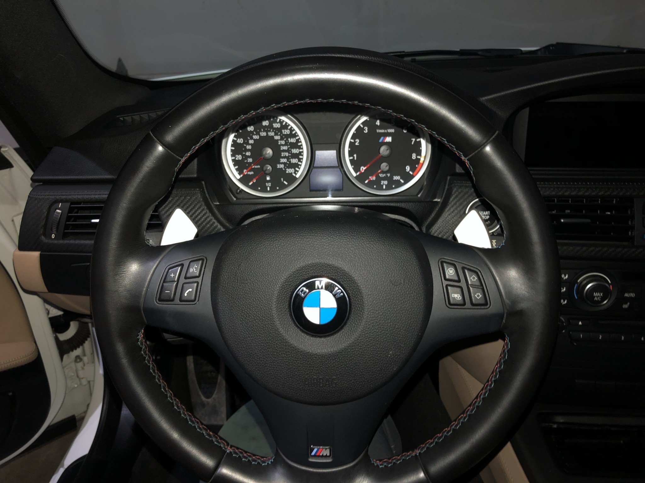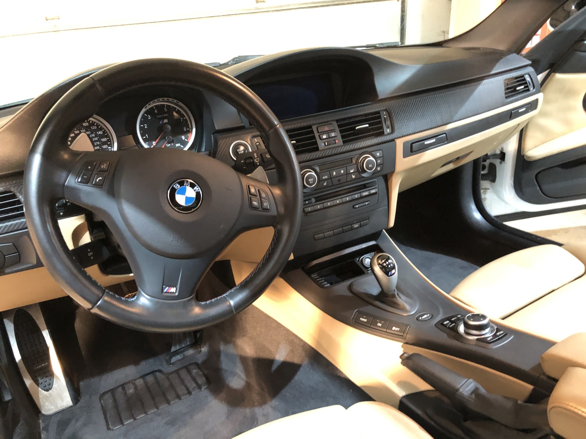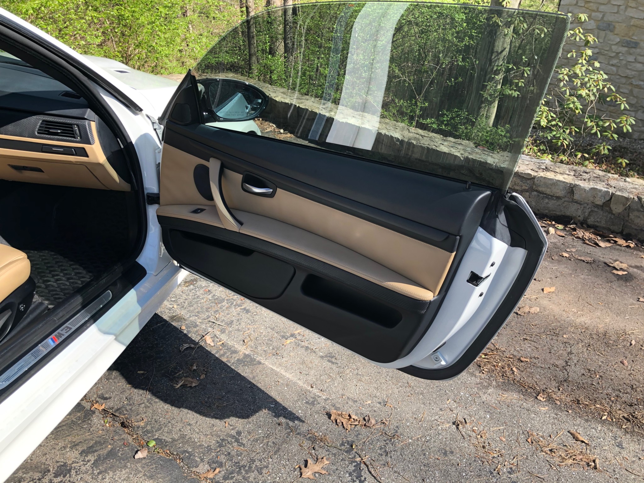 This 2013 BMW M3 coupe was purchased new by the seller at Dreyer & Reinbold BMW in Indianapolis, Indiana and shows just over 43k miles. Finished in Alpine White over Beige Novillo extender leather, the car is powered by a 4.0-liter V8 paired with a dual-clutch transmission and optioned with the Competition Package, heated front seats, keyless entry, navigation, and carbon fiber interior trim. Recent service included installation of new DCT seals, brake pads and rotors, wheels, and tires. This E92 M3 is offered with service records, a set of winter wheels and tires, a Carfax report, and a clean Indiana title in the seller’s name. Body panels are finished in Alpine White (A75) and accented by a carbon fiber roof and Shadowline window trim. The rocker panels and floor pan were repaired to alleviate damage caused by a wheel theft in October 2018, and the seller notes chips on the front bumper. 25% side and 20% rear window tint has been added. New staggered-width 19″ Style 359 wheels with Michelin Pilot Super Sport tires were fitted in November 2018 following the aforementioned wheel theft, and new cross-drilled and vented brake discs were also installed. The car is equipped with Electronic Damping Control and stability control with M Dynamic Mode. The cabin features Beige Novillo extended leather with heated seats, carbon fiber dash trim, navigation, automatic climate control, a factory stereo, and a digital multifunction display. The seller notes wear on the outer driver’s seat bolsters. Instrumentation includes a 200-mph speedometer, a tachometer with an 8k-rpm redline, and fuel and temperature gauges. Just over 43k miles are shown on the odometer, with all added by the seller. The 4.0-liter S65 V8 features Double VANOS variable valve timing and produced 414 horsepower when new. The engine is paired with an M-DCT dual-clutch transmission that received new seals and fluid in May 2018. A window sticker displaying a total price of $72,895 is included in the sale along with owner’s manuals and other literature, service records, all-weather floor mats, and a set of extra wheels with Bridgestone Blizzak winter tires. The accident-free Carfax report shows one registered owner from new through August 2018.