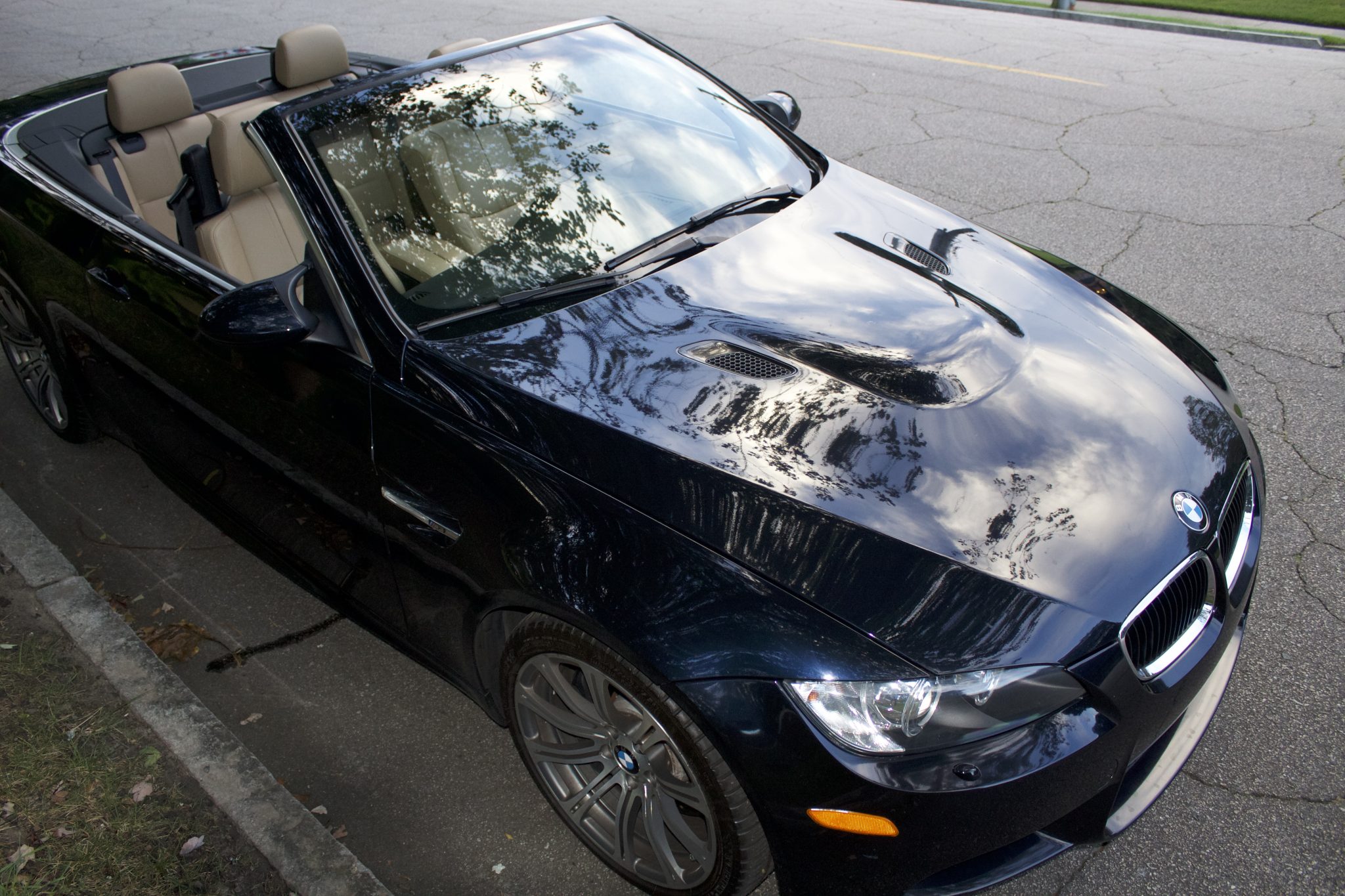 This 2013 BMW M3 convertible is finished in Jerez Black Metallic over Bamboo Beige Novillo leather and has 47k miles following history in South Carolina and Ohio. It is equipped with the Premium and Cold Weather packages as well as 19″ forged Style 220 wheels, adaptive xenon headlights, a retractable hardtop, rear Park Distance Control, heated front Sport seats, and iDrive with navigation. It is powered by a 4.0-liter S65 V8 linked with a seven-speed dual-clutch transmission and a limited-slip differential. The selling dealer acquired the vehicle in July 2025 and has since added approximately 1k miles. This E93 M3 is now offered in Georgia by the selling dealer with a clean Carfax report and a clean Ohio title. The car is finished in Jerez Black Metallic (A73) with a retractable hardtop and is equipped with adaptive xenon headlights with retractable washers as well as rain-sensing wipers, power-folding side mirrors, rear Park Distance Control, and quadruple exhaust outlets. Forged 19″ Style 220 wheels were mounted with Michelin tires in August 2025, according to the selling dealer. The car features Electronic Damping Control (EDC) and Dynamic Stability Control (DSC). Braking is handled by four-wheel vented and cross-drilled discs measuring 14.2″ and 13.8″ front and rear, respectively. The heated power-adjustable front Sport seats are upholstered in Bamboo Beige Novillo leather and complemented by a black dashboard and two-tone door panels. Carbon Structure Leather trim accents the dashboard and doors, and amenities include driver seat position-memory settings, Comfort Access keyless entry, dual-zone automatic climate control, and iDrive with navigation. The multifunction leather-wrapped steering wheel features paddle shifters along with tri-color stitching and frames an M-branded tachometer, a 200-mph speedometer, a central information display, and gauges for oil temperature and fuel level. The digital odometer indicates 47k miles, approximately 1k of which were added by the selling dealer. The 4.0-liter S65 V8 features double-VANOS variable valve timing and was factory rated at 414 horsepower and 295 lb-ft of torque. The selling dealer tells us that the oil was changed, and the air filter was replaced in June 2025. Power is sent to the rear wheels through a seven-speed M-DCT dual-clutch transmission and a Variable M Differential Lock. The Carfax report is free of accidents or other reported damage.
