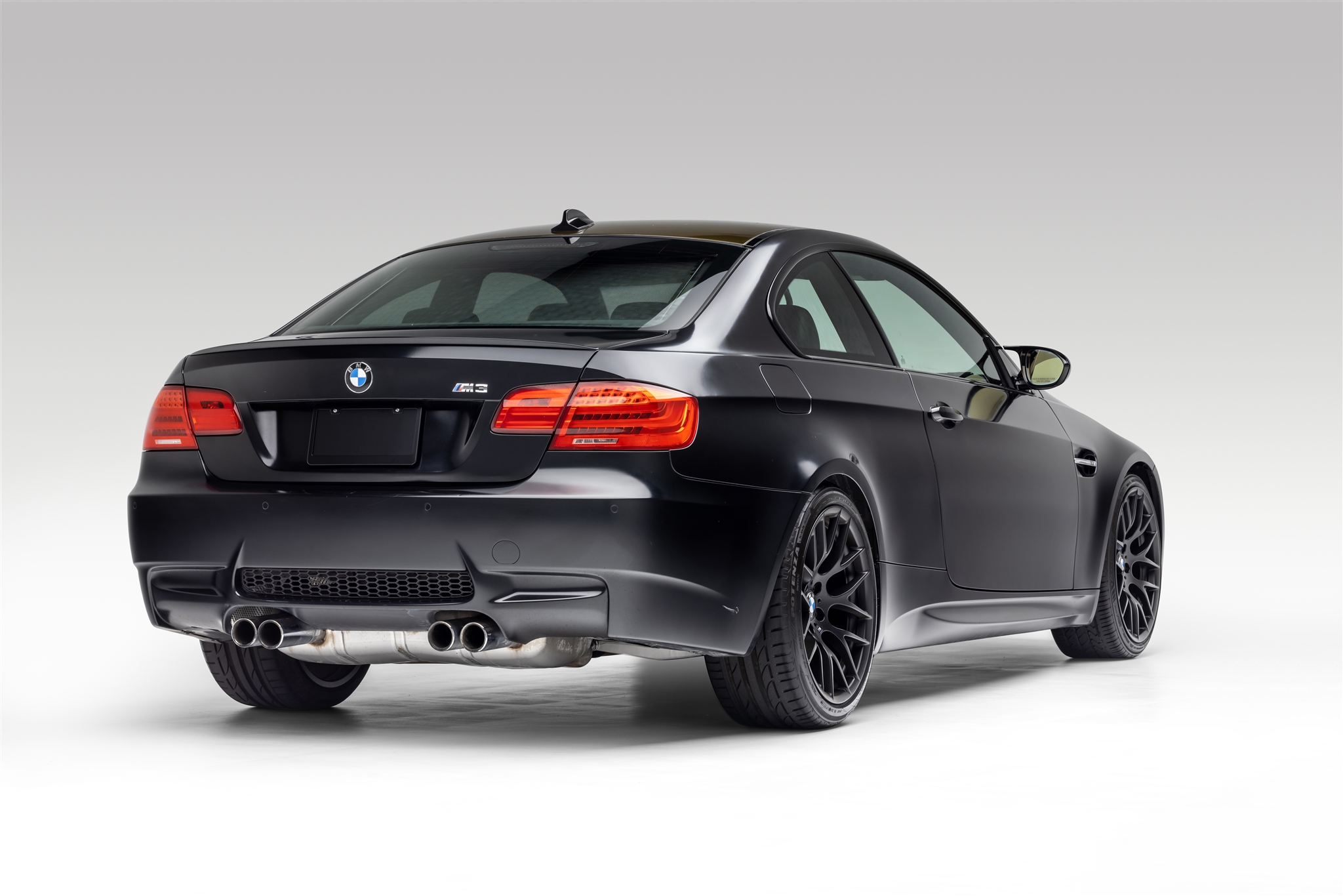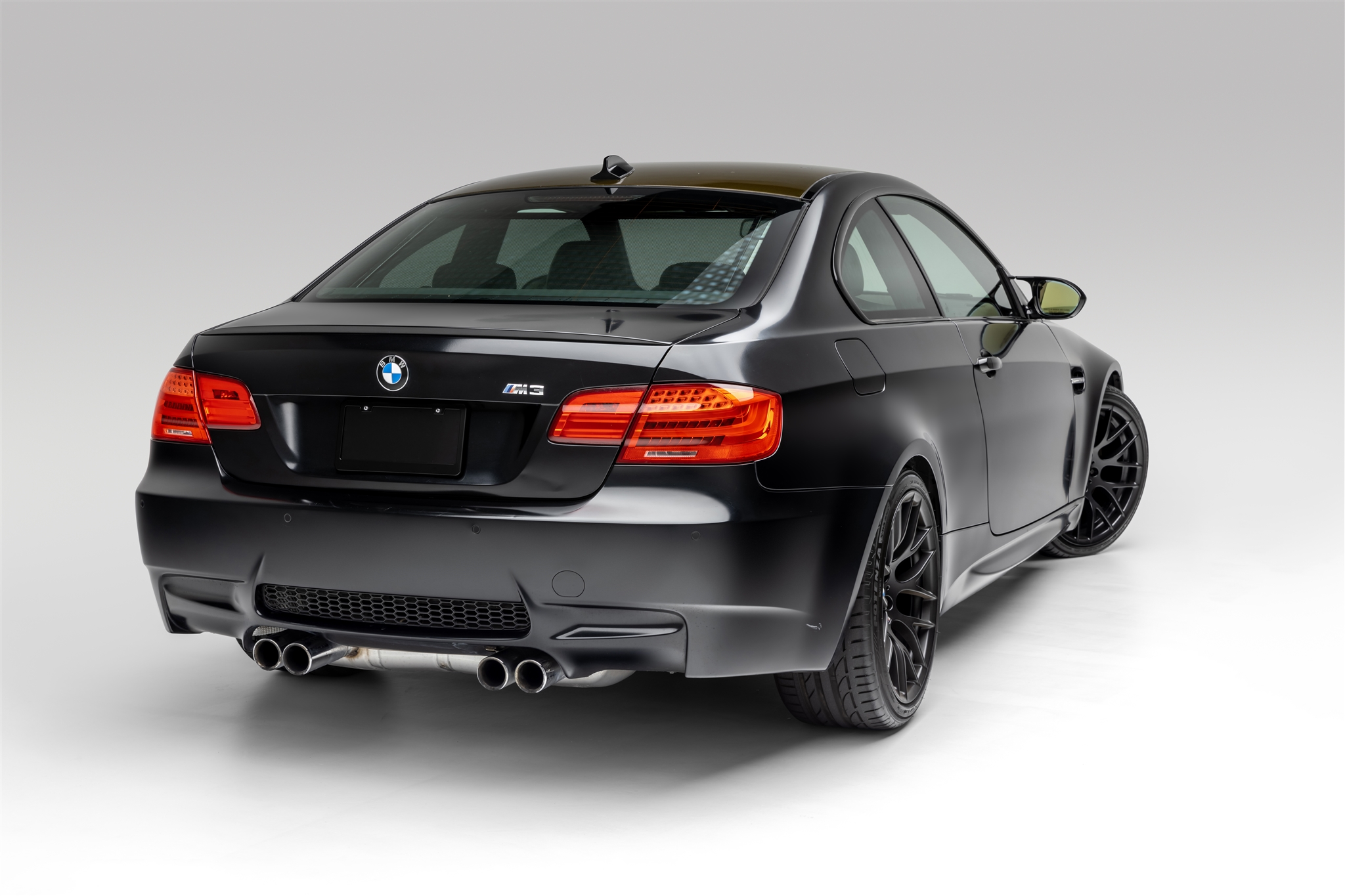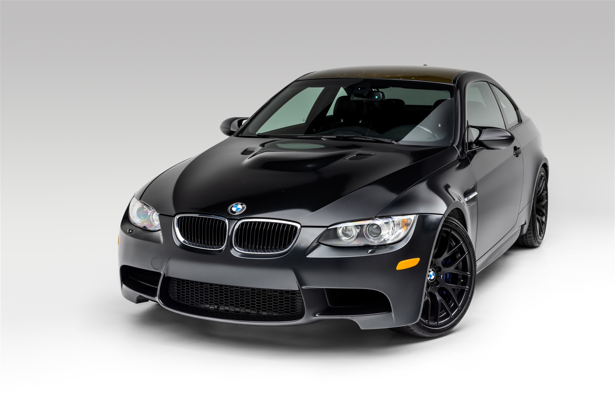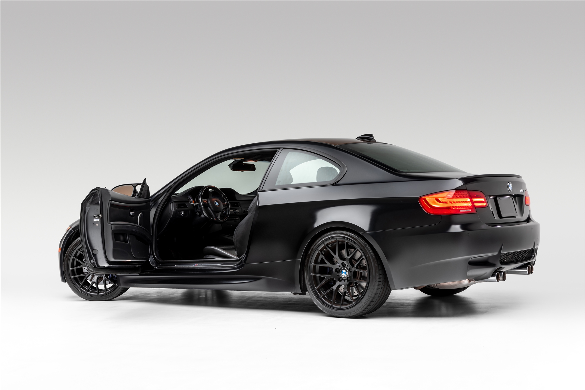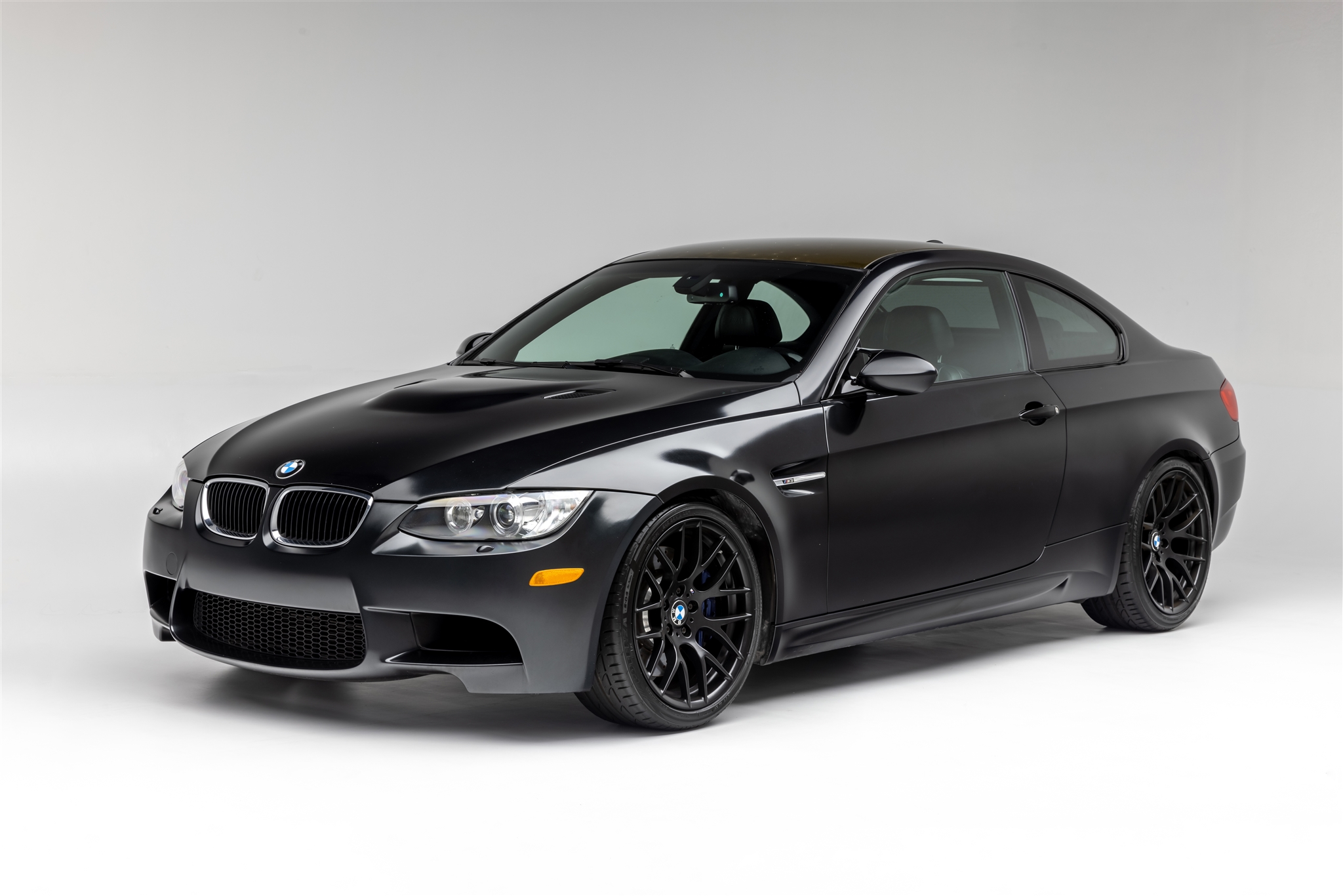 This 2013 BMW M3 is finished in BMW Individual Frozen Black Metallic over Black Novillo leather upholstery and is powered by a 4.0-liter V8 paired with a seven-speed dual-clutch transmission and an M Variable Differential Lock. Equipment includes the Competition Package, automatic stop/start, heated front seats, dual-zone automatic climate control, cruise control, navigation, rear park control, 19″ wheels, adaptive xenon headlights, and a carbon-fiber roof panel. Recently acquired by the selling dealer, this E92 M3 has 97k miles and is now offered by the selling dealer in California with the manufacturer’s literature, a Carfax report, and a clean North Carolina title. The car is finished in BMW Individual Frozen Black Metallic and features a carbon-fiber roof panel, adaptive xenon headlights, rear park distance control, rain-sensing windshield wipers, a vented hood, and quad exhaust outlets. The Carfax report notes a 2013 accident that resulted in “minor damage” to the rear end. The selling dealer notes that the front bumper has been refinished, the left adaptive headlight is faulty, and the clearcoat on the roof panel is peeling. Close-up photos of paint imperfections can be viewed in the gallery below. Multi-spoke 19″ Style 359 wheels have been powder coated black, and stopping power is provided by cross-drilled rotors and blue calipers all around. The Competition Package included a factory lowered ride height and re-tuned Electronic Damping Control and stability control programs. The cabin is trimmed in Black Novillo extended leather with a BMW Individual Anthracite headliner and carbon-fiber accents on the dashboard and door panels. Amenities include dual-zone automatic climate control, cruise control, navigation, and heated power-adjustable front seats. The seller notes that the rear sunshade motor is broken, the driver’s seat bolster is torn, and no sound comes from the speakers. The multifunction M steering wheel frames a 200-mph speedometer, a 9k-rpm tachometer, and gauges for fuel level and coolant temperature. The digital odometer indicates 97k miles, approximately 500 of which were added by the selling dealer. The 4.0-liter S65 V8 features double-VANOS variable valve timing and was rated at 414 horsepower and 295 lb-ft of torque when new. Power is sent to the rear wheels through a seven-speed dual-clutch transmission and an M Variable Differential Lock. Additional photos of the underside can be viewed in the gallery. Manufacturer’s literature is included in the sale. The Carfax report notes the aforementioned accident and lists history in Nevada, Illinois, North Carolina, Alabama, and California.
