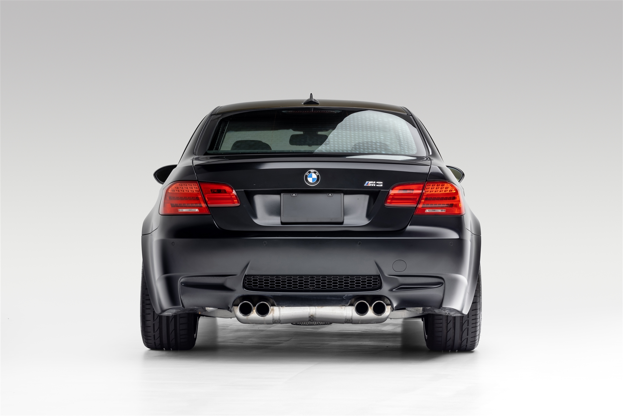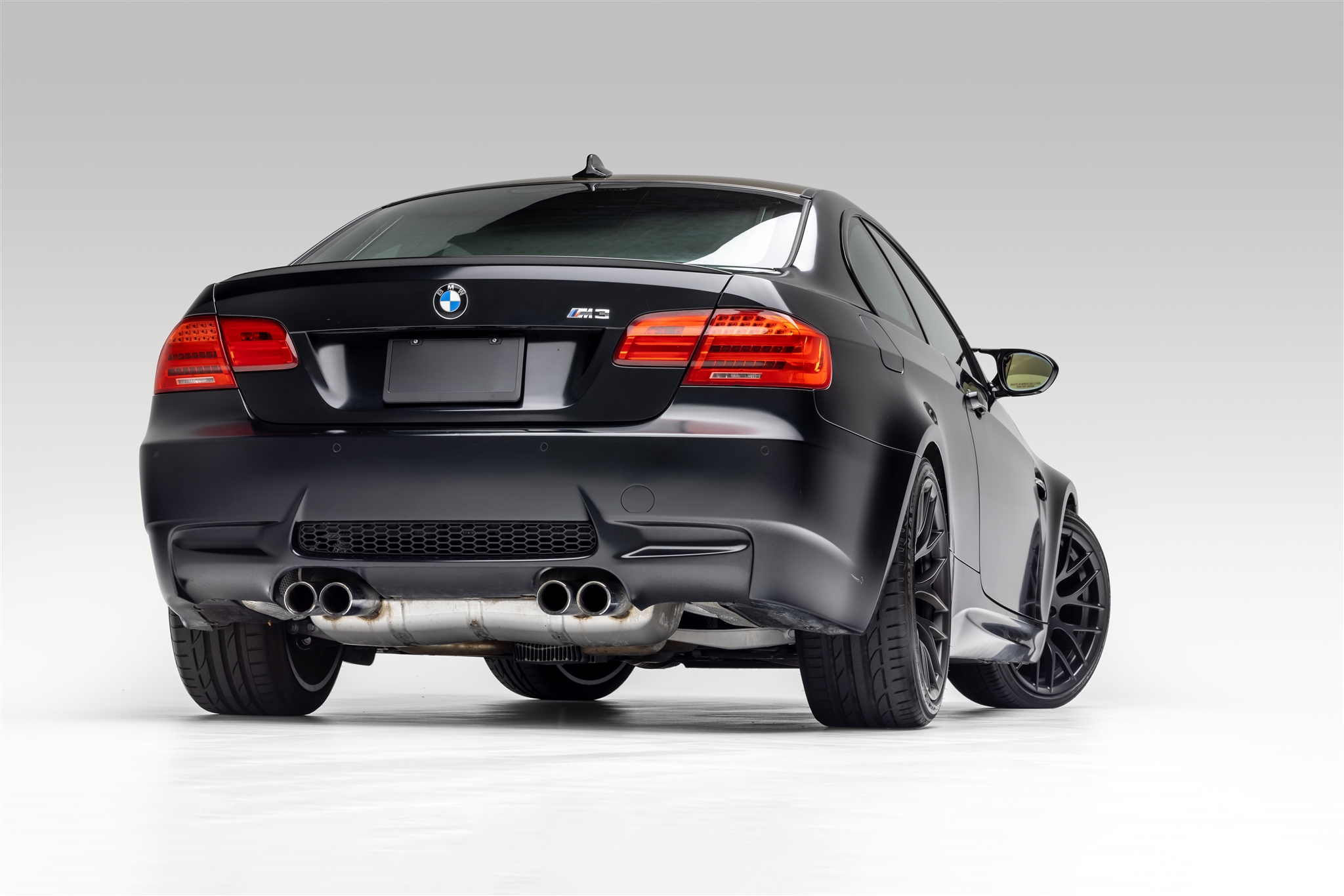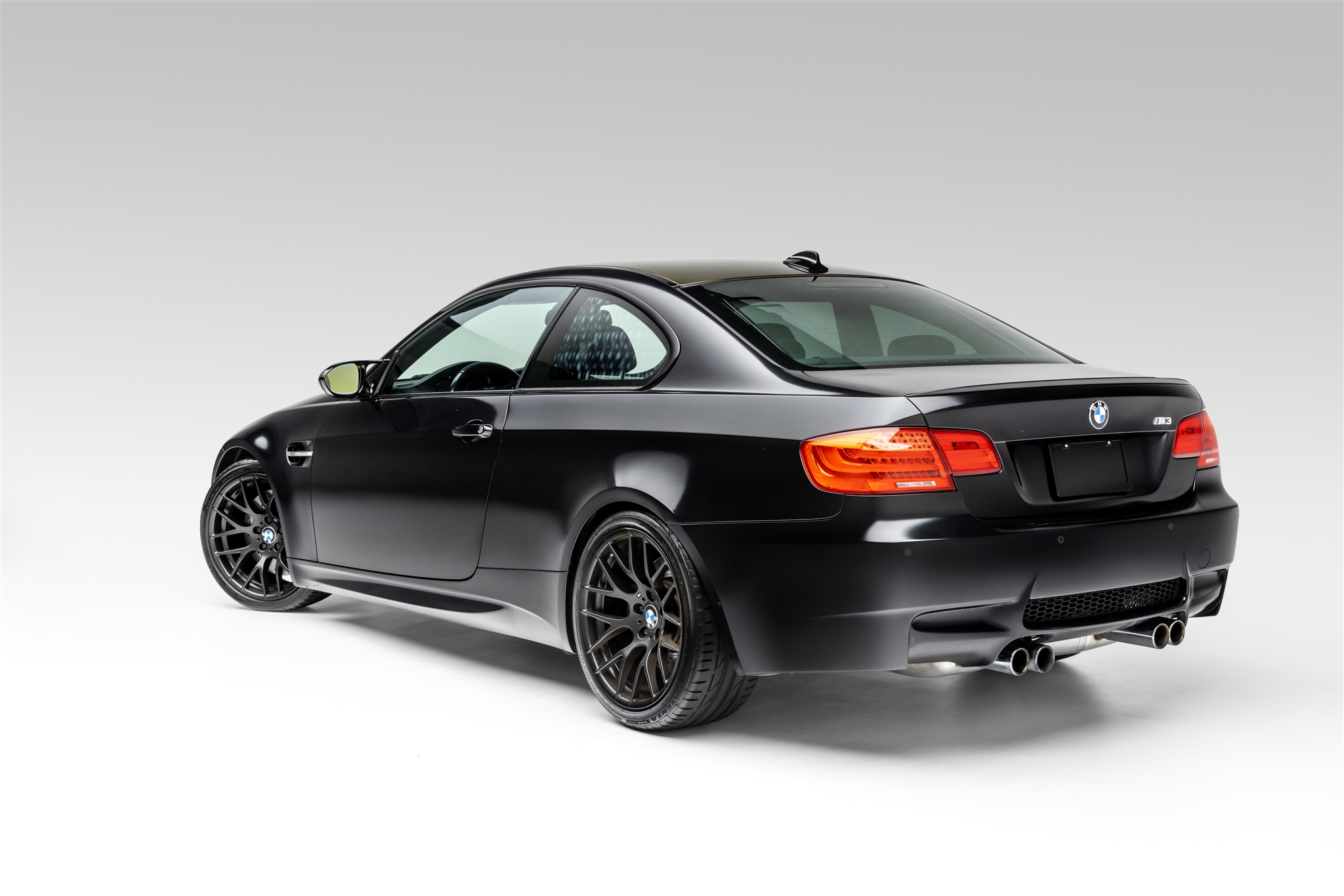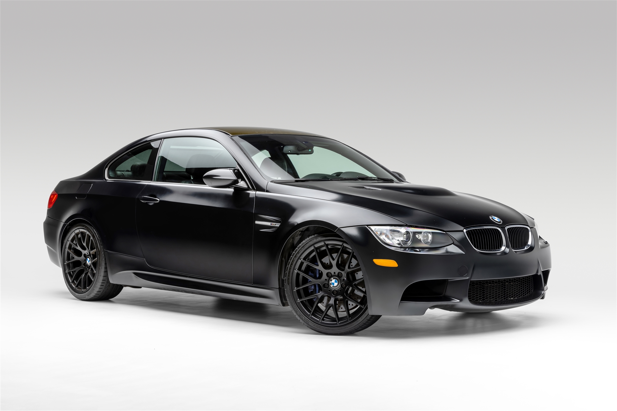 This 2013 BMW M3 is finished in BMW Individual Frozen Black Metallic over Black Novillo leather upholstery and is powered by a 4.0-liter V8 paired with a seven-speed dual-clutch transmission and an M Variable Differential Lock. Equipment includes the Competition Package, automatic stop/start, heated front seats, dual-zone automatic climate control, cruise control, navigation, rear park control, 19″ wheels, adaptive xenon headlights, and a carbon-fiber roof panel. Recently acquired by the selling dealer, this E92 M3 has 97k miles and is now offered by the selling dealer in California with the manufacturer’s literature, a Carfax report, and a clean North Carolina title. The car is finished in BMW Individual Frozen Black Metallic and features a carbon-fiber roof panel, adaptive xenon headlights, rear park distance control, rain-sensing windshield wipers, a vented hood, and quad exhaust outlets. The Carfax report notes a 2013 accident that resulted in “minor damage” to the rear end. The selling dealer notes that the front bumper has been refinished, the left adaptive headlight is faulty, and the clearcoat on the roof panel is peeling. Close-up photos of paint imperfections can be viewed in the gallery below. Multi-spoke 19″ Style 359 wheels have been powder coated black, and stopping power is provided by cross-drilled rotors and blue calipers all around. The Competition Package included a factory lowered ride height and re-tuned Electronic Damping Control and stability control programs. The cabin is trimmed in Black Novillo extended leather with a BMW Individual Anthracite headliner and carbon-fiber accents on the dashboard and door panels. Amenities include dual-zone automatic climate control, cruise control, navigation, and heated power-adjustable front seats. The seller notes that the rear sunshade motor is broken, the driver’s seat bolster is torn, and no sound comes from the speakers. The multifunction M steering wheel frames a 200-mph speedometer, a 9k-rpm tachometer, and gauges for fuel level and coolant temperature. The digital odometer indicates 97k miles, approximately 500 of which were added by the selling dealer. The 4.0-liter S65 V8 features double-VANOS variable valve timing and was rated at 414 horsepower and 295 lb-ft of torque when new. Power is sent to the rear wheels through a seven-speed dual-clutch transmission and an M Variable Differential Lock. Additional photos of the underside can be viewed in the gallery. Manufacturer’s literature is included in the sale. The Carfax report notes the aforementioned accident and lists history in Nevada, Illinois, North Carolina, Alabama, and California.