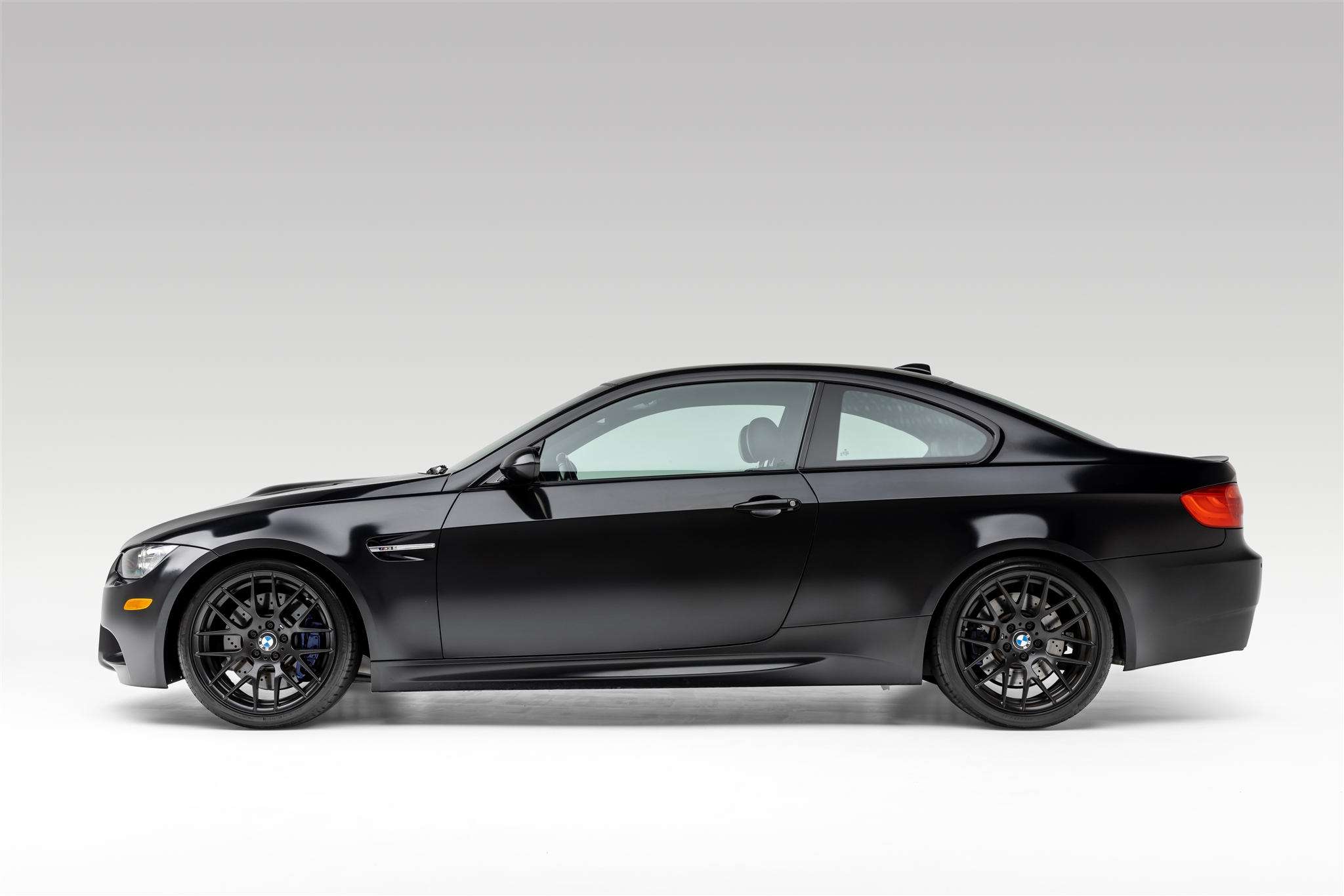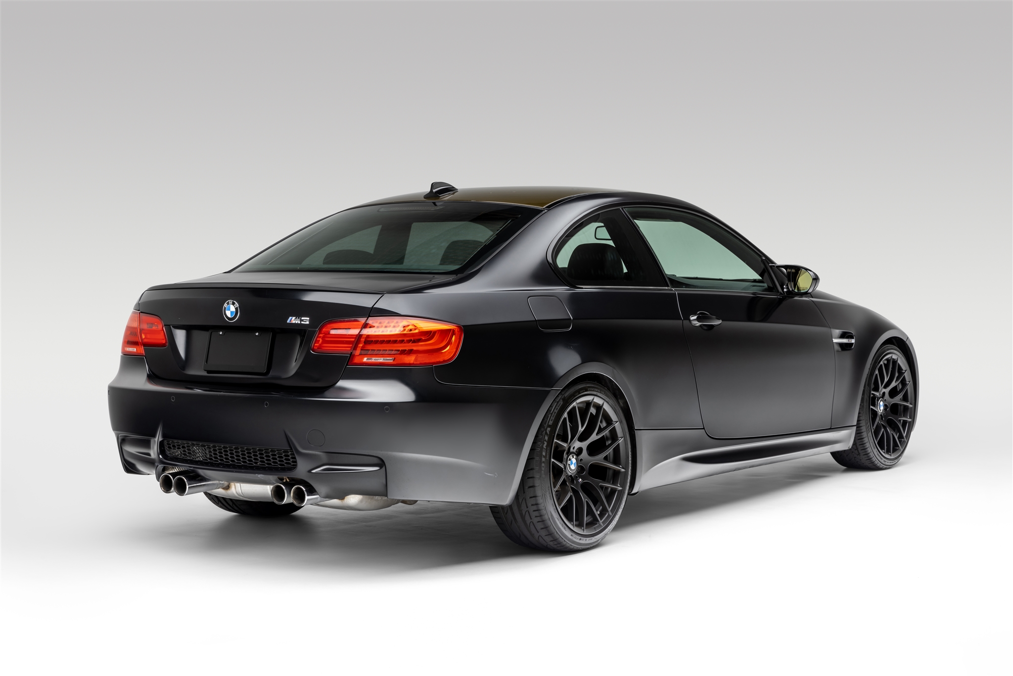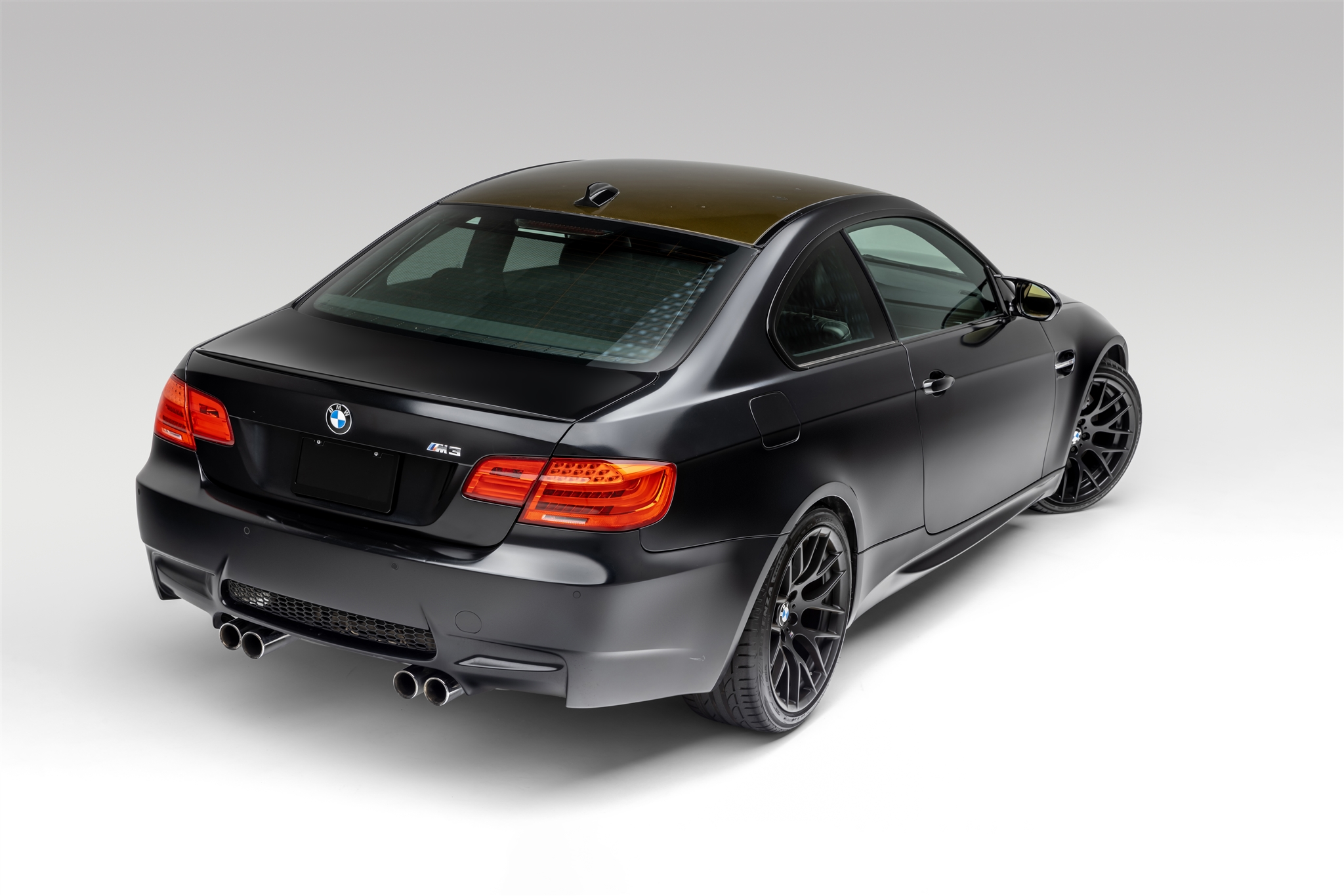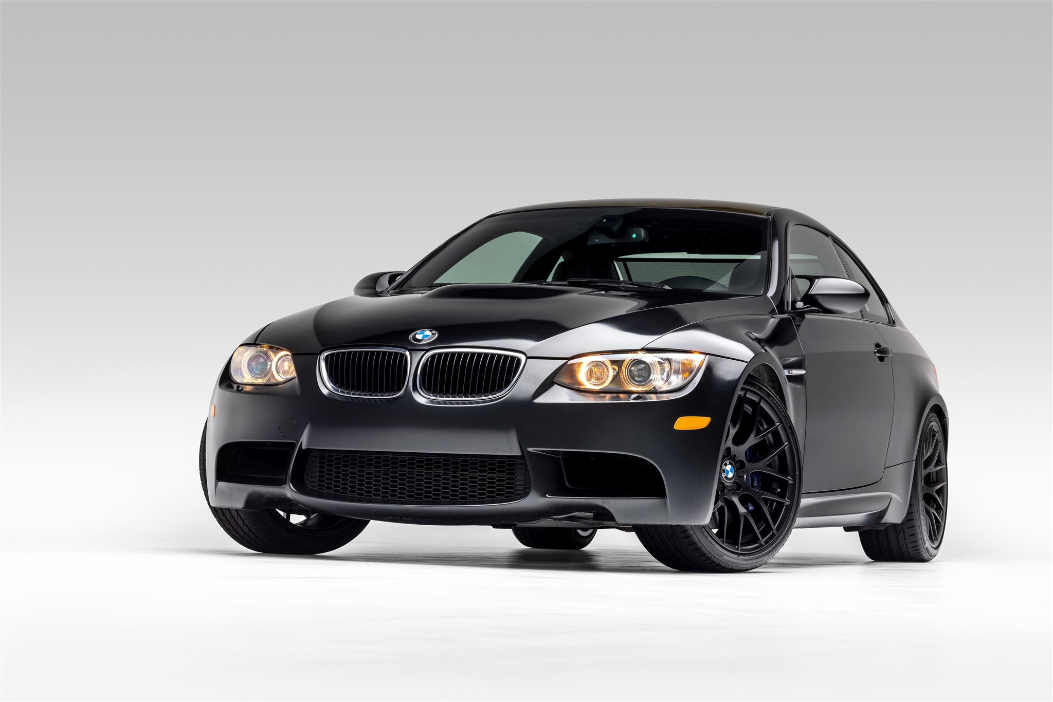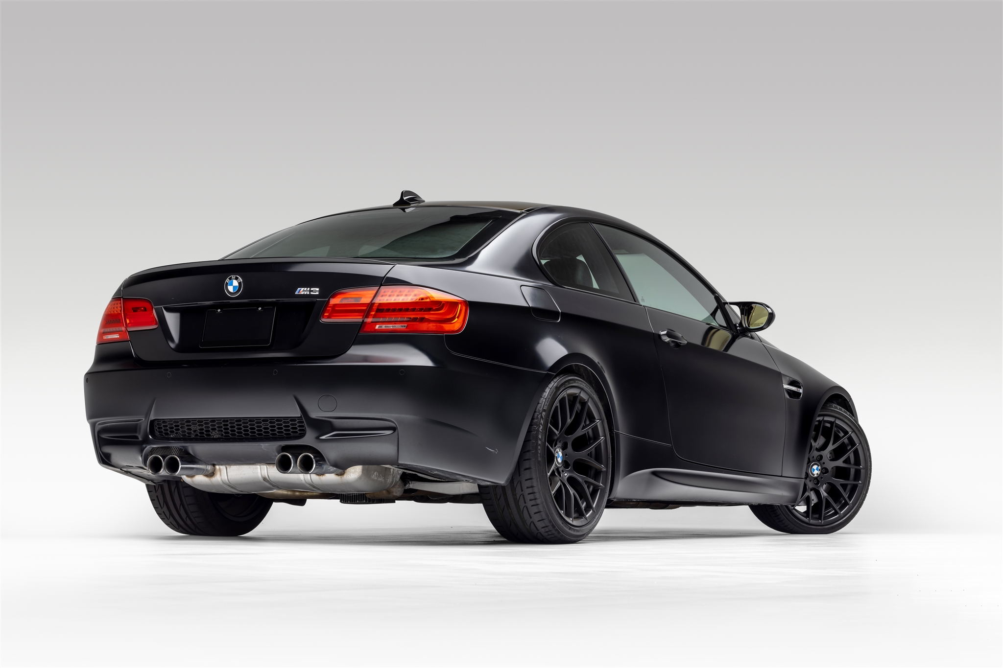 This 2013 BMW M3 is finished in BMW Individual Frozen Black Metallic over Black Novillo leather upholstery and is powered by a 4.0-liter V8 paired with a seven-speed dual-clutch transmission and an M Variable Differential Lock. Equipment includes the Competition Package, automatic stop/start, heated front seats, dual-zone automatic climate control, cruise control, navigation, rear park control, 19″ wheels, adaptive xenon headlights, and a carbon-fiber roof panel. Recently acquired by the selling dealer, this E92 M3 has 97k miles and is now offered by the selling dealer in California with the manufacturer’s literature, a Carfax report, and a clean North Carolina title. The car is finished in BMW Individual Frozen Black Metallic and features a carbon-fiber roof panel, adaptive xenon headlights, rear park distance control, rain-sensing windshield wipers, a vented hood, and quad exhaust outlets. The Carfax report notes a 2013 accident that resulted in “minor damage” to the rear end. The selling dealer notes that the front bumper has been refinished, the left adaptive headlight is faulty, and the clearcoat on the roof panel is peeling. Close-up photos of paint imperfections can be viewed in the gallery below. Multi-spoke 19″ Style 359 wheels have been powder coated black, and stopping power is provided by cross-drilled rotors and blue calipers all around. The Competition Package included a factory lowered ride height and re-tuned Electronic Damping Control and stability control programs. The cabin is trimmed in Black Novillo extended leather with a BMW Individual Anthracite headliner and carbon-fiber accents on the dashboard and door panels. Amenities include dual-zone automatic climate control, cruise control, navigation, and heated power-adjustable front seats. The seller notes that the rear sunshade motor is broken, the driver’s seat bolster is torn, and no sound comes from the speakers. The multifunction M steering wheel frames a 200-mph speedometer, a 9k-rpm tachometer, and gauges for fuel level and coolant temperature. The digital odometer indicates 97k miles, approximately 500 of which were added by the selling dealer. The 4.0-liter S65 V8 features double-VANOS variable valve timing and was rated at 414 horsepower and 295 lb-ft of torque when new. Power is sent to the rear wheels through a seven-speed dual-clutch transmission and an M Variable Differential Lock. Additional photos of the underside can be viewed in the gallery. Manufacturer’s literature is included in the sale. The Carfax report notes the aforementioned accident and lists history in Nevada, Illinois, North Carolina, Alabama, and California.