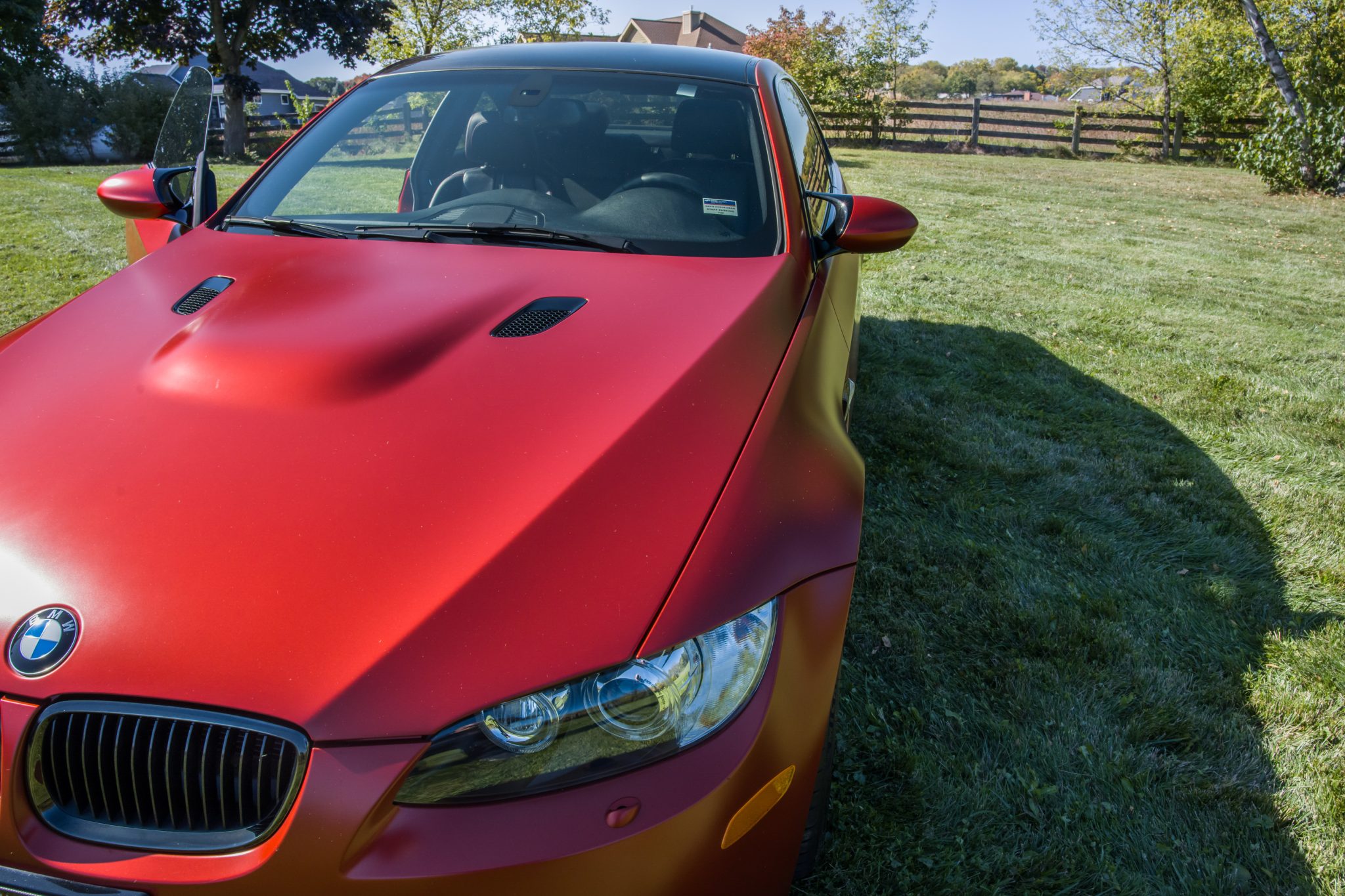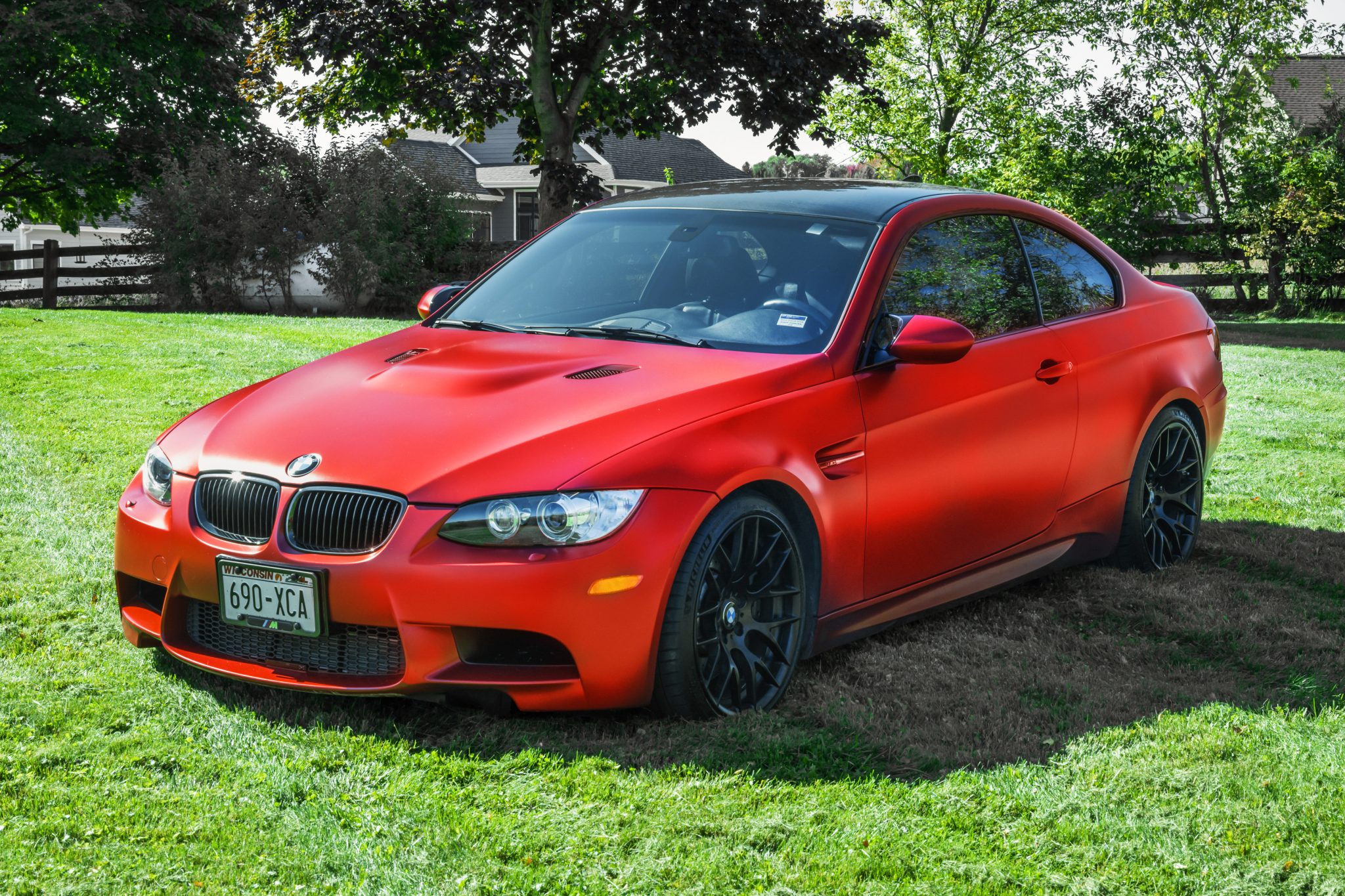 This 2013 BMW M3 coupe is one of 150 Frozen Edition examples produced for the US market, and it is finished in Frozen Red Metallic over Black Novillo leather. Powered by a 4.0-liter V8 paired with a seven-speed dual-clutch transmission, the car is equipped with the Competition, Premium, and Cold Weather packages as well as a Dinan intake, Dinan engine and transmission management software, an M Sport exhaust system, a limited-slip differential, 19″ Style 359 wheels, rear parking sensors, heated front seats, and an Enhanced Premium Sound system. The car was first registered in Minnesota and was acquired by the seller in 2014. Service in 2023 included replacing the battery, battery IRS cable, and EDC module. This E92 M3 has 24k miles and is offered with the owner’s manual, two keys, removed exhaust components, a clean Carfax report, and a clean Wisconsin title in the seller’s name. The car is finished in Frozen Red Metallic with Shadowline trim and has adaptive xenon headlights with high-beam assist as well as rain-sensing wipers, a carbon-fiber roof panel, a trunk lid spoiler, rear parking sensors, and quadruple exhaust outlets. Scratches and paint chips are visible on the front bumper cover, and close-up photos of paint imperfections are provided in the gallery below. Black-finished 19″ Style 359 wheels are mounted with 245/35 front and 265/35 rear Michelin Pilot Sport 4S tires showing 2019 date codes. Competition Package equipment includes a lowered ride height compared to the standard M3 as well as retuned Electronic Damping Control (EDC) and Dynamic Stability Control (DSC). Braking is handled by four-wheel vented and cross-drilled discs measuring 14.2″ and 13.8″ front and rear, respectively. The heated power-adjustable front sport seats are upholstered in Black Novillo leather with contrasting red stitching, and Carbon Structure Leather trim accents the dashboard and doors. The car was ordered with an Enhanced Premium Sound system, and additional amenities include iDrive with navigation as well as Comfort Access keyless entry, a CD stereo, a power rear sunshade, dual-zone automatic climate control, and cruise control. The leather-wrapped steering wheel features paddle shifters along with tri-color stitching and frames an M-branded tachometer, a 200-mph speedometer, a central information display, and gauges for oil temperature and fuel level. The digital odometer indicates 24k miles, approximately 21k of which were added under current ownership. The 4.0-liter S65 V8 features double-VANOS variable valve timing and has been fitted with a Dinan intake. Power is sent to the rear wheels through a seven-speed M-DCT dual-clutch transmission and a Variable M Differential Lock. An M Sport exhaust system is fitted, and the seller notes that Dinan engine and DCT management software are installed. The battery was replaced in 2023 along with the battery IRS cable and Electronic Damping Control (EDC) module. Additional underside photos can be seen in the gallery. An owner’s manual and two keys will accompany the car along with removed exhaust components. The Carfax report notes no accidents or other damage and lists history in Minnesota, Arizona, and Wisconsin.