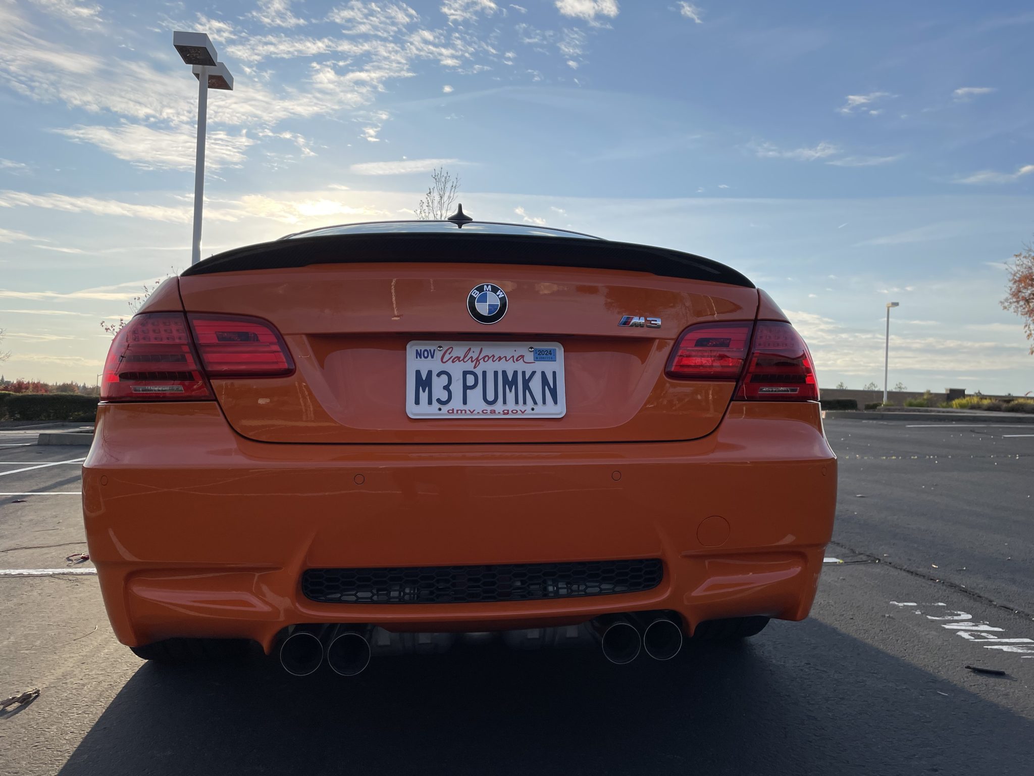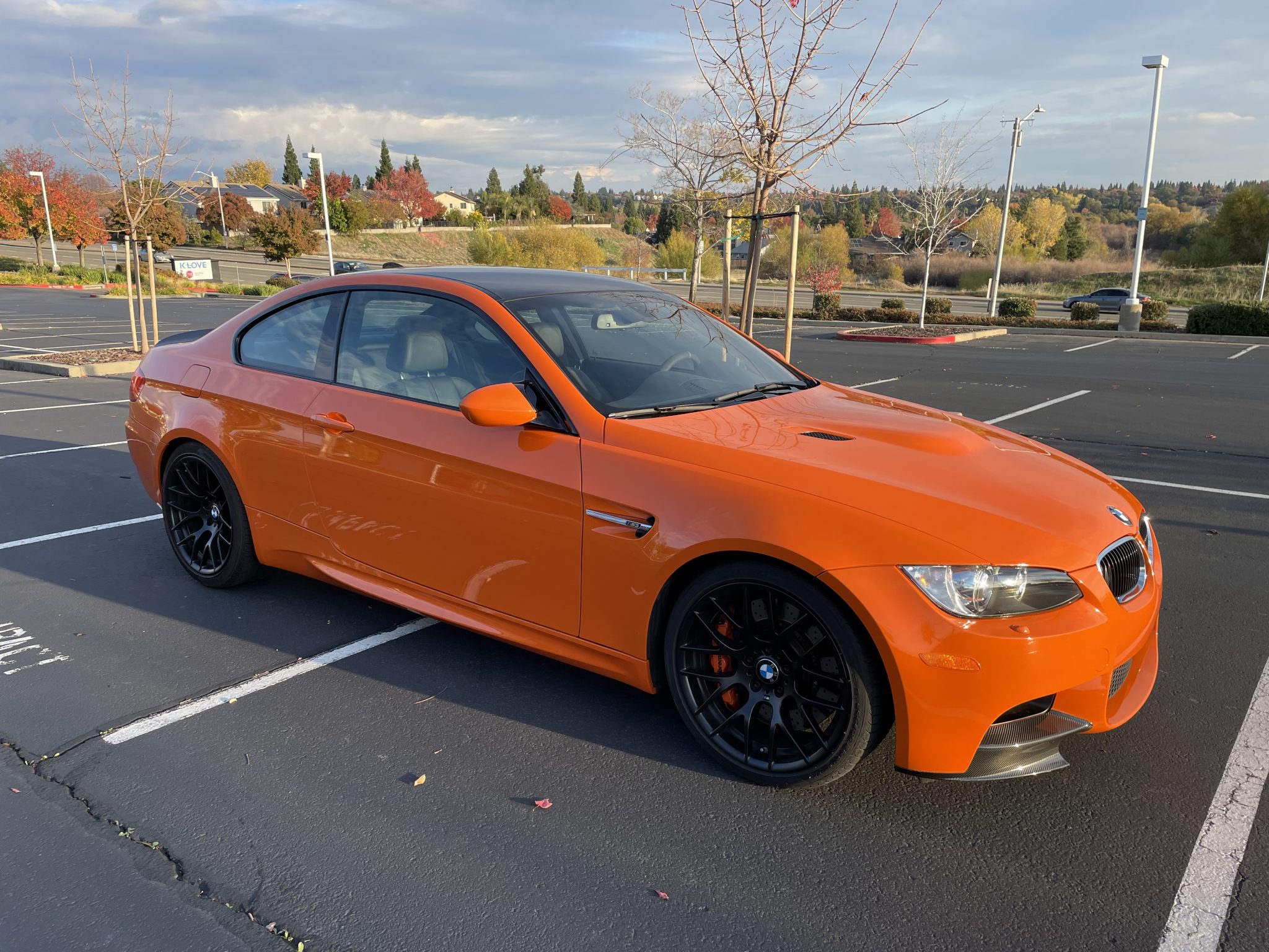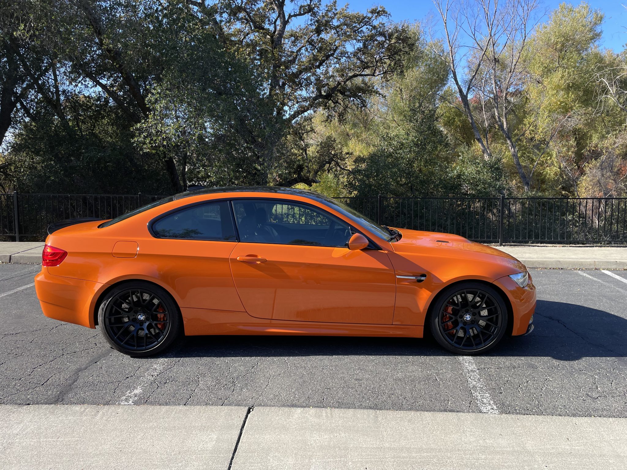 This 2013 BMW M3 coupe is one of 200 in the Lime Rock Park Edition which was produced for a single model year. It was initially delivered to Weatherford BMW in Berkeley, California, and it has remained in that state through the seller’s acquisition in 2014. Now with 12k miles, the car is powered by a 4.0-liter V8 paired with a seven-speed dual-clutch transmission and is finished in Fire Orange over black Novillo leather upholstery. Equipment includes the Cold Weather Package, Premium Package, 19″ Style 359 wheels, Brembo brakes, a limited-slip differential, xenon headlights, parking sensors, heated front seats, dual-zone automatic climate control, Enhanced Premium Sound, navigation, and cruise control. This E92 M3 is offered with a window sticker, manufacturer’s literature, a clean Carfax report, and a clean California title in the seller’s name. The car is finished in Fire Orange and features Shadowline trim and adaptive xenon headlights as well as rain-sensing wipers, a carbon-fiber roof panel, a trunk lid spoiler, rear parking sensors, and quadruple exhaust outlets. The seller notes that a clear paint protection film has been applied to the entire vehicle. Black-finished 19″ Style 359 wheels are mounted with 245/35 front and 265/35 rear Pirelli P Zero tires. The car features Dynamic Stability Control (DSC), and Brembo brakes with orange-painted calipers have been added. The heated power-adjustable front sport seats are upholstered in black Novillo leather, and Carbon Structure Leather trim accents the dashboard and doors. Amenities include a CD stereo, Enhanced Premium Sound, a power rear sunshade, dual-zone automatic climate control, navigation, and cruise control. The flat-bottom Alcantara-wrapped steering wheel features paddle shifters along with tri-color stitching and frames an M-branded tachometer, a 200-mph speedometer, a central information display, and gauges for oil temperature and fuel level. The digital odometer indicates 12k miles, approximately 7,500 of which were added under current ownership. The 4.0-liter S65 V8 feature double-VANOS variable valve timing and was factory-rated at 414 horsepower and 295 lb-ft of torque. An oil change was last performed in 2022. Power is sent to the rear wheels through a seven-speed M-DCT dual-clutch transmission and a Variable M Differential Lock. The window sticker lists initial delivery to Weatherford BMW in Berkeley, California, as well as factory colors, equipment, and a total suggested retail price of $83,895. The Carfax report shows no accidents or damage and lists registration history in California.