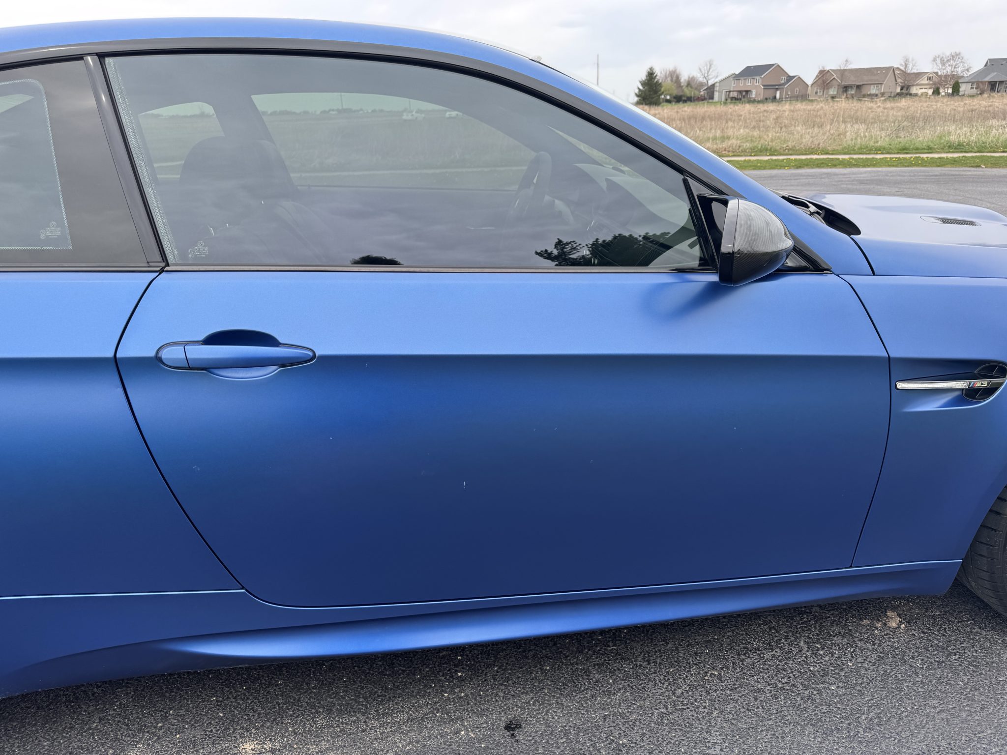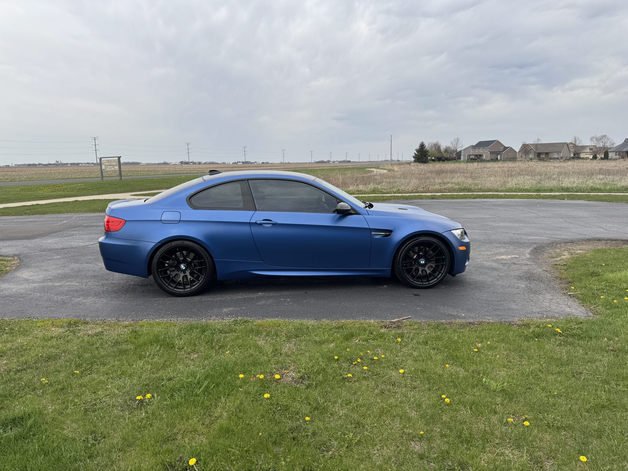 This 2013 BMW M3 coupe is one of 150 Frozen Edition examples produced for the US market and is powered by a 4.0-liter V8 linked with a six-speed manual transmission. It is finished in Frozen Blue Metallic over Black Novillo leather and is equipped with the Competition and Premium packages. Additional features include a limited-slip differential, a carbon-fiber roof panel, carbon-fiber mirror caps, and 19″ Style 359 wheels along with a flat-bottom M Performance steering wheel, metal pedals, heated power-adjustable front seats, and iDrive with navigation. The car was acquired by the current owner in 2016 and has 30k miles. This E92 M3 is now offered by the seller on behalf of the current owner with service records, a clean Carfax report, and a clean Illinois title. The car is finished in Frozen Blue Metallic (W91) and features Shadowline trim and a carbon-fiber roof panel. It also has adaptive xenon headlights, rain-sensing wipers, power-folding side mirrors, carbon-fiber mirror caps, a trunk lid spoiler, rear Park Distance Control, and quadruple exhaust outlets. The windows have been tinted. There are scuffs on the underside of the front bumper cover, and close-up photos of the exterior are provided in the gallery below. The 19″ Style 359 wheels are mounted with 245/35 front and 265/35 rear Michelin Pilot Sport 4S tires. Competition Package equipment includes a lowered ride height compared to the standard M3 as well as retuned Electronic Damping Control (EDC) and Dynamic Stability Control (DSC). Braking is handled by four-wheel vented and cross-drilled discs measuring 14.2″ and 13.8″ front and rear, respectively. The brake fluid was flushed in November 2024. The heated and power-adjustable front sport seats are upholstered in black Novillo leather, and Carbon Structure Leather trim accents the dashboard and doors. Features include metal pedals, driver seat position-memory settings, iDrive with navigation, Comfort Access keyless entry, a CD stereo, a power rear sunshade, dual-zone automatic climate control, and cruise control. The flat-bottom M Performance steering wheel features a blue centering stripe and tri-color stitching. It frames an M-branded tachometer, a 200-mph speedometer, a central information display, and gauges for oil temperature and fuel level. The digital odometer indicates 30k miles, approximately 3k of which have been added under current ownership. There is wear on the steering wheel. The 4.0-liter S65 V8 features double-VANOS variable valve timing and was factory rated at 414 horsepower and 295 lb-ft of torque. An oil change was most recently performed in November 2024. Power is sent to the rear wheels through a six-speed manual transmission and a Variable M Differential Lock. The Carfax report is free of accidents or other reported damage.
