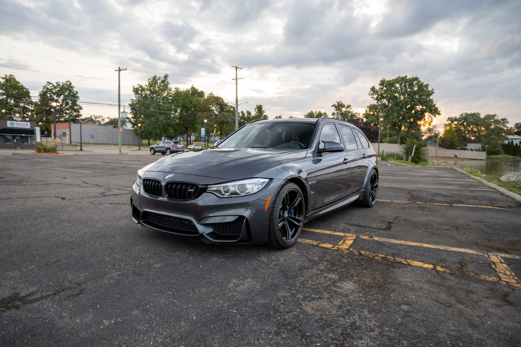 This 2014 BMW 328i xDrive Sports Wagon was acquired by the selling dealer in 2024 and subsequently modified with F80 M3 bodywork as well as the drivetrain, wiring harness, interior, suspension, and brakes from a 2015 M3. Now rear-wheel drive, the car is powered by a twin-turbocharged 3.0L S55 inline-six linked to a seven-speed M DCT dual-clutch transmission and the electronically controlled Active M differential. The car was refinished in Mineral Grey Metallic over Black Speed cloth and features adaptive xenon headlights, 19″ Style 437M alloy wheels, cross-drilled disc brakes, heated power-adjustable front sport seats, dual-zone automatic climate control, cruise control, and iDrive infotainment with navigation. This F31 is offered by the selling dealer with an accident-free Carfax report and a Michigan title. The M3’s front bumper cover, hood, front fenders, and adaptive xenon headlights were installed, the rear quarter panels were widened, and an M3 rear bumper cover was modified before the body was repainted Mineral Grey Metallic in 2024. Exterior details include Shadowline trim, roof rails, and a rear window wiper. The 19″ Style 437M alloy wheels were refinished and mounted with 255/35 front and 275/35 rear Michelin Pilot Sport tires. The M3’s steering and suspension components were also fitted, and the brakes were overhauled with blue-finished M-branded calipers fitted over cross-drilled rotors at each corner. The tie rods have been replaced. The Black Speed cloth sport seats were relocated into the wagon along with the carbon-fiber interior trim. The front seats are heated and power-adjustable, while the rear seats retain their folding functions. Appointments include driver’s seat position memory, dual-zone automatic climate control, cruise control, and iDrive infotainment with navigation and a backup camera. The leather-wrapped multifunction steering wheel features paddle shifters and frames the M3’s gauge cluster, including a 200-mph speedometer and an 8,500-rpm tachometer as well as gauges for fuel level and oil temperature. Before the conversion, the 328i had just over 132k miles. The replacement M3 donor odometer indicates 63k miles, approximately 1k of which were added by the selling dealer. The M3’s twin-turbocharged 3.0-liter S55 inline-six was factory rated at 425 horsepower and 406 lb-ft of torque, and the M3’s wiring harness is also equipped. Fluid services were performed, and the Valvetronic actuator and eccentric shaft were replaced in January 2025. Power is sent to the rear wheels through the seven-speed M DCT dual-clutch transmission and the electronically controlled Active M differential from the M3, from which the exhaust system and subframes were also sourced. The Carfax report lists one open recall.