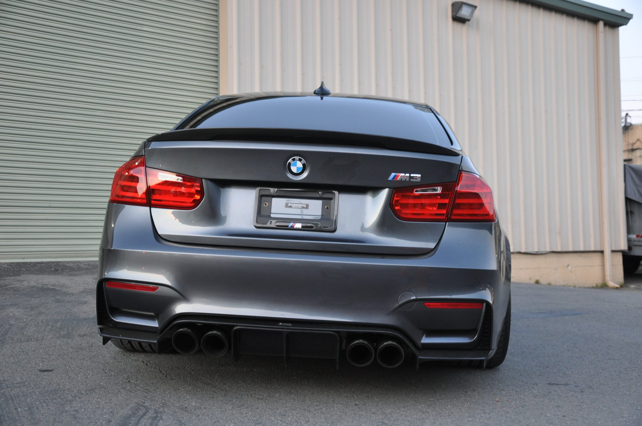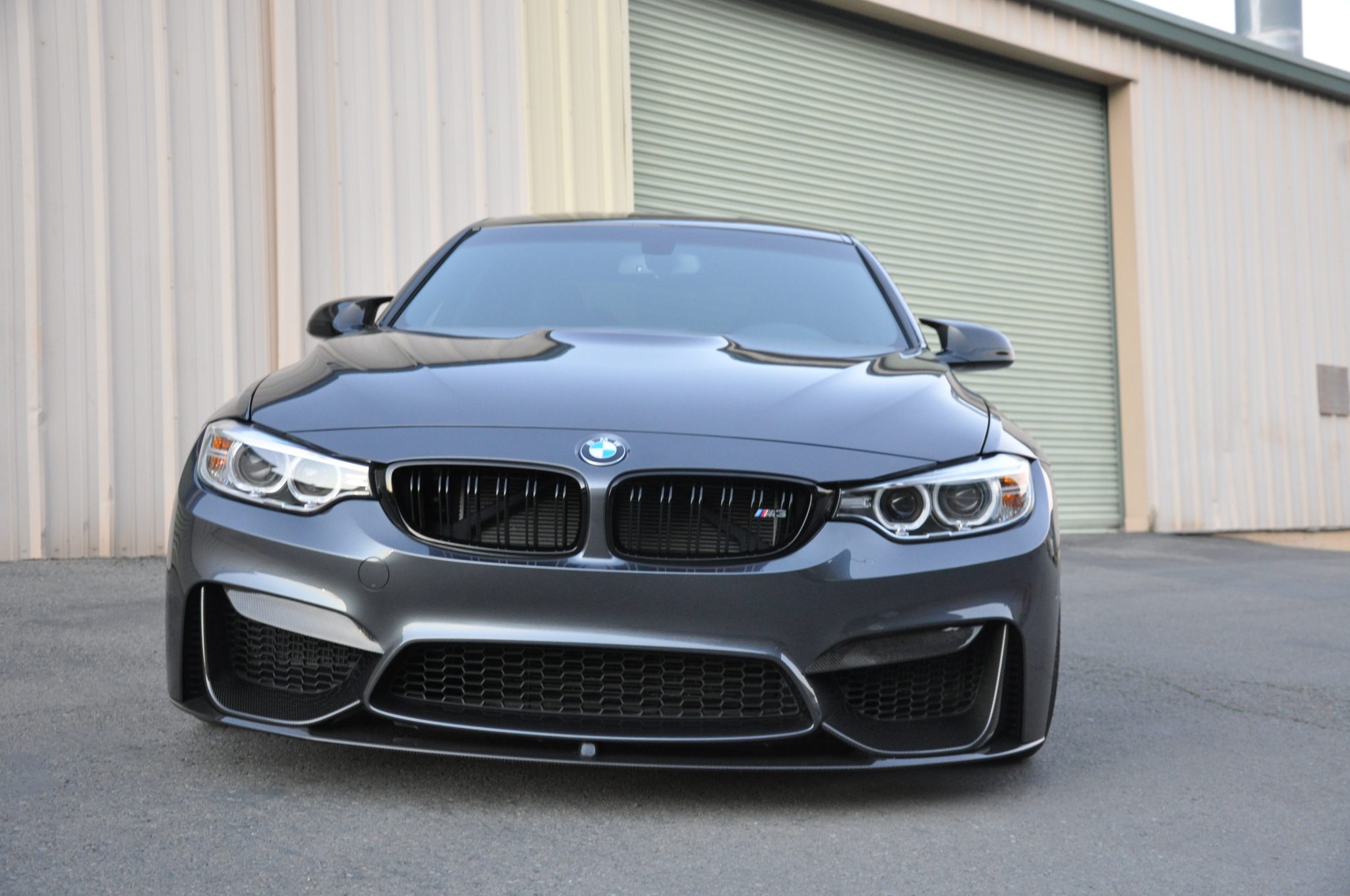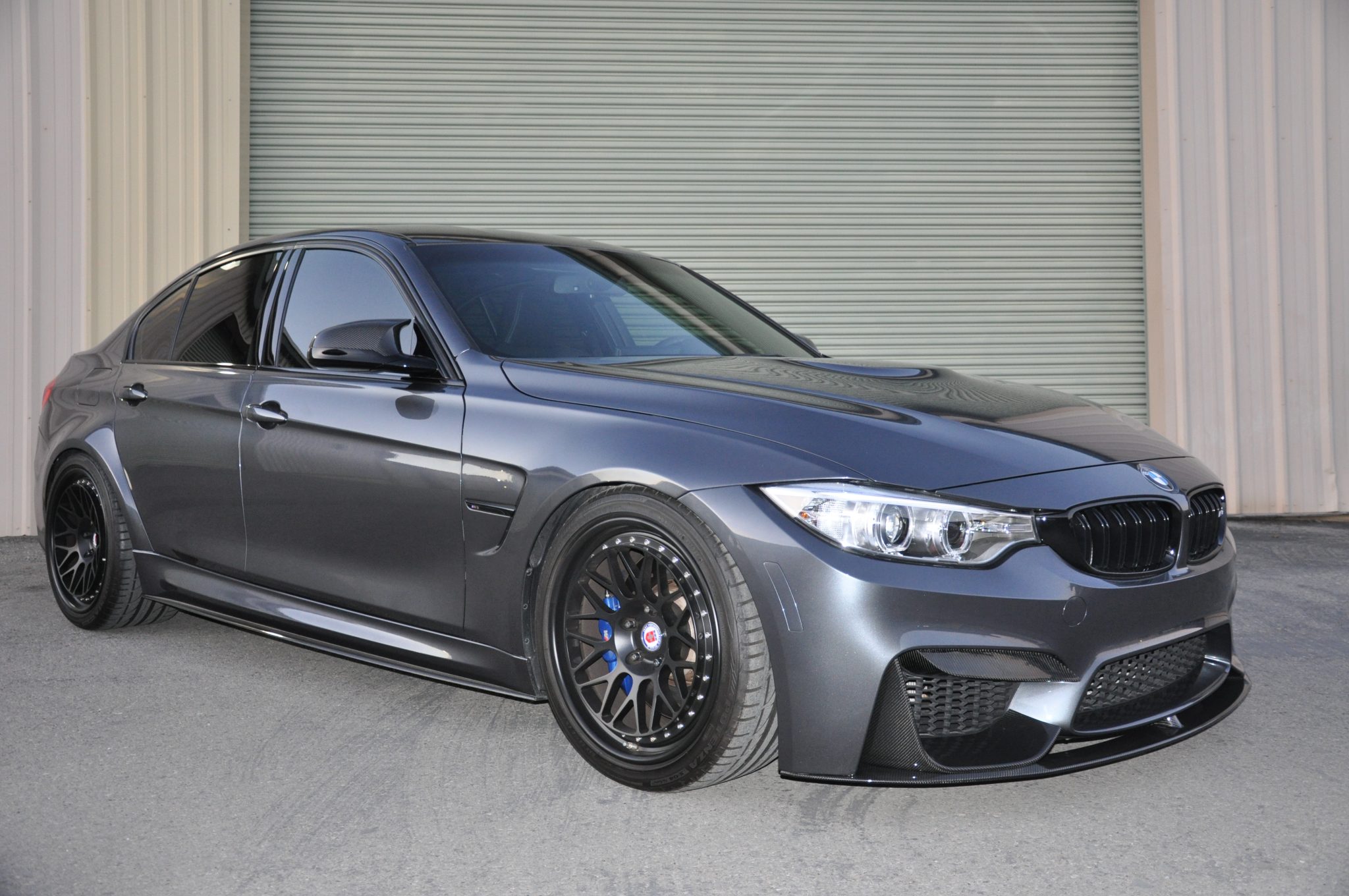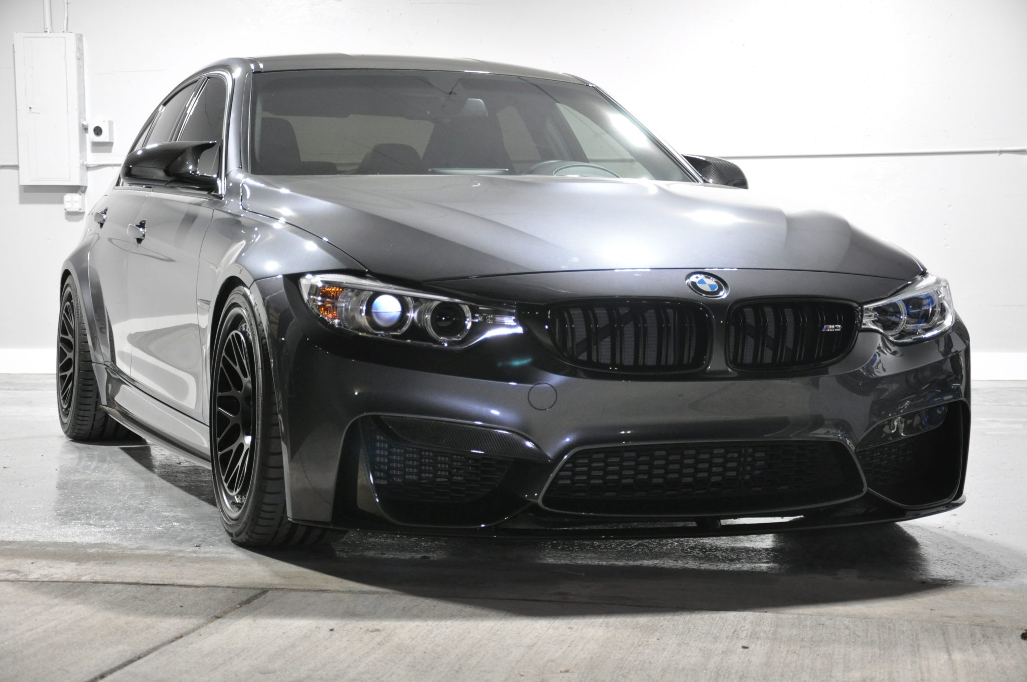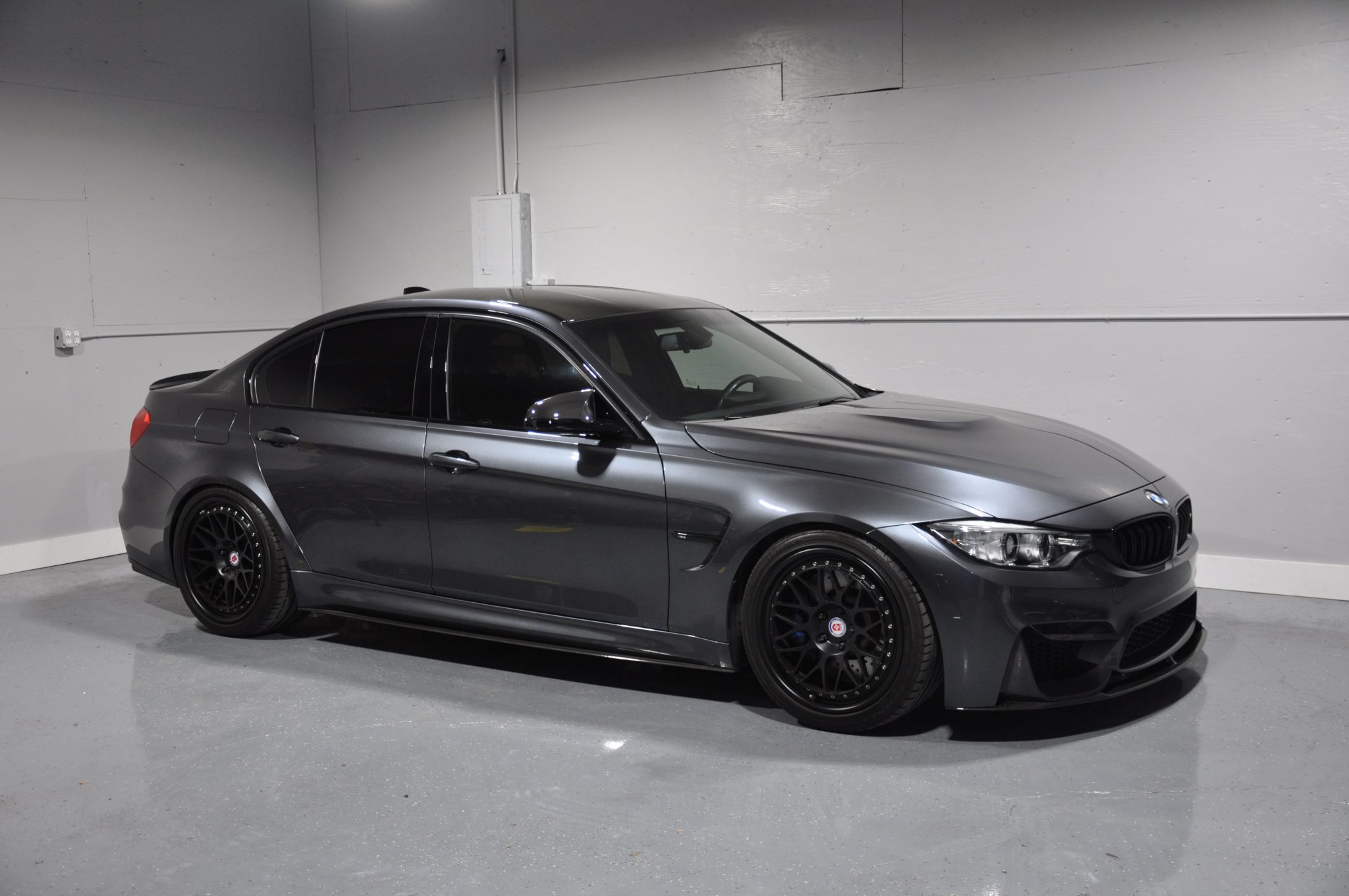 This 2015 BMW M3 is finished in Mineral Grey Metallic over black Merino leather and is powered by a twin-turbocharged 3.0-liter S55 inline-six paired with a six-speed manual transmission and a limited-slip differential. Factory equipment includes a carbon-fiber roof panel, navigation, a Harman Kardon sound system, heated front and rear seats, and adaptive xenon headlights. The car has remained registered in California since new, and modifications are said to include 19” HRE wheels, KW height-adjustable lowering springs, Evolution Racewerks charge pipes, an AWE intake, a Remus exhaust system, and carbon-fiber exterior components. This F80 M3 has 11k miles and is offered by the selling dealer with manufacturer’s literature, a clean Carfax report, and a clean California title. The F80 M3 featured widened bodywork along with unique fender vents and bumpers when compared to the contemporary 3-series. This example is finished in Mineral Grey Metallic (B39) and features a carbon-fiber roof panel as well as Shadowline trim and adaptive xenon headlamps. Window tint film has been applied to the glass, and aftermarket carbon-fiber additions include a front splitter, rear diffuser, decklid spoiler, mirror caps, and side skirts. Two-piece 19” HRE forged wheels are mounted with 265/35 front and 295/30 rear Bridgestone Potenza S-04 Pole Position tires. The car is said to have been fitted with KW height-adjustable lowering springs utilizing the factory dampers, and stopping power is provided by cross-drilled rotors with blue M-branded calipers at all four corners. The cabin features heated front and rear seats upholstered in black Merino leather with a matching dashboard, door panels, and carpets. Aluminum trim adorns the dash and and center console, and amenities include a factory infotainment system with navigation, a Harman Kardon sound system, dual-zone automatic climate control, cruise control, and an M-branded shift knob. The multifunction M-Performance steering wheel frames a 200-mph speedometer and a tachometer with a variable redline as well as gauges for oil temperature and fuel level. The digital odometer indicates 11k miles. The twin-turbocharged 3.0-liter S55 inline-six features Valvetronic variable valve timing and double-VANOS variable camshaft timing. A carbon-fiber front end strut brace spans the engine bay, and modifications are said to consist of an AWE carbon-fiber intake, Evolution Racewerks charge pipes, and a Remus exhaust system. An engine oil change was performed in December 2021. Power is sent to the rear wheels via a six-speed manual transmission and a limited-slip differential. The Carfax report shows no accidents or other damage and lists history in California since new.