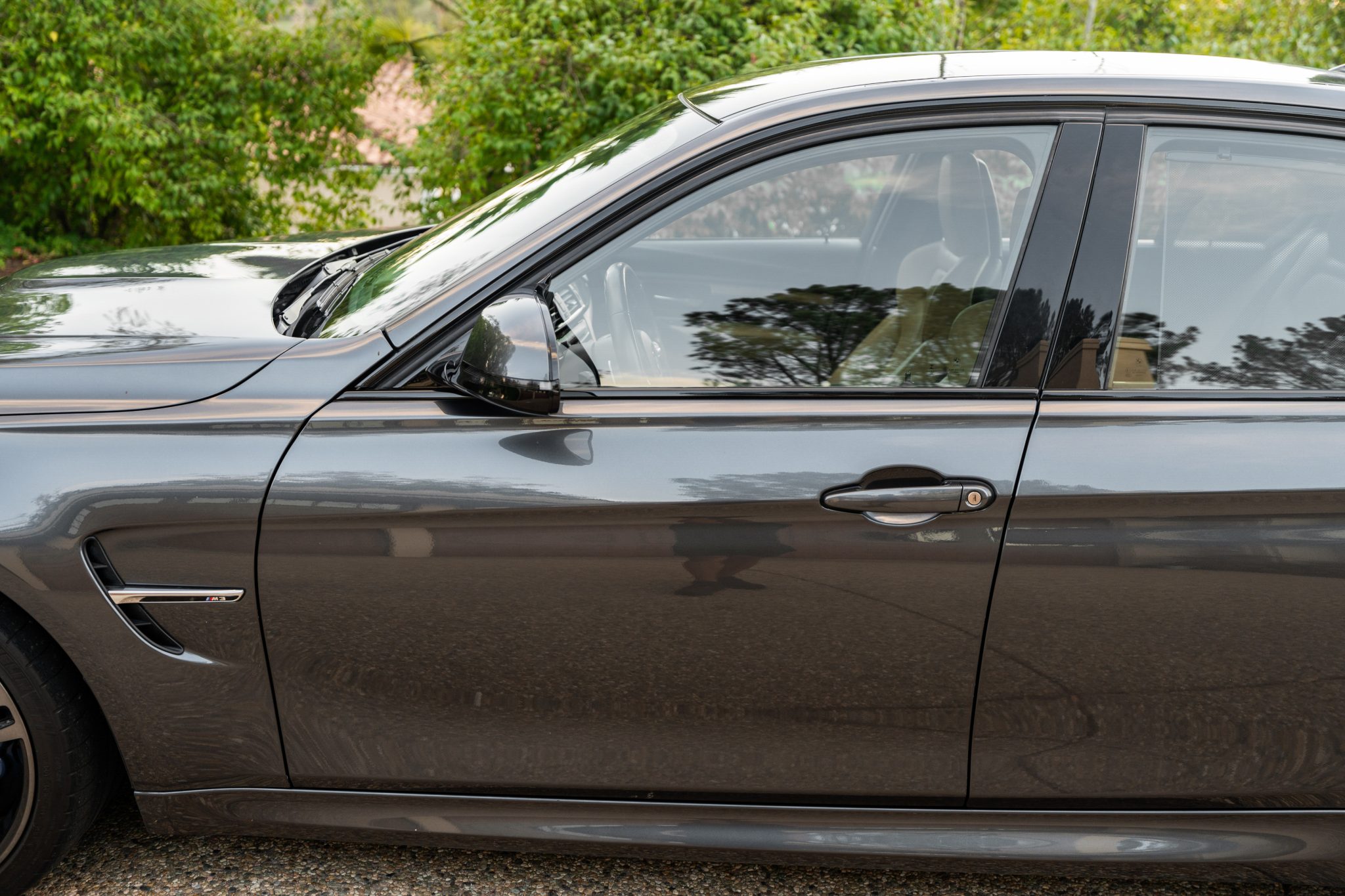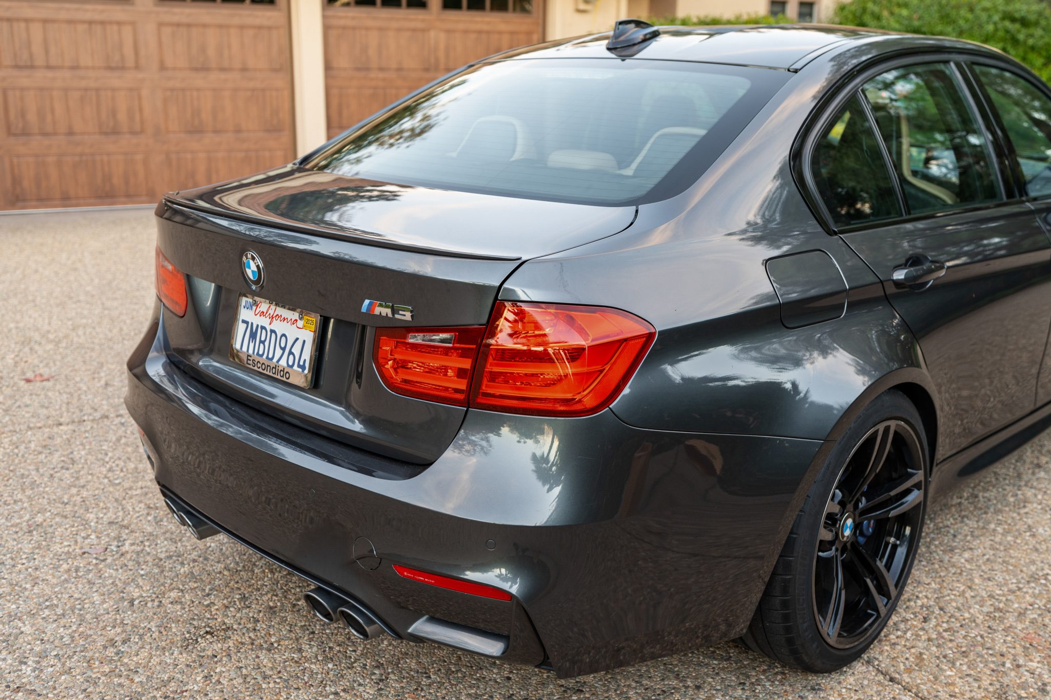 This 2015 BMW M3 was purchased new by the seller and is powered by a twin-turbocharged 3.0-liter inline-six paired with a seven-speed M DCT dual-clutch transmission. Finished in Mineral Gray Metallic over Sonoma Beige leather upholstery, it is equipped with an Active M differential, 19″ Style 437M alloy wheels, adaptive LED headlights, a rearview camera, Comfort Access, and Park Distance Control along with a heated steering wheel, a head-up display, heated front and rear seats, Harman Kardon audio, and iDrive infotainment with navigation. This F30 has 20k miles and is now offered with owner’s manuals, spare keys, a clean Carfax report, and a clean California title in the seller’s name. The F80 M3 featured widened bodywork along with revised fender vents and bumpers compared to the standard 3 series. This example is finished in Mineral Gray Metallic and features adaptive LED headlights with washers as well as, front and rear Park Distance Control sensors, auto-dimming mirrors, LED taillights, a decklid spoiler, a rearview camera, and a sport exhaust system with quad exhaust tips. A dent in the left-rear fender has been repaired with subsequent paintwork, and a close-up photo showing a ding in the left-front door is provided in the gallery below. Style 437M 19″ alloy wheels with black-finished recesses are mounted with 255/35 front and 275/35 rear Michelin Pilot Super Sport tires. The car is equipped with an Adaptive M suspension, M Dynamic Mode, and Dynamic Stability Control. Braking is handled by blue-finished M-branded calipers along with cross-drilled and ventilated rotors, and the fluid was flushed in August 2024. The heated power-adjustable front sport seats are trimmed in Sonoma Beige Merino leather, and the lower dashboard, door panels, and heated rear seats are trimmed to match. Carbon fiber accents the cabin, which is further appointed with a Harman Kardon sound system, a CD stereo, a head-up display, and an auto-dimming rearview mirror with a compass along with Comfort Access keyless entry, cruise control, dual-zone automatic climate control, driver-seat position memory, rear-side sun shades, and iDrive infotainment with navigation. The heated multifunction steering wheel frames a 200-mph speedometer, an 8,500-rpm tachometer, and gauges for oil temperature and fuel level. The digital odometer indicates 20k miles, all of which were added under current ownership. Wear on the leather steering-wheel wrap is depicted in the gallery. The twin-turbocharged 3.0-liter S55 inline-six was factory rated at 425 horsepower and 406 lb-ft of torque. The oil was most recently changed in August 2024, and the spark plugs were replaced at that time. Power is sent to the rear wheels through a seven-speed M DCT dual-clutch transmission and an electronically controlled Active M differential. Owner’s manuals will accompany the car. The Carfax report indicates no accidents or other damage.