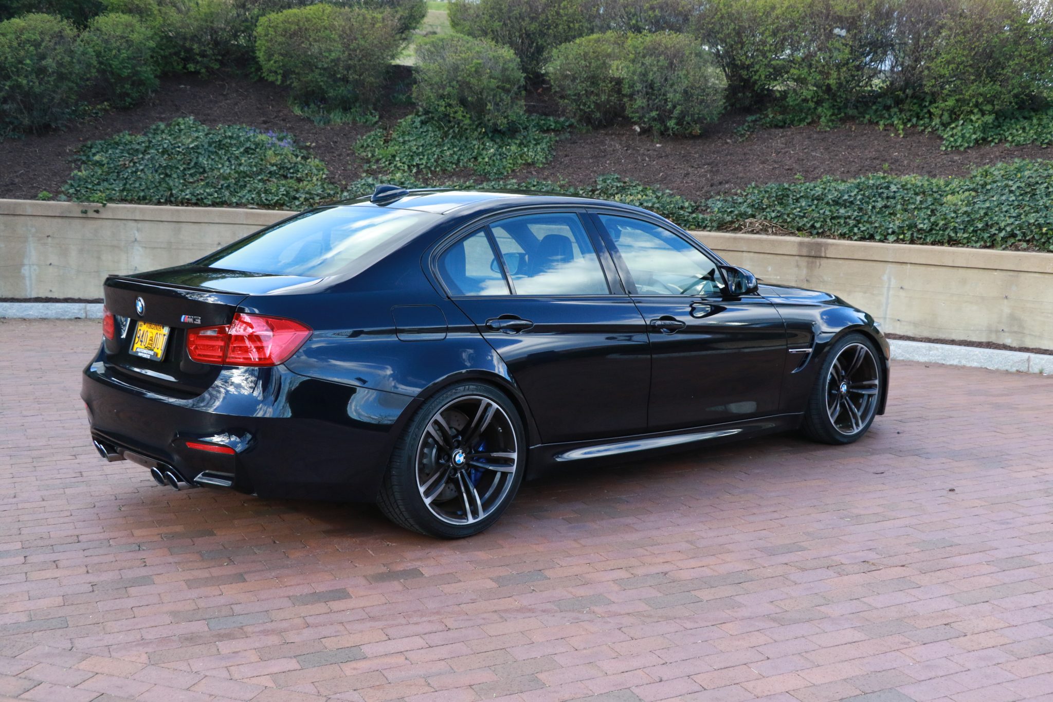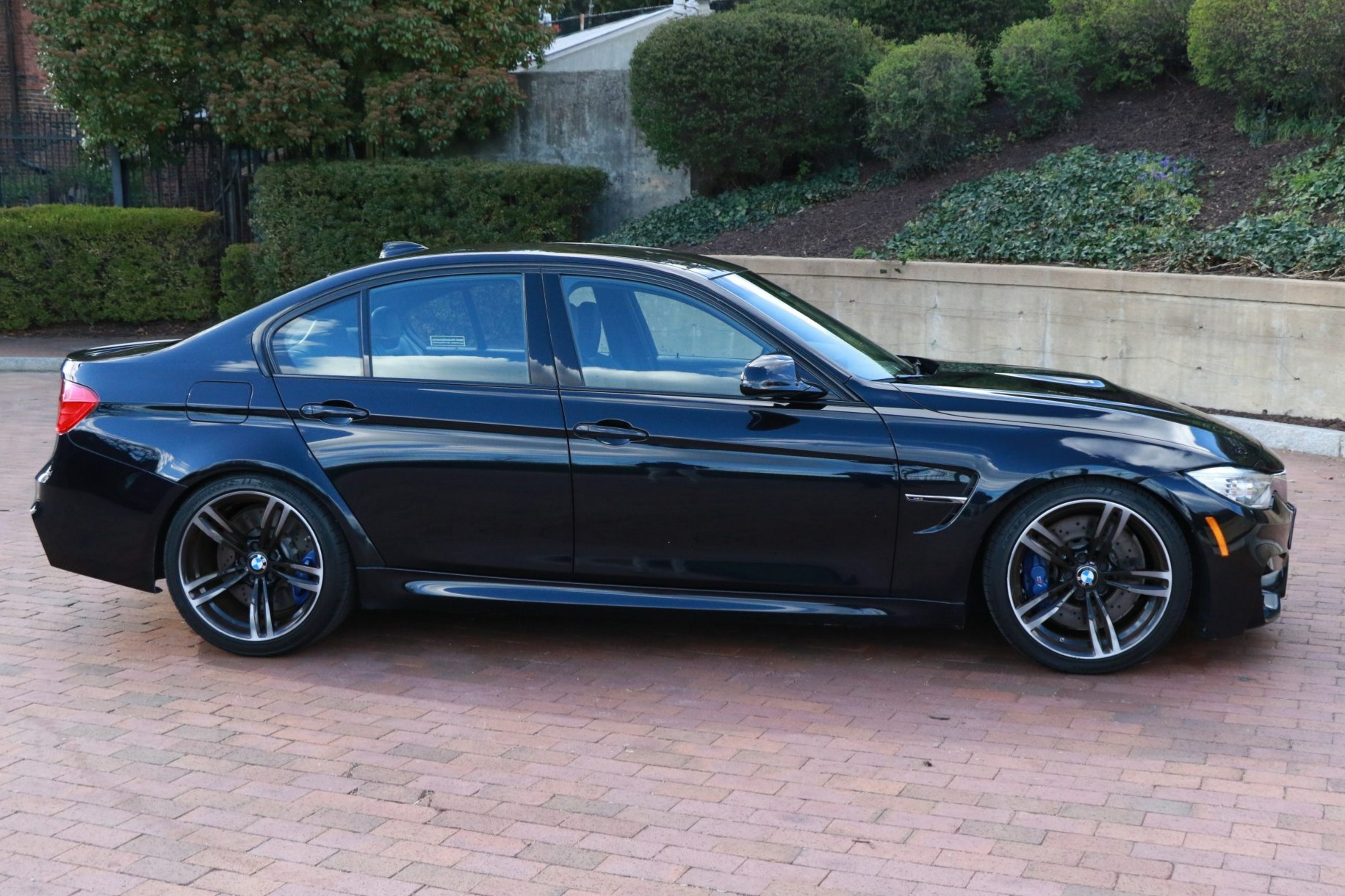This 2015 BMW M3 sedan is powered by a twin-turbocharged 3.0-liter S55 inline-six paired with a seven-speed M DCT dual-clutch transmission and is finished in Azurite Black Metallic over black Merino leather upholstery. Equipment includes an Active M differential, 19″ Style 437M alloy wheels, Macht Schnell lowering springs, wheel spacers, adaptive LED headlights, a rear spoiler, heated power-adjustable front seats, heated rear seats, carbon-fiber interior trim, a Harman Kardon sound system, a CD stereo, and iDrive with navigation. The car has spent time in California, Colorado, Connecticut, and Virginia through the seller’s acquisition in 2018 and now has 80k miles. This F80 M3 is now offered at no reserve with service records, a clean Carfax report, and a clean Virginia title in the seller’s name. The F80 M3 featured widened bodywork along with revised fender vents and bumpers compared to the standard 3 series. This example is finished in Azurite Black Metallic with Shadowline trim and features adaptive LED headlights, a rear decklid spoiler, and a sport exhaust system with quad exhaust tips. Ceramic coating is said to have been applied in June 2022. Scrapes are noted on the underside of the front bumper cover, and a scratch is located on the right C-pillar. The 19″ Style 437M alloy wheels feature wheel spacers and are mounted with 255/35 front and 275/35 rear Kumho Ecsta PA51 tires showing 2021 date codes. The car is equipped with Macht Schnell lowering springs and M Dynamic Mode with Dynamic Stability Control. Braking is handled by blue-finished M-branded calipers fitted over cross-drilled and ventilated rotors at all four corners. Chipping in the finish is noted on the wheels, which are said to have been refinished under current ownership. The cabin features seating surfaces upholstered in black Merino leather along with carbon-fiber trim on the dashboard and center console. Additional appointments include heated power-adjustable front sport seats, heated rear seats, a Harman Kardon sound system, dual-zone automatic climate control, cruise control, and iDrive infotainment with navigation. The leather-wrapped multifunction steering wheel features paddle shifters and frames a 200-mph speedometer, an 8,500-rpm tachometer, and gauges for oil temperature and fuel level. The digital odometer indicates 80k miles. The twin-turbocharged 3.0-liter S55 inline-six was factory rated at 425 horsepower and 406 lb-ft of torque. The valve cover and spark plugs were replaced in April 2021, replacement air filters were fitted in September 2022, and work in 2023 included changing the oil and replacing the oil pan gasket. Power is sent to the rear wheels through a seven-speed M DCT dual-clutch transmission and an electronically controlled Active M differential. The Carfax report shows no accidents or other damage and lists history in California, Colorado, Connecticut, and Virginia.