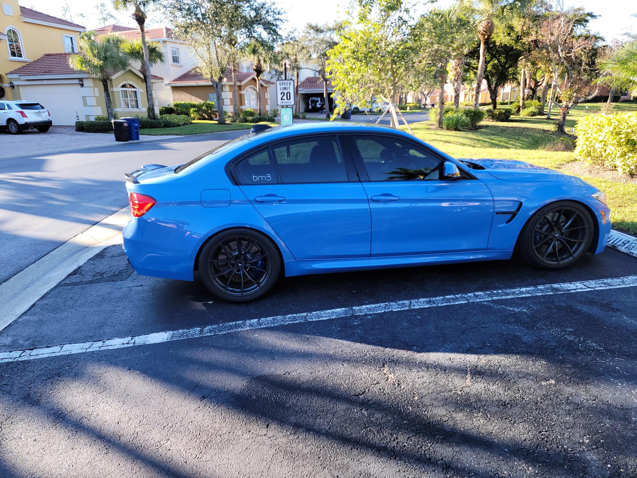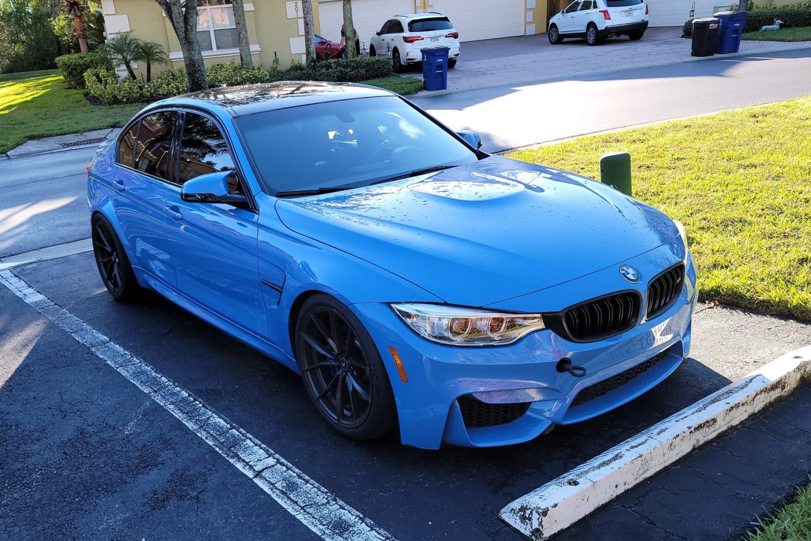 This 2015 BMW M3 sedan is powered by a twin-turbocharged 3.0-liter S55 inline-six that is said to have been rebuilt with forged internals and fitted with Kratos Gen II turbochargers as well as a Fuel-It Stage 4 fuel system and a three-map ECU tune. Additional modifications include Schrick camshafts, a HeadGames ported cylinder head, Vorsteiner 19″ wheels, Ohlins coilover suspension, and a Dodson Motorsports clutch. Shifting is via a seven-speed M DCT dual-clutch transmission, and the car is finished in Yas Marina Blue Metallic over Anthracite Carbon Structure cloth and black leather. Other features include adaptive xenon headlights, an Active M differential, heated front seats, carbon-fiber trim, and navigation. The seller purchased the car in 2015 and has since added approximately 26k of the 33k miles. This F80 M3 is now offered with manufacturer’s literature, build records, a clean Carfax report, and a clean Florida title in the seller’s name. The F80 M3 featured widened bodywork along with revised fender vents and bumpers compared to the standard 3 series. This example is finished in Yas Marina Blue Metallic with Shadowline trim and features adaptive xenon headlights, a carbon-fiber roof panel, tinted windows, a rear decklid spoiler, and a sport exhaust system with quad exhaust tips. The Vorsteiner 19″ wheels are mounted with staggered-width Toyo R888 tires. Ohlins coilover suspension has been added, and braking is handled by blue-finished M-branded calipers fitted over cross-drilled and ventilated rotors at all four corners. The cabin features seating surfaces upholstered in Anthracite Carbon Structure cloth and black leather along with carbon-fiber trim on the dashboard and center console. Additional appointments include heated and power-adjustable front seats, Comfort Access keyless entry, carbon-fiber trim, dual-zone automatic climate control, cruise control, and iDrive infotainment with navigation. The leather-wrapped multifunction steering wheel features paddle shifters and frames a 200-mph speedometer, an 8,500-rpm tachometer, and gauges for oil temperature and fuel level. The digital odometer indicates 33k miles, approximately 26k of which were added under current ownership. The twin-turbocharged 3.0-liter S55 inline-six is said to have been built with a HeadGames Motorsports ported cylinder head as well as Schrick camshafts and CP-Carrillo forged pistons and connecting rods approximately 1k miles ago. Additional modifications include KRASS55EVO Gen II turbochargers, a Fuel-It Stage 4 fuel system with EU5 injectors, a Dorsch Engineering high-pressure fuel pump, and a bootmod3 ECU tune. Receipts for the build totaling approximately $40k are viewable in the image gallery below. Dyno results indicating a peak output of 702 wheel horsepower on 93 octane fuel and 1066 wheel horsepower on race gas are also viewable in the gallery. Power is sent to the rear wheels through a seven-speed M DCT dual-clutch transmission and an electronically controlled Active M differential. Upgraded axle shafts have been installed, and the transmission has been modified with a Dodson Sportsman Plus clutch kit and an xHP tune. The car is not equipped with catalytic converters. The Carfax report shows no accidents or other damage and lists registration history with two owners in Florida. The Florida title is listed as a duplicate.