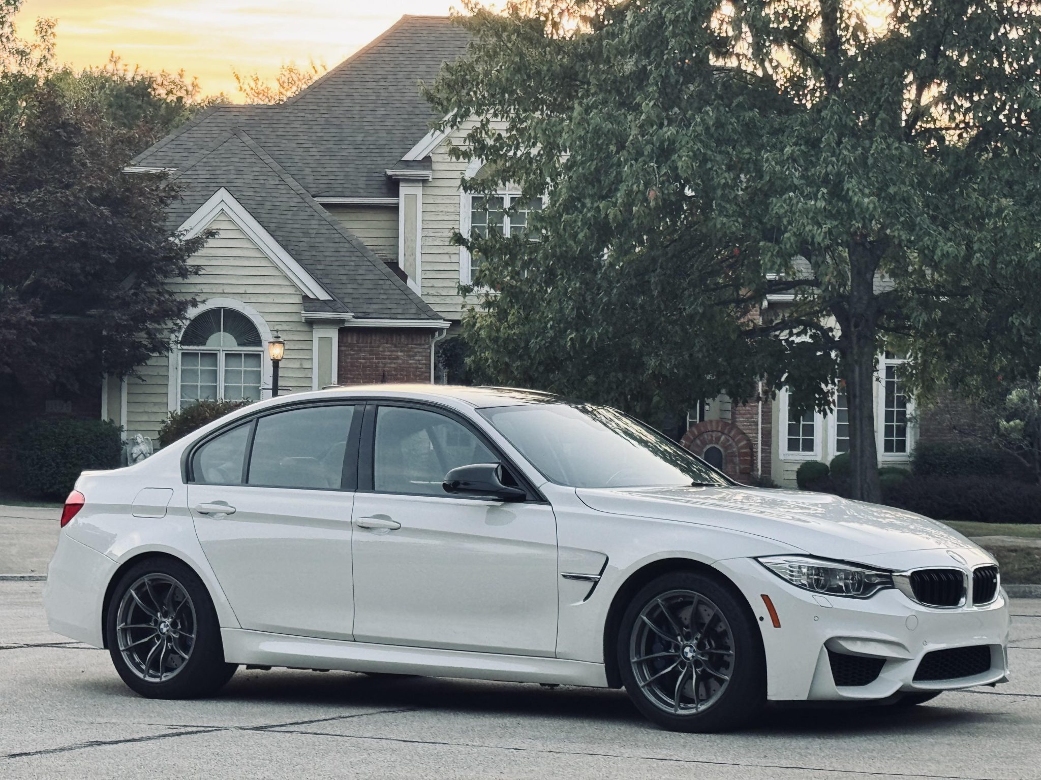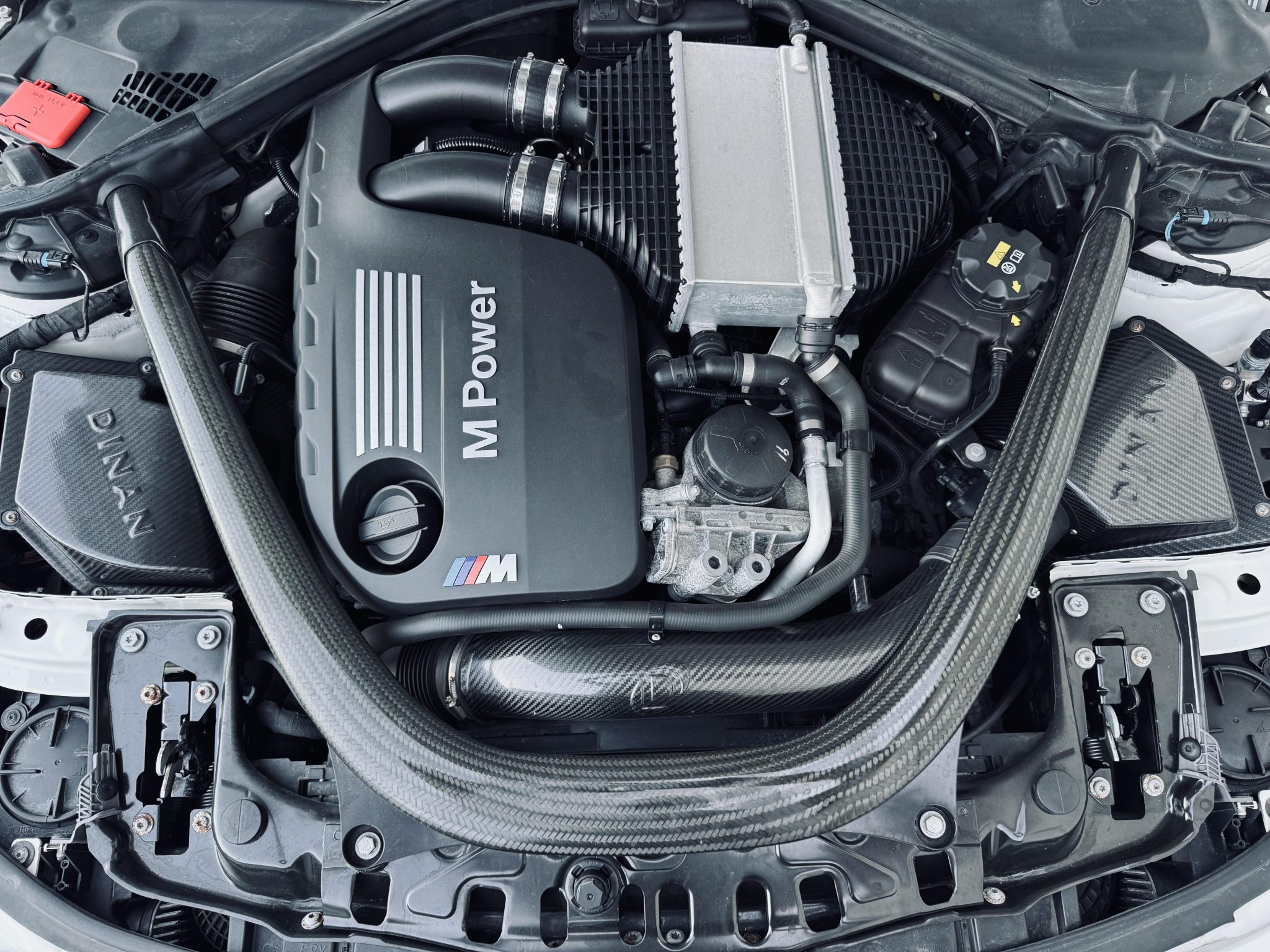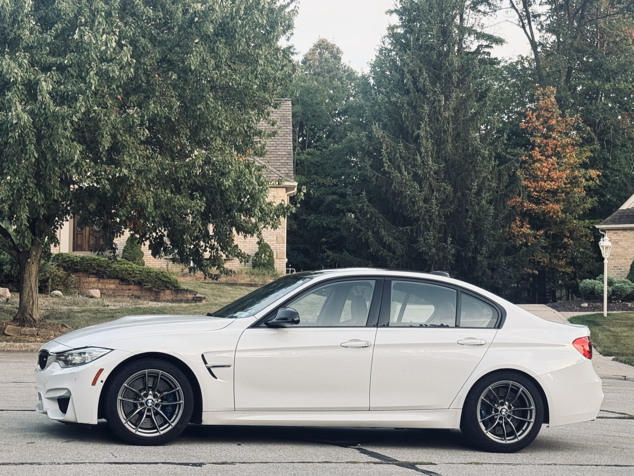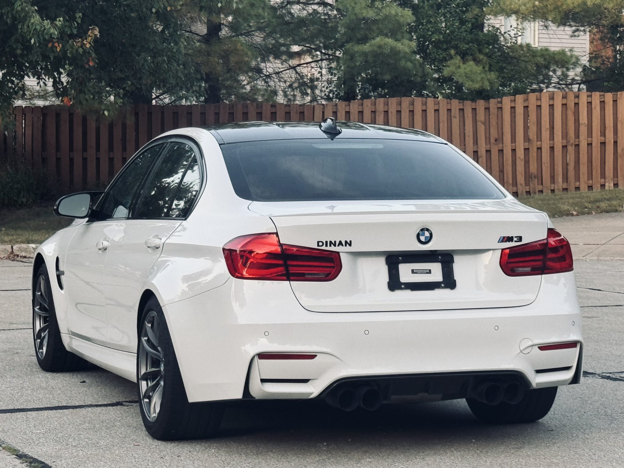 This 2016 BMW M3 sedan is finished in Alpine White over Sonoma Beige Merino leather and is powered by a twin-turbocharged 3.0-liter S55 inline-six paired with a six-speed manual transmission. Modifications include a Dinan tune, exhaust, intercooler, and carbon-fiber air-intake system. Retained factory equipment comprises the Executive and Lighting packages as well as a carbon-fiber roof, Surround View, 18″ Style 513M wheels, adaptive LED headlights, a head-up display, a Harman Kardon sound system, and a heated steering wheel and seats. The car remained registered on the East Coast until the selling dealer’s 2025 acquisition, and they have since added approximately 1,500 of the 81k indicated miles. This F80 M3 is now offered by the selling dealer at no reserve with the owner’s manual and a clean Ohio title. The F80 M3 featured widened bodywork along with revised fender vents and bumpers compared to the standard 3 series. This example is finished in Alpine White with Shadowline trim and features a carbon-fiber roof panel, adaptive LED headlights, carbon-fiber mirror caps, Park Distance Control, and a rear decklid spoiler. The Carfax report notes a damage entry in April 2025 with no additional information provided. The selling dealer tells us that clear paint protection film covers the body, and scrapes are visible on the corners of the front bumper cover. The 18″ Style 513M alloy wheels are mounted with 255/40 front and 275/40 rear Michelin Pilot Super Sport tires that have date codes from 2023. The right-rear wheel has curb marks. The car is equipped with Adaptive M suspension and M Dynamic Mode with Dynamic Stability Control (DSC). Braking is handled by blue-finished M-branded calipers fitted over cross-drilled and ventilated rotors at all four corners. The heated power-adjustable front Sport seats and heated rear seats are upholstered in Sonoma Beige Merino leather and complemented by a black dashboard and carpets. Carbon-fiber trim adorns the cabin, and other appointments comprise a Surround View camera system, a head-up display, a Harman Kardon sound system, Comfort Access keyless entry, dual-zone automatic climate control, cruise control, and iDrive infotainment with navigation. The heated leather-wrapped multifunction steering wheel frames factory instrumentation. The steering wheel rim is worn. The digital odometer indicates 81k miles, approximately 1,500 of which were added by the selling dealer. The twin-turbocharged 3.0-liter S55 inline-six is modified with a Dinan intercooler, tune, exhaust system, and carbon-fiber air-intake system. The oil was changed in September 2025. Power is sent to the rear wheels through a six-speed manual transmission and an electronically controlled Active M differential. The Carfax report notes the aforementioned damage entry.