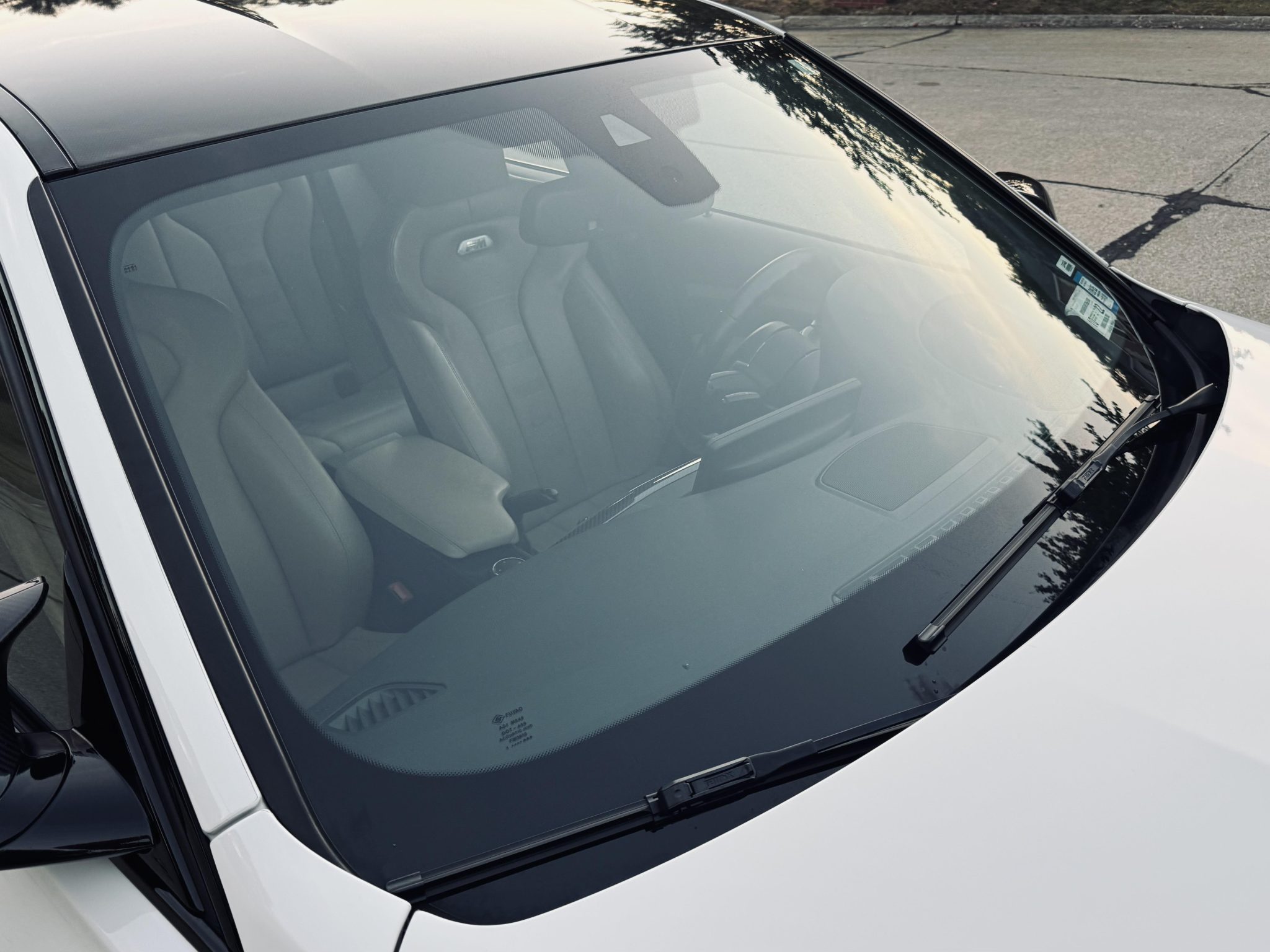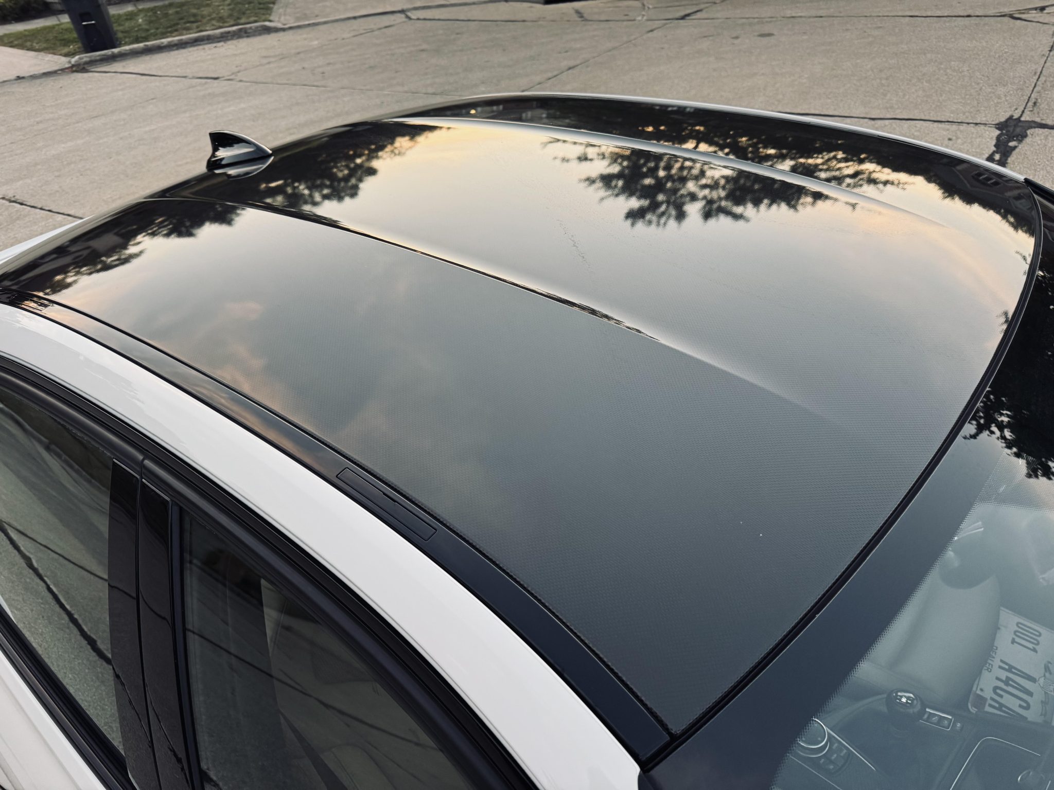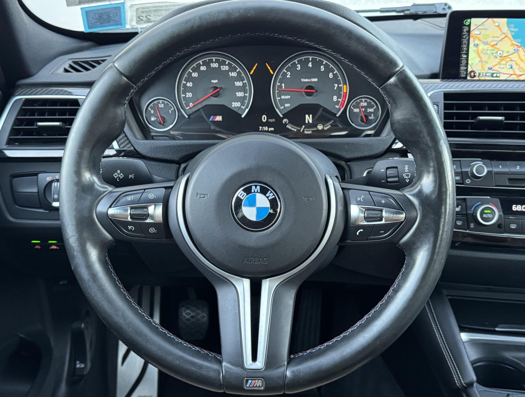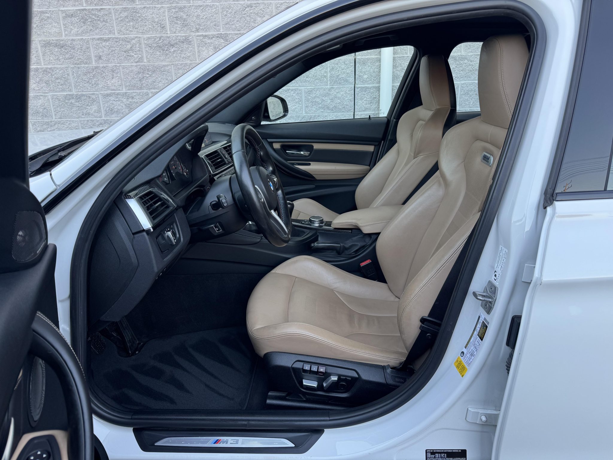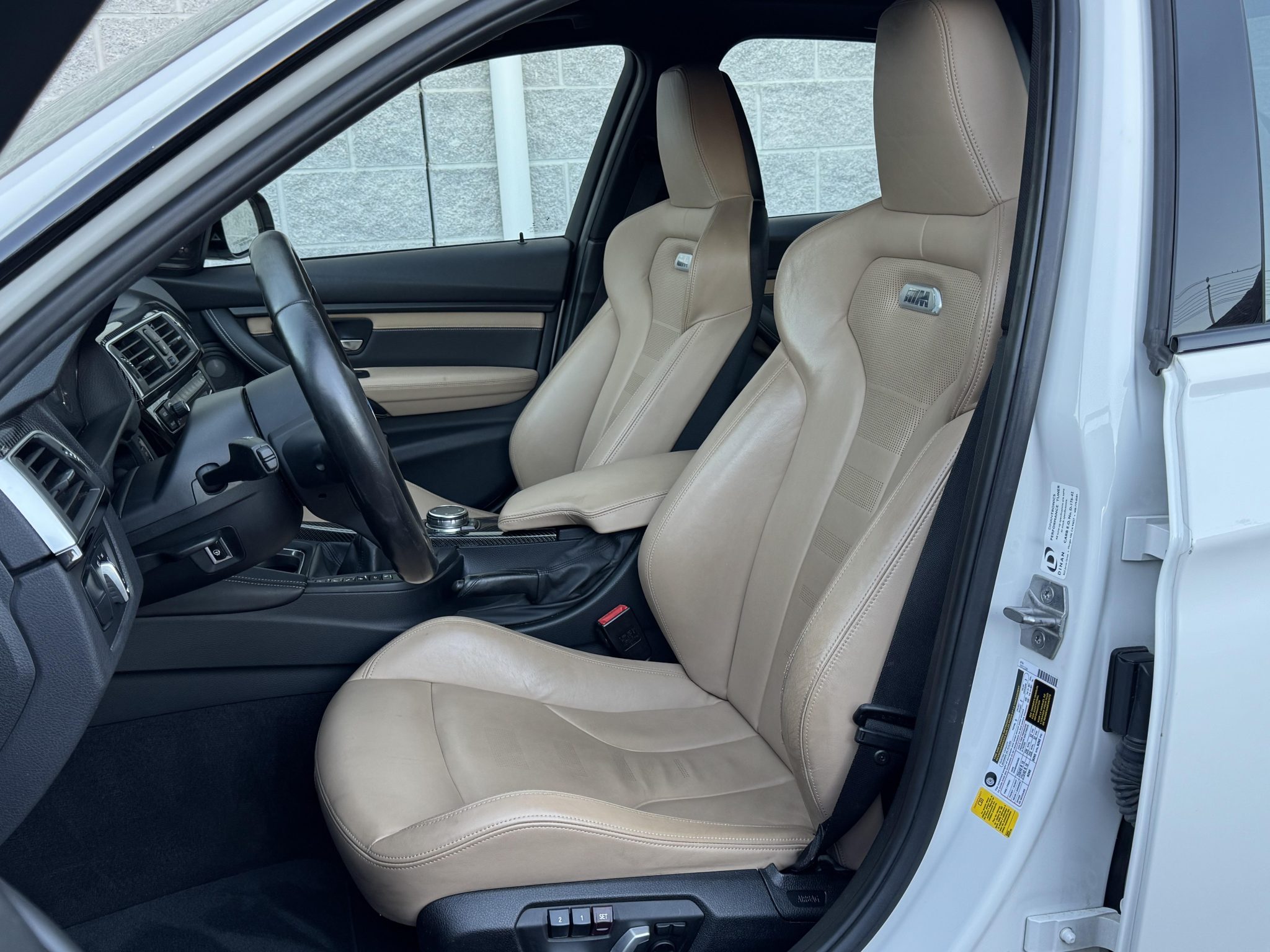This 2016 BMW M3 sedan is finished in Alpine White over Sonoma Beige Merino leather and is powered by a twin-turbocharged 3.0-liter S55 inline-six paired with a six-speed manual transmission. Modifications include a Dinan tune, exhaust, intercooler, and carbon-fiber air-intake system. Retained factory equipment comprises the Executive and Lighting packages as well as a carbon-fiber roof, Surround View, 18″ Style 513M wheels, adaptive LED headlights, a head-up display, a Harman Kardon sound system, and a heated steering wheel and seats. The car remained registered on the East Coast until the selling dealer’s 2025 acquisition, and they have since added approximately 1,500 of the 81k indicated miles. This F80 M3 is now offered by the selling dealer at no reserve with the owner’s manual and a clean Ohio title. The F80 M3 featured widened bodywork along with revised fender vents and bumpers compared to the standard 3 series. This example is finished in Alpine White with Shadowline trim and features a carbon-fiber roof panel, adaptive LED headlights, carbon-fiber mirror caps, Park Distance Control, and a rear decklid spoiler. The Carfax report notes a damage entry in April 2025 with no additional information provided. The selling dealer tells us that clear paint protection film covers the body, and scrapes are visible on the corners of the front bumper cover. The 18″ Style 513M alloy wheels are mounted with 255/40 front and 275/40 rear Michelin Pilot Super Sport tires that have date codes from 2023. The right-rear wheel has curb marks. The car is equipped with Adaptive M suspension and M Dynamic Mode with Dynamic Stability Control (DSC). Braking is handled by blue-finished M-branded calipers fitted over cross-drilled and ventilated rotors at all four corners. The heated power-adjustable front Sport seats and heated rear seats are upholstered in Sonoma Beige Merino leather and complemented by a black dashboard and carpets. Carbon-fiber trim adorns the cabin, and other appointments comprise a Surround View camera system, a head-up display, a Harman Kardon sound system, Comfort Access keyless entry, dual-zone automatic climate control, cruise control, and iDrive infotainment with navigation. The heated leather-wrapped multifunction steering wheel frames factory instrumentation. The steering wheel rim is worn. The digital odometer indicates 81k miles, approximately 1,500 of which were added by the selling dealer. The twin-turbocharged 3.0-liter S55 inline-six is modified with a Dinan intercooler, tune, exhaust system, and carbon-fiber air-intake system. The oil was changed in September 2025. Power is sent to the rear wheels through a six-speed manual transmission and an electronically controlled Active M differential. The Carfax report notes the aforementioned damage entry.