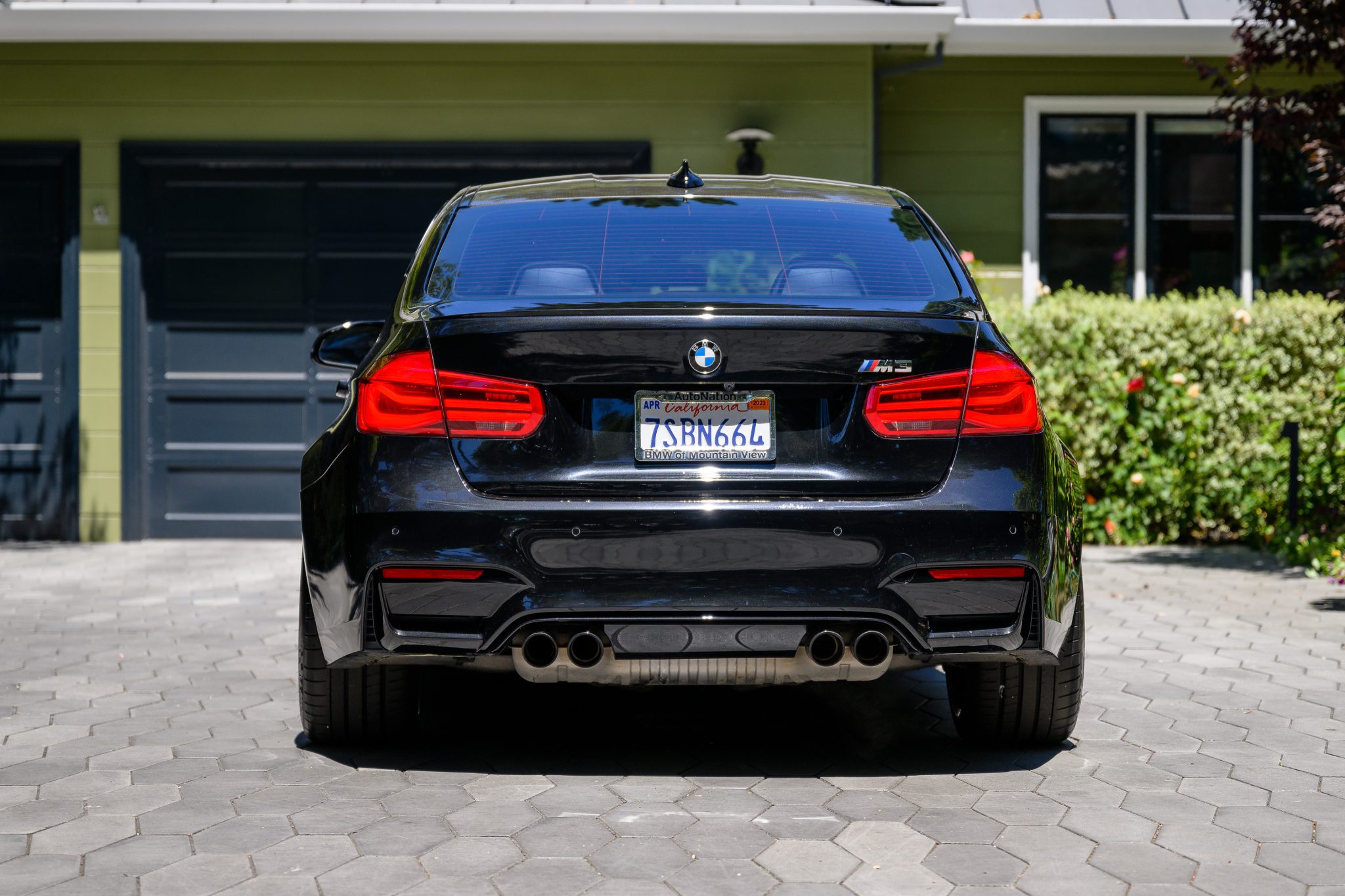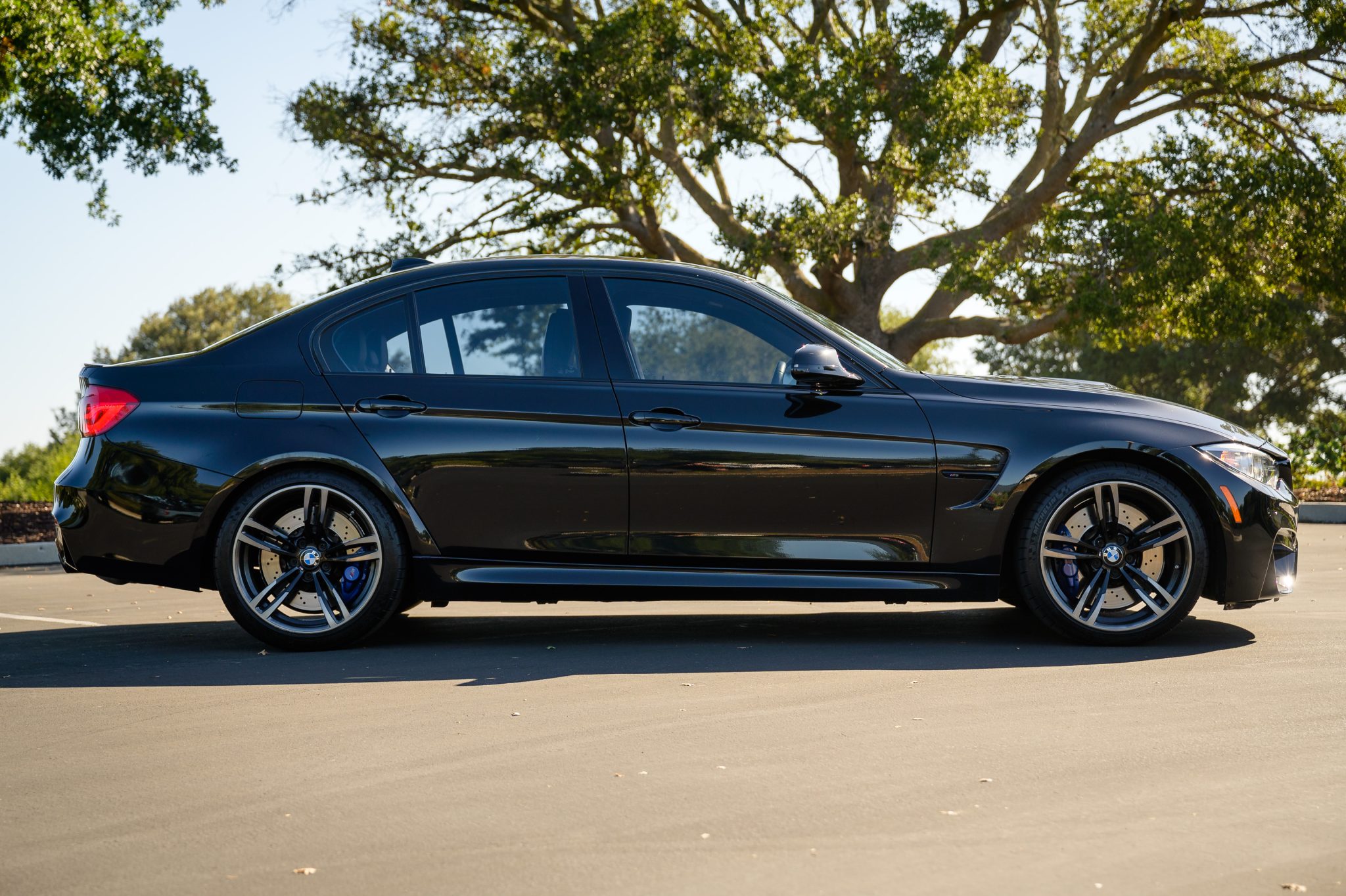 This 2016 BMW M3 sedan is finished in Black Sapphire Metallic over black Merino leather upholstery and powered by a twin-turbocharged 3.0L inline-six mated to a six-speed manual transmission and a limited-slip differential. Equipment includes 19″ style 437M wheels, adaptive xenon headlights, a heated steering wheel, a rearview camera, headlight washers, Park Distance Control (PDC), a head-up display, heated front and rear seats, a Harman Kardon sound system, and an iDrive infotainment system with navigation. The car was purchased new by the seller at BMW of Mountain View in California, and recent work consisted of changing the oil and replacing the cabin and intake air filters. This F80 M3 has 29k miles and is now offered at no reserve with service records, a window sticker, manufacturer’s literature, two key fobs, a clean Carfax report, and a clean California title in the seller’s name. The car is finished in Black Sapphire Metallic (475) and is equipped with M3-specific bodywork consisting of flared fenders, vented front fenders, revised front and rear bumper covers, a rear lip spoiler, a carbon-fiber roof panel, and aerodynamic wing mirrors. Aftermarket exhaust finishers have been fitted, and additional details include adaptive xenon headlights, Shadowline trim, Park Distance Control, and a rearview camera. The wiper blades were replaced in May 2022. Style 437M 19″ wheels are mounted with 255/35 front and 275/35 rear Michelin Pilot Super Sport tires showing 2021, 2020, and 2019 date codes. The car is equipped with Dynamic Stability Control (DSC), and braking is handled by blue M-branded calipers over cross-drilled rotors at all four corners. The brake fluid was flushed in July 2021, and the wheels were reportedly refinished in May 2022. The 10-way power-adjustable heated front seats are trimmed in black Merino leather and are complemented by color-coordinated door panels and carpeting. Amenities include heated rear sets, Comfort Access keyless entry, cruise control, dual-zone automatic climate control, carpeted floor mats, a head-up display, a Harmon Kardon surround sound system, ambient lighting, and an iDrive infotainment system with navigation. A replacement cabin air filter was fitted in May 2022. A leather-wrapped multifunction steering wheel features tri-color stitching and frames a 200-mph speedometer, a tachometer with a 7,500-rpm redline, and auxiliary gauges. The digital odometer indicates 29k miles, all of which were added under current ownership. The twin-turbocharged 3.0L inline-six features double-VANOS variable valve timing and was factory rated at 425 horsepower and 406 lb-ft of torque. Service in May 2022 included changing the oil and replacing the air filter. Power is delivered to the rear wheels via a six-speed manual transmission and a limited-slip differential. The rear differential fluid was replaced in July 2021. The window sticker shows initial delivery to BMW of Mountain View in California, along with factory colors, equipment, options, and a total suggested retail price of $72,175. The Carfax report shows no accidents or other damage and lists registration history in California.