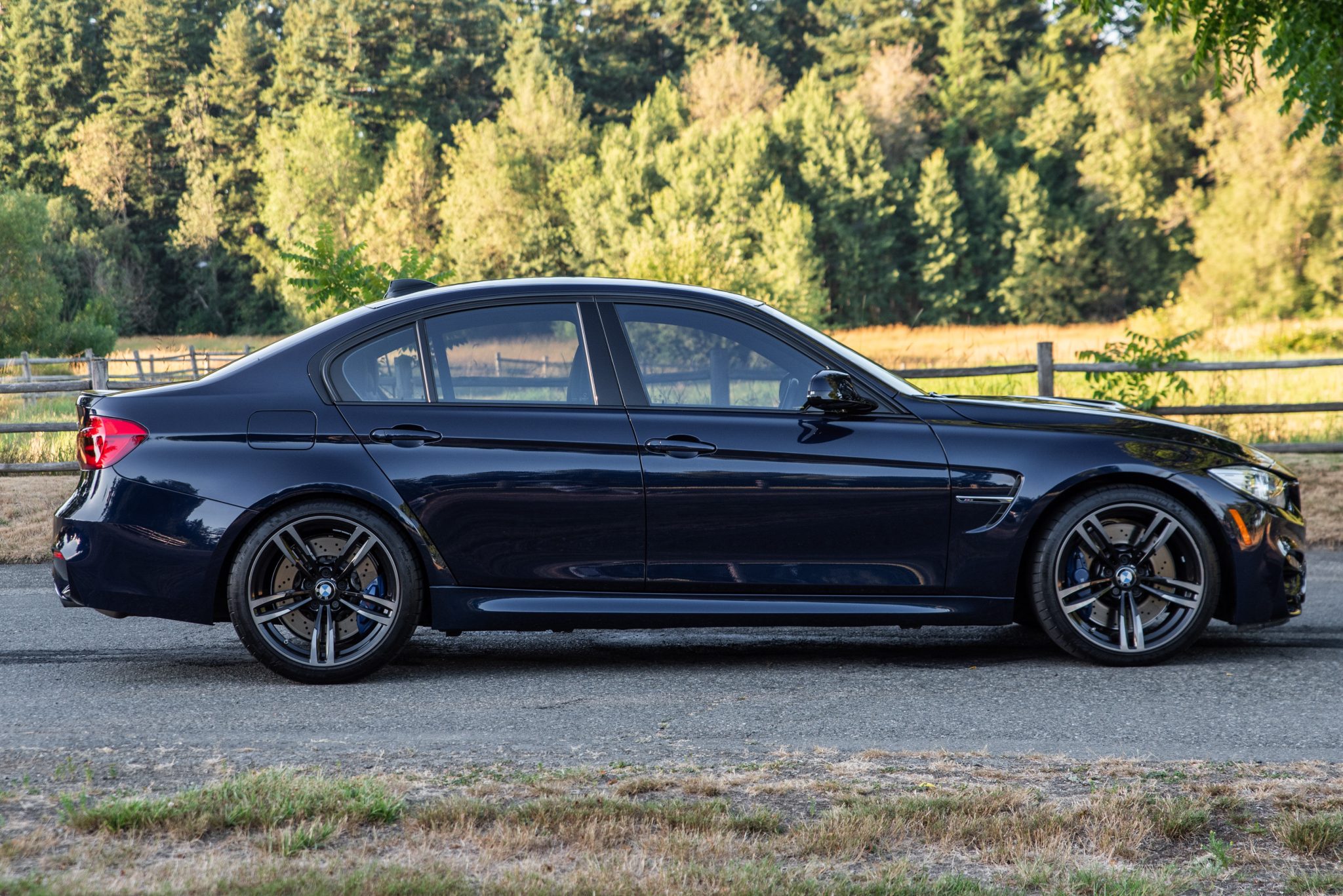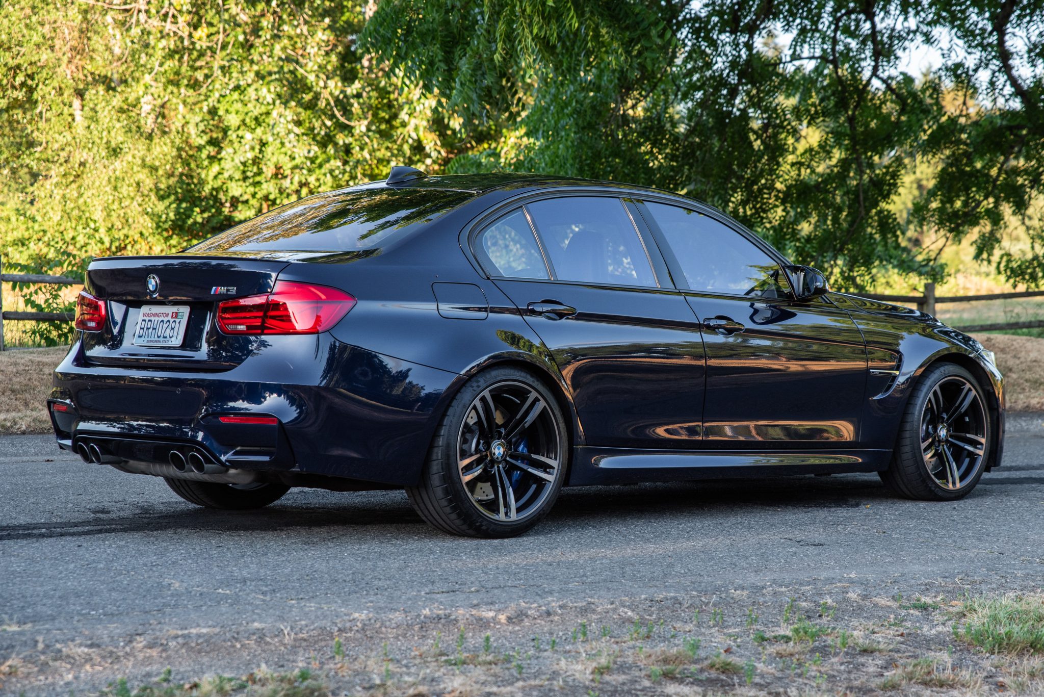 This 2016 BMW M3 sedan is powered by a twin-turbocharged 3.0-liter S55 inline-six paired with a seven-speed M DCT dual-clutch transmission and is finished in Tanzanite Blue Metallic over black Merino leather upholstery. Equipment includes the Executive, Driver Assistance Plus, and Lighting packages as well as an Active M differential, 19″ Style 437M alloy wheels, adaptive LED headlights, heated power-adjustable front seats, heated rear seats, a back-up camera, carbon-fiber interior trim, side- and top-view cameras, front and rear parking sensors, a heated steering wheel, a head-up display, a Harman Kardon sound system, iDrive infotainment, and navigation. The car was initially sold by New Century BMW of Alhambra, California, prior to being purchased by the seller in 2018 and now has 36k miles. This F80 M3 is offered with a window sticker, owner’s manual, partial service records, two keys, a clean Carfax report, and a clean Washington title in the seller’s name. The F80 M3 featured widened bodywork along with revised fender vents and bumpers compared to the standard 3 series. This example is finished in Tanzanite Blue Metallic with Shadowline trim and features adaptive LED headlights, a carbon-fiber roof panel, Park Distance Control, LED taillights, a rear decklid spoiler, and a sport exhaust system with quad exhaust tips. Paint protection film was applied to the front end, rocker panels, and portions of the rear quarter panels in 2019. The rocker panels have been refinished under current ownership. The 19″ Style 437M alloy wheels are mounted with 255/35 front and 275/35 rear Michelin Pilot Super Sport tires showing 2018 and 2020 date codes. The car is equipped with Adaptive M suspension and M Dynamic Mode with Dynamic Stability Control. Braking is handled by blue-finished M-branded calipers fitted over cross-drilled and ventilated rotors at all four corners. A brake fluid flush was performed in March 2022. The heated power-adjustable front seats are trimmed in black Merino leather, while carbon-fiber trim accents the dashboard and center console. Carpeted floor mats line the footwells, and additional appointments include heated rear seats, a back-up camera, a head-up display, Comfort Access keyless entry, a Harman Kardon sound system, dual-zone automatic climate control, cruise control, and iDrive infotainment with navigation. The Driver Assistance Plus Package added active blind-spot detection, Active Driving Assistant, and side and top-view cameras. The heated leather-wrapped multifunction steering wheel features paddle shifters and frames a 200-mph speedometer, an 8,500-rpm tachometer, and gauges for oil temperature and fuel level. The digital odometer indicates 36k miles, approximately 6k of which were added under current ownership. The twin-turbocharged 3.0-liter S55 inline-six was factory rated at 425 horsepower and 406 lb-ft of torque. An oil change was performed in March 2022. Power is sent to the rear wheels through a seven-speed M DCT dual-clutch transmission and an electronically controlled Active M differential. Additional photos of the underside are presented in the gallery. The window sticker shows factory colors and equipment as well as a total price of $77,645. The Carfax report shows no accidents or other damage and lists history in California and Washington through the most recent entry in September 2022.