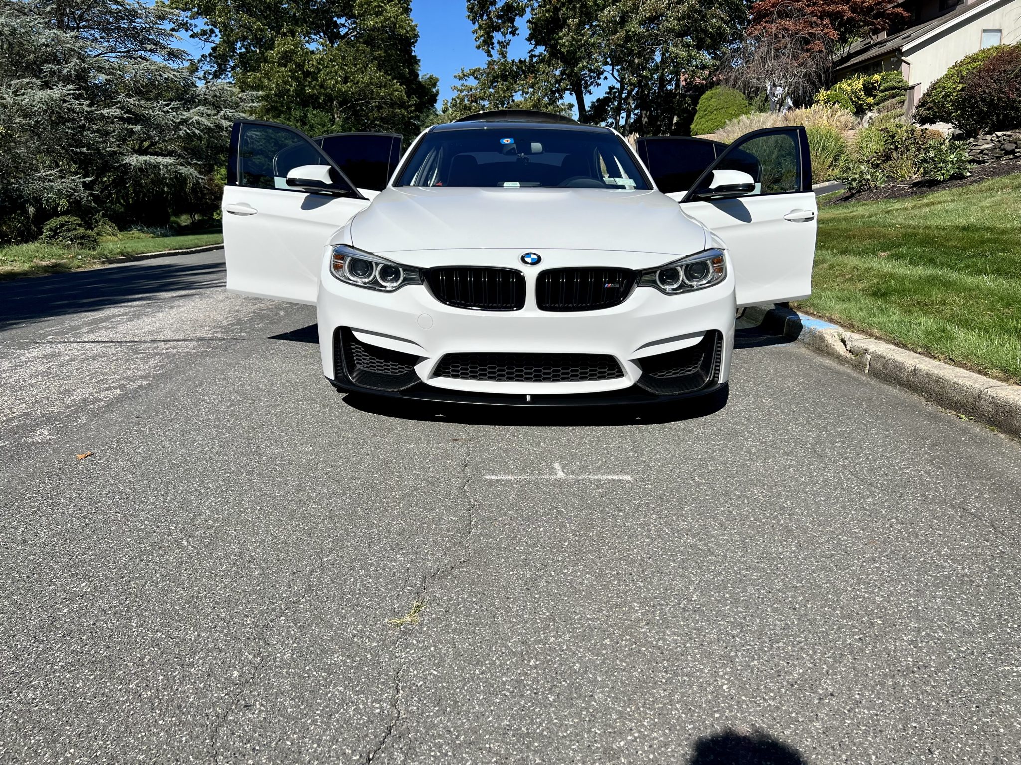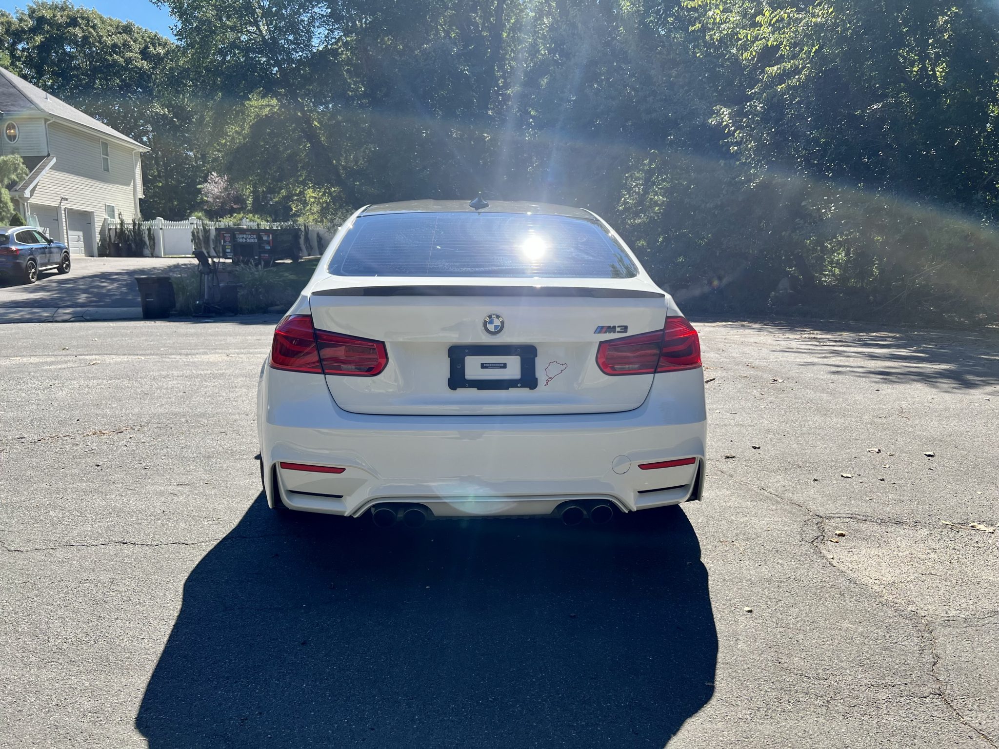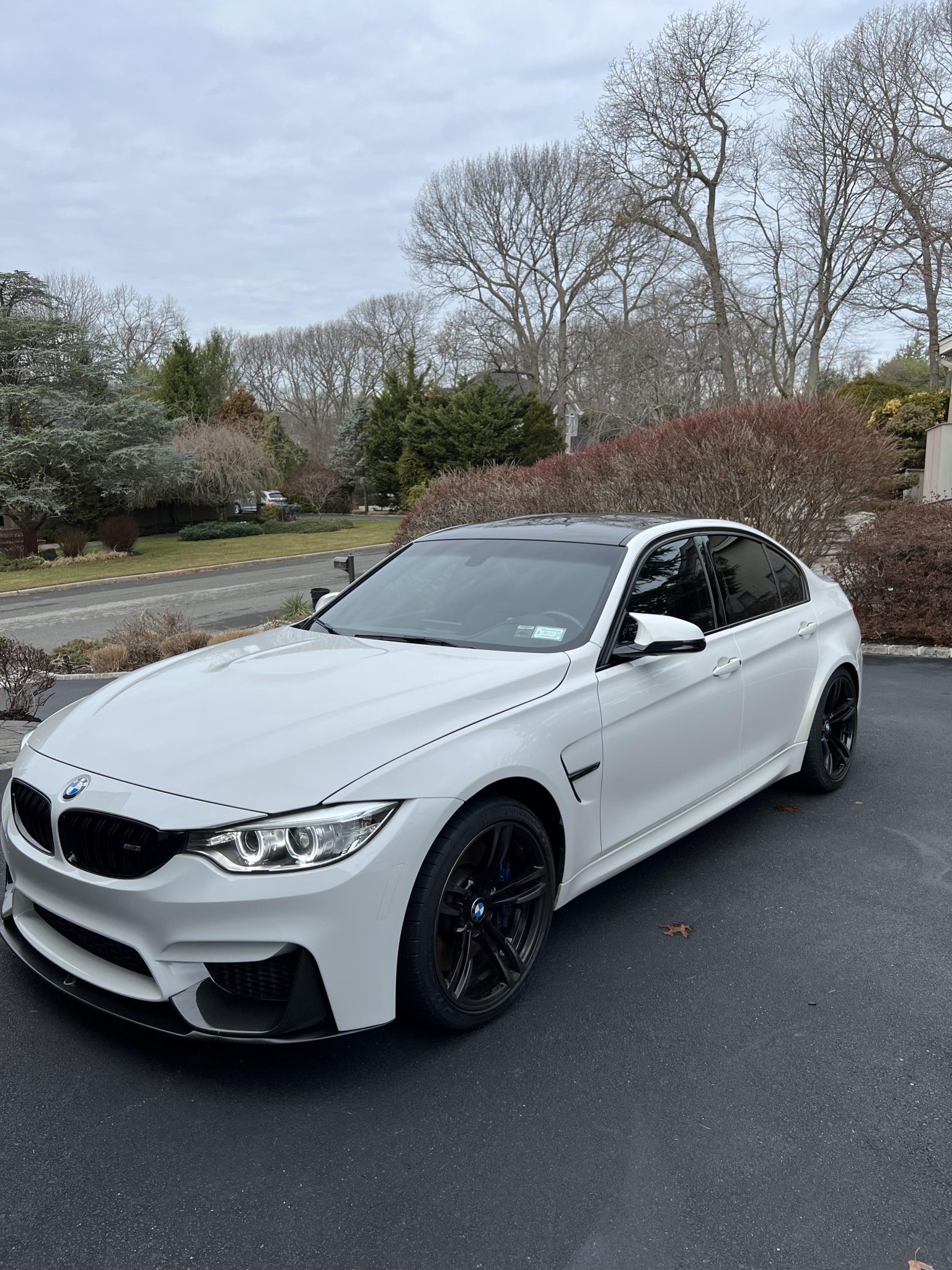 This 2016 BMW M3 sedan is powered by a twin-turbocharged 3.0-liter S55 inline-six paired with a six-speed manual transmission and is finished in Alpine White over Sakhir Orange Merino leather upholstery. Equipment includes an Active M differential, 19″ Style 437M alloy wheels, a carbon-fiber rear spoiler and front winglets, a front splitter, adaptive xenon headlights, heated power-adjustable front seats, heated rear seats, carbon-fiber interior trim, a Harman Kardon sound system, aftermarket accessory mounts, iDrive infotainment, and navigation. The car has remained registered in Texas and New York through the seller’s acquisition in 2020 and now has 53k miles. This F80 M3 is offered with factory literature, two keys, a clean Carfax report, and a clean New York title in the seller’s name. The F80 M3 featured widened bodywork along with revised fender vents and bumpers compared to the standard 3 series. This example is finished in Alpine White with Shadowline trim and features adaptive xenon headlights, a carbon-fiber roof panel, LED taillights, window tint, a front splitter, a carbon-fiber decklid spoiler and front winglets, body-color front side markers, and a sport exhaust system with quad exhaust tips. Blemishes are noted on the left front winglet and left rocker panel. The 19″ Style 437M alloy wheels are mounted with 255/35 front and 275/35 rear Michelin Pilot Super Sport tires showing 2022 date codes. The car is equipped with Adaptive M suspension and M Dynamic Mode with Dynamic Stability Control. Braking is handled by blue-finished M-branded calipers fitted over cross-drilled and ventilated rotors at all four corners The cabin features seating surfaces upholstered in Sakhir Orange Merino leather along with carbon-fiber trim on the dashboard and center console. Additional appointments include heated power-adjustable front sport seats, heated rear seats, Comfort Access keyless entry, a Harman Kardon sound system, carpeted floor mats, dual-zone automatic climate control, cruise control, aftermarket accessory mounts, and iDrive infotainment with navigation. The leather-wrapped multifunction steering wheel frames a 200-mph speedometer, an 8,500-rpm tachometer, and gauges for oil temperature and fuel level. The digital odometer indicates 53k miles, approximately 18k of which were added under current ownership. The twin-turbocharged 3.0-liter S55 inline-six was factory rated at 425 horsepower and 406 lb-ft of torque. Power is sent to the rear wheels through a six-speed manual transmission and an electronically controlled Active M differential. The Carfax report shows no accidents or other damage and lists history in Texas and New York.