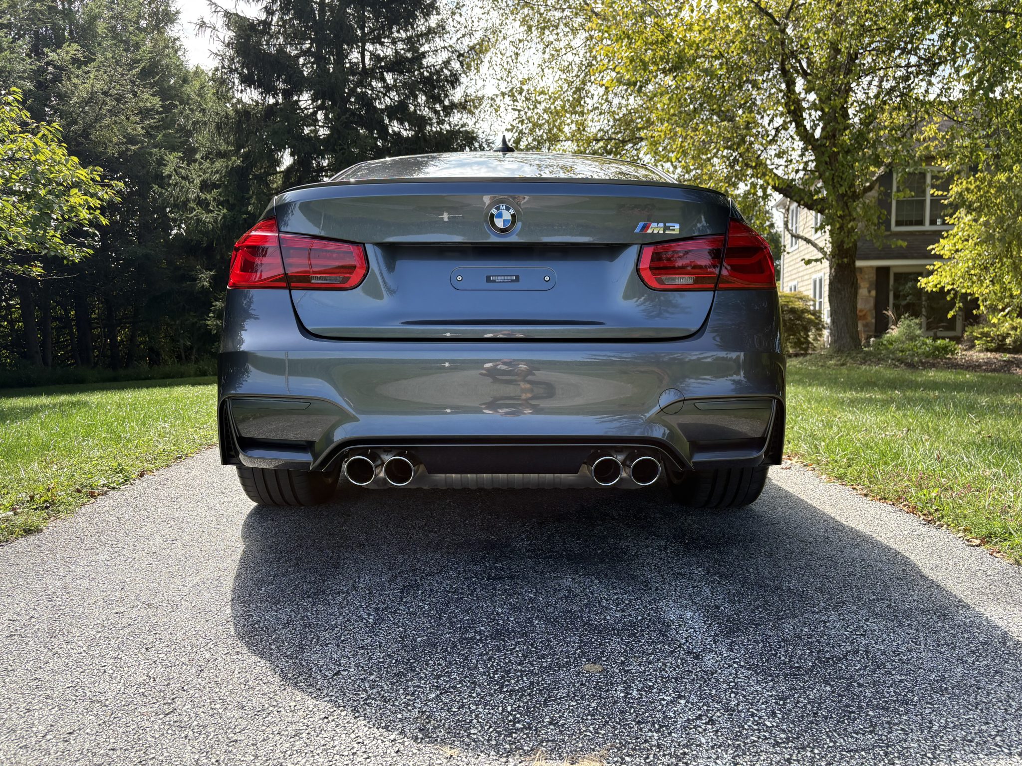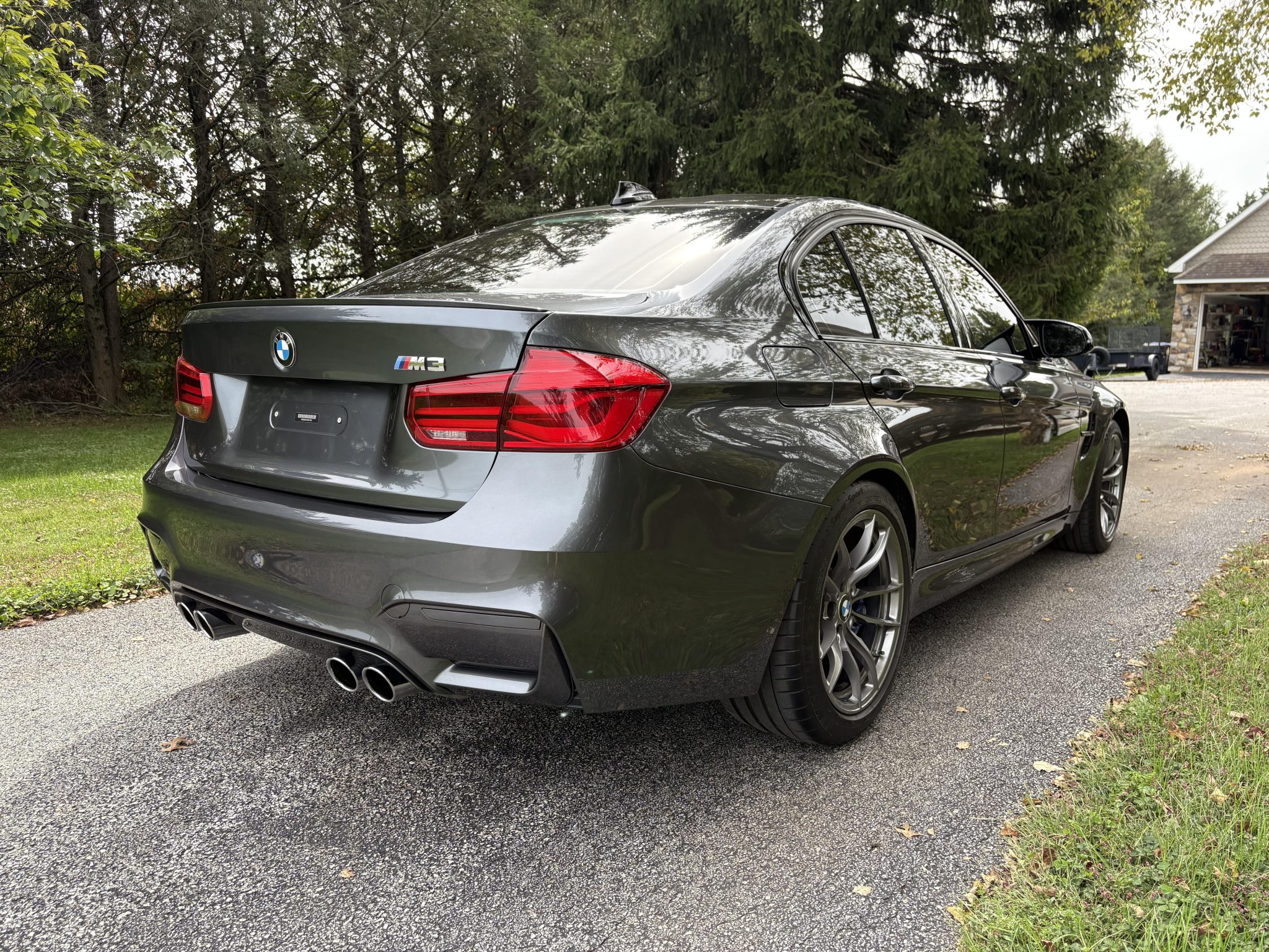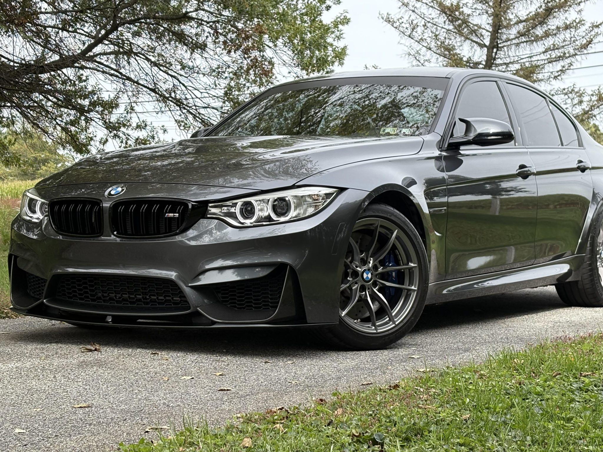 This 2016 BMW M3 sedan was purchased by the seller in 2018 and has 16k miles. Powered by a twin-turbocharged 3.0-liter S55 inline-six paired with a seven-speed M DCT dual-clutch transmission, the car is finished in Mineral Gray Metallic over Sonoma Beige Merino leather upholstery. Equipment includes an Active M differential, 18″ Style 513M alloy wheels, xenon headlights, heated front and rear seats, a Harman Kardon sound system, Comfort Access keyless entry, and navigation. This F80 M3 is offered with a window sticker, an accident-free Carfax report, and a Pennsylvania title in the seller’s name. The F80 M3 featured widened bodywork along with revised fender vents and bumpers compared to the standard 3 series. This example is finished in Mineral Gray Metallic with Shadowline trim and has been fitted with an M Performance front lip and splitters. Additional exterior details include black grilles, xenon headlights, body-color reflectors, LED taillights, a rear decklid spoiler, and a sport exhaust system with quad exhaust tips. Close-up photographs of the exterior finish and trim are shown in the gallery below. The 18″ Style 513M alloy wheels are mounted with Michelin Pilot Super Sport tires. The car is equipped with Adaptive M suspension and M Dynamic Mode with Dynamic Stability Control. Braking is handled by M-branded calipers fitted over cross-drilled and ventilated rotors at all four corners. The seller notes blemishes on the passenger side wheels. The cabin features seating surfaces upholstered in Sonoma Beige Merino leather along with carbon-fiber trim on the dashboard and center console. Additional appointments include heated front sport seats, heated rear seats, Comfort Access keyless entry, a Harman Kardon sound system, Comfort Access keyless entry, dual-zone automatic climate control, cruise control, and iDrive infotainment with navigation. There is wear on the driver’s seat bolster, and the backrest badges are cracking. The leather-wrapped multifunction steering wheel features paddle shifters and frames a 200-mph speedometer, an 8,500-rpm tachometer, and gauges for oil temperature and fuel level. The digital odometer indicates 16k miles, approximately 7k of which were added under current ownership. A mileage inconsistency is noted in an October 2022 entry on the Carfax report, though it notes that it may be the result of a clerical error. The current Pennsylvania title indicates 15,908 miles as of October 16, 2025, and a redacted copy is shown at the end of the gallery. The twin-turbocharged 3.0-liter S55 inline-six was factory rated at 425 horsepower and 406 lb-ft of torque. Power is sent to the rear wheels through a seven-speed M DCT dual-clutch transmission and an electronically controlled Active M differential. The window sticker lists factory colors, equipment, and a total suggested retail price of $69,595. The current Pennsylvania title is a duplicate.