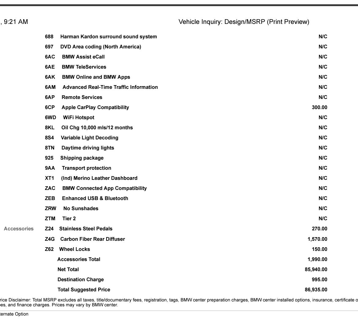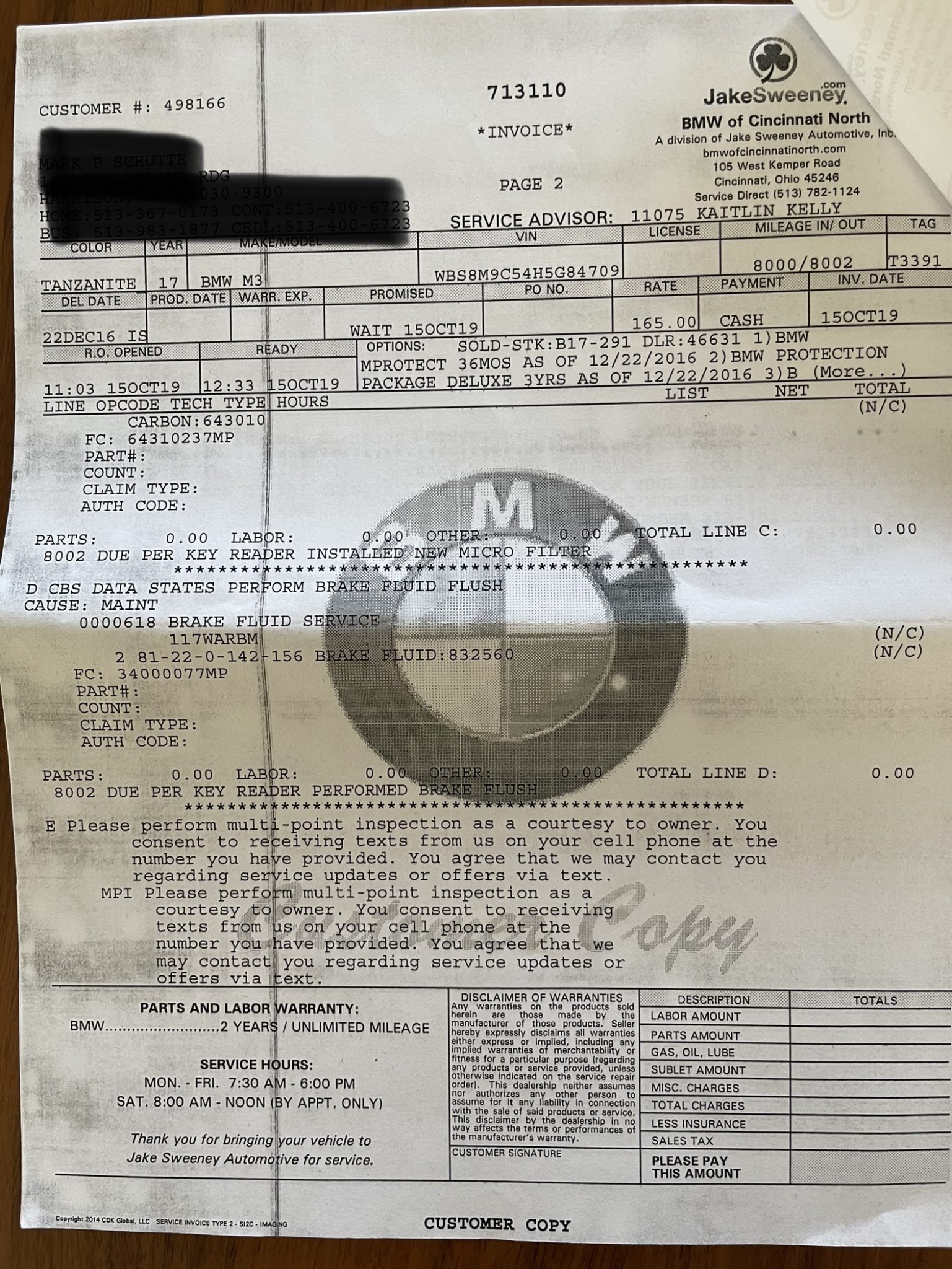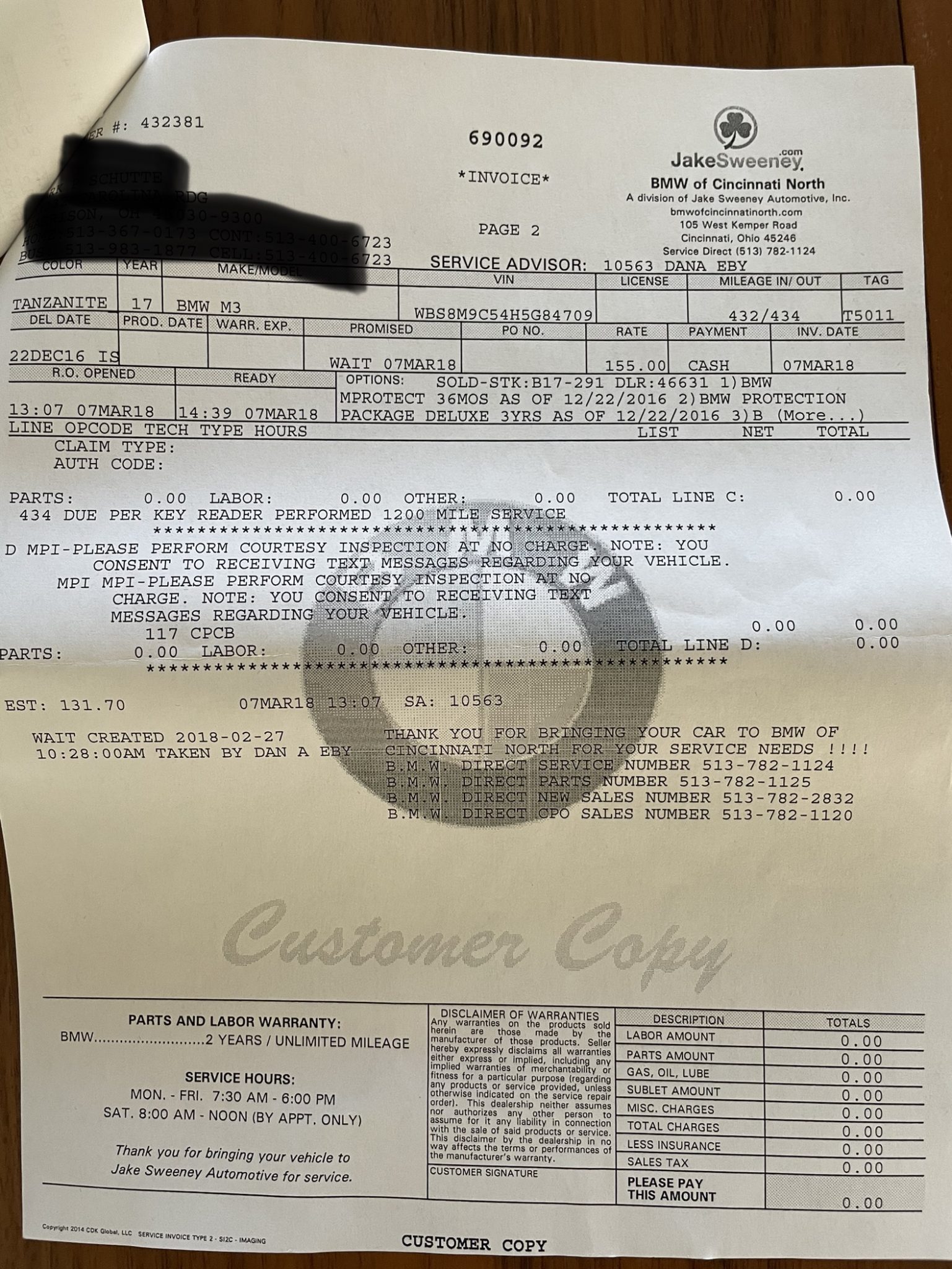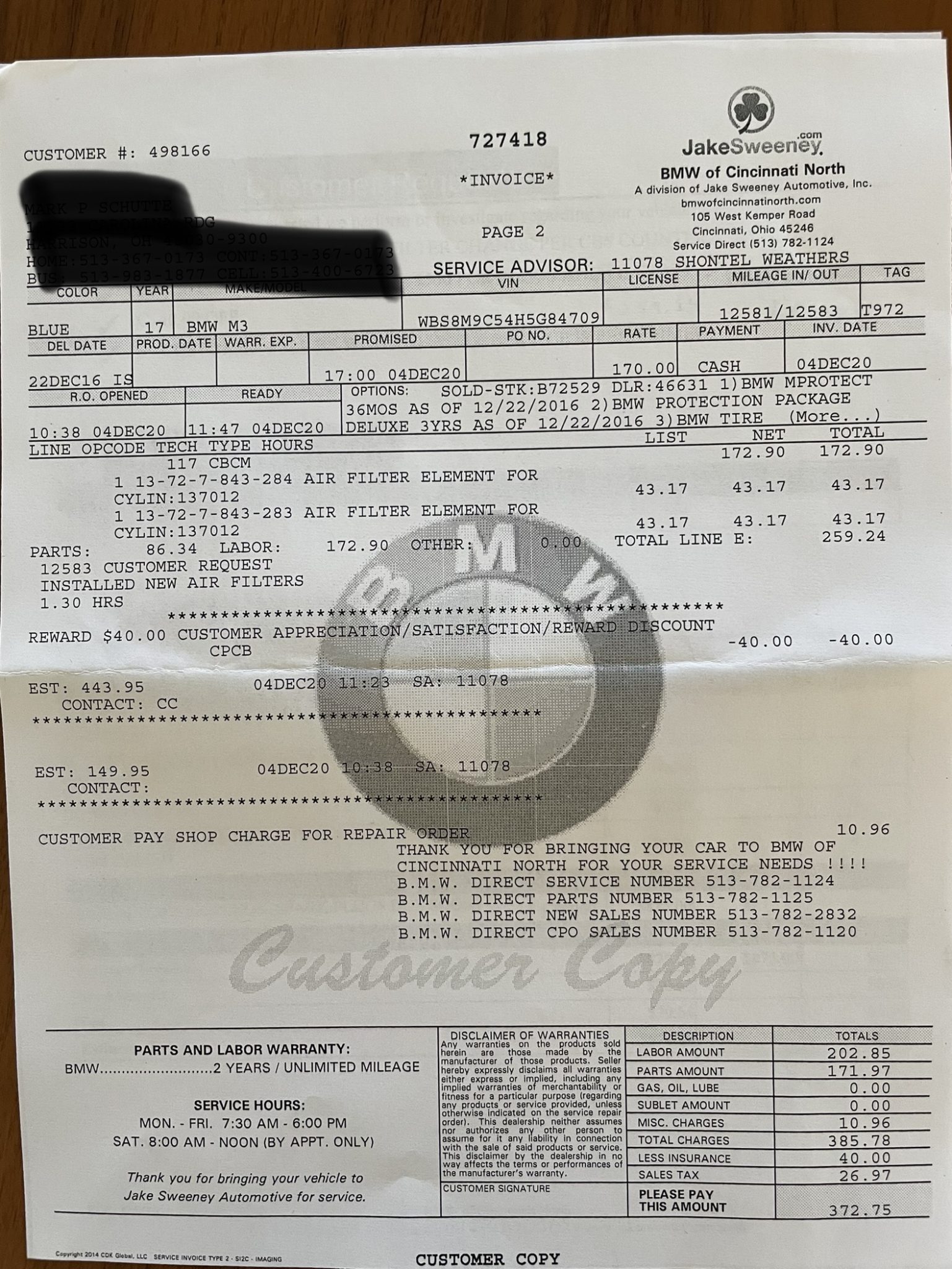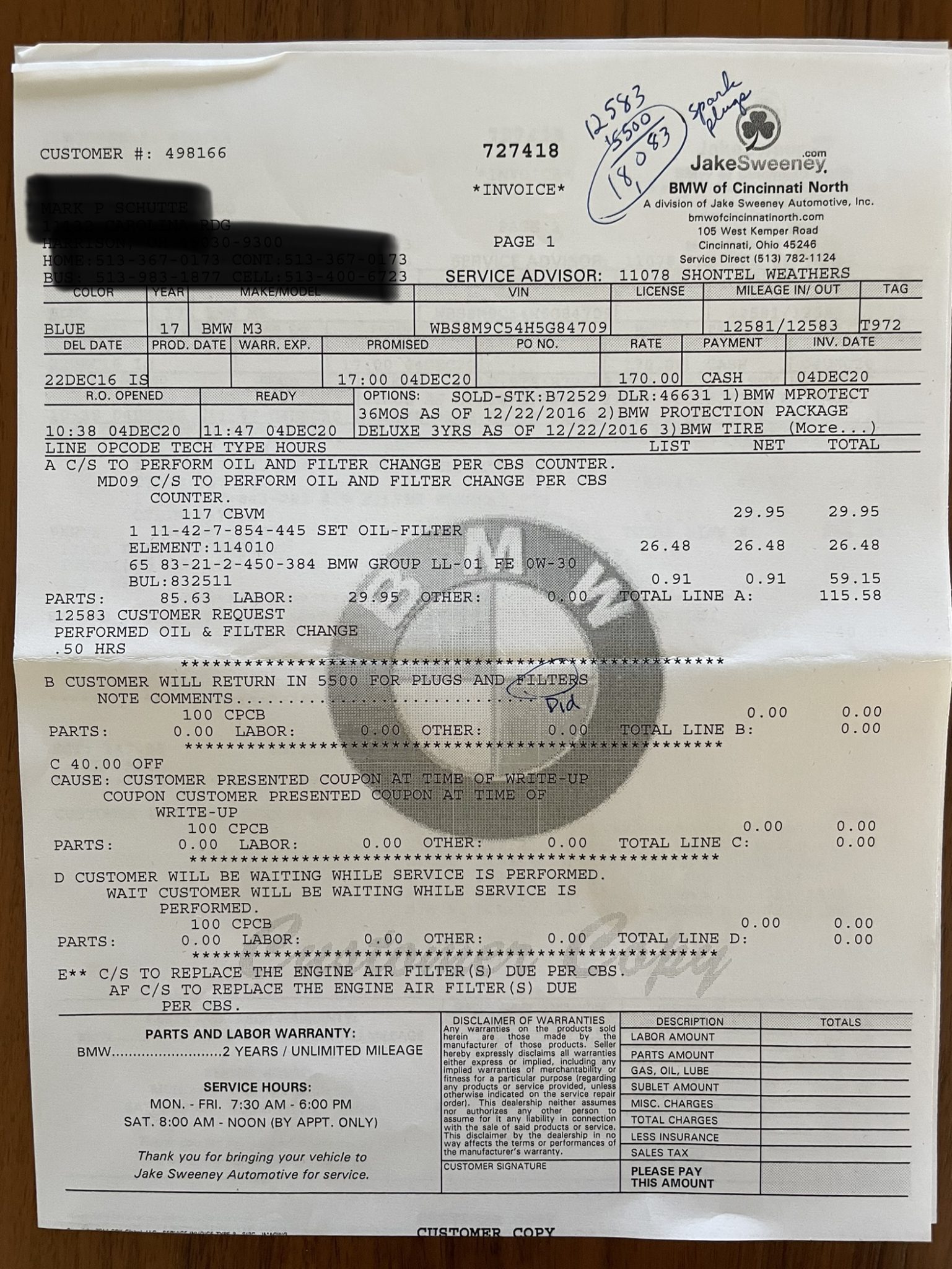 This 2017 BMW M3 is powered by a twin-turbocharged 3.0-liter S55 inline-six mated with a seven-speed dual-clutch transmission and is finished in Tanzanite Blue Metallic over Amaro Brown individual leather upholstery. Equipment includes the Competition, Executive, and Lighting packages as well as Driver Assistance Plus, Adaptive M suspension, 20″ Style 666M alloy wheels, adaptive LED headlights, dual-zone automatic climate control, heated seats, carbon-fiber interior trim, Harman Kardon audio, and navigation. The car has been registered in Ohio since new and was acquired by the seller in August 2022. The oil was changed and the brake fluid was flushed in December 2021. This F80 M3 has 21k miles and is now offered with manufacturer’s literature, two key fobs, service records, a spare set of rubber floor mats, a clean Carfax report, and a clean Ohio title in the seller’s name. The F80 M3 featured wider bodywork, revised bumper covers, and fender vents when compared to the standard 3-series, and the Competition package added gloss-black Shadowline trim that extended to the kidney and side grilles and rear M4 badging. This example is finished in Tanzanite Blue Metallic and is equipped with the Lighting package’s adaptive LED headlights as well as a carbon-fiber roof panel, front and rear Park Distance Control sensors, a rear spoiler, and quad exhaust tips. A close-up photo showing blemishes on the hood is provided in the gallery below, and the seller states that paint protection film was applied to the front of the car under prior ownership. Factory 20″ Style 666M wheels wear 265/30 front and 285/30 rear Michelin Pilot Super Sport 4S tires. The Competition package included a quicker steering ratio, stiffer springs and anti-roll bars, and revised settings for the Adaptive M suspension. Braking is provided by blue-finished M-logo calipers mounted over cross-drilled and ventilated rotors, and the brake fluid was flushed in December 2021. The heated and power-adjustable front seats and the heated rear bench are upholstered in Amaro Brown Merino leather with M-logo badges on the front seatbacks, and carbon-fiber trim accents the dashboard and center console. The optional Executive and Driver Assistance Plus packages added a heated steering wheel, a head-up display, and side and top-view cameras for Park Distance Control. Additional amenities include dual-zone automatic climate control, Comfort Access keyless entry, a Harman Kardon surround sound system, and iDrive infotainment with navigation. A heated M sport multifunction steering wheel with paddle shifters frames a 200-mph speedometer, an 8,500-rpm tachometer, and gauges for fuel level and coolant temperature. The digital odometer indicates 21k miles, approximately 2k of which were added under current ownership. The twin-turbocharged 3.0-liter S55 inline-six was factory rated at 444 horsepower and 406 lb-ft of torque in Competition specification. The oil was changed in December 2021. Power is sent to the rear wheels through a seven-speed dual-clutch automatic transmission and an electronically-controlled Active M differential. Manufacturer’s literature and two key fobs as well as spare rubber floor mats and service records are included in the sale. The Carfax report shows no accidents or other damage and lists history in Ohio since new.