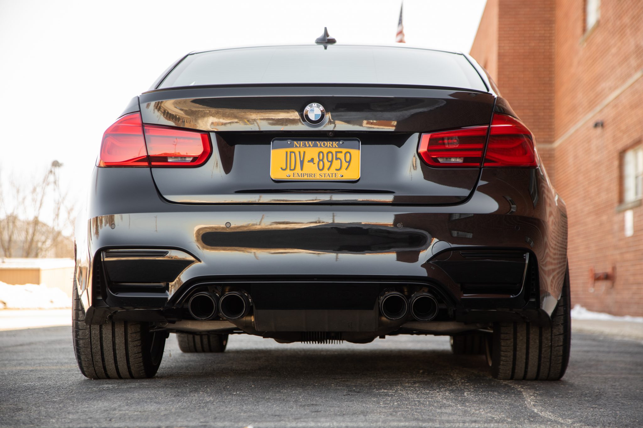 This 2017 BMW M3 is finished in Black Sapphire Metallic over extended black Merino leather and powered by a twin-turbocharged 3.0L inline-six mated to a six-speed manual transmission. Equipment includes four-zone climate control, a Harman Kardon sound system, carbon-fiber trim, Comfort Access, heated seats, 20″ wheels, dynamic xenon headlights, and the Executive and Competition packages. The car was first registered in Massachusetts and relocated to New York following its acquisition in 2019 by the seller, and it now has 9k miles. This F80 M3 is now offered in Illinois with recent service records, manufacturer’s literature, a clean Carfax report, and a clean New York title in the seller’s name. The exterior is finished in Black Sapphire Metallic with high-gloss Shadowline trim and features a carbon-fiber roof panel, mirror caps, and Akrapovič exhaust tips. The reflectors and rear badges have been removed, and protective film has been applied to the front bumper, hood, front fenders, and mirror caps. Competition Package 20″ wheels wear Michelin Pilot Super Sport tires measuring 265/30 up front and 285/30 out back. Additional package equipment includes a retuned Adaptive M Suspension package, as well as updated updated settings for drive modes, steering, stability control, and the active differential. The car is also equipped with cross-drilled disc brakes and blue-finished calipers at each corner. The cabin features black Merino leather upholstery on the heated front and rear seats, center console, door panel inserts, and dashboard, along with M-color stitching and carbon-fiber accents. Amenities include power-adjustable front sport seats, cruise control, four-zone automatic climate control, wireless phone charging, and a Harman Kardon sound system, while driver aids include a navigation system, a head-up display, Comfort Access, Park Distance Control, and a reversing camera. The multifunction M sport steering wheel frames a 200-mph speedometer, a tachometer with a variable redline, a central display screen, and auxiliary gauges. The odometer indicates over 9k miles, approximately 4k of which were added during current ownership. The twin-turbocharged 3.0-liter inline-six was rated at 444 horsepower and 406 lb-ft of torque in Competition Package form, and power is sent to the rear wheels through a six-speed manual transmission and limited-slip differential. An oil and filter change was performed in August 2020. Additional photos of the underside are available in the gallery below. Manufacturer’s literature, recent service records, two keys, and factory floor mats are included in the sale. The Carfax report shows no accidents or other damage and lists history in Massachusetts and New York from September 2016 through its most recent entry in August 2020.