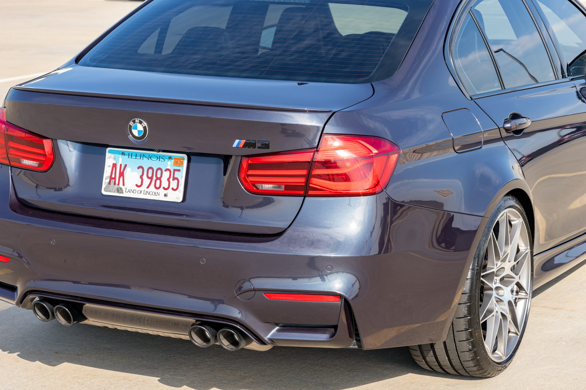 This 2017 BMW M3 sedan 30 Jahre Edition is one of approximately 500 examples produced to commemorate the 30th anniversary of the M3, and it was optioned from the factory with the Driver Assistance Plus, Executive, Lighting, and M Competition packages. The car is powered by a twin-turbocharged 3.0-liter S55 inline-six paired with a seven-speed M DCT dual-clutch transmission and is finished in Macao Blue Metallic over black and Fjord Blue Merino leather upholstery. It has 43k miles and is further equipped with an Active M differential, 20″ Style 666M alloy wheels, adaptive LED headlights, a heated steering wheel, a carbon-fiber roof, side- and top-view cameras, a head-up display, Park Distance Control, a Harman Kardon sound system, heated power-adjustable lightweight front sport seats, heated rear seats, Comfort Access keyless entry, and navigation. A set of replacement Michelin Pilot Super Sport tires were installed in 2025. This special-edition F80 M3 was purchased by the seller in 2017 from the original owner and is now offered at no reserve with a window sticker, the owner’s manual, service records, a Carfax report, and an Illinois title in the seller’s name. The F80 M3 featured widened bodywork along with revised fender vents and bumpers compared to the standard 3-series, while the Competition Package adds gloss-black kidney grilles, side gills, and rear model badging. This example is finished in Macao Blue Metallic with Shadowline trim and features adaptive LED headlights, a carbon-fiber roof, front and rear Park Distance Control, LED taillights, 30 Jahre badging, a rear decklid spoiler, and a sport exhaust system with quad exhaust tips. Paint chips are located on the hood and left-front door, and scuffs are visible on the rear bumper cover, which has been repaired twice under current ownership. Damage to the rear is listed in a June 2018 entry of the Carfax report, which also notes “minor damage” in August 2024. The 20″ Style 666M alloy wheels were mounted with 2024 and 2025 date-coded Michelin Pilot Super Sport tires in preparation for the sale. The Competition package included a quicker steering ratio, stiffer springs and anti-roll bars, and revised settings for the Adaptive M Suspension system and stability control. Braking is handled by blue-finished M-branded calipers fitted over cross-drilled and ventilated rotors at all four corners. A brake fluid flush was performed in January 2024. The cabin features seating surfaces upholstered in black and Fjord Blue Merino leather along with carbon-fiber trim on the dashboard and center console. Additional appointments include heated power-adjustable lightweight front sport seats, heated rear seats, side- and top-view cameras, a head-up display, a Harman Kardon sound system, Comfort Access keyless entry, dual-zone automatic climate control, cruise control, and iDrive infotainment with navigation. A scratch is located on the driver’s seat. The heated leather-wrapped multifunction steering wheel features paddle shifters and frames a 200-mph speedometer, an 8,500-rpm tachometer, and gauges for oil temperature and fuel level. The digital odometer indicates 43k miles. The twin-turbocharged 3.0-liter S55 inline-six was factory rated at 444 horsepower and 406 lb-ft of torque in Competition specification. An oil change was performed and the cabin filter was replaced in January 2025. The seller notes that the car passed an Illinois state vehicle emissions inspection in preparation for the sale. Power is sent to the rear wheels through a seven-speed M DCT dual-clutch transmission and an electronically controlled Active M differential. The window sticker lists initial delivery to Perillo BMW of Chicago, Illinois, along with factory equipment, colors, options, and a total suggested retail price of $87,145. The Carfax report shows the aforementioned damage. The Illinois title is listed as a duplicate and carries an “Actual Mileage” notation below the “Legend(s)” section.