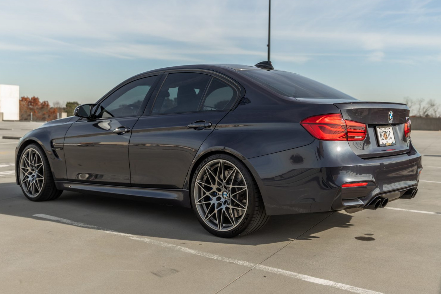This 2017 BMW M3 30 Jahre Edition is one of 500 examples produced to commemorate the 30th anniversary of the M3, and now has 29k miles. Finished in Macao Blue over black and blue leather, the car is powered by a twin-turbocharged 3.0-liter straight-six paired with a seven-speed dual-clutch transmission. Features include 20″ wheels, the Competition Package, LED headlamps with washers, an active differential, 30 Jahre badging, the Driver Assistance Plus package, heated seats, automatic climate control, a head-up display, and an aftermarket exhaust. The car spent time in Texas and North Carolina before being acquired by the seller in March 2020, and an oil change was performed in preparation for the sale. This F80 M3 is offered with owner’s manuals, service records, a Carfax report, and a clean Georgia title. The body is finished in Macao Blue (490) and features 30 Jahre badging on the side vents as well as adaptive LED headlamps with washers, a trunklid spoiler, and quad exhaust outlets. The Carfax report lists an October 2019 incident resulting in “minor damage” to the front of the car. The seller reports the damaged area was repaired by the previous owner, and photos detailing the condition of the body are included in the gallery. Factory 20″ wheels are mounted with 265/30 front and 285/30 rear Michelin Pilot Sport 4S tires. Braking is handled by cross-drilled rotors equipped with blue M-logo calipers. The M Competition package included a quicker steering ratio as well as revised settings for the Adaptive M Suspension system and the stability control. The seller notes a recent alignment. The heated seats are trimmed in black leather with silver stitching and blue inserts, and the cabin features carbon fiber inserts and 30 Jahre badging on the door sill guards, dash, and front seat’s headrests. The power-adjustable front sport seats feature position memory, and additional amenities include automatic climate control, a head-up display, auto-dimming mirrors, a rearview camera, and an infotainment system. A heated multifunction steering wheel frames instrumentation including a 200-mph speedometer, a tachometer with a 7,500-rpm redline, and gauges for coolant temperature and fuel level. The odometer shows 29k miles, approximately 9k of which have been added under current ownership. The twin-turbocharged 3.0-liter S55 straight-six was factory-rated at 444 horsepower and 406 lb-ft of torque, and sends power to the rear wheels through a seven-speed dual-clutch transmission and an electronically-controlled active differential. The seller notes the exhaust has been modified with titanium downpipes and an Active Autowerke midpipe. An oil change was performed in December 2020. The Carfax report shows the aforementioned accident and lists history and registrations in Texas, North Carolina, and Georgia through its most recent entry in March 2020. There is currently a lien on the car, and the seller’s lender will need to be paid off before the title can be transferred to the next owner.