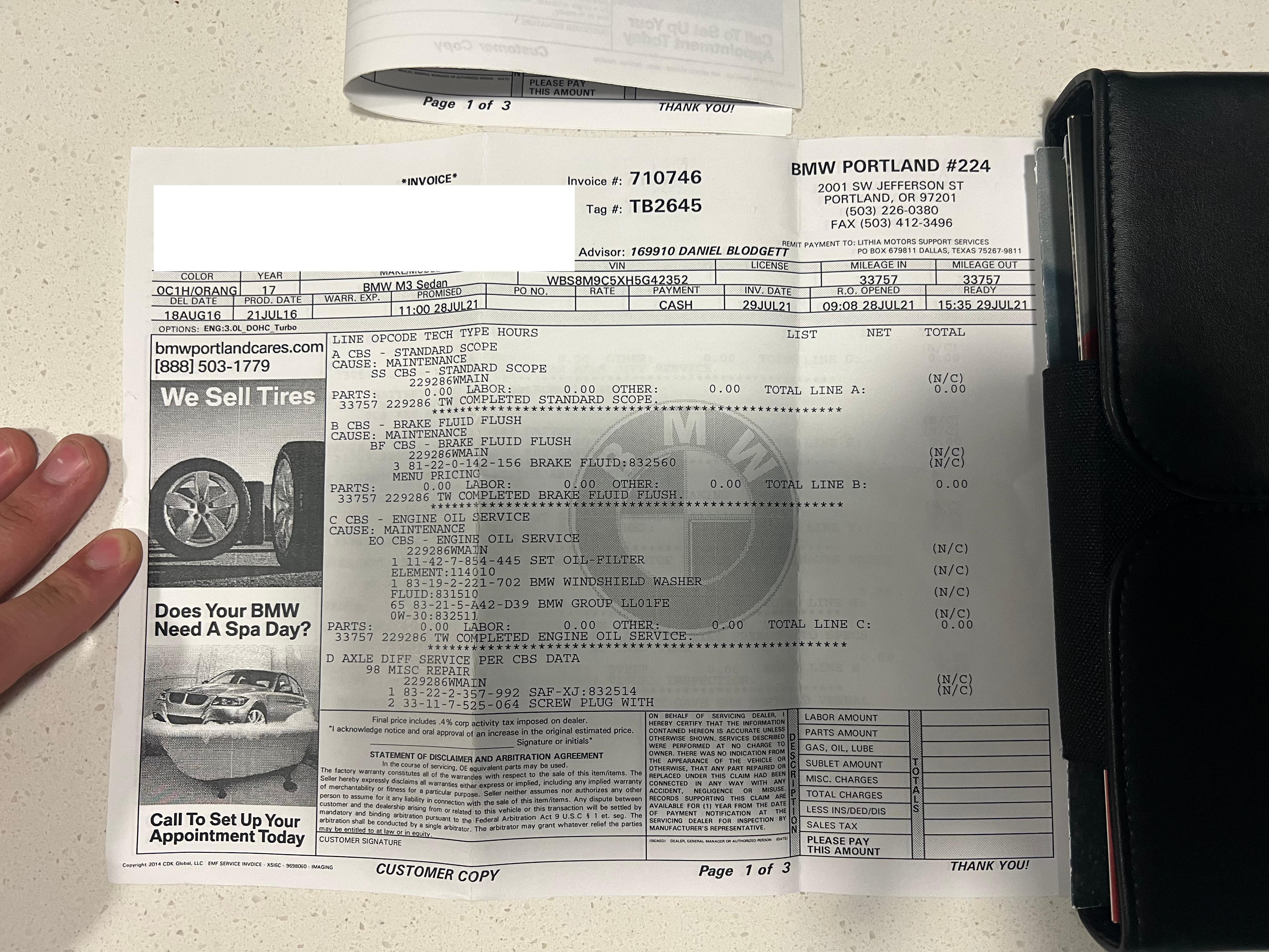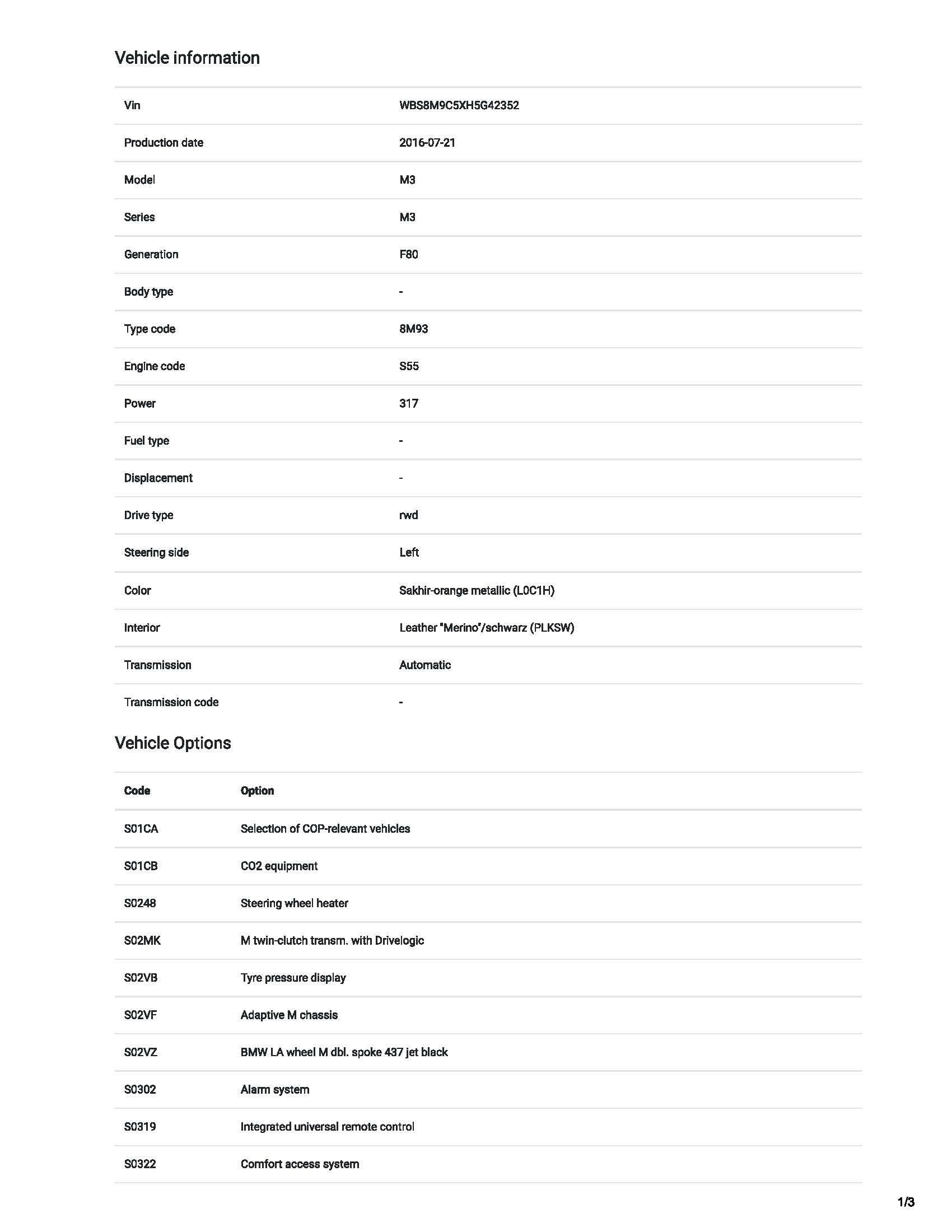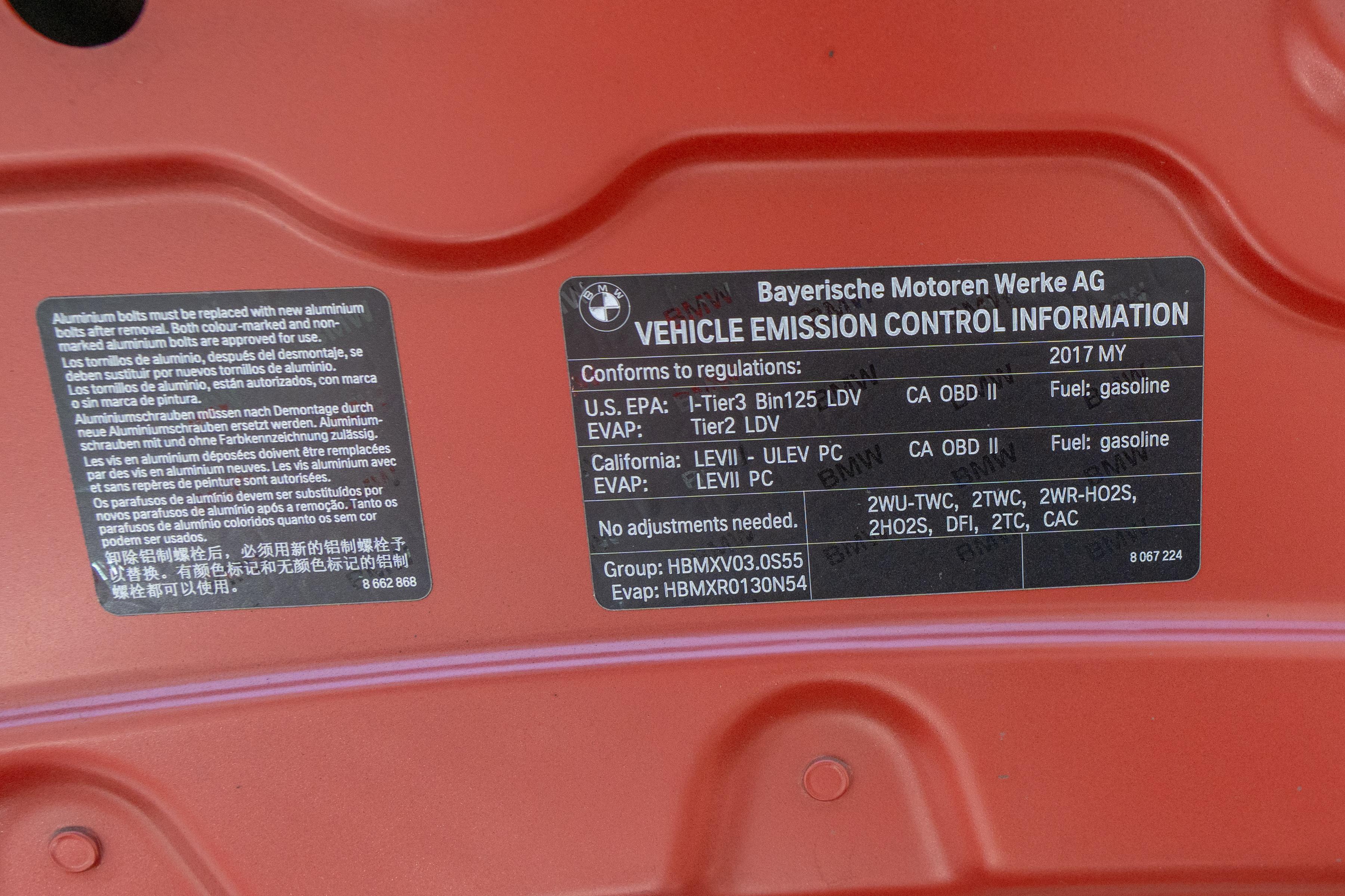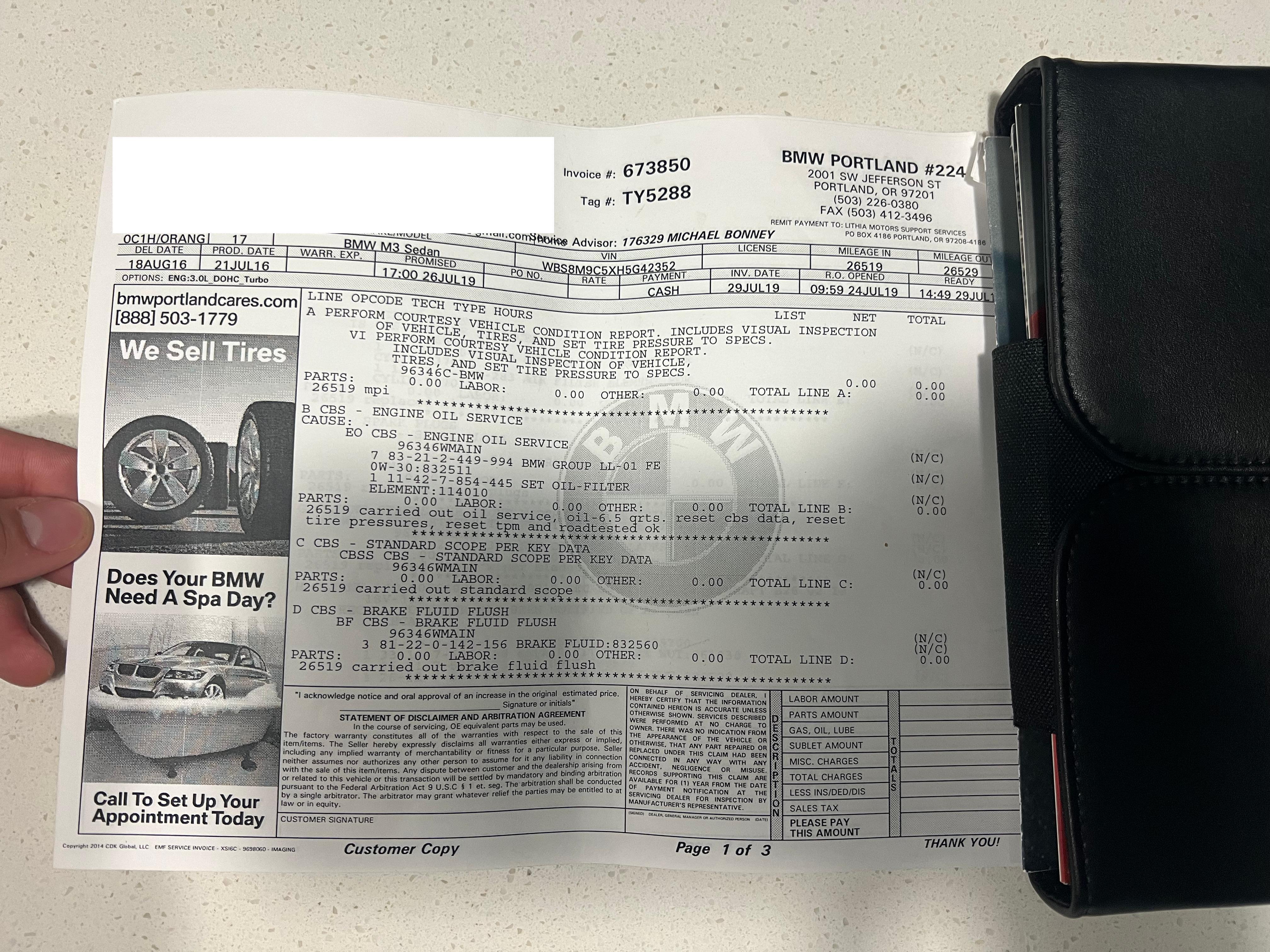 - The `Carfax` vehicle history report shows no accidents or mileage discrepancies in this M3’s past; it also shows registrations in California, Oregon, Washington, and Tennessee since new. - According to the build sheet provided in the gallery, notable factory equipment includes the Executive and Lighting packages, a carbon fiber roof panel, Merino leather upholstery, and a Harman/Kardon sound system. - Notable modifications reported by the seller include an Active Autowerke single non-resonated midpipe, VR Speed Factory cold air intakes, a performance 4-pin crank hub, EMD Auto lowering springs, a GT4-style carbon fiber front lip, and a V-style 3-piece carbon fiber rear diffuser. - BMW's fifth-generation M3 went on sale for the 2015 model year. Based on the F30-generation 3 Series, and called the F80 internally, it swapped its predecessor's V8 for a twin-turbocharged straight-6 and picked up more horsepower and a lot more torque along the way. Production ended in 2018. - Power comes from an S55 3.0-liter twin-turbocharged straight-6, rated at 425 horsepower and 406 lb-ft of torque. Output is sent to the rear wheels via a 7-speed dual-clutch automatic transmission.