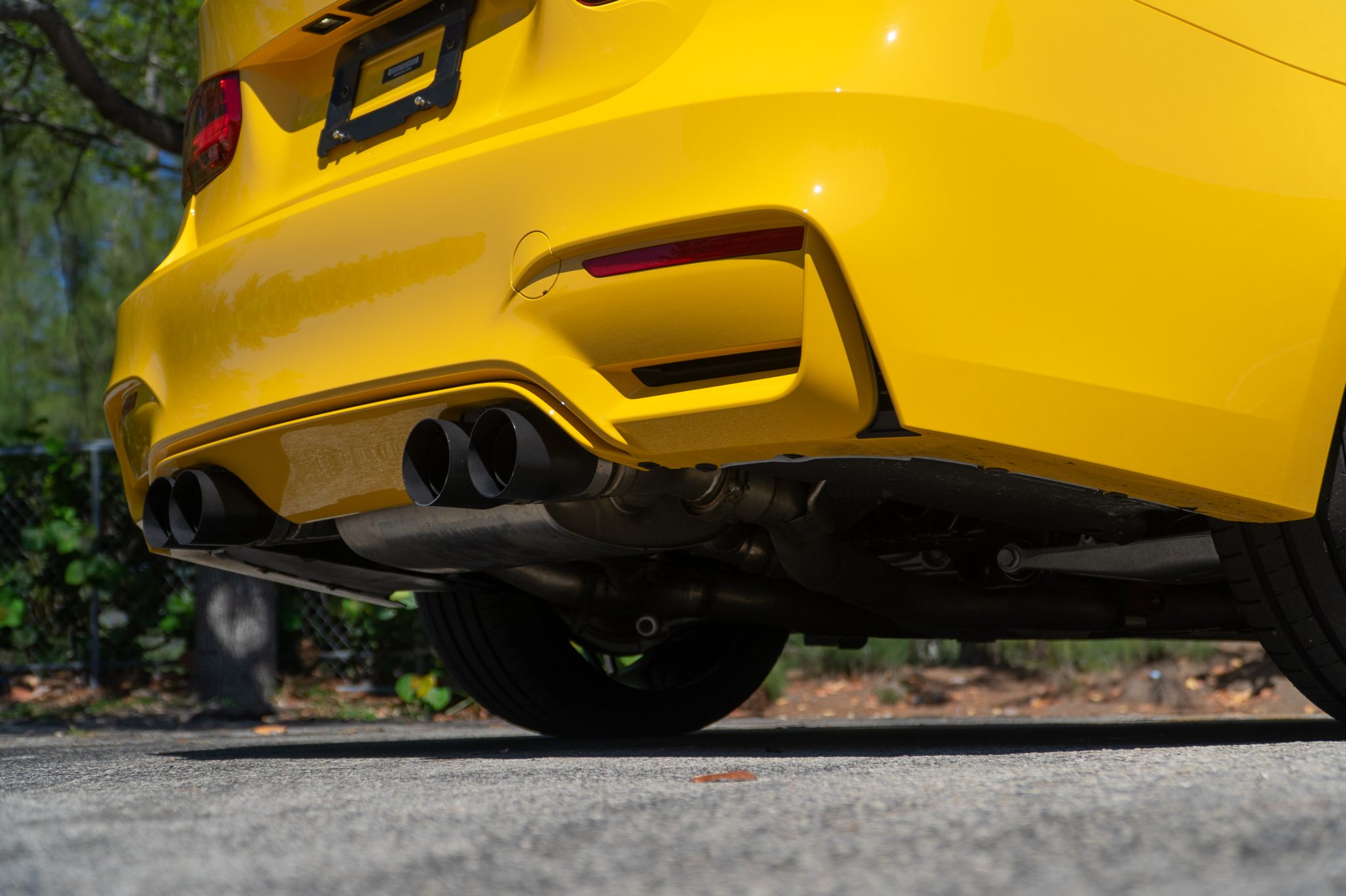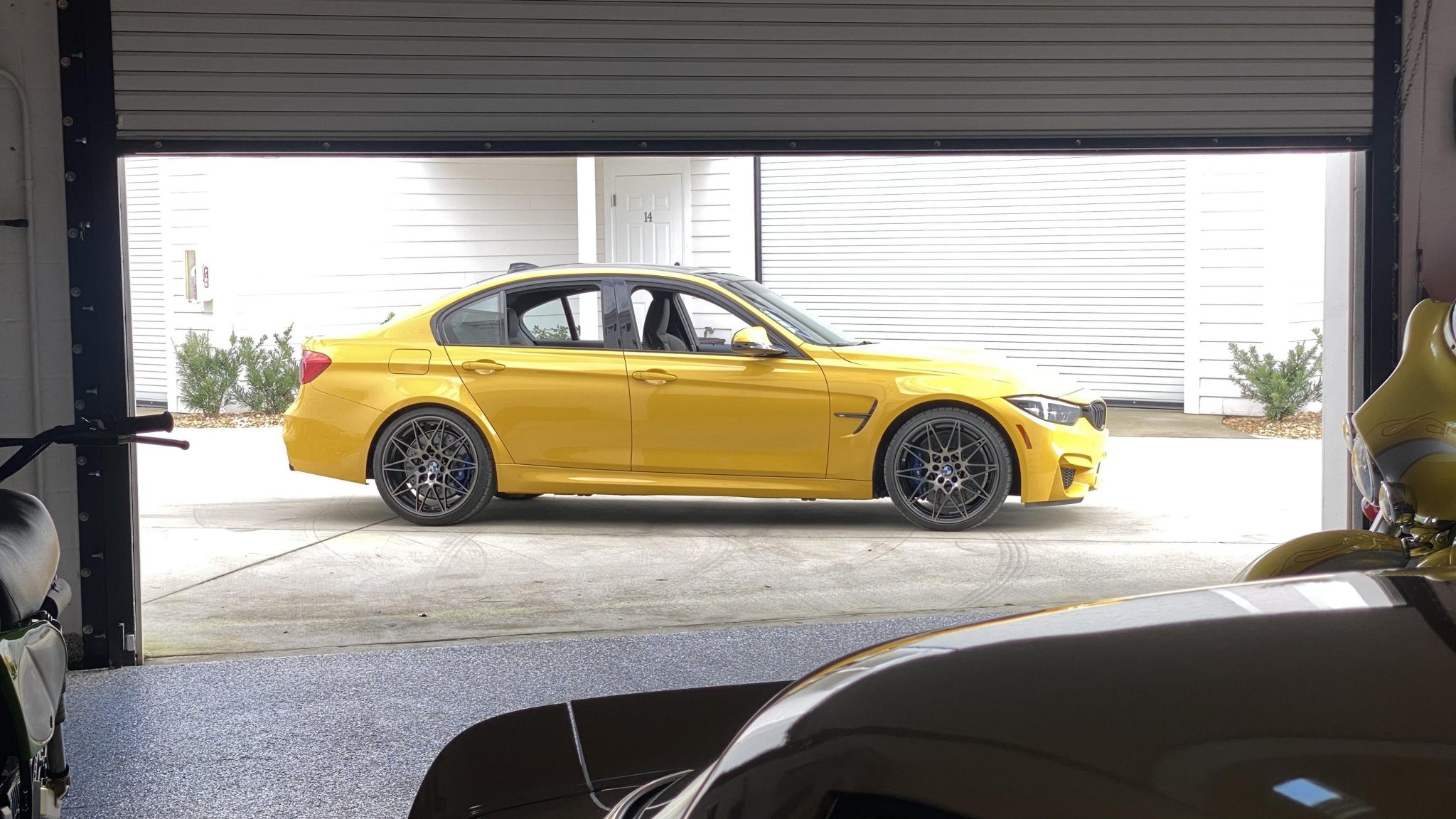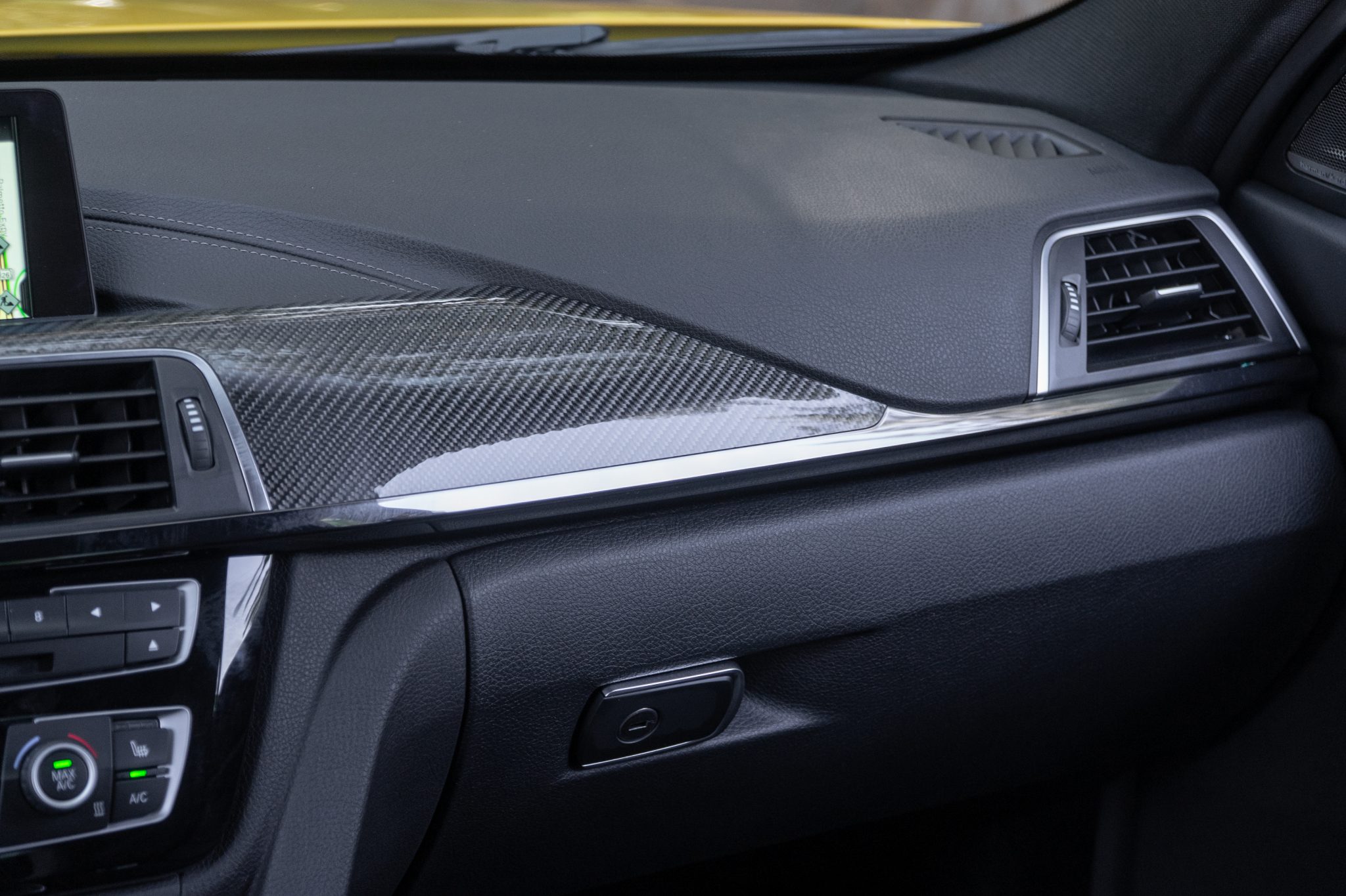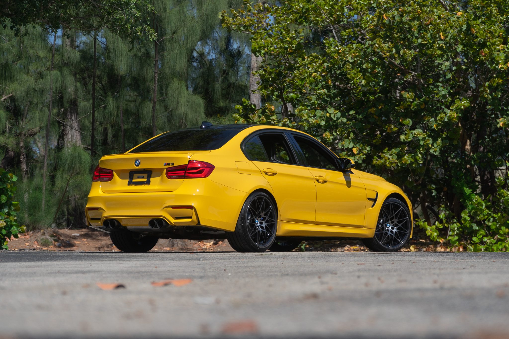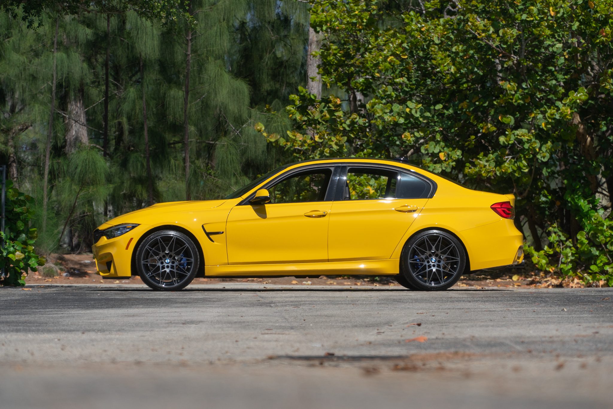This 2018 BMW M3 is finished in Speed Yellow over black cloth and leather and powered by a twin-turbocharged 3.0-liter S55 inline-six paired with a six-speed manual transmission. Equipment includes the Competition Package, adaptive LED headlights, power-adjustable and heated Carbon Structure front seats, carbon fiber trim, wireless charging, automatic climate control, and iDrive with navigation and Apple CarPlay. The car was sold new by BMW of Newport in Middletown, Rhode Island and acquired by the selling dealer in October 2020. This F80 has 9k miles and is offered at no reserve by the selling dealer with two window stickers, two key fobs, manufacturer’s literature, a clean Carfax report, and a clean Florida title. The F80 M3 features unique widened bodywork, fender vents, and side mirrors as well as weight-saving measures including an aluminum hood and fenders and a carbon fiber roof panel. This example is finished in Speed Yellow, which was a $5,200 option, and additional equipment includes adaptive LED headlights, Shadowline trim, a reversing camera, and a rear lip spoiler. Factory 20” wheels are wrapped in Michelin tires that show date codes from 2017. The M Competition package included a quicker steering ratio as well as revised settings for the Adaptive M Suspension system and Dynamic Stability Control. The cabin features seating upholstered in black leather with patterned cloth inserts as well as matching carpets and a carbon fiber-trimmed dashboard, center console, and door panels. Amenities include heated and power-adjustable front Carbon Structure seats, cruise control, automatic climate control, wireless charging, a Harman Kardon sound system, and iDrive with Apple CarPlay and navigation. A multifunction M sport steering wheel frames a 200-mph speedometer, a tachometer with a variable redline, and a configurable digital display along with gauges for fuel level and oil temperature. The odometer indicates 9k miles. The twin-turbocharged 3.0L S55 inline-six was factory-rated at 444 horsepower and 406 lb-ft of torque when equipped with the Competition Package, which increased output by 19 horsepower. An M Performance Exhaust system is equipped. Drive is sent to the rear wheels through a six-speed manual transmission and an electronically-controlled active differential. Two window stickers, manufacturer’s literature, and two key fobs are included in the sale. The Carfax report shows no accidents or other damage and lists service and registration history in Rhode Island, Massachusetts, and Florida. A video tour of the M3 is available below.
