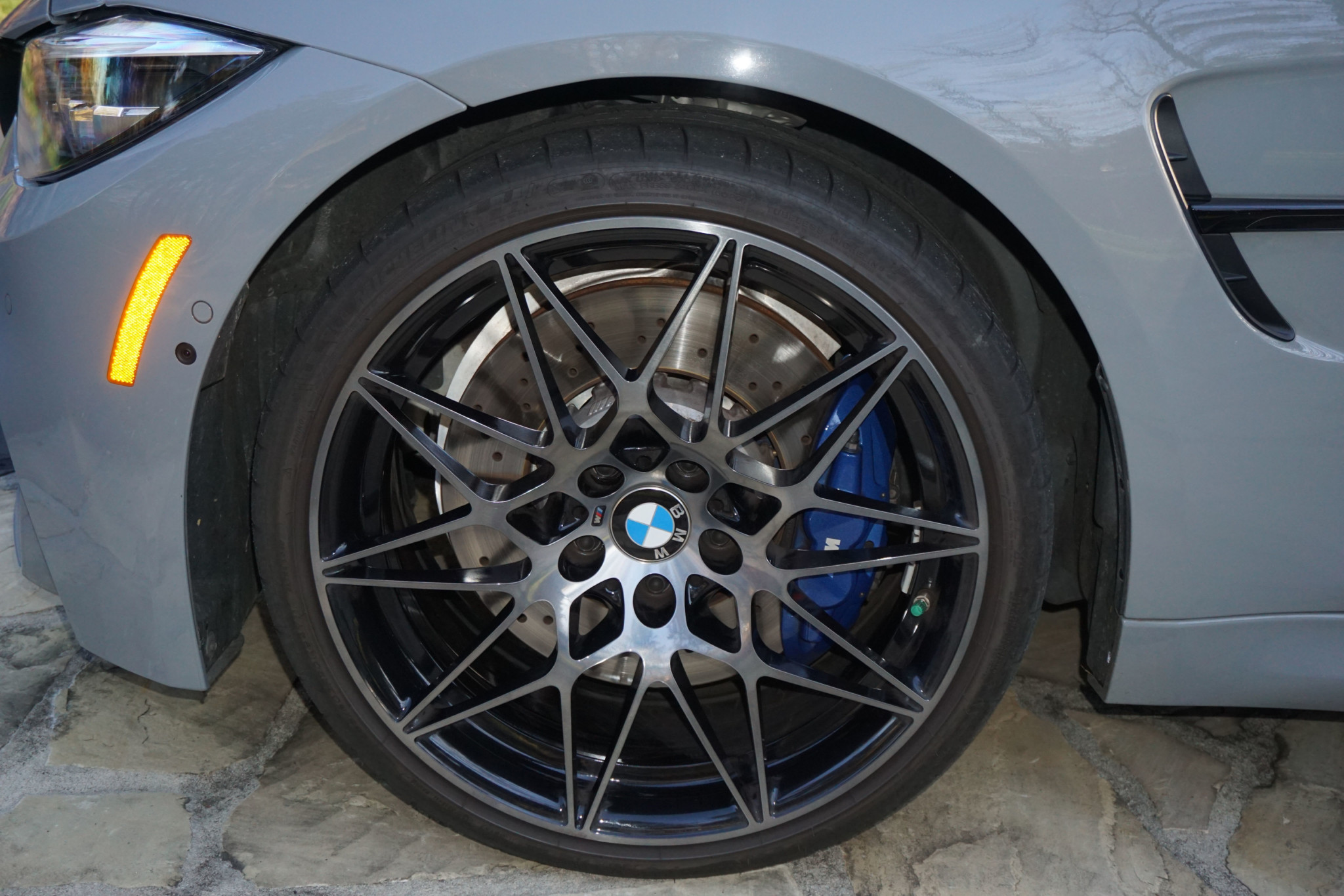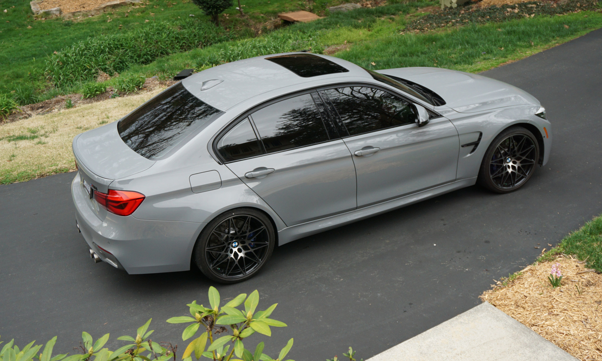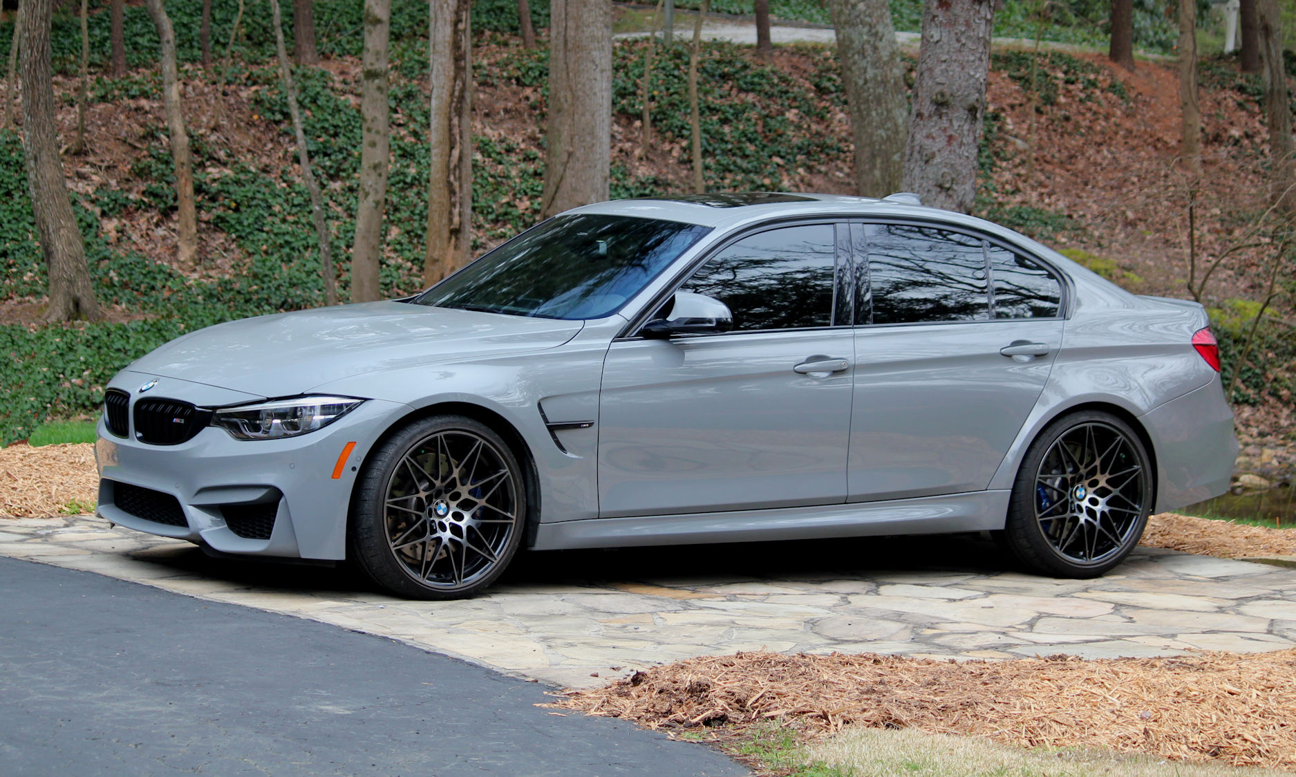 This 2018 BMW M3 was sold new at Schomp BMW in Highlands Ranch, Colorado and was brought to North Carolina by the current owner in 2019. Finished in Nardo Grey over Amaro Brown leather, the car is powered by a twin-turbocharged 3.0-liter S55 inline-six paired with a six-speed manual transmission and was optioned with an M Performance exhaust with titanium tips as well as the Competition, Driving Assistance, and Executive packages. Approximately 5k of the 15k indicated miles were added by the current owner, and an oil change was performed in March 2019. This F80 is offered by the seller on behalf of the current owner with a window sticker, a clean Carfax report, and a clean North Carolina title. The F80 M3 features fender vents and wider bodywork than the standard 3-series. This example is finished in BMW Individual Nardo Grey (YP6K) and is said to have received XPEL paint protection on the front, as well as a ceramic coating when new. The seller reports that the rear bumper was repainted following a parking lot incident, while the accompanying Carfax report shows no accidents or other damage. Blemishes are pointed out by the seller in the gallery below. Factory 20″ wheels wear Michelin Pilot Super Sport tires. The M Competition package included a quicker steering ratio as well as revised settings for the Adaptive M Suspension system, stability control, and electronically-controlled active differential. The interior is trimmed in Amaro Brown extended Merino leather (ZAP5) with black Merino leather on the dash as well as contrasting stitching, Dark Red Sycamore wood accents, and an Anthracite headliner. Amenities include 14-way powered and heated front sport seats, heated rear seats, automatic climate control, navigation, a Harman/Kardon sound system with SiriusXM and Apple CarPlay, as well as the Executive Package, which adds head-up display, Park Distance Control, and more. The heated multi-function steering wheel frames factory instrumentation including a 200-mph speedometer, an 8,500-rpm tachometer, and a configurable digital display. Just under 15k miles are shown on the digital odometer, about 5k of which were added under current ownership. The twin-turbocharged 3.0L S55 inline-six sends power to the rear wheels through a six-speed manual transmission. The Competition Package increased output from 425 to 444 horsepower, enough to propel the 3,600-pound sedan from 0-60 mph in approximately four seconds. An oil change was completed in March 2019, and the seller states that the car remains under factory warranty. The December 2019 Carfax report lists registration history in Colorado and North Carolina with no accidents or other damage recorded. A six-minute video tour of the interior and exterior is provided below.