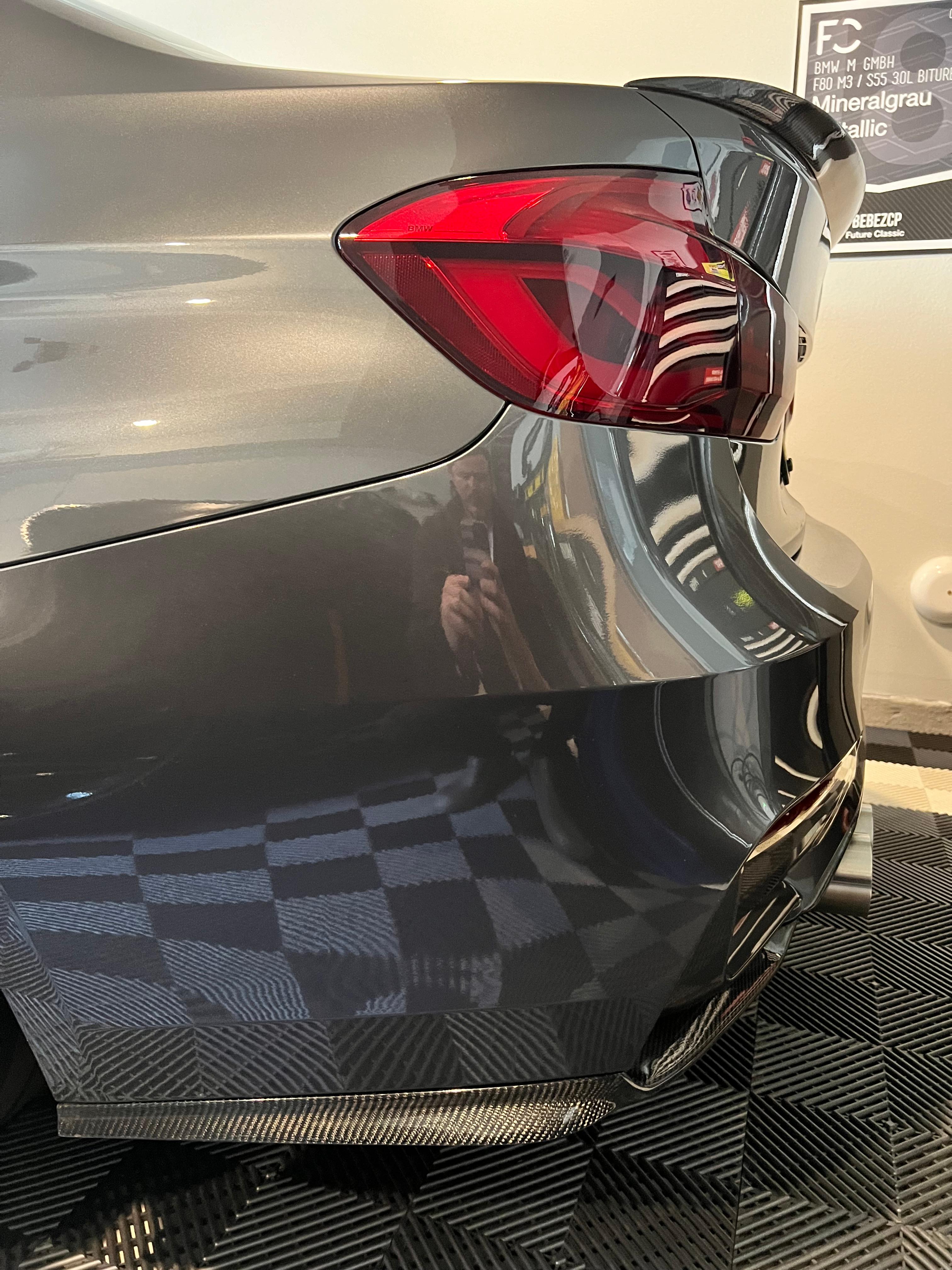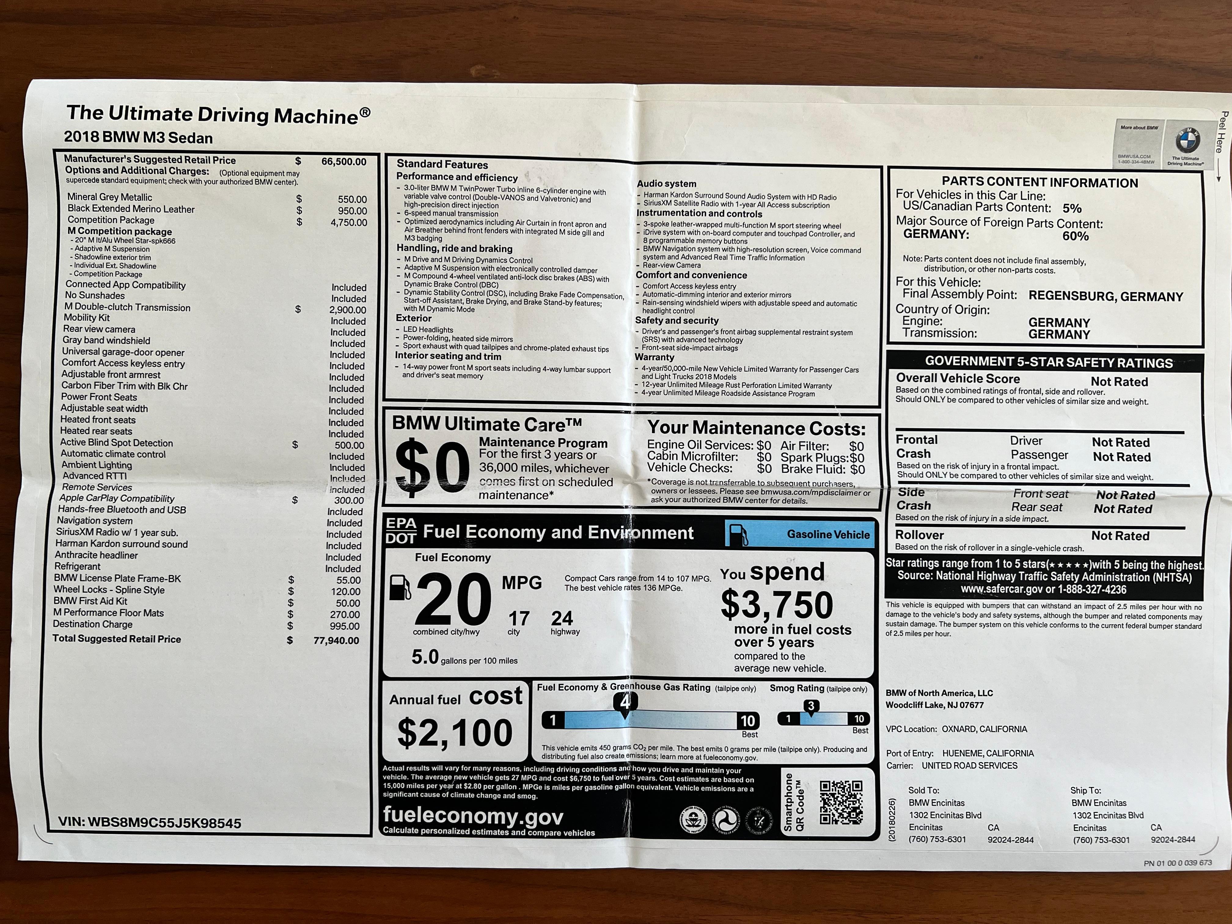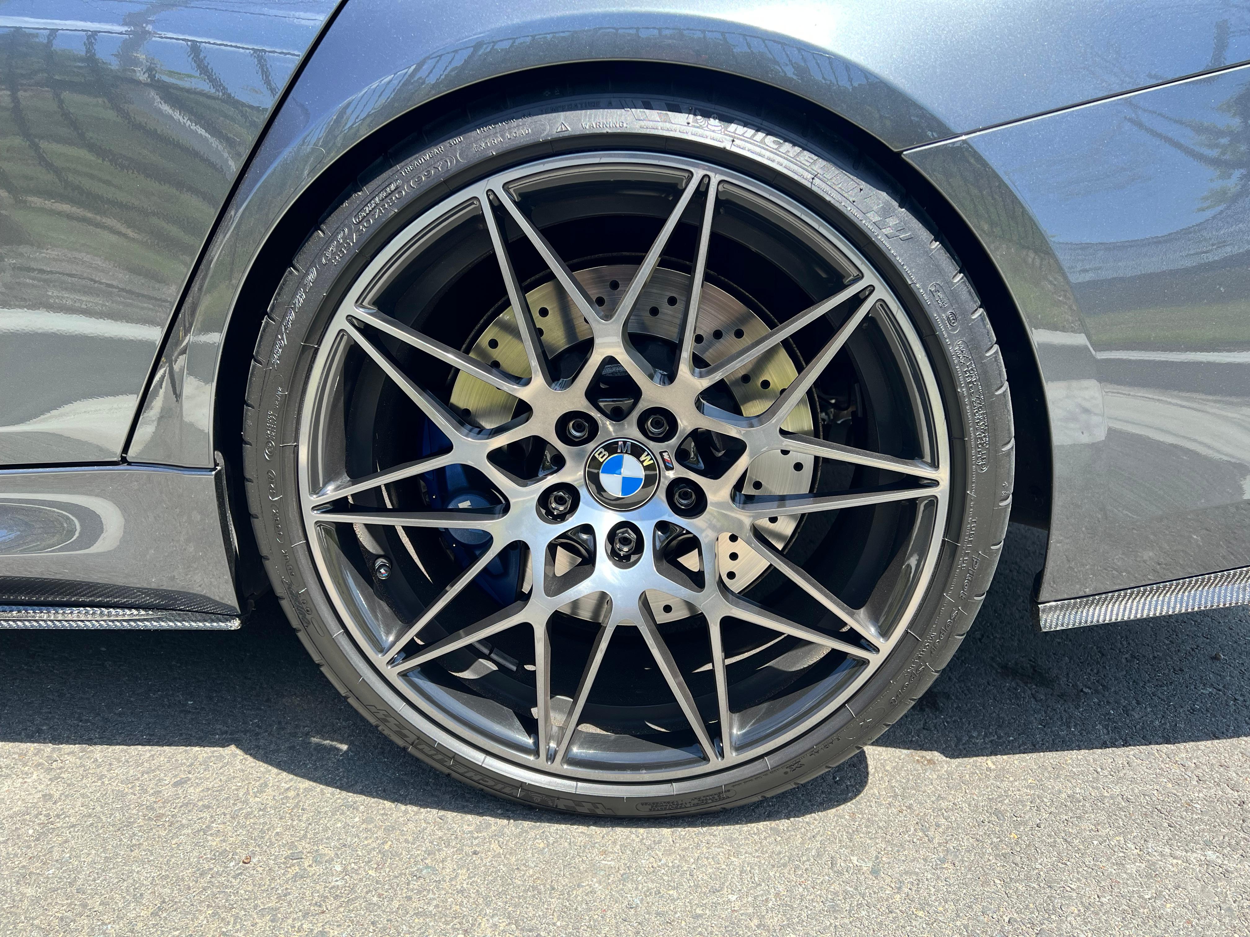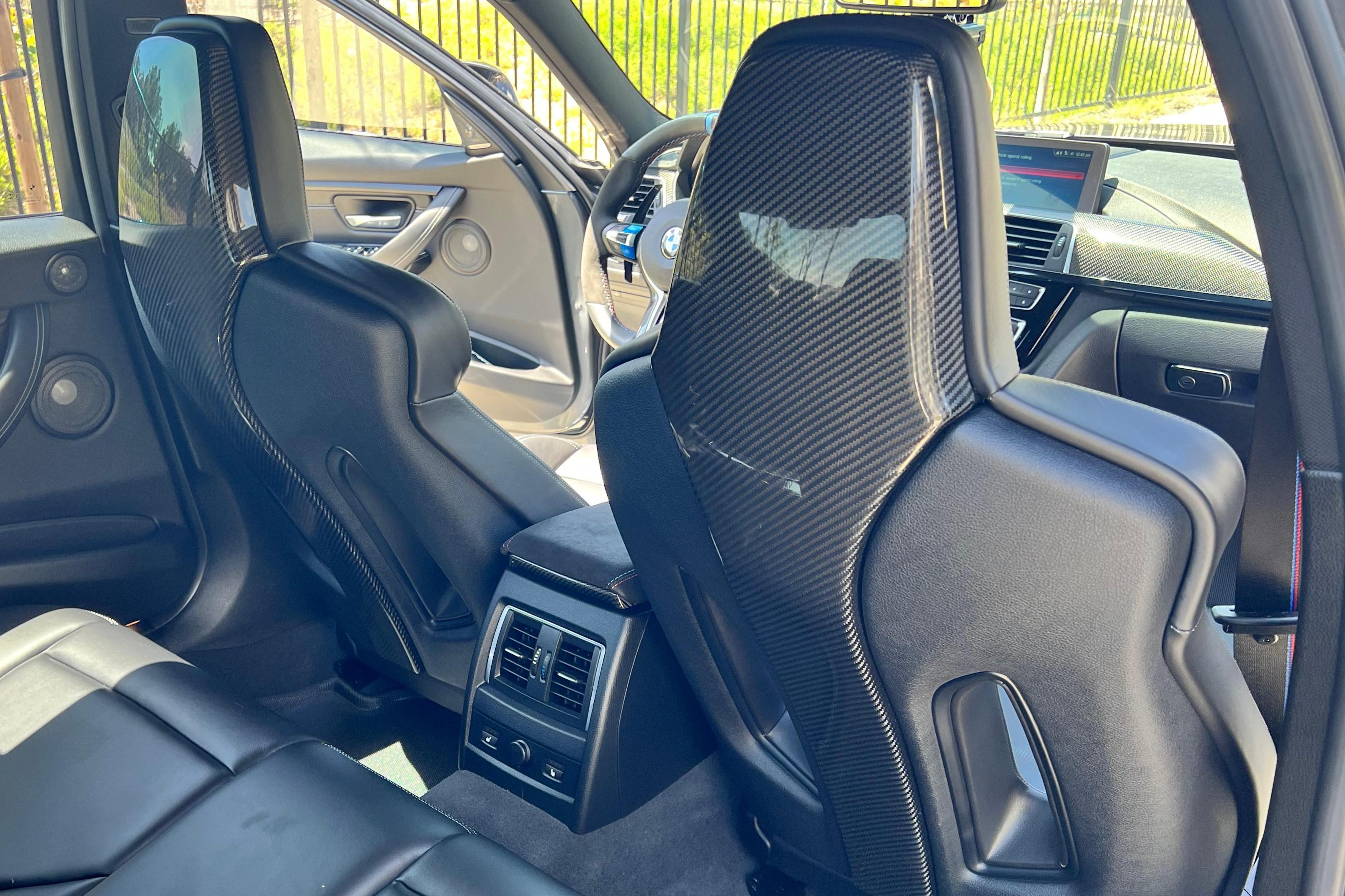- The odometer on this M3 currently displays approximately 19,000 miles. - The Carfax history report lists no accidents or mileage discrepancies in this M3’s past. It also confirms that this BMW has been registered in California since new. - Factory equipment includes the Competition Package, LED headlights, a carbon fiber roof panel, Merino leather upholstery, power-adjustable and heated front seats, heated rear seats, carbon fiber interior trim, a navigation system, Comfort Access keyless entry, and a Harman/Kardon surround sound system, among others listed below. - Modifications reported by the seller include an Active Autowerke single mid pipe, Mishimoto charge pipes, an MST Performance intake, a Turner Motorsport carbon fiber engine cover, AWE air scoops, M Performance height adjustable springs, a carbon fiber diffuser, an M Performance V2 steering wheel, and an M Performance center console lid, among others listed below. - The F80 M3 was introduced in 2014 as the fifth generation of the M3, featuring a return to the straight-six engine configuration, albeit with turbocharging. The Competition Package, introduced in 2016, added an increase in engine output, a more direct steering ratio, and a modified suspension setup for increased performance. The F80 M3, particularly with the Competition Package, is highly regarded for its blend of performance, luxury, and daily usability. - Power comes from a 3.0-liter twin-turbocharged straight-6, rated at 444 horsepower and 406 lb-ft of torque in stock form. This engine may be making more power as a result of the modifications, though a dyno sheet is not included. Output is sent to the rear wheels via a 7-speed M Double Clutch Transmission.