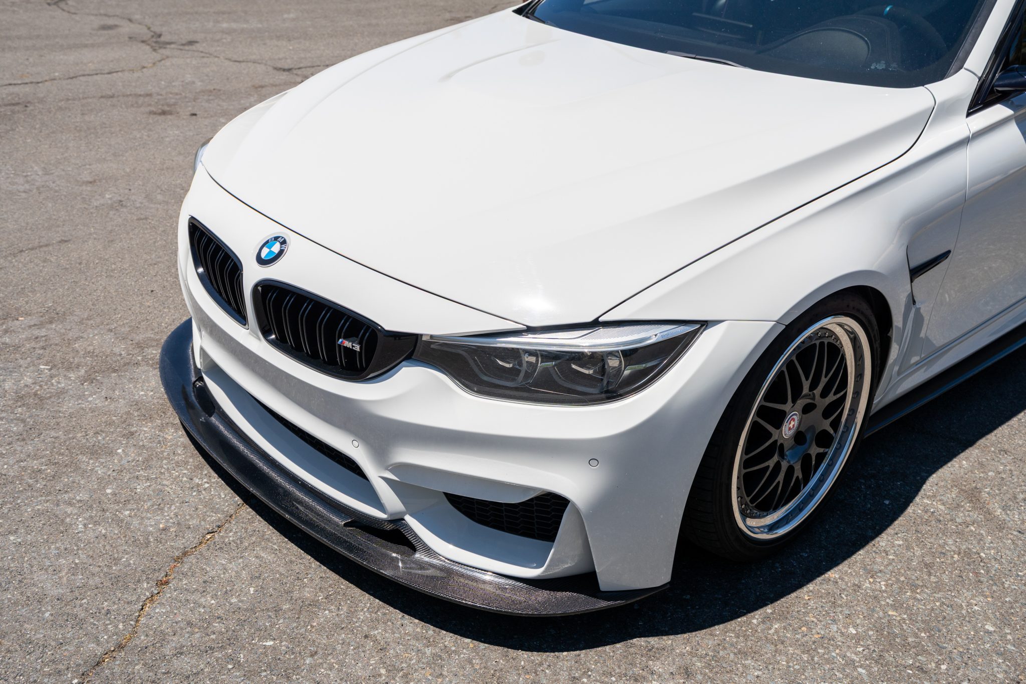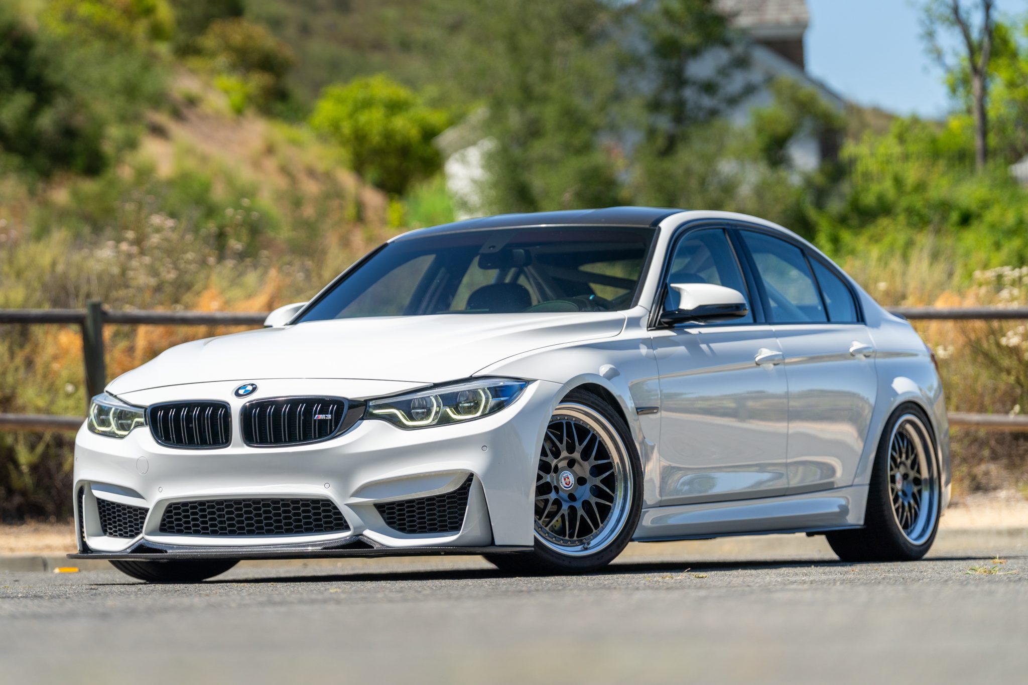 This 2018 BMW M3 sedan was specified new with the Competition and Lighting packages, and it remained registered in California through the seller’s acquisition in 2022. Subsequent modifications included the installation of revised engine management software, aftermarket exhaust components, a European-specification front bumper, carbon-fiber exterior trim, 19″ HRE 540 wheels, a wheel stud conversion, KW coilovers, and aftermarket anti-sway bars. Inside, Recaro fixed-back bucket seats with houndstooth inserts were installed along with Schroth harnesses, an M Perfomance steering wheel and shift knob, and a Studio RSR roll bar and rear seat delete kit. Powered by a twin-turbocharged 3.0-liter S55 inline-six paired with a six-speed manual transmission, the car is finished in Alpine White and further equipped with an Active M differential, Icon Adaptive LED headlights, carbon-fiber trim, a Harman Kardon sound system, Comfort Access keyless entry, and navigation. This F80 M3 has 69k miles and is now offered with a clean Carfax report and a California title. The F80 M3 featured widened bodywork along with revised fender vents and bumpers compared to the standard 3-series, while the Competition Package adds gloss-black kidney grilles, side gills, and rear model badging. This example is finished in Alpine White with Shadowline trim, and it was fitted with a Euro-specification front bumper cover, a Ridgeline Motorsport GT4 V1 carbon-fiber front splitter, carbon-fiber side skirts, and a Horizon Motorsport CS V2 carbon-fiber rear trunk spoiler under current ownership. Factory equipment included a carbon-fiber roof panel, Icon Adaptive LED headlights, and LED taillights. Scrapes are visible on the lower right portion of the front bumper cover. The suspension has been modified and lowered with KW V3 Clubsport coilovers, GTMore front and rear anti-sway bars, and SPL Parts sway bar end links, per the seller. The 19″ HRE 540 wheels are mounted with 255/65 front and 305/30 rear Falken Azenis FK510 tires, and they are secured by 78mm Macht Schnell Competition wheel studs. Braking is handled by blue-finished M-branded calipers fitted over cross-drilled and ventilated rotors at all four corners. The seller tells us the front and rear brake pads were replaced, and the brake fluid was flushed in preparation for the sale. The Recaro Pole Position ABE fixed-back bucket seats are trimmed in black with houndstooth cloth inserts, and they are secured with Recaro side mounts. Additional modifications include Schroth Flexi 2×2 safety harnesses, RSpro Harness Collars, a Brey Krause lap belt mount kit, a bleu iND start button, and a Studio RSR rear roll bar and seat delete kit. An M Performance handbrake boot and shift knob have been added, and additional appointments include carbon-fiber trim, a Harman Kardon sound system, Comfort Access keyless entry, dual-zone automatic climate control, cruise control, and iDrive infotainment with navigation. The Alcantara-wrapped M Performance steering wheel features a blue centering stripe and iND drive mode buttons, and it frames a 200-mph speedometer, an 8,500-rpm tachometer, and gauges for oil temperature and fuel level. The digital odometer indicates 69k miles, approximately 28k of which were added under current ownership. The twin-turbocharged 3.0-liter S55 inline-six is said to have been revised with MHD engine management software, a Do88 Performance intercooler J-pipe, and a Spool Performance Stage 3 low-pressure fuel pump. The seller tells us that replacement NGK spark plugs were installed within the last 10k miles, and that service in preparation included an oil change and replacing the filters. Power is sent to the rear wheels through a six-speed manual transmission and an electronically controlled Active M differential. The exhaust system has been modified with RedStar Exhaust downpipes and an Active Autowerke midpipe under current ownership, and the fluids in the transmission and differential were changed at approximately 65k miles, per the seller. The car cannot pass a California smog test in its current configuration, and it cannot be sold to an in-state private-party buyer. There is currently a lien on the car, and the seller’s lender will need to be paid off before the title can be transferred to the new owner. The Carfax report shows no accidents or other reported damage.