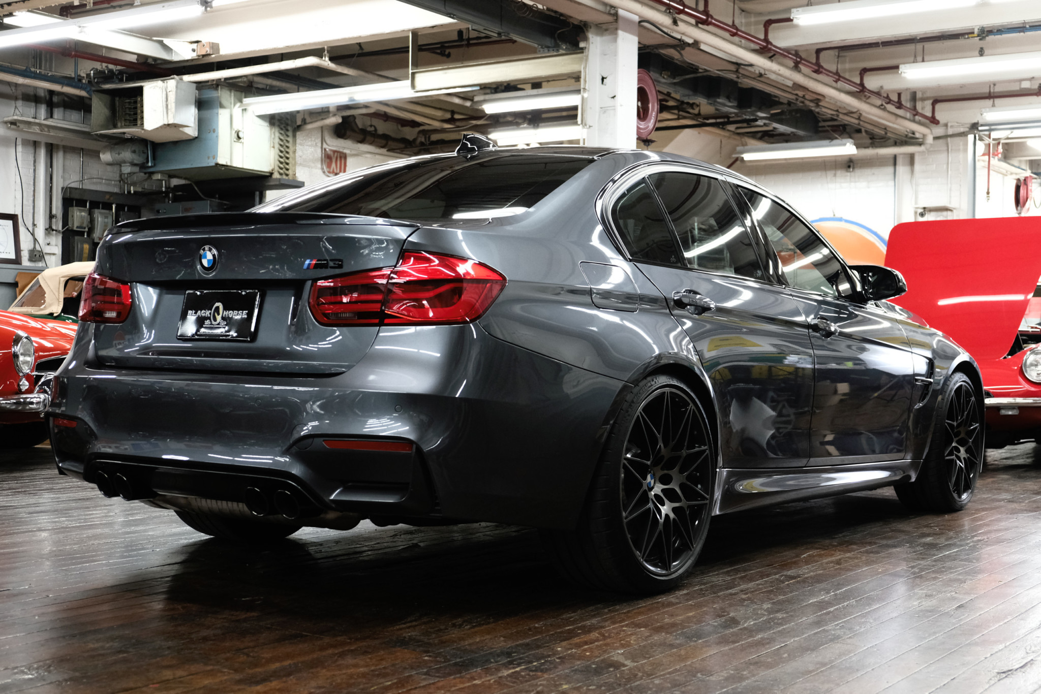 This 2018 BMW M3 is finished in Mineral Gray Metallic over a Sakhir Orange and black leather interior and is equipped with the Competition Package, which increased engine output and included a revised suspension, 20″ wheels, and a quicker steering ratio, as well as the Executive Package with heads-up display, heated rear seat, rear and side-view cameras, and more detailed in the listing. Power is provided by a twin-turbocharged 3.0-liter S55 inline-six paired with a seven-speed dual-clutch transmission, and the car is equipped with factory sport seats, carbon fiber interior trim, and navigation. This F80 shows 11k miles and is offered by the selling dealer with two sets of mats, a clean Carfax report, and a clean Connecticut title. The F80 M3 features widened bodywork and fender vents not present on the standard 3-series. Weight-saving measures include a carbon fiber roof, an aluminum hood, and aluminum front fenders. This example is finished in Mineral Gray Metallic (B39) with Shadowline trim. Stock 20″ wheels are fitted with Michelin Pilot Super Sport tires measuring 265/30 at the front and 285/30 out back. The M Competition package included a quicker steering ratio as well as revised settings for the Adaptive M Suspension system, stability control, and electronically-controlled active differential. The cabin is upholstered in Sakhir Orange (X3DA) with a black dashboard, carpets, and door panels. The Competition Package included unique power-adjustable and heated sport seats, and the dash and doors feature a mix of carbon fiber and gloss black trim. Equipment includes a Harman Kardon sound system, factory infotainment with navigation, Apple CarPlay, and rear window sunshades. A set of factory all-weather mats are included in the sale. The seller notes that the car is also equipped with the Executive Package with a heads-up display, park distance control, side and top-view cameras, parking assistant, rear heated seats. The heated multi-function steering wheel is backed by a pair of wheel-mounted shifter paddles. Instrumentation includes a 200-mph speedometer and an 8,500-rpm tachometer as well as a configurable digital display. Just over 11k miles are shown on the digital odometer. The twin-turbocharged 3.0L S55 inline-six sends power to the rear wheels via a seven-speed dual-clutch transmission. The Competition Package increased output from 425 to 444 horsepower, enough to propel the 3,600-pound sedan from 0-60 mph in approximately four seconds. A 10k-mile service was reportedly performed by BMW of Bridgeport in July 2019. Additional photos of the underside are provided in the image gallery below. The Carfax report shows no accidents or other issues and displays ownership in Connecticut from new. A walk-around and driving video is viewable below. https://youtu.be/PO6STYZM1QU