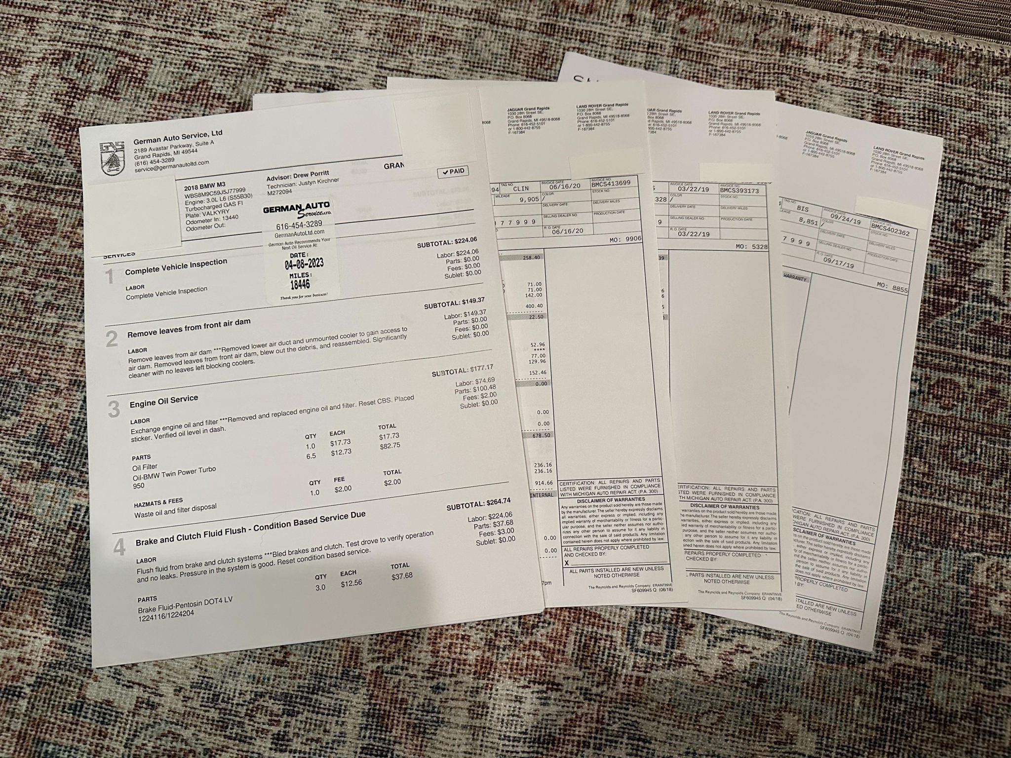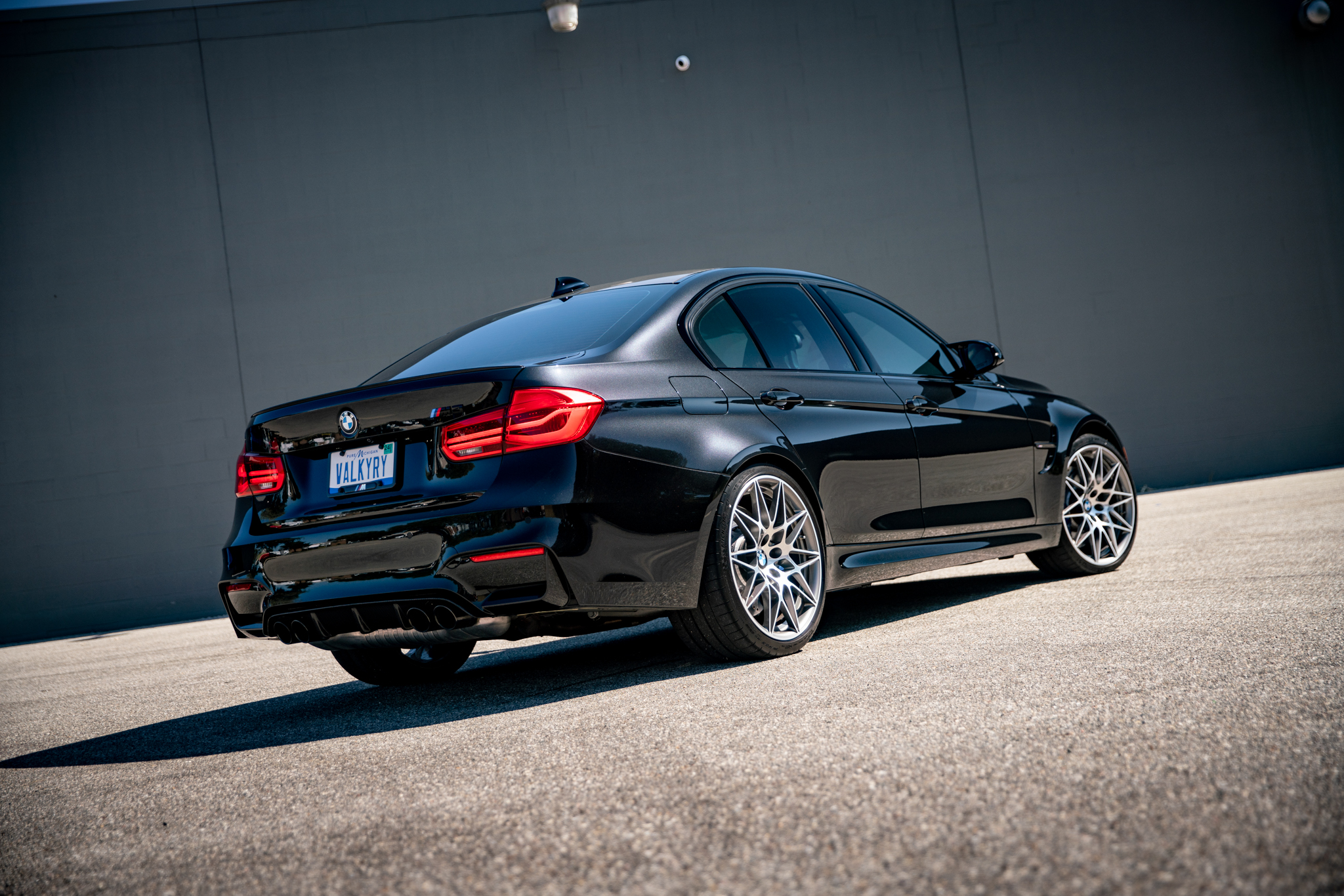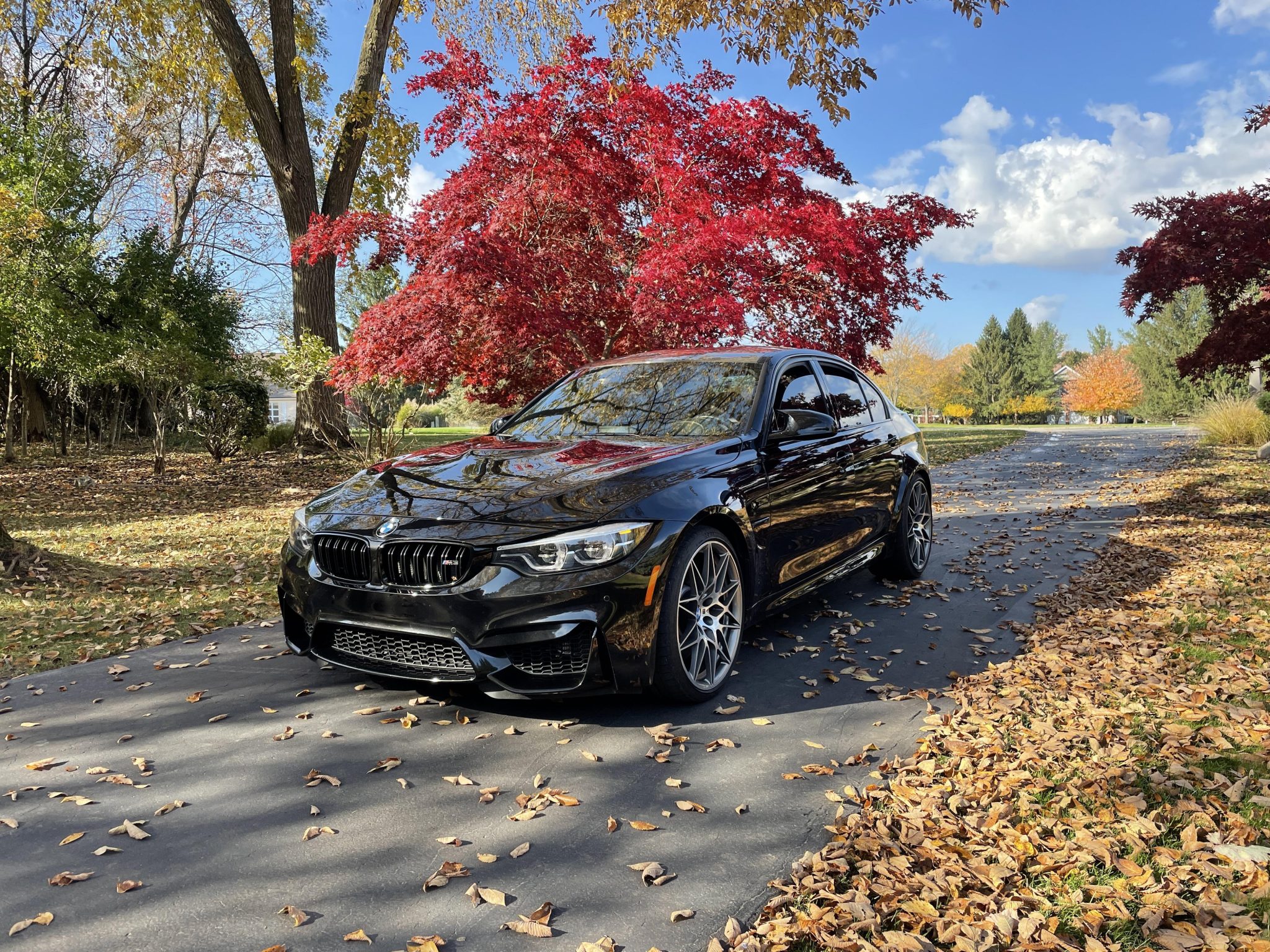 This 2018 BMW M3 is a black-over-black sedan that has 14k miles through the seller’s purchase in 2019, and it was optioned from the factory with the Competition and Executive packages. Powered by a twin-turbocharged 3.0-liter S55 inline-six mated to a replacement six-speed manual transmission, the car is equipped with an Active M differential, 20″ Style 666M alloy wheels, adaptive LED headlights, heated front and rear seats, a heated steering wheel, side- and top-view cameras, a head-up display, Park Distance Control, carbon-fiber exterior and interior accents, a Harman Kardon sound system, Comfort Access keyless entry, and navigation. This F80 M3 was purchased by the seller in 2019 and is now offered with the owner’s manual, service records, a clean Carfax report, and a Michigan title in the seller’s name. The F80 M3 featured widened bodywork along with revised fender vents and bumpers compared to the standard 3-series, while the Competition Package adds gloss-black kidney grilles, side gills, and rear model badging. This example is finished in Black Sapphire Metallic with Shadowline trim and has Adaptive LED headlights, Park Distance Control, LED taillights, a rear decklid spoiler, a carbon-fiber roof panel and rear diffuser, and a sport exhaust system with quad exhaust tips. A ceramic coating has been applied to the body and wheels, per the seller. The 20″ Style 666M alloy wheels are mounted with Michelin tires. The Competition package included a quicker steering ratio, stiffer springs and anti-roll bars, and revised settings for the Adaptive M Suspension system and stability control. Braking is handled by blue-finished M-branded calipers fitted over cross-drilled and ventilated rotors at all four corners. A brake fluid flush was performed and the tires were replaced in August 2025, per the Carfax report. The seating surfaces are upholstered in black Merino leather along with carbon-fiber trim on the dashboard and center console. Additional appointments include heated power-adjustable lightweight front sport seats, heated rear seats, side- and top-view cameras, a head-up display, Comfort Access keyless entry, a Harman Kardon sound system, Comfort Access keyless entry, dual-zone automatic climate control, cruise control, and iDrive infotainment with navigation. The heated leather-wrapped multifunction steering wheel frames a 200-mph speedometer, an 8,500-rpm tachometer, and gauges for oil temperature and fuel level. The digital odometer indicates 14k miles, approximately 8k of which were added under current ownership. The twin-turbocharged 3.0-liter S55 inline-six was factory rated at 444 horsepower and 406 lb-ft of torque in Competition specification. An oil change was performed in August 2025. Power is sent to the rear wheels through a six-speed manual transmission and an electronically controlled Active M differential. The transmission was replaced in 2019. The Carfax report is free of accidents or other reported damage. The Michigan title carries an “Actual Mileage” notation below the “Odometer Brand” section.