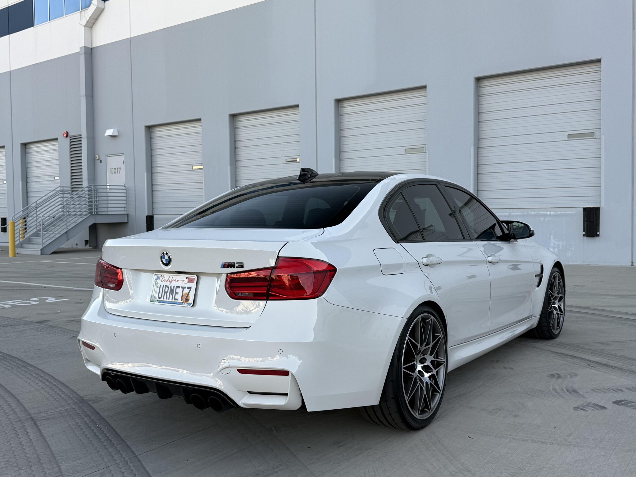 This 2018 BMW M3 is an Alpine White-finished sedan that was collected new via the European Tourist delivery program and then remained registered to its original owner in Nevada until the seller’s purchase in 2025. It was optioned from the factory with a six-speed manual transmission, the Competition Package, and heated front seats, which are trimmed in Anthracite Carbon Structure cloth and black leather. Powered by a twin-turbocharged 3.0-liter S55 inline-six, the car is further equipped with an Active M differential, 20″ Style 666M alloy wheels, Icon Adaptive LED headlights, carbon-fiber interior trim, a Harman Kardon sound system, Comfort Access keyless entry, and navigation. Service performed between 2023 and 2024 included replacing the fuel pump assembly, valve cover and gaskets, Valvetronic motor gasket, crankcase vent hose, spark plugs, drive belts, and more as detailed below. This F80 M3 has 116k miles and is now offered with a window sticker, 2017 German registration documentation, manufacturer’s literature, service records, a Carfax report, and a California title. The F80 M3 featured widened bodywork along with revised fender vents and bumpers compared to the standard 3-series, while the Competition Package adds gloss-black kidney grilles, side gills, and rear model badging. This example is finished in Alpine White with Shadowline trim and has Icon Adaptive LED headlights, LED taillights, parking sensors, a backup camera, and a sport exhaust system with quad exhaust tips. Damage to the rear is listed in a September 2019 entry of the Carfax report, and the seller states that the front end, headlights, and portions of the rear quarter panels have been covered in paint protection film. The 20″ Style 666M alloy wheels are mounted with 265/30 Michelin Pilot Super Sport front and 285/30 Yokohama Advan Apex rear tires with 2022, 2023, and 2024 date codes. The Competition package included a quicker steering ratio, stiffer springs and anti-roll bars, and revised settings for the Adaptive M Suspension system and stability control. Braking is handled by blue-finished M-branded calipers fitted over cross-drilled and ventilated rotors at all four corners. The brake fluid was flushed in June 2023 and the front brake pads were replaced in October 2024. The right-rear wheel has curb rash. The cabin features seating surfaces upholstered in Anthracite Carbon Structure cloth and black leather along with carbon-fiber trim on the dashboard and center console. Additional appointments include heated power-adjustable front seats, Comfort Access keyless entry, a Harman Kardon sound system, Comfort Access keyless entry, dual-zone automatic climate control, cruise control, and iDrive infotainment with navigation. The leather-wrapped multifunction steering wheel frames a 200-mph speedometer, an 8,500-rpm tachometer, and gauges for oil temperature and fuel level. The digital odometer indicates 116k miles, approximately 4k of which were added under current ownership. The twin-turbocharged 3.0-liter S55 inline-six was factory rated at 444 horsepower and 406 lb-ft of torque in Competition specification. Power is sent to the rear wheels through a six-speed manual transmission and an electronically controlled Active M differential. All six spark plugs were replaced in 2023 along with the drive belts, tensioners, and pulleys. The transmission fluid, differential gear oil, cabin air filter, and engine air filters were also changed. Service in 2024 involved installing a replacement URO valve cover and gasket set, Valvetronic motor gasket, crankcase vent hose, fuel pump assembly, fuel hose, and a Powerflex polyurethane rear differential mount bushing. The oil was most recently changed in May 2025. The car passed an emissions inspection in January 2025. The window sticker indicates that the car was collected via European Tourist delivery and was subsequently delivered to BMW of Riverside, California. It lists factory colors, equipment, and a total suggested retail price of $68,720. German registration documents dated from 2017 are displayed in the gallery below. The Carfax report shows the aforementioned damage.