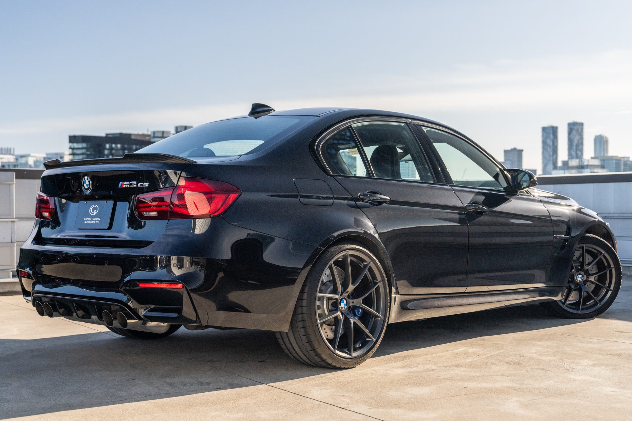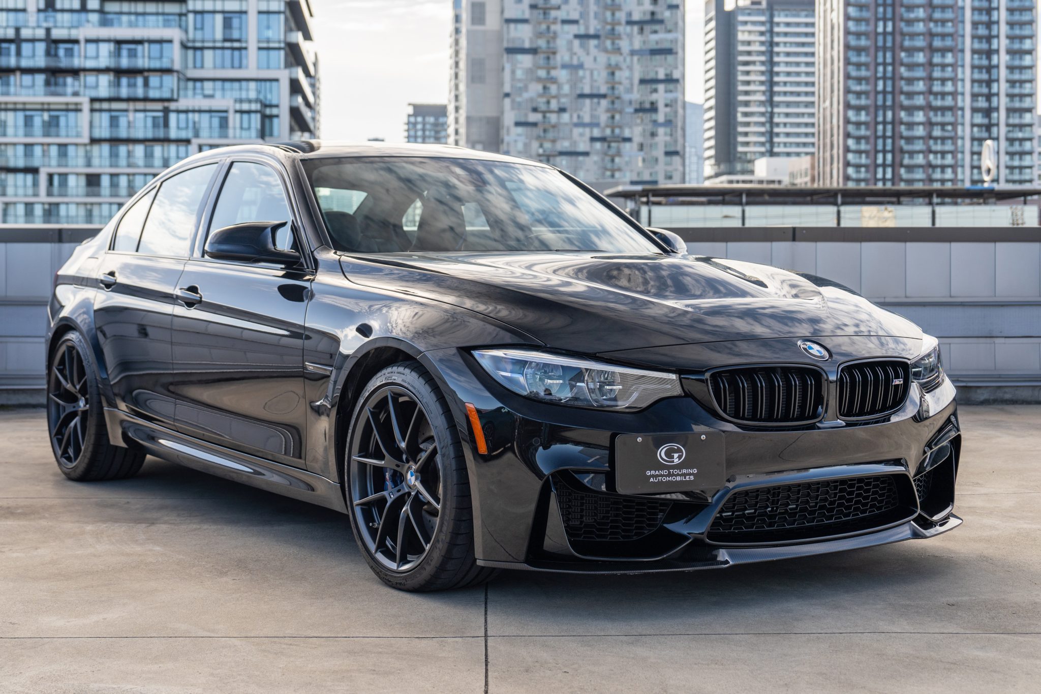 This 2018 BMW M3 CS sedan is a Canadian-market example and has 9k kilometers (~6k miles). The car is powered by a twin-turbocharged 3.0-liter S55 inline-six paired with a seven-speed M DCT dual-clutch transmission and is finished in Black Sapphire Metallic over black leather with gray inserts. Equipment includes an Active M differential, 19″ and 20″ Style 763M alloy wheels, heated lightweight front sport seats, a back-up camera, a Harman Kardon sound system, and navigation. Recently acquired by the selling dealer, this F80 M3 CS is offered in Canada with the owner’s manual, a clean US Carfax report, and clean Ontario registration. The F80 M3 featured widened bodywork compared to the standard 3 Series, and the CS is equipped with a carbon-fiber hood, roof, front lip, and a Gurney flap rear spoiler. This example is finished in Black Sapphire Metallic and features Shadowline trim, LED taillights, and a sport exhaust system with quad exhaust tips. The 19″ and 20″ Style 763M alloy wheels are mounted with Pilot Super Sport tires. The car is equipped with Dynamic Stability Control, Dynamic Brake Control, and Adaptive M suspension. Braking is handled by blue-finished M-branded calipers fitted over cross-drilled and ventilated rotors at all four corners The cabin features seating surfaces upholstered in black leather with gray inserts. Additional appointments include heated power-adjustable lightweight front sport seats, a back-up camera, Comfort Access keyless entry, carbon-fiber trim, a Harman Kardon sound system, dual-zone automatic climate control, cruise control, and iDrive infotainment with navigation. The leather-wrapped multifunction steering wheel features paddle shifters and frames a 330-km/h speedometer, an 8,500-rpm tachometer, and gauges for oil temperature and fuel level. The digital odometer indicates 9k kilometers (~6k miles). The twin-turbocharged 3.0-liter S55 inline-six was factory rated at 453 horsepower and 443 lb-ft of torque. Power is sent to the rear wheels through a seven-speed M DCT dual-clutch transmission and an electronically controlled Active M differential. The US Carfax report is free of accidents or other reported damage. The vehicle is being sold on its Ontario registration, which serves as the ownership document in Ontario, Canada. The sale does not include a title.