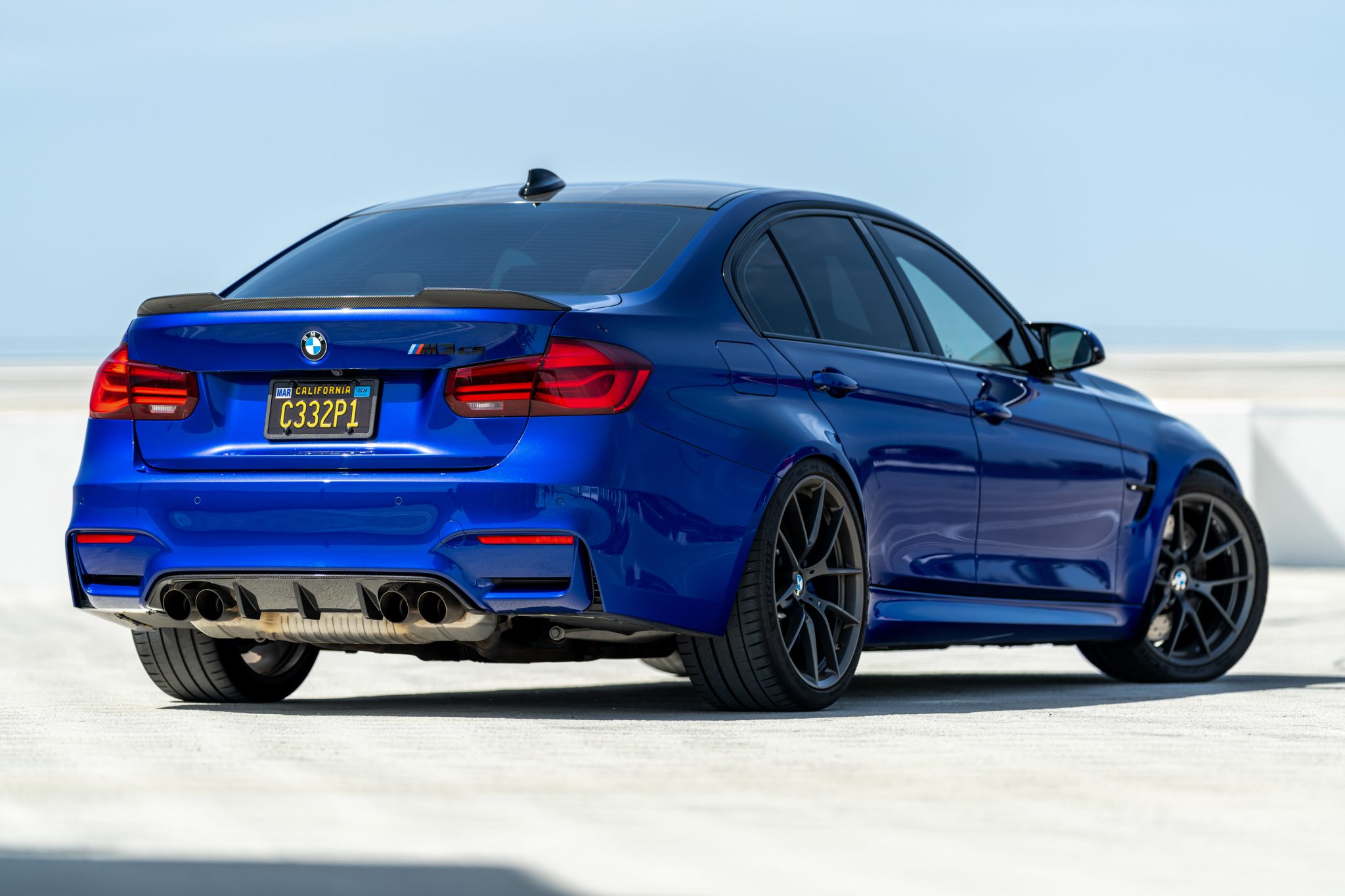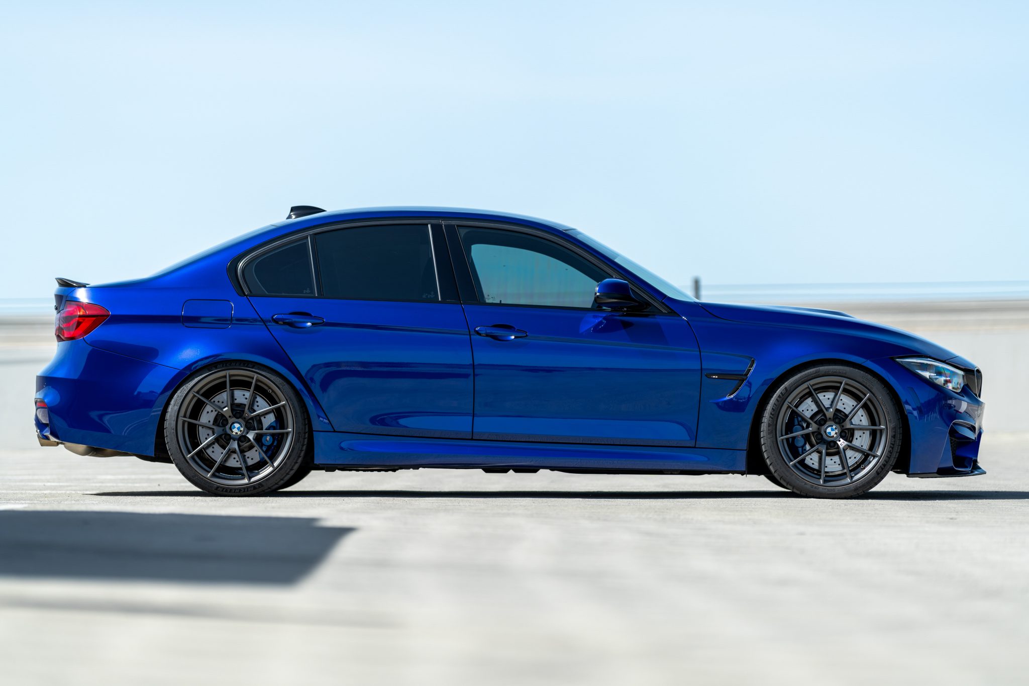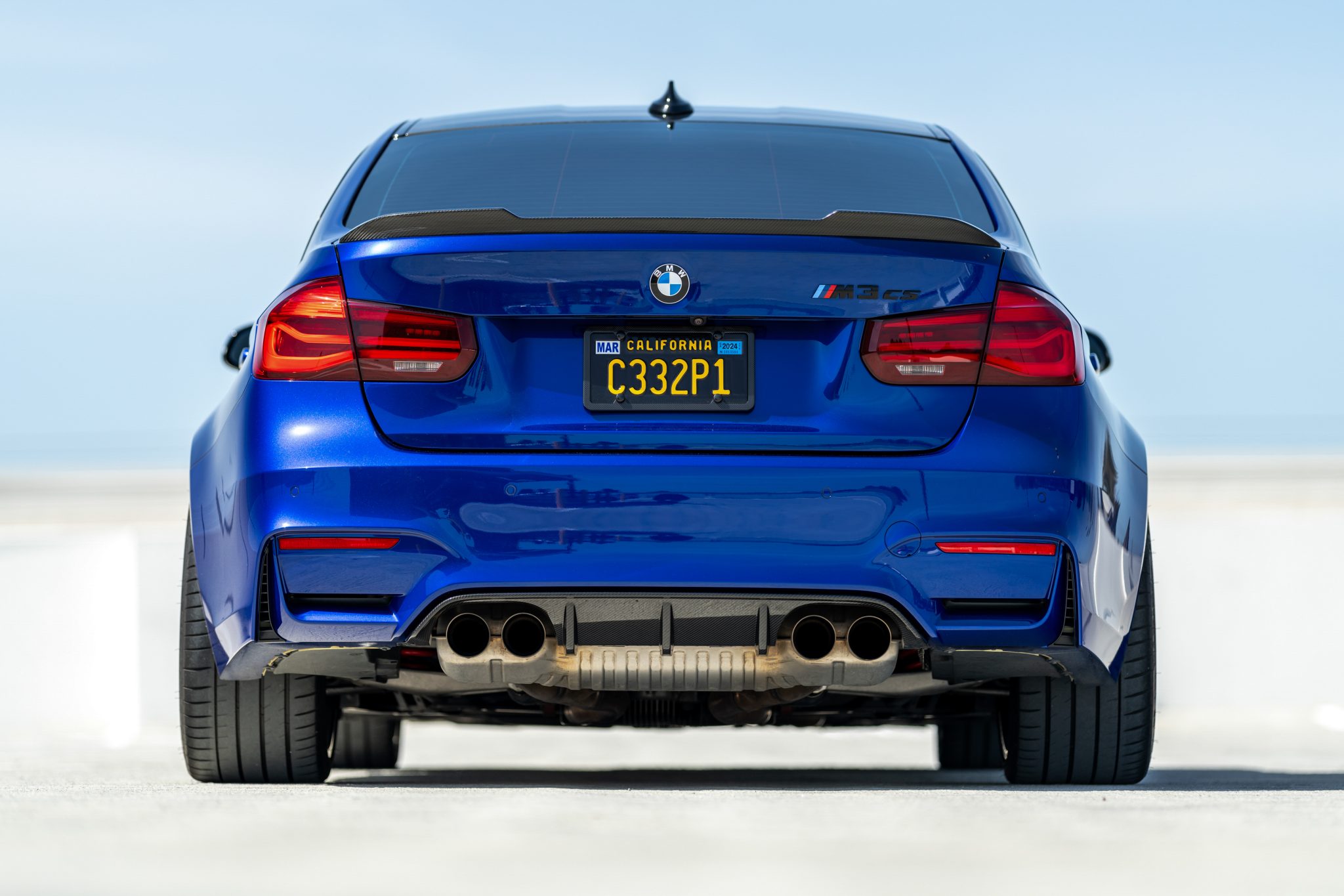 This 2018 BMW M3 CS sedan is one of approximately 1,200 examples produced for the model year. It is powered by a twin-turbocharged 3.0-liter S55 inline-six paired with a seven-speed M DCT dual-clutch transmission, and it is finished in San Marino Blue Metallic over black and Silverstone leather. Equipment includes an Active M differential, 19″ and 20″ Style 763M alloy wheels, adjustable springs, LED headlights, heated front seats, a back-up camera, carbon-fiber trim, a Harman Kardon sound system, navigation, and the Executive Package, which added rear-window sunshades, adaptive LED lighting, and a head-up display. The current owner purchased the car in October 2021 and has since added approximately 12k of the 23k indicated miles. This F80 M3 CS is now offered with removed parts, a window sticker, literature, a clean Carfax report, and a clean California title. The F80 M3 featured widened bodywork compared to the standard 3 Series, and the CS is equipped with a carbon-fiber hood, roof, front lip, and a Gurney flap rear spoiler. This example is finished in San Marino Blue Metallic. The windshield was replaced in August 2023, and the front lip was replaced in October 2021. Clear paint-protection film has been added, and imperfections include dings in the left-rear quarter panel, front bumper cover, and right-rear quarter panel as well as a scratch beneath the right side skirt. The 19″ and 20″ Style 763M alloy wheels are mounted over 12mm spacers up front and 10mm spacers out back, and they are wrapped in Michelin Pilot Sport 4S tires that were installed in June 2022. The Competition package included a quicker steering ratio, stiffer anti-roll bars, and revised settings for the Adaptive M Suspension system and stability control. M Performance adjustable springs have been added. Braking is handled by blue-finished M-branded calipers fitted over cross-drilled and ventilated rotors at all four corners The cabin features seating surfaces upholstered in Silverstone and black bicolor leather along with carbon-fiber trim on the dashboard and center console. Additional appointments include heated power-adjustable lightweight front sport seats, a back-up camera, a head-up display, a Harman Kardon sound system, dual-zone automatic climate control, cruise control, and iDrive infotainment with navigation. The driver’s seat has been reupholstered. The replacement Alcantara-wrapped multifunction steering wheel features paddle shifters and frames a 200-mph speedometer, an 8,500-rpm tachometer, and gauges for oil temperature and fuel level. The digital odometer indicates 23k miles, approximately 12k of which were added under current ownership. The twin-turbocharged 3.0-liter S55 inline-six was factory rated at 453 horsepower and 443 lb-ft of torque in CS specification. An oil change was performed in August 2023. Power is sent to the rear wheels through a seven-speed M DCT dual-clutch transmission and an electronically controlled Active M differential. The window sticker shows initial delivery to Valencia BMW in California, and it lists factory colors, equipment, and a total suggested retail price of $102,395. The sale includes spare and removed parts as shown in the gallery below. The Carfax report shows no accidents or damage. There is currently a lien out on the title to the car, and the seller’s lender will need to be repaid before the title can be transferred to a new owner.